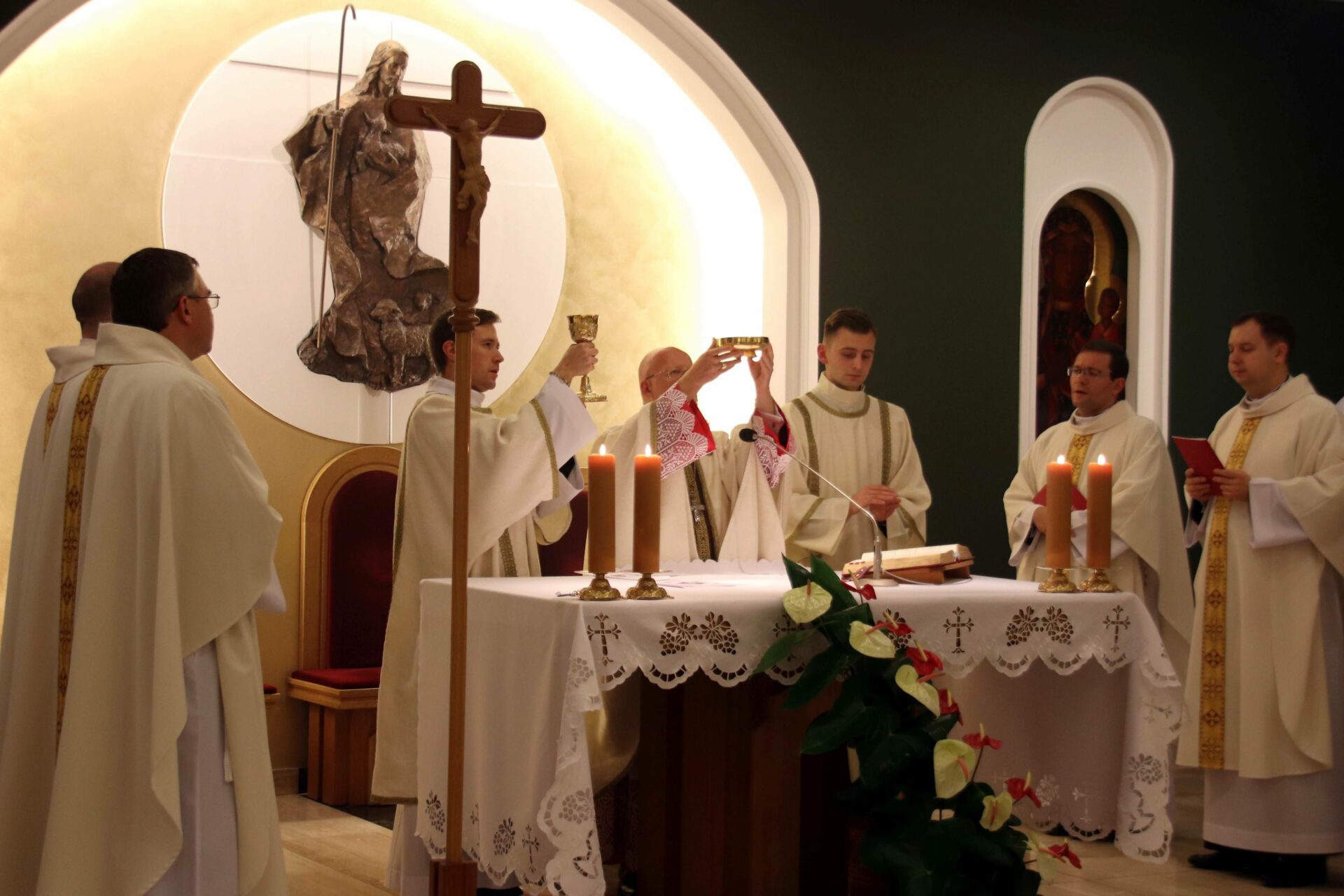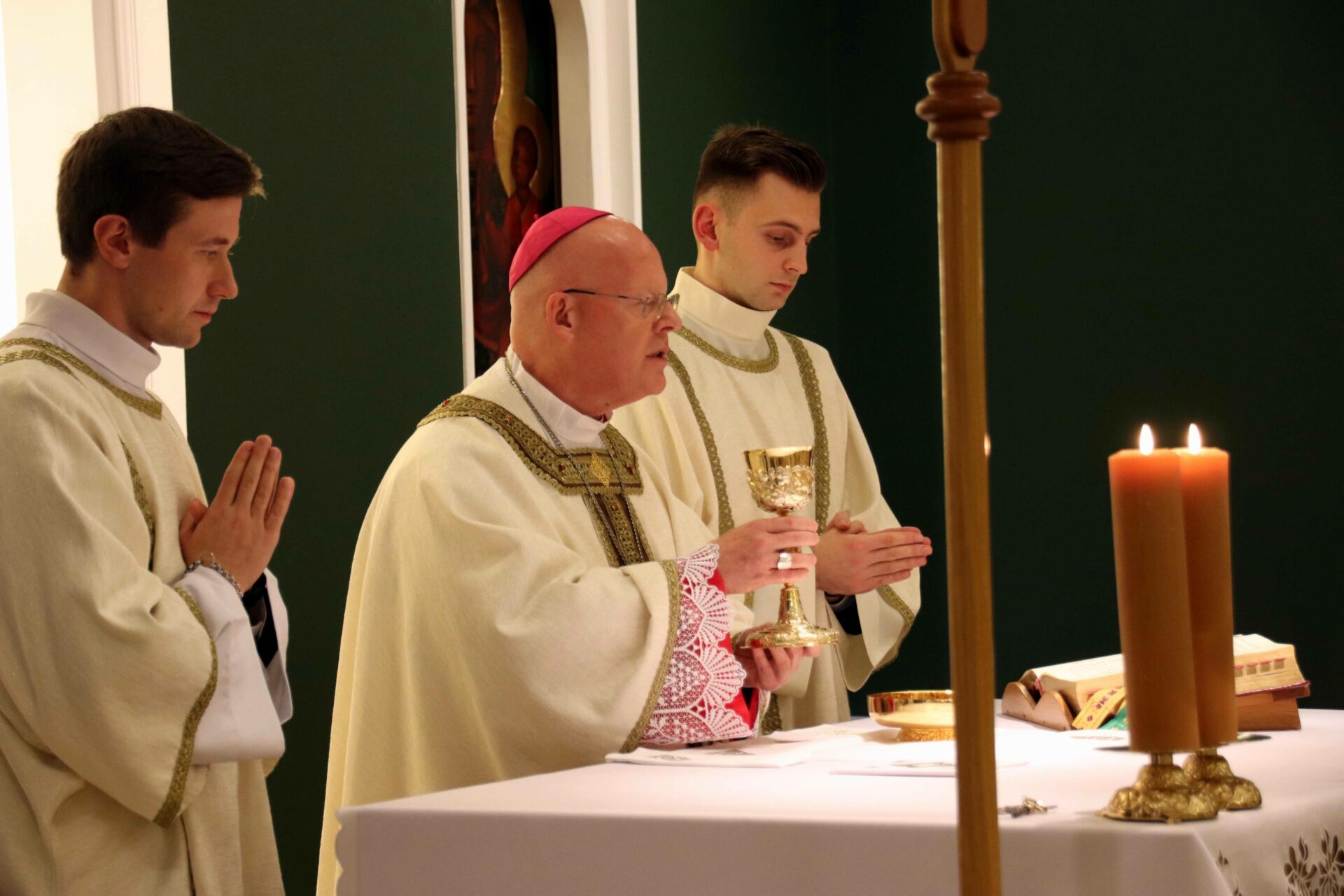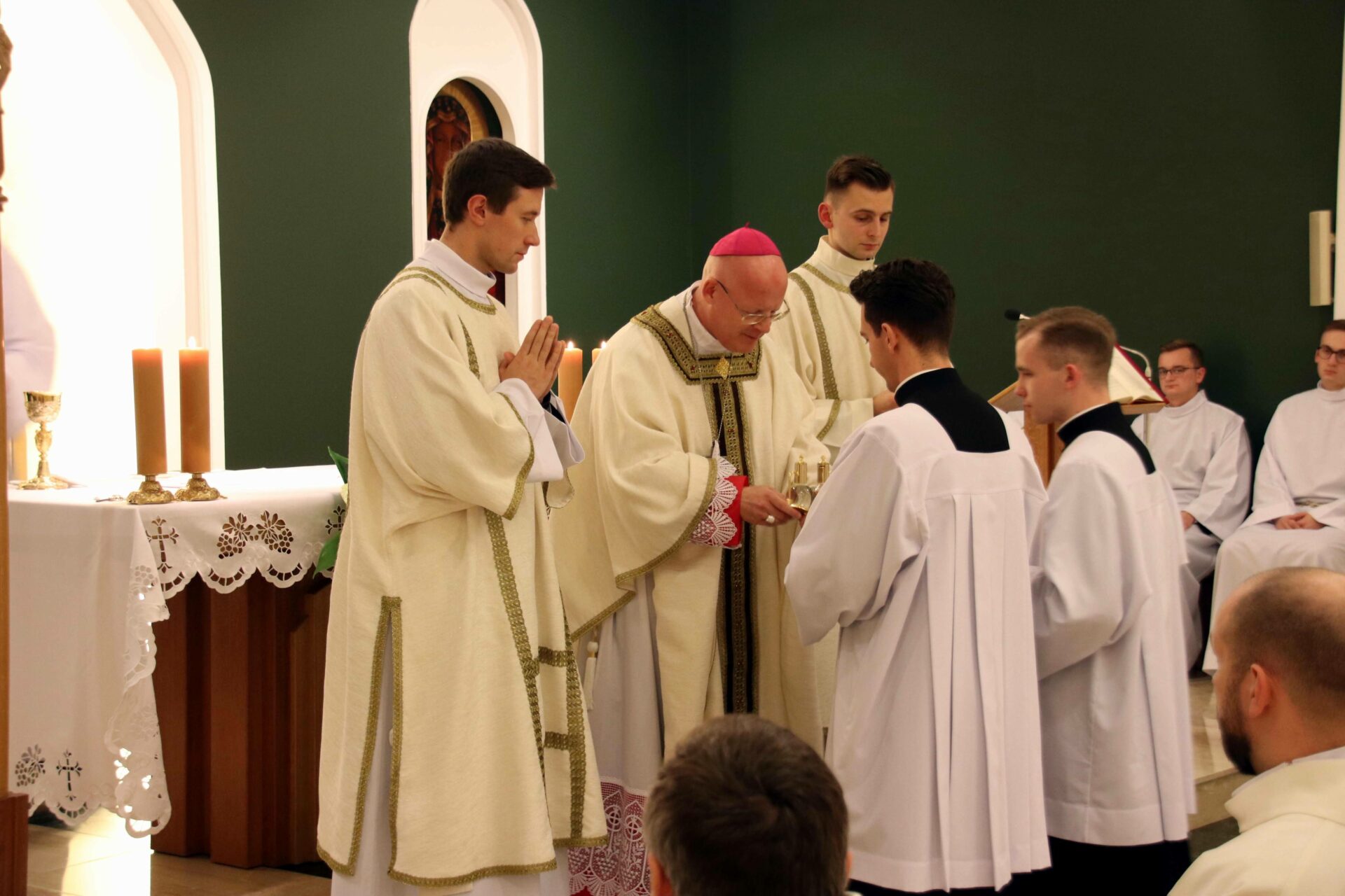 W środowy wieczór uroczystą Eucharystię w seminaryjnej kaplicy pw. Chrystusa Dobrego Pasterza celebrował arcybiskup Tomasz Grysa, nuncjusz apostolski na Madagaskarze i delegat apostolski na Komorach (z obowiązkami delegata na Reunionie), który nieco ponad dwa tygodnie temu przyjął w poznańskiej bazylice archikatedralnej święcenia biskupie z rąk kardynała sekretarza stanu Pietro Parolina. Na początku koncelebrowanej Mszy ksiądz rektor Jan Frąckowiak witając naszego gościa wspomniał placówki dyplomatyczne Stolicy Apostolskiej, w których pracował arcybiskup nuncjusz, jak również przypomniał lata 1989–1995, kiedy to kleryk Tomasz rozeznawał i formował się w naszym Seminarium.