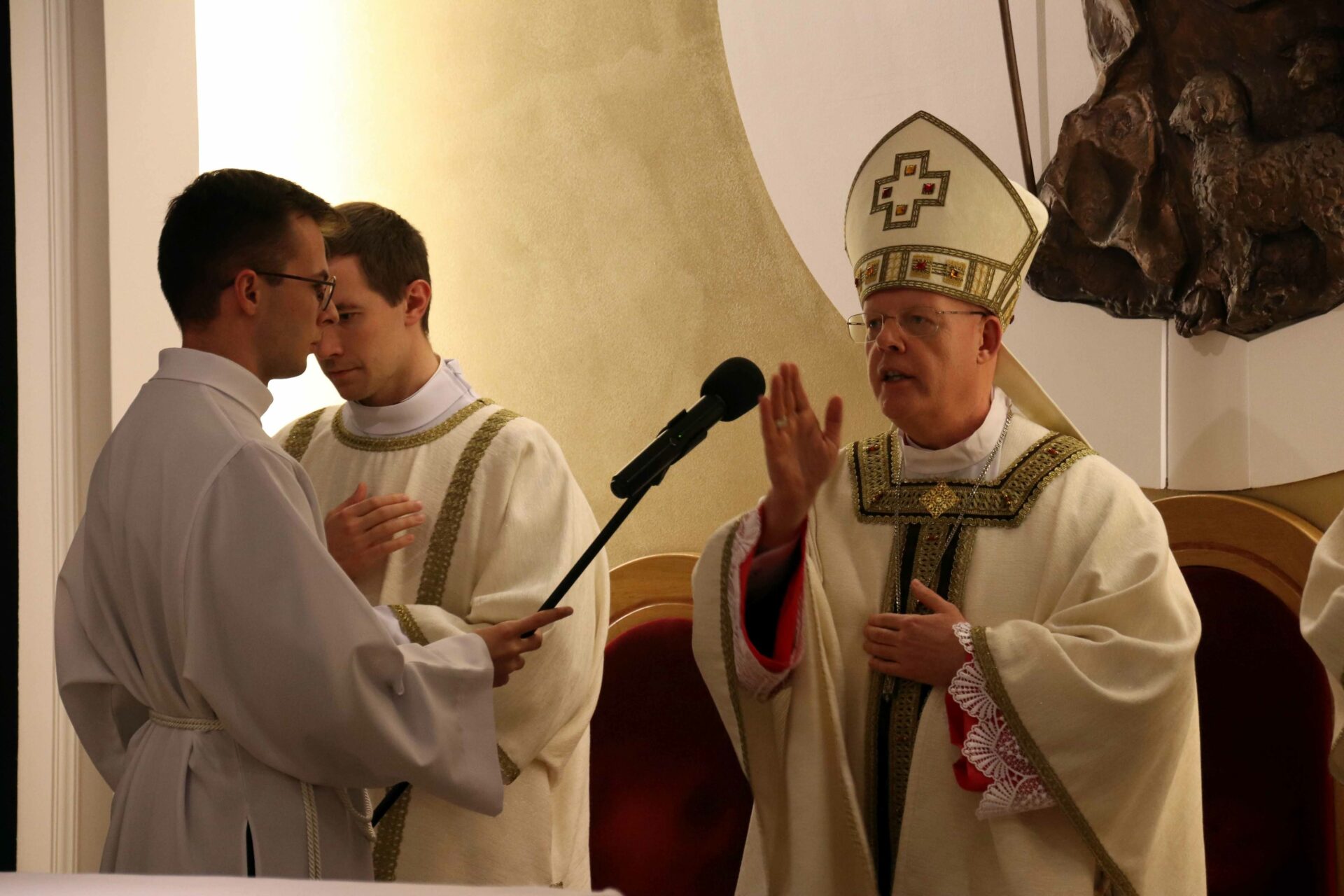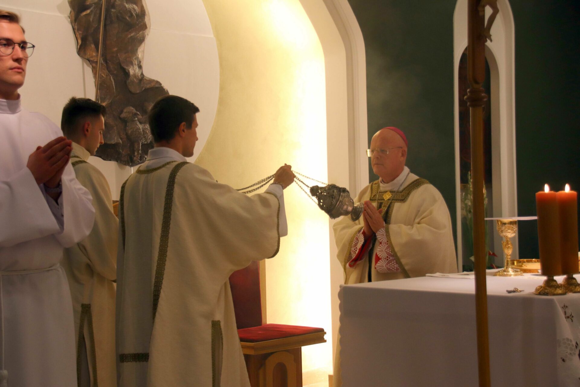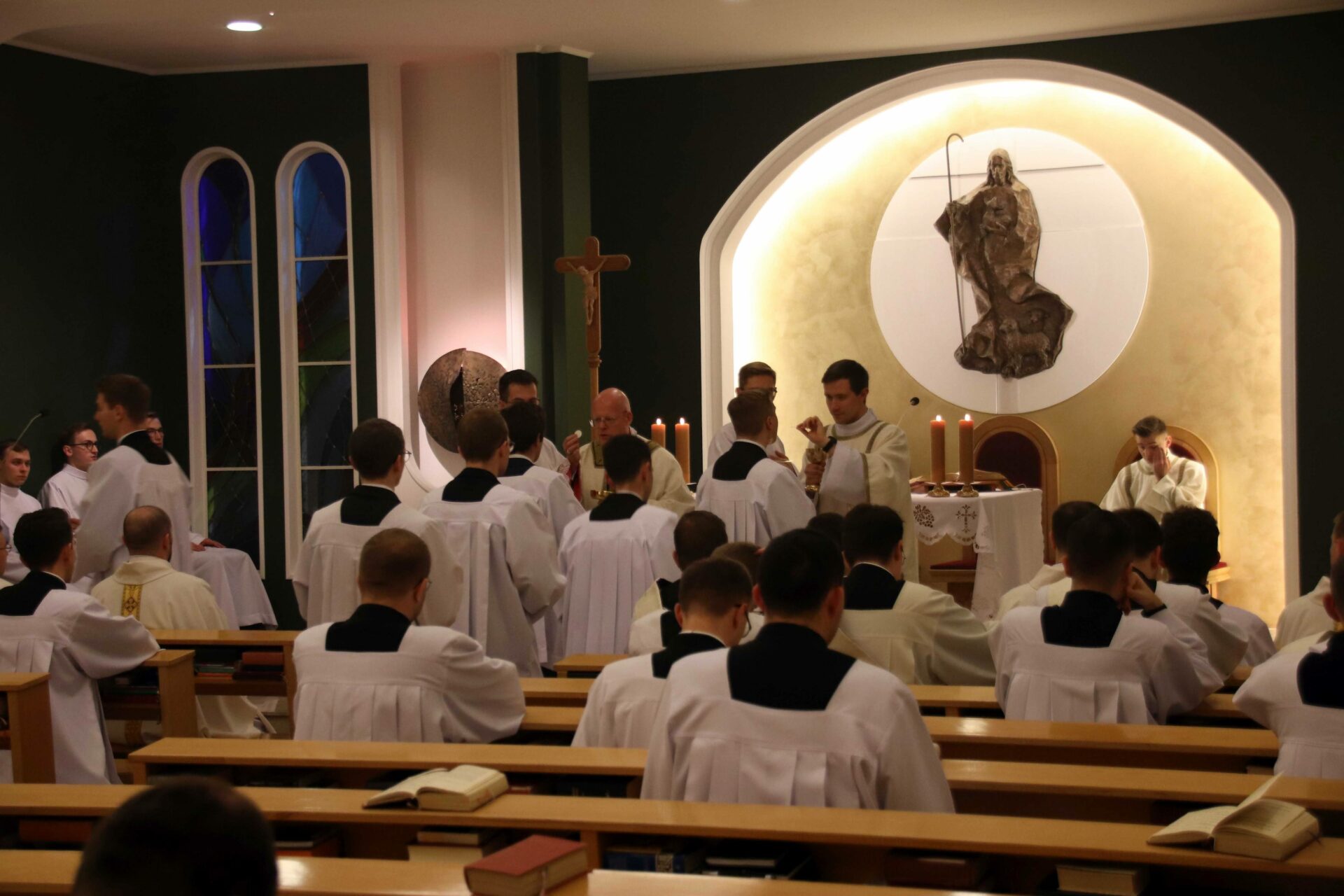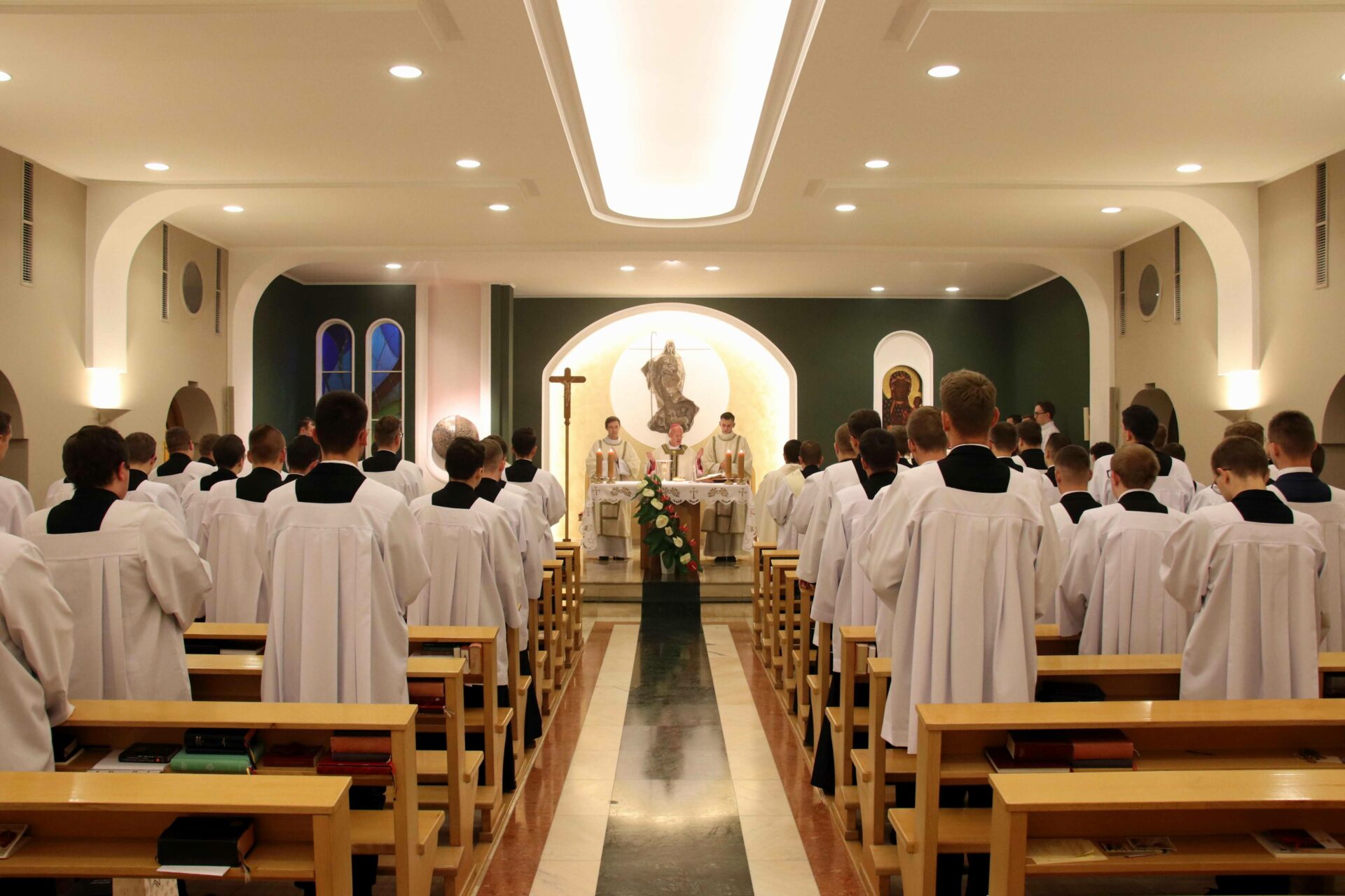 W środowy wieczór uroczystą Eucharystię w seminaryjnej kaplicy pw. Chrystusa Dobrego Pasterza celebrował arcybiskup Tomasz Grysa, nuncjusz apostolski na Madagaskarze i delegat apostolski na Komorach (z obowiązkami delegata na Reunionie), który nieco ponad dwa tygodnie temu przyjął w poznańskiej bazylice archikatedralnej święcenia biskupie z rąk kardynała sekretarza stanu Pietro Parolina. Na początku koncelebrowanej Mszy ksiądz rektor Jan Frąckowiak witając naszego gościa wspomniał placówki dyplomatyczne Stolicy Apostolskiej, w których pracował arcybiskup nuncjusz, jak również przypomniał lata 1989–1995, kiedy to kleryk Tomasz rozeznawał i formował się w naszym Seminarium.