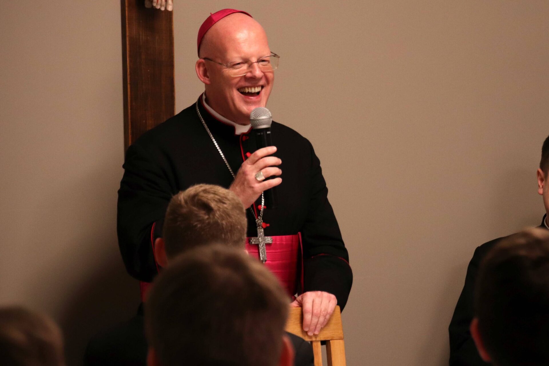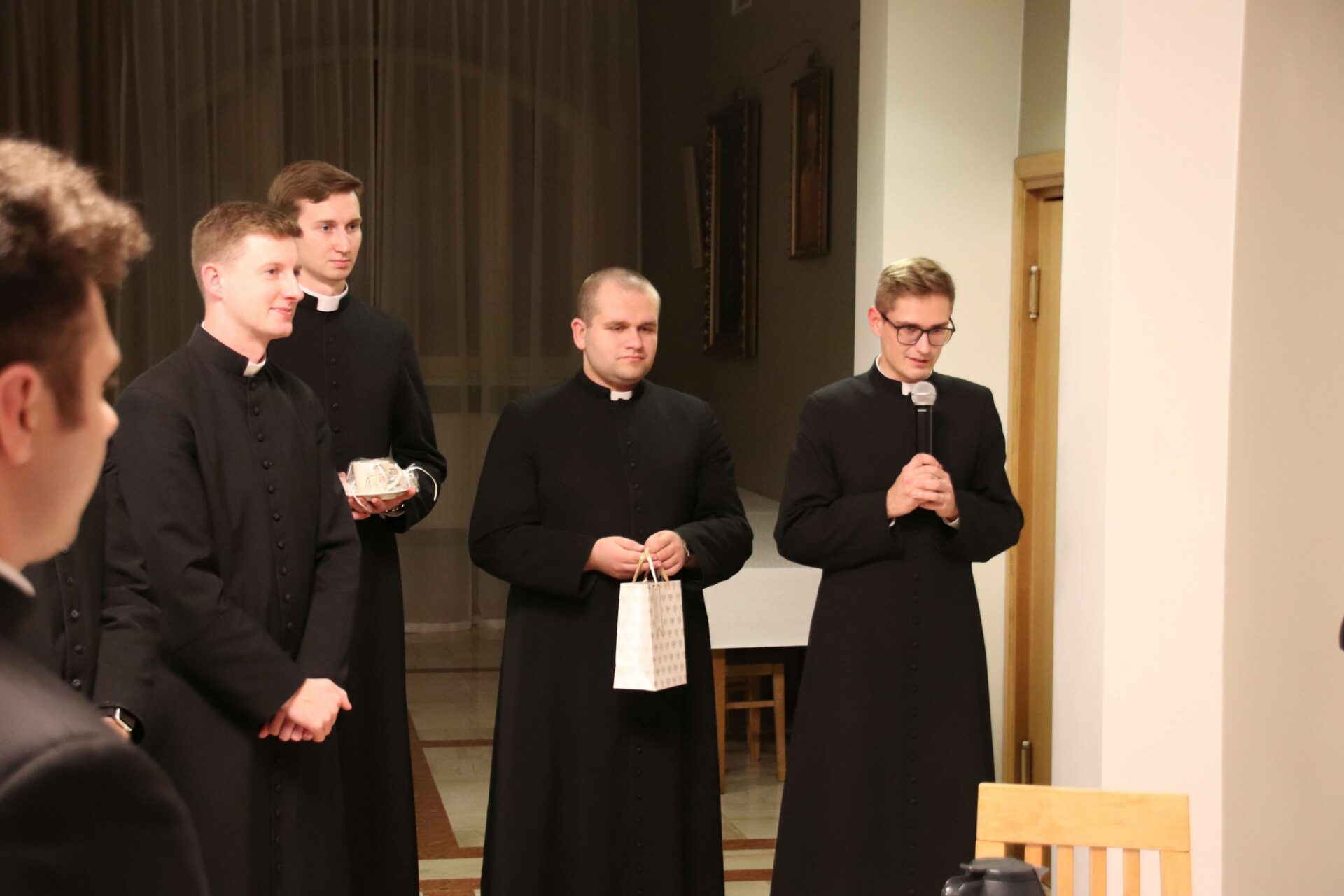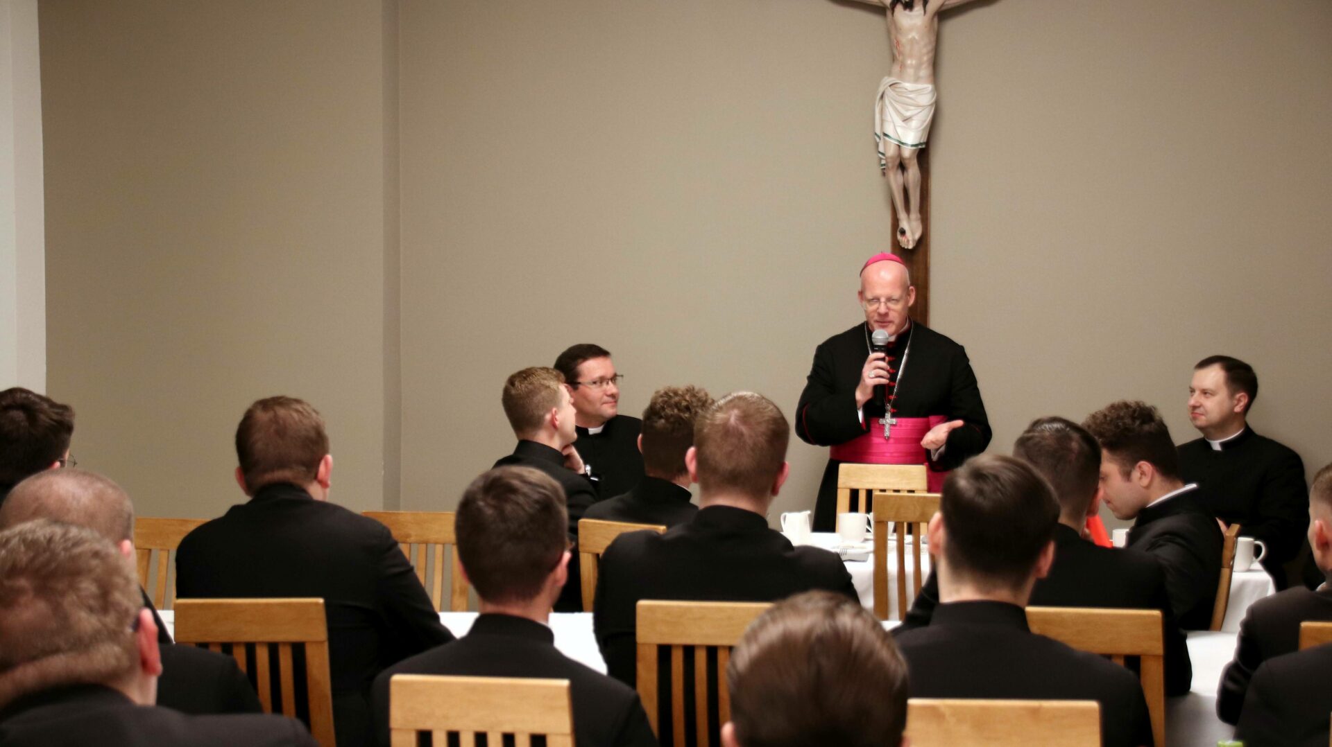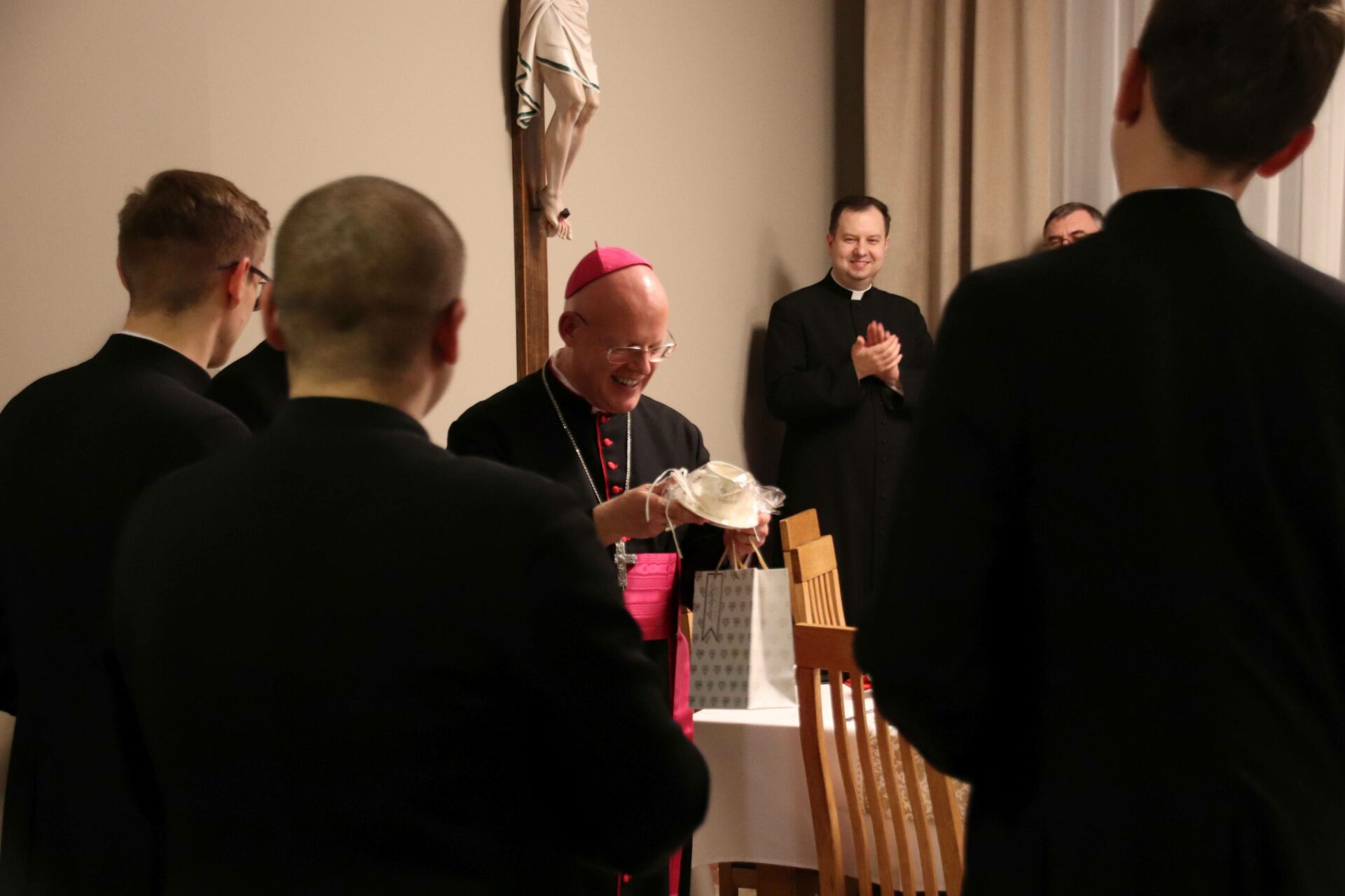 Po Eucharystii zebraliśmy się na wspólnej kolacji w refektarzu, na zakończenie której arcybiskup Tomasz mówił o swojej posłudze kapłańskiej w różnorakich zakątkach świata i pracy dyplomatycznej jako przedstawiciel papieża, często wśród społeczności nie popierającej chrześcijańskiego światopoglądu. Alumni mieli również możliwość zadawania pytań naszemu gościowi, który wyjaśniał różne zabiegi dyplomacji Stolicy Apostolskiej na rzecz pokoju i percepcję ojca świętego Franciszka – według której najwyższą wartością jest ochrona każdego życia, a szczególnie tego najbardziej bezbronnego.