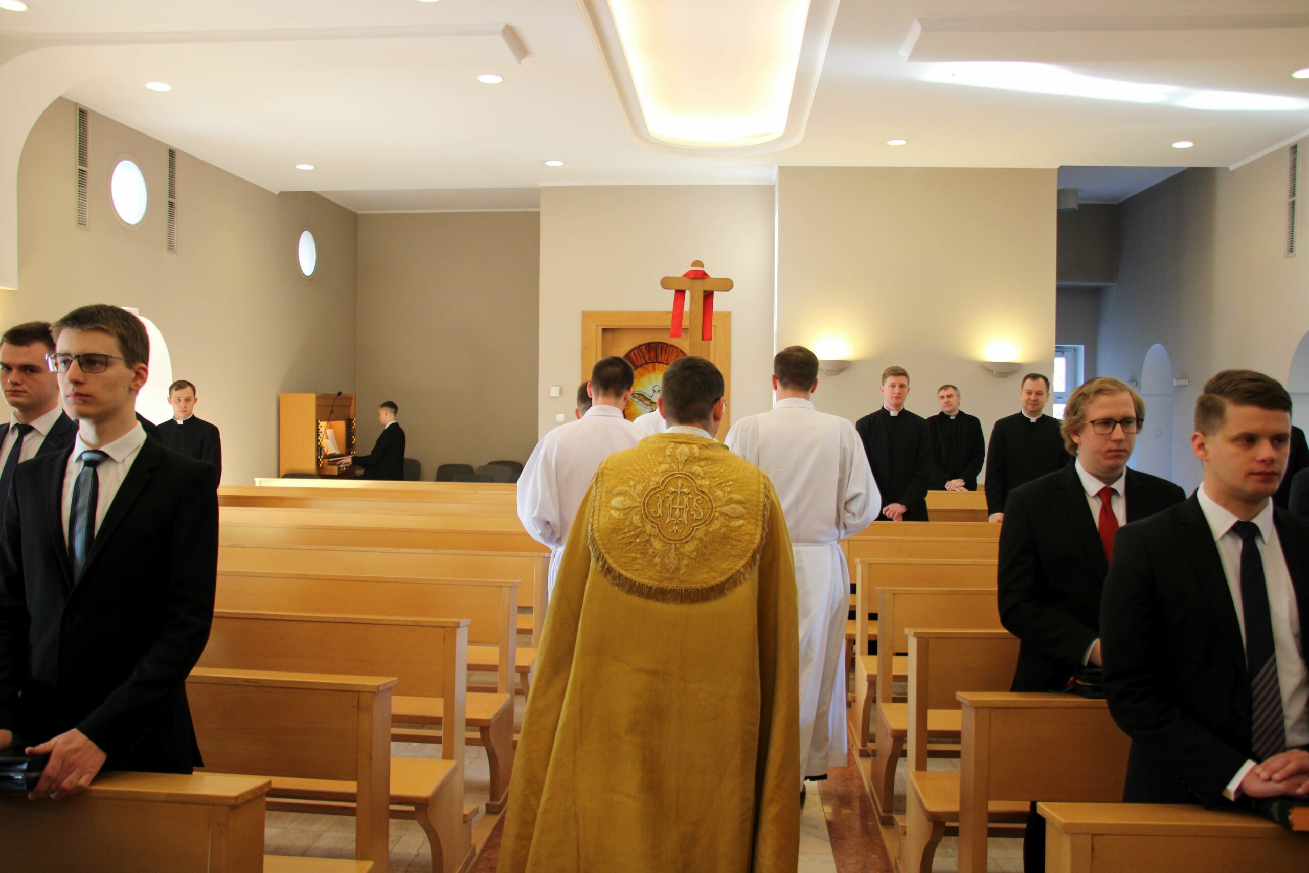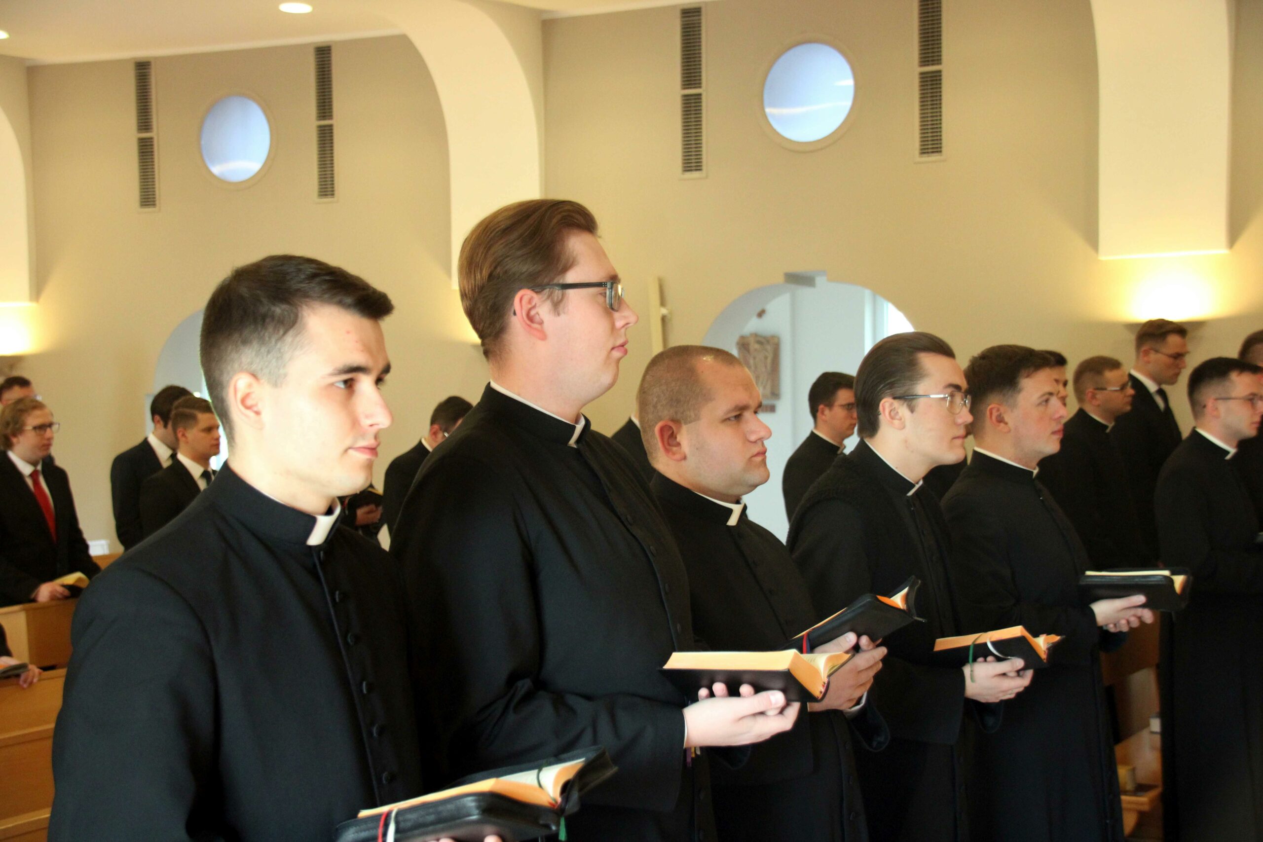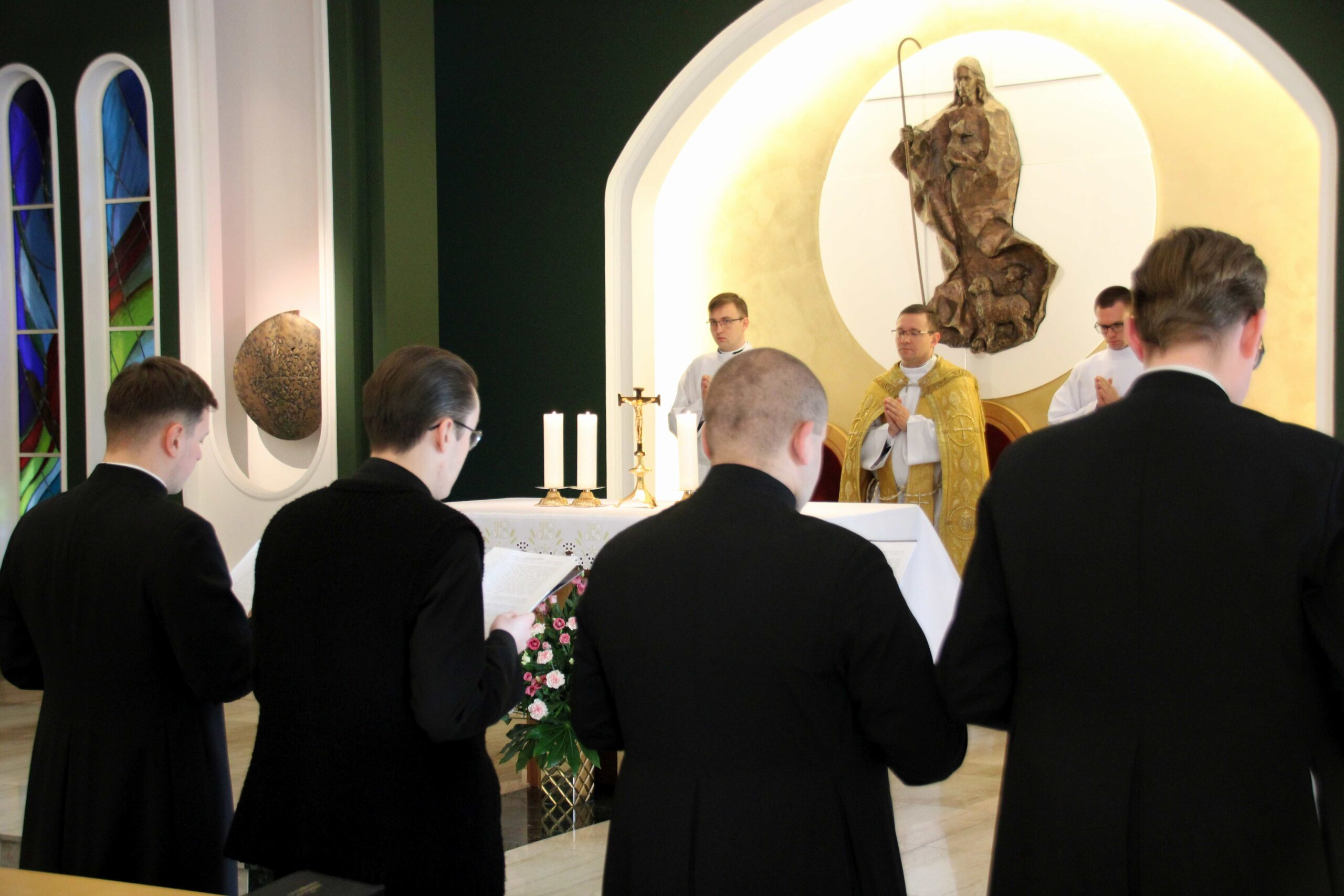 Jutrzni w seminaryjnej kaplicy pw. Chrystusa Dobrego Pasterza, w czasie której ośmiu alumnów z diecezji kaliskiej, jeden z archidiecezji poznańskiej i jeden z diecezji bydgoskiej wyznało wiarę i złożyło wymagane prawem przysięgi kanoniczne przed przyjęciem święceń w stopniu diakonatu, przewodniczył ksiądz rektor Jan Frąckowiak.