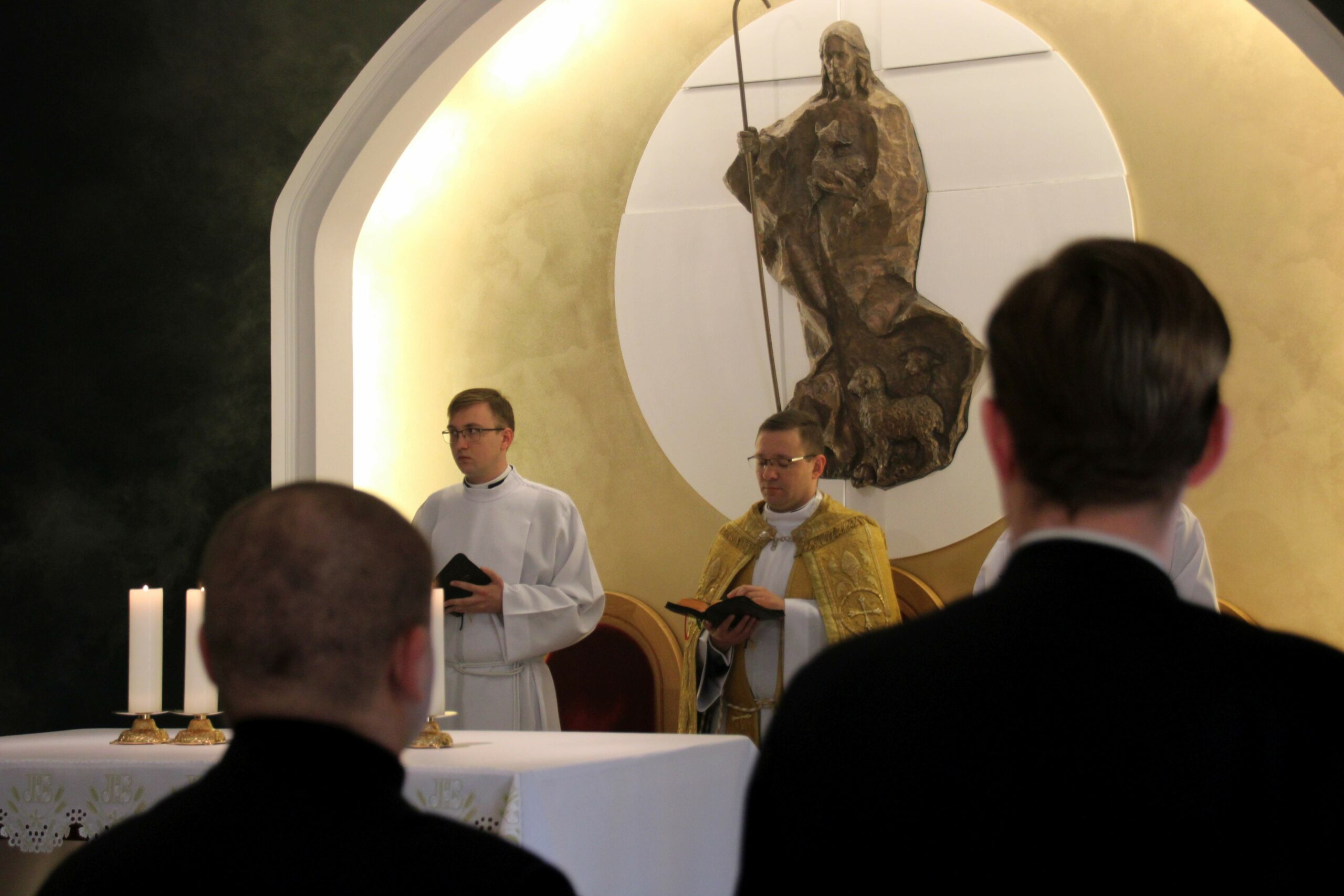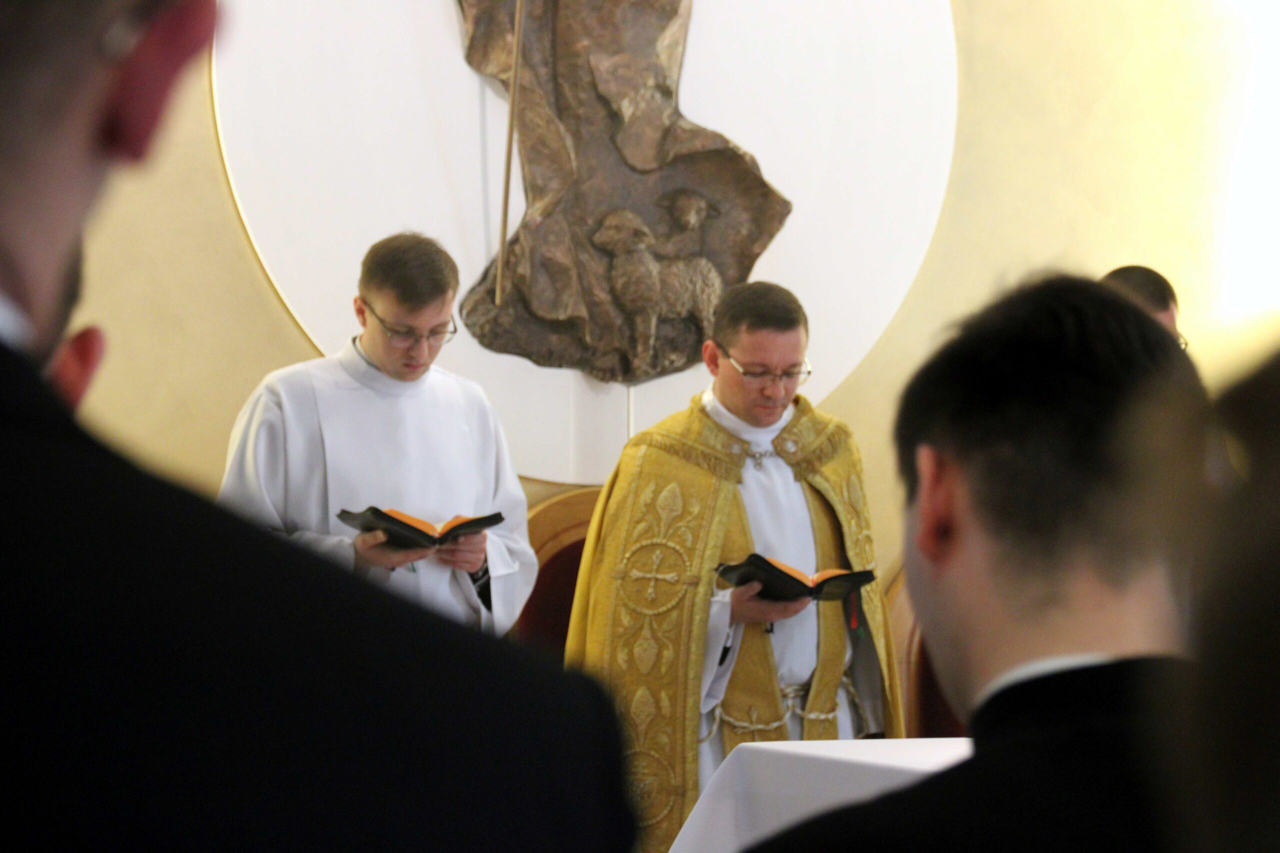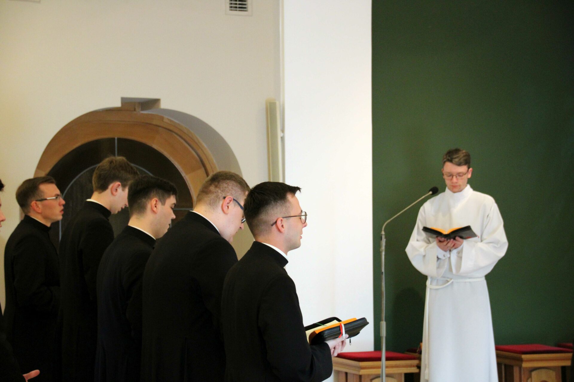 Jutrzni w seminaryjnej kaplicy pw. Chrystusa Dobrego Pasterza, w czasie której ośmiu alumnów z diecezji kaliskiej, jeden z archidiecezji poznańskiej i jeden z diecezji bydgoskiej wyznało wiarę i złożyło wymagane prawem przysięgi kanoniczne przed przyjęciem święceń w stopniu diakonatu, przewodniczył ksiądz rektor Jan Frąckowiak.
