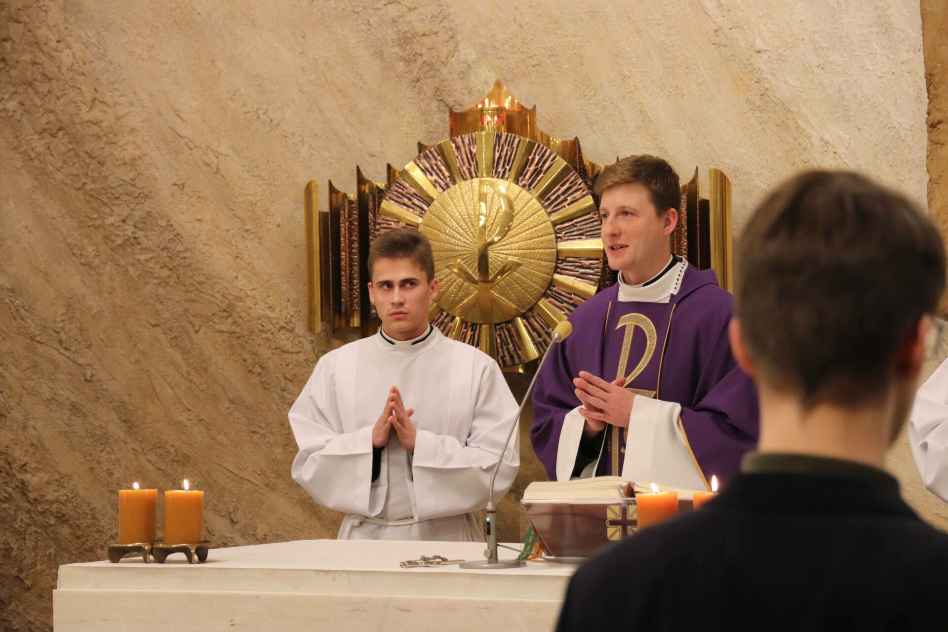 W pierwszy poniedziałek Wielkiego Postu udaliśmy się całą naszą seminaryjną wspólnotą do Domu Głównego Sióstr Misjonarek Chrystusa Króla dla Polonii Zagranicznej na poznańskim Morasku. Koncelebrowanej Eucharystii w klasztornej kaplicy przewodniczył ksiądz prefekt Paweł Białczyk, który wygłosił także homilię. Zwracał w niej uwagę między innymi na to, iż na drodze do Nieba nie możemy iść w pojedynkę, ale we wspólnocie. W czasie wspólnej modlitwy księża przełożeni składali Najświętszą Ofiarę w intencji zgromadzenia zakonnego Sióstr Misjonarek Chrystusa Króla oraz rychłej beatyfikacji Czcigodnego Sługi Bożego o. Igancego Posadzego SChr.
