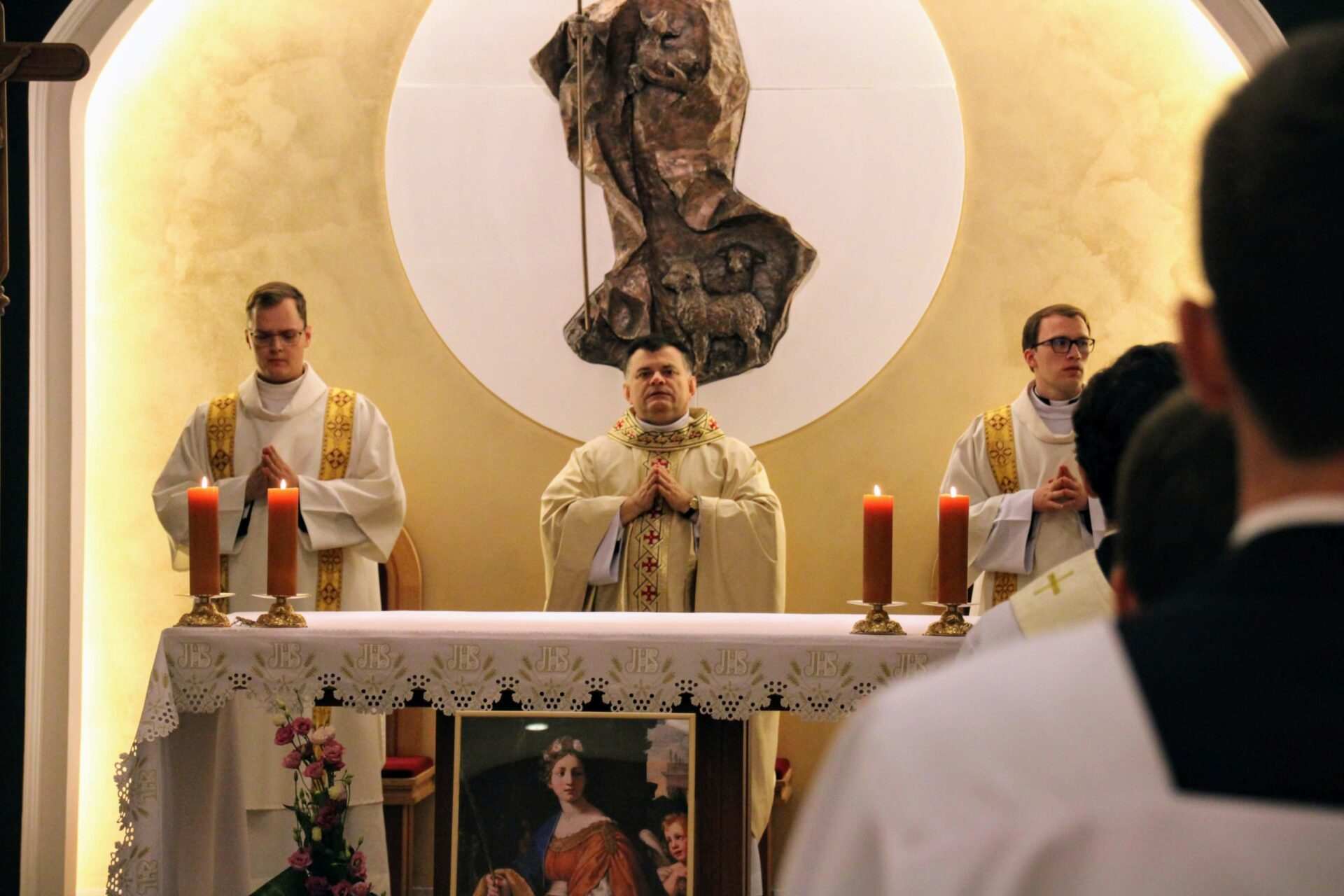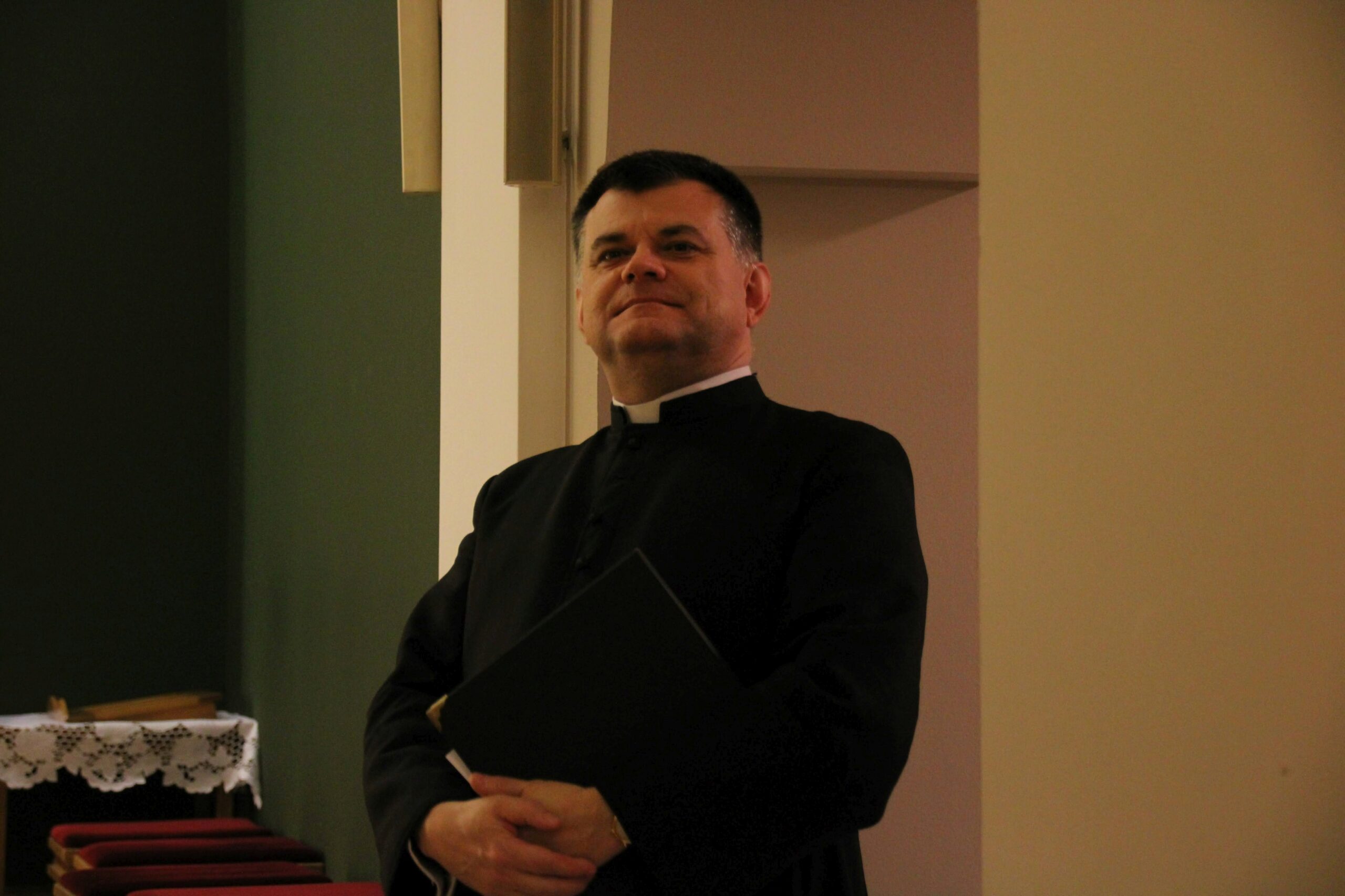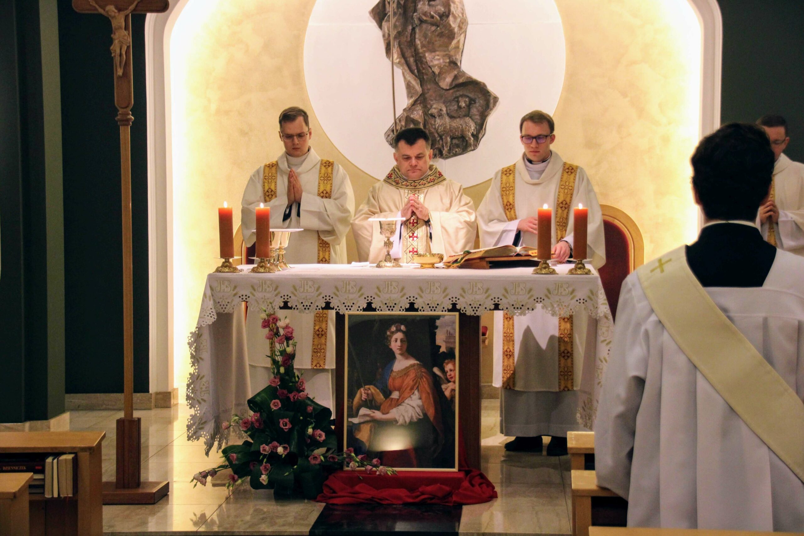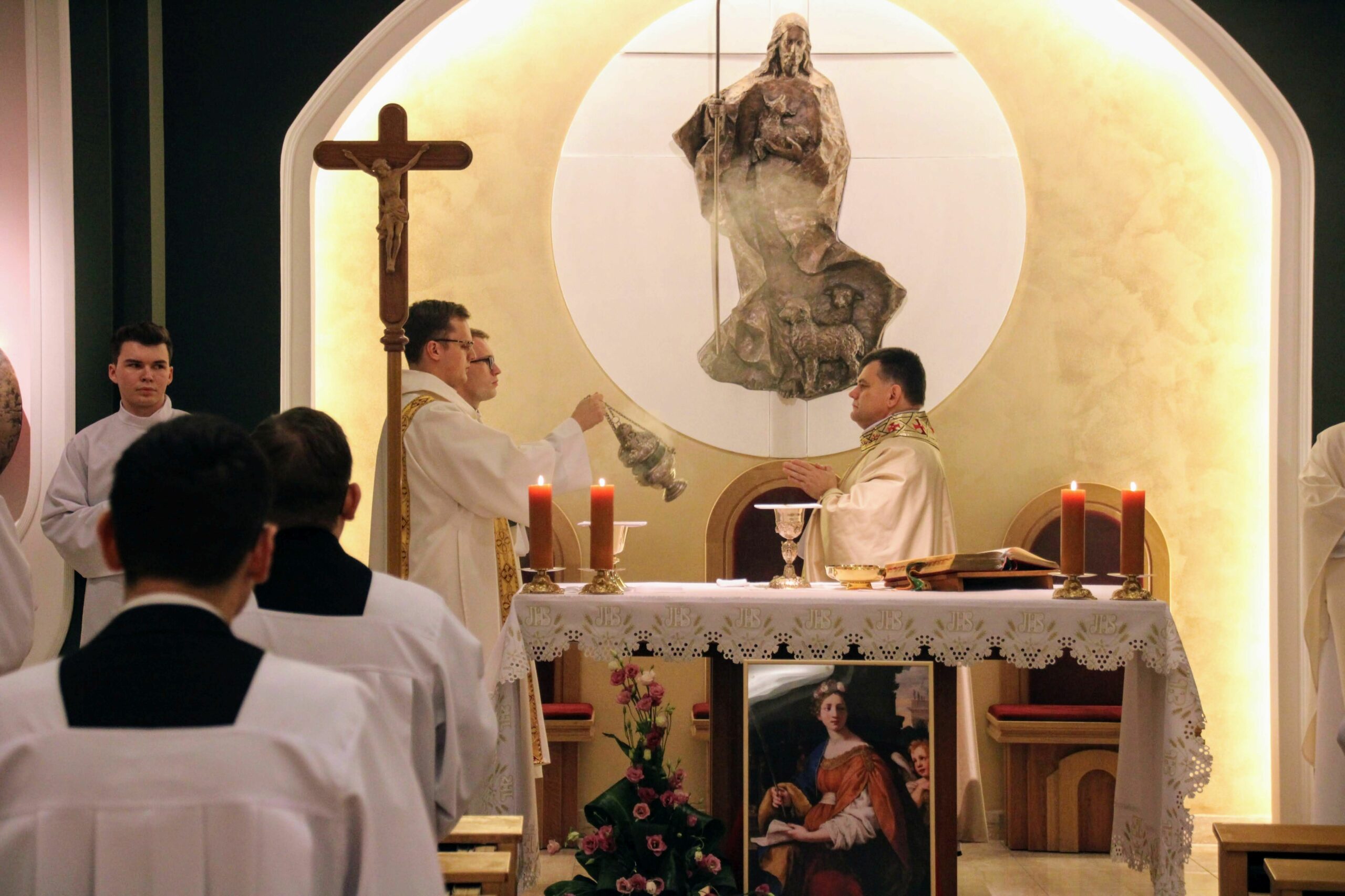 W tygodniu, w którym przypada wspomnienie św. Cecylii, dziewicy i męczennicy, tradycyjnie czwartkowym gościem był ksiądz doktor habilitowany Mariusz Białkowski. Naszego gościa nie trzeba było jednak nikomu przedstawiać, ponieważ od wielu już lat jest on wykładowcą na Wydziale Teologicznym UAM oraz w Seminarium – prowadzi zajęcia wspólnego śpiewu dla alumnów w środowe wieczory, a także pracuje z naszą seminaryjną scholą „Inclina aurem”. Przewodniczył on uroczystej Eucharystii w kaplicy pw. Chrystusa Dobrego Pasterza, na początku której ksiądz rektor Jan Frąckowiak przypomniał również wiele innych ważnych funkcji, jakie sprawuje ksiądz profesor – między innymi kierownika Zakładu Muzyki Kościelnej w Akademii Muzycznej im. Ignacego Jana Paderewskiego w Poznaniu. W swojej homilii ks. Mariusz przypomniał nam historię życia świętej Cecylii i jej trzydniowej agonii, mówił o świadectwie pierwszych chrześcijan, prześladowanych za wiarę w Boga, a nie w cesarza, zwracając także uwagę na możliwości dawania świadectwa o Chrystusie przez nas samych.