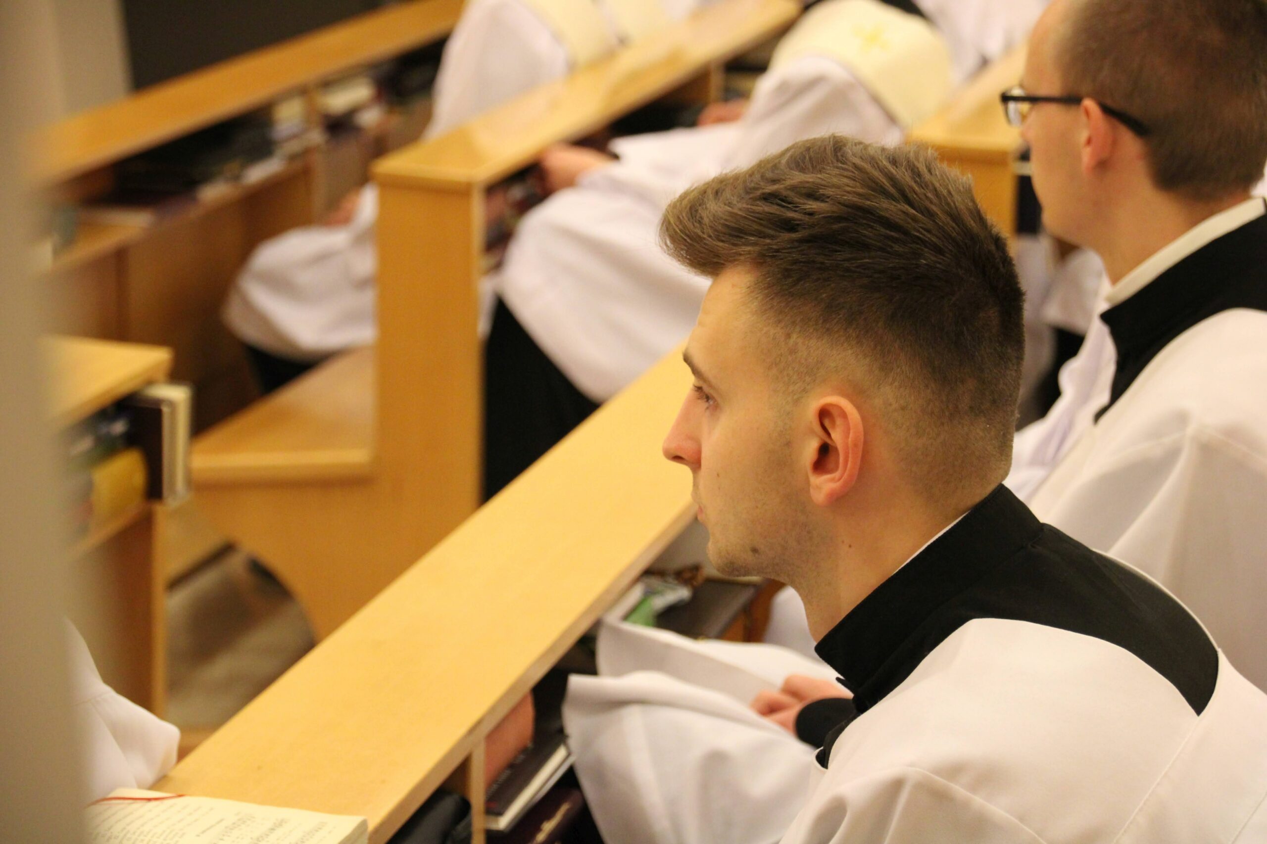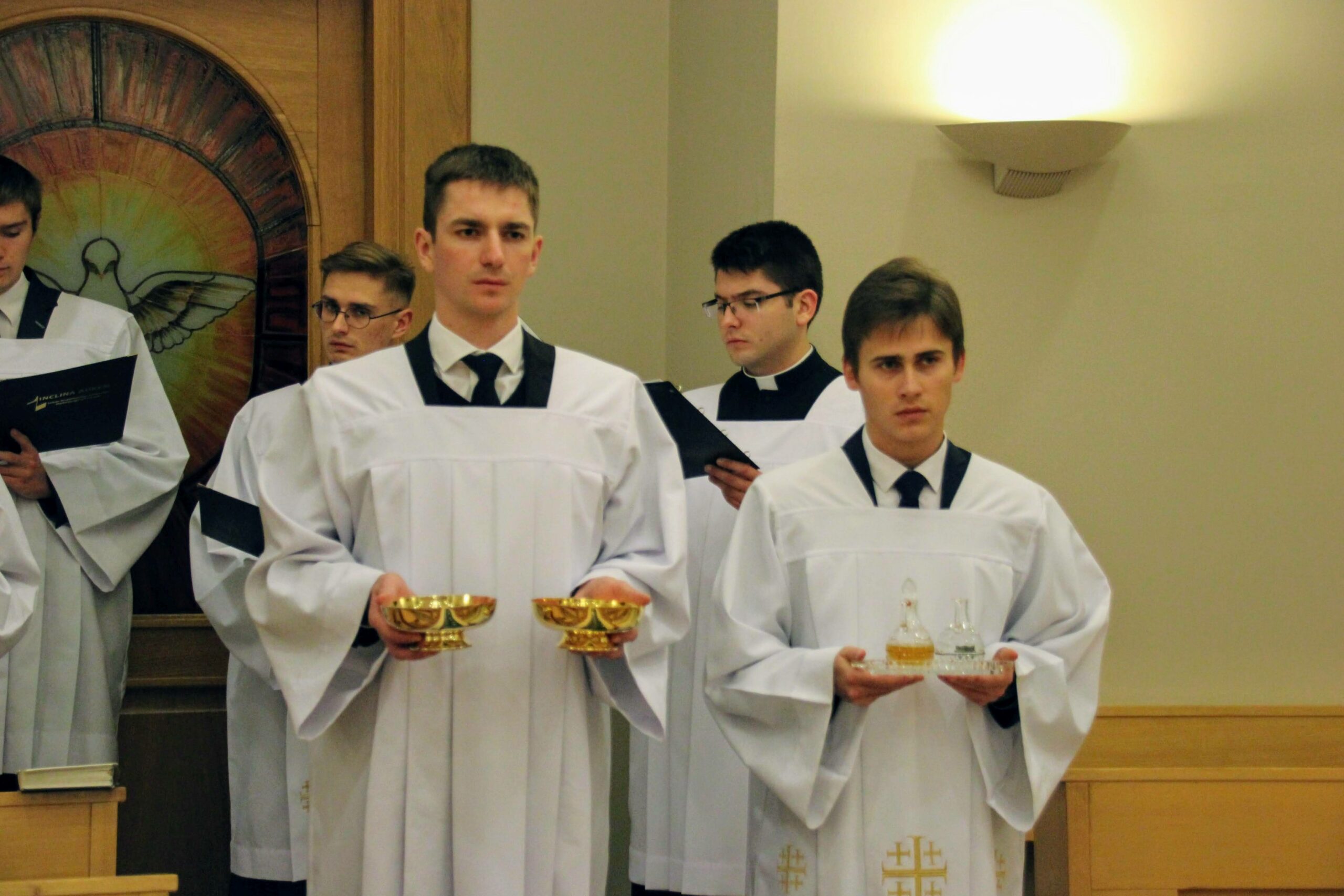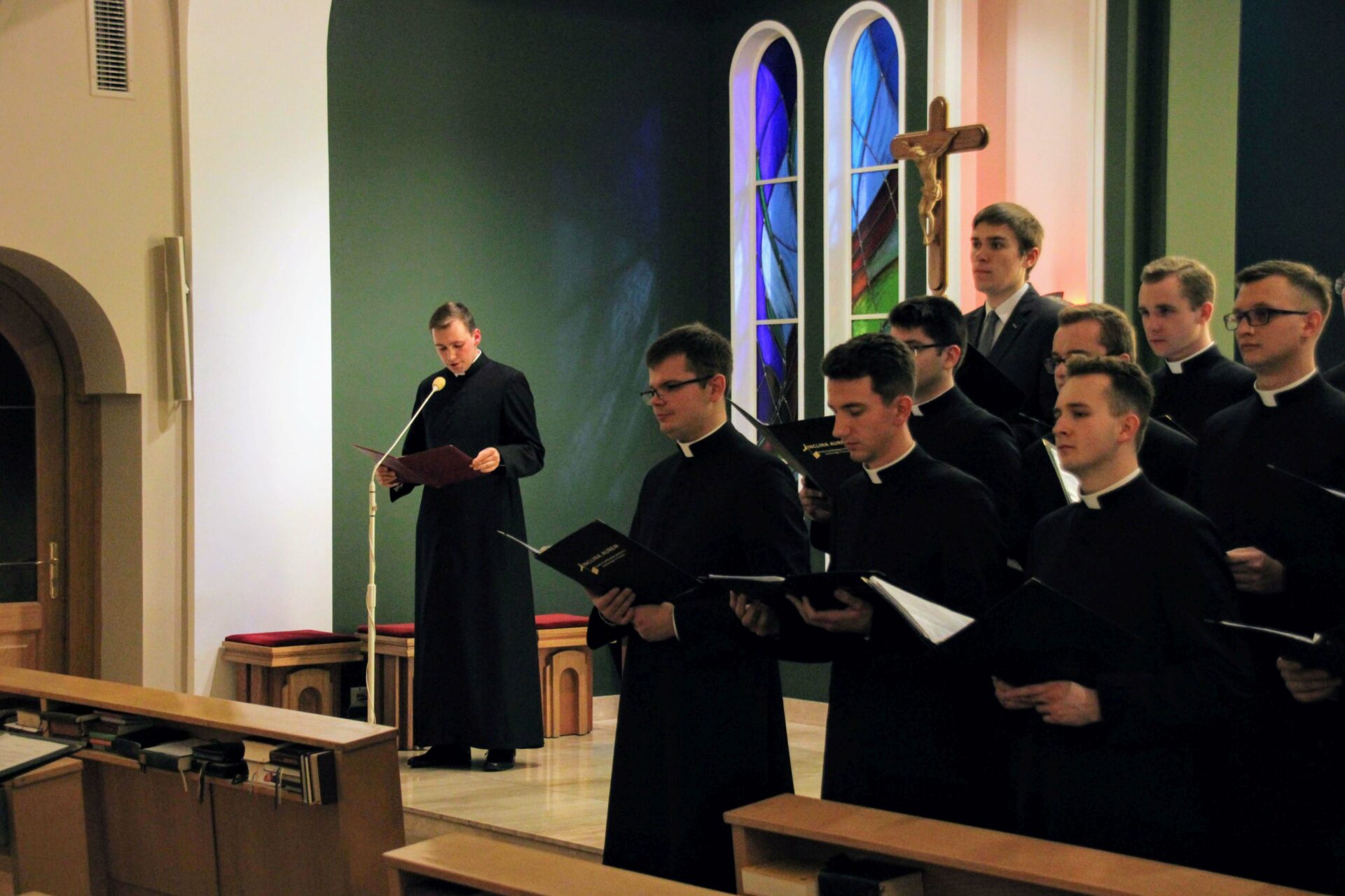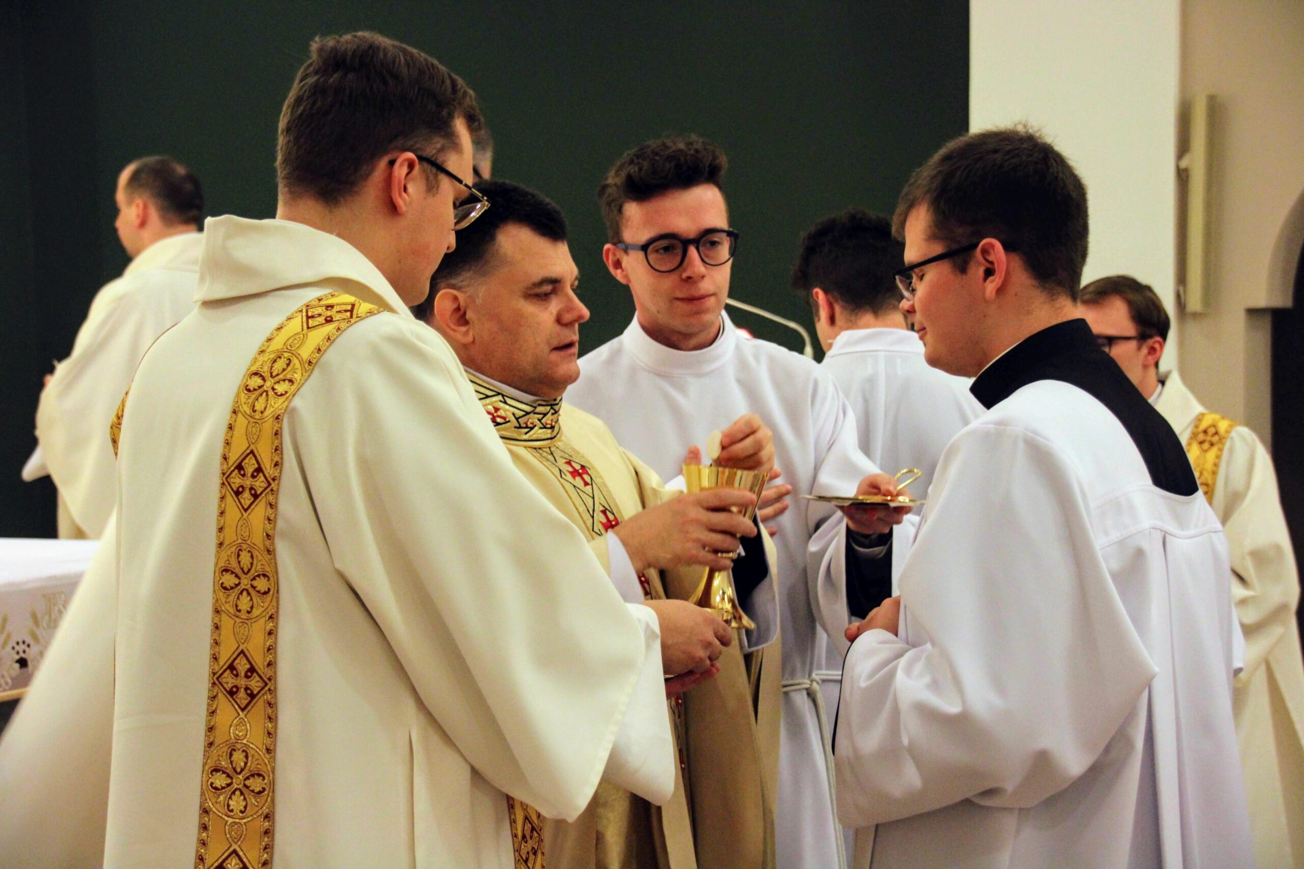 W tygodniu, w którym przypada wspomnienie św. Cecylii, dziewicy i męczennicy, tradycyjnie czwartkowym gościem był ksiądz doktor habilitowany Mariusz Białkowski. Naszego gościa nie trzeba było jednak nikomu przedstawiać, ponieważ od wielu już lat jest on wykładowcą na Wydziale Teologicznym UAM oraz w Seminarium – prowadzi zajęcia wspólnego śpiewu dla alumnów w środowe wieczory, a także pracuje z naszą seminaryjną scholą „Inclina aurem”. Przewodniczył on uroczystej Eucharystii w kaplicy pw. Chrystusa Dobrego Pasterza, na początku której ksiądz rektor Jan Frąckowiak przypomniał również wiele innych ważnych funkcji, jakie sprawuje ksiądz profesor – między innymi kierownika Zakładu Muzyki Kościelnej w Akademii Muzycznej im. Ignacego Jana Paderewskiego w Poznaniu. W swojej homilii ks. Mariusz przypomniał nam historię życia świętej Cecylii i jej trzydniowej agonii, mówił o świadectwie pierwszych chrześcijan, prześladowanych za wiarę w Boga, a nie w cesarza, zwracając także uwagę na możliwości dawania świadectwa o Chrystusie przez nas samych.