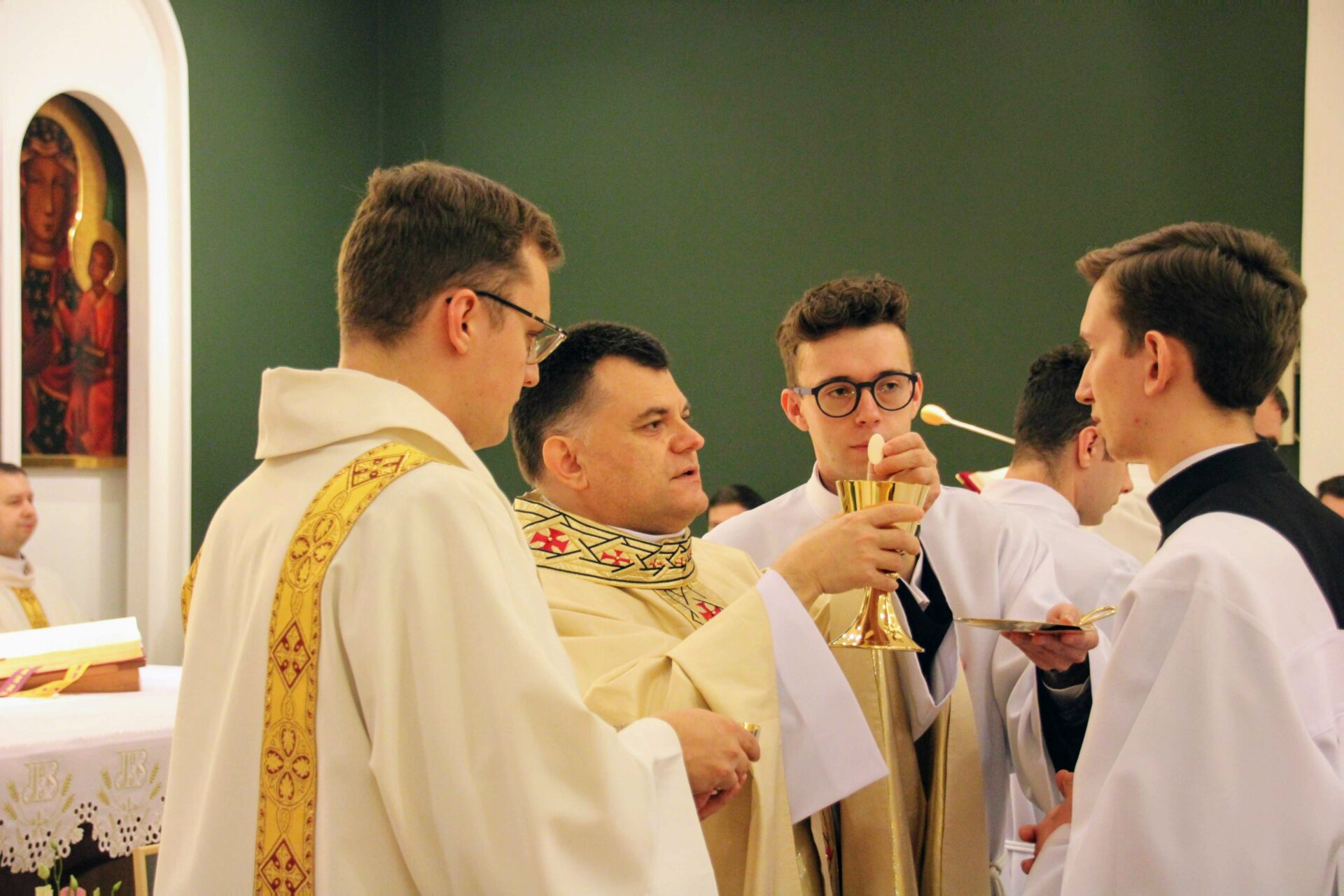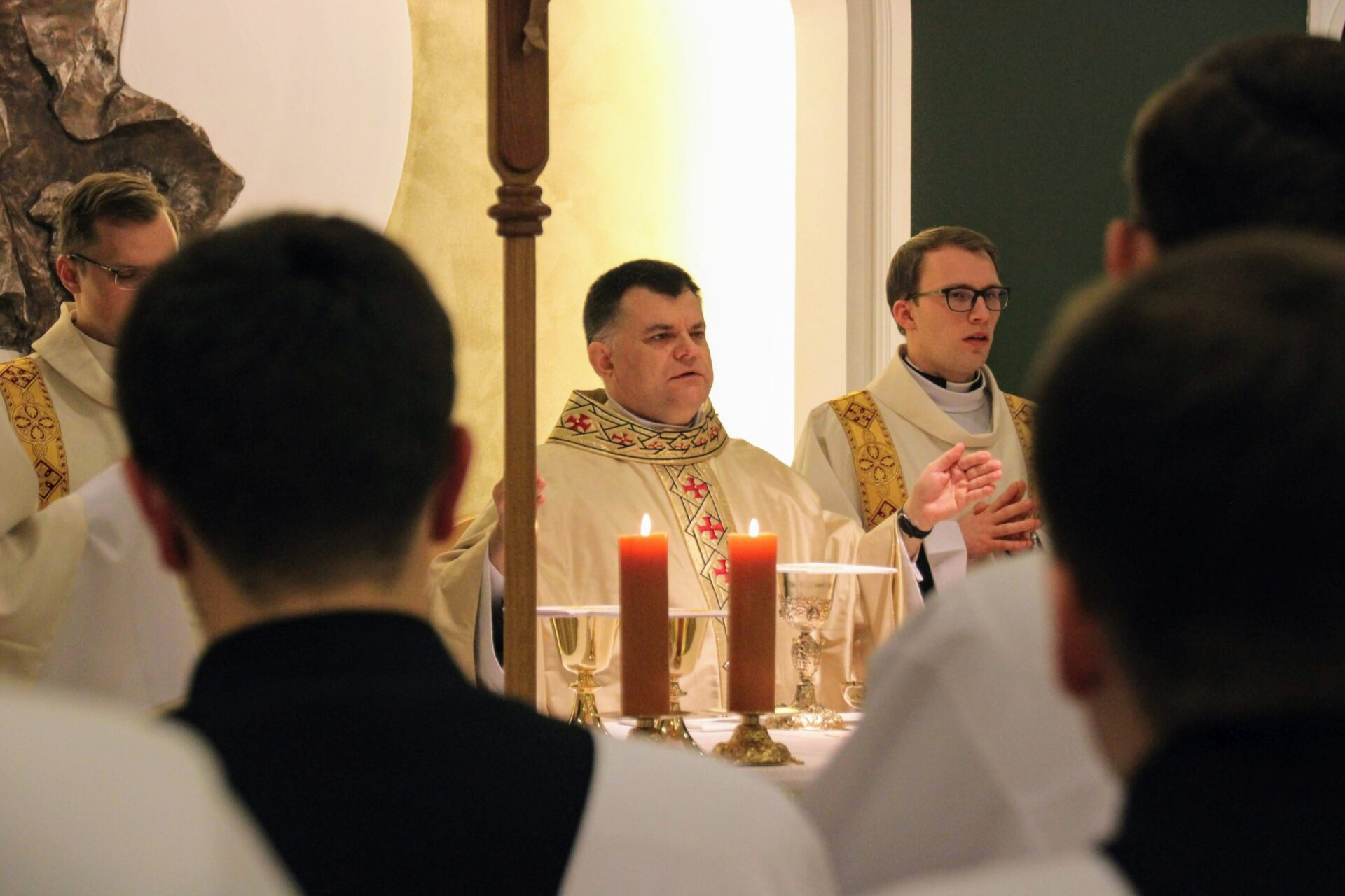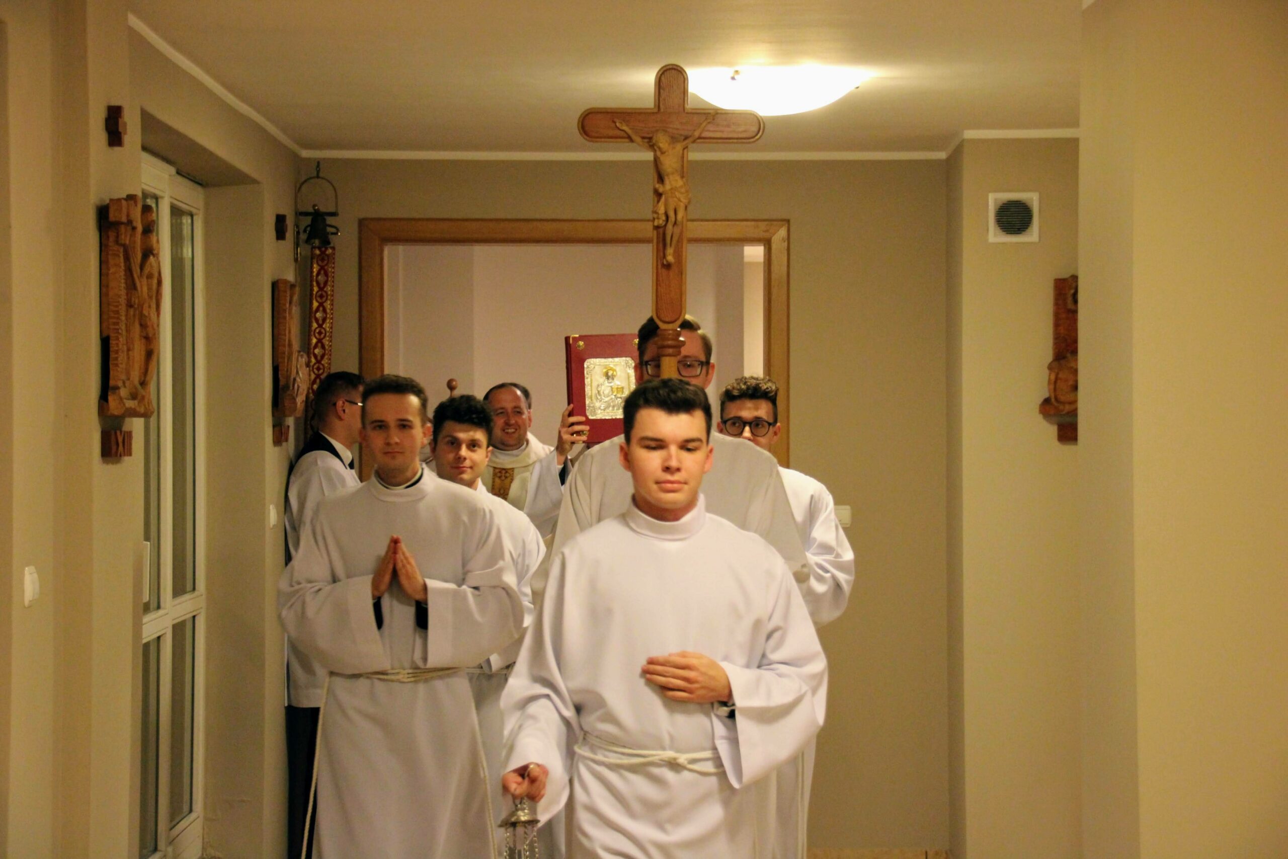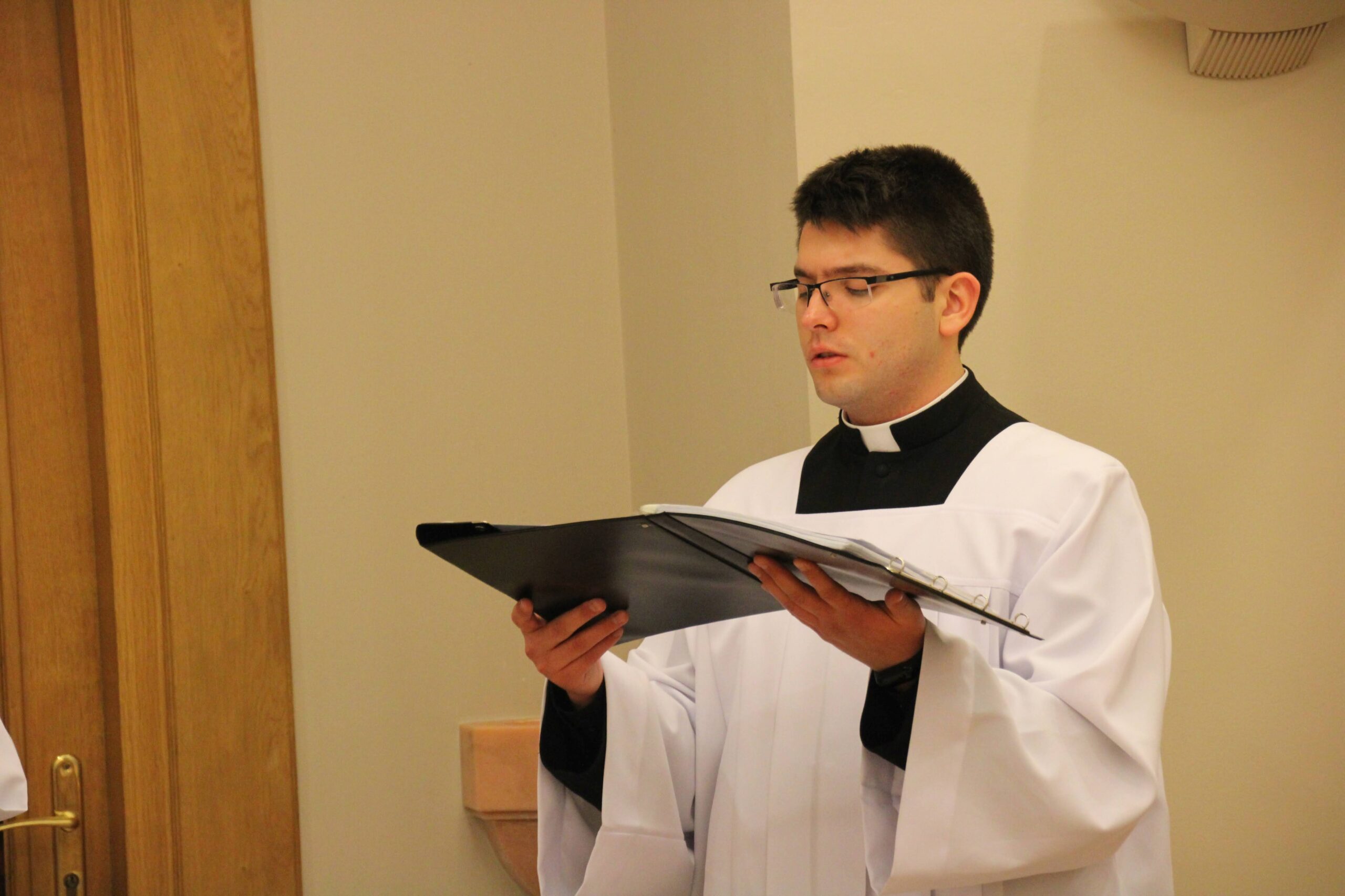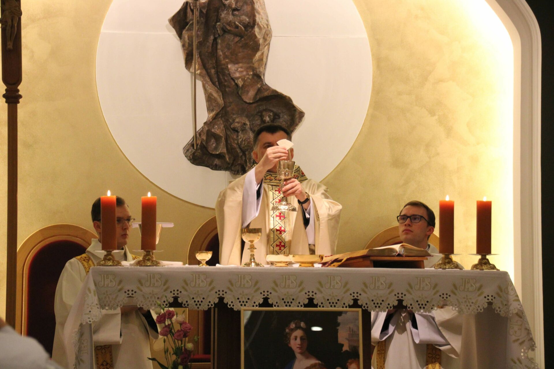 W tygodniu, w którym przypada wspomnienie św. Cecylii, dziewicy i męczennicy, tradycyjnie czwartkowym gościem był ksiądz doktor habilitowany Mariusz Białkowski. Naszego gościa nie trzeba było jednak nikomu przedstawiać, ponieważ od wielu już lat jest on wykładowcą na Wydziale Teologicznym UAM oraz w Seminarium – prowadzi zajęcia wspólnego śpiewu dla alumnów w środowe wieczory, a także pracuje z naszą seminaryjną scholą „Inclina aurem”. Przewodniczył on uroczystej Eucharystii w kaplicy pw. Chrystusa Dobrego Pasterza, na początku której ksiądz rektor Jan Frąckowiak przypomniał również wiele innych ważnych funkcji, jakie sprawuje ksiądz profesor – między innymi kierownika Zakładu Muzyki Kościelnej w Akademii Muzycznej im. Ignacego Jana Paderewskiego w Poznaniu. W swojej homilii ks. Mariusz przypomniał nam historię życia świętej Cecylii i jej trzydniowej agonii, mówił o świadectwie pierwszych chrześcijan, prześladowanych za wiarę w Boga, a nie w cesarza, zwracając także uwagę na możliwości dawania świadectwa o Chrystusie przez nas samych.