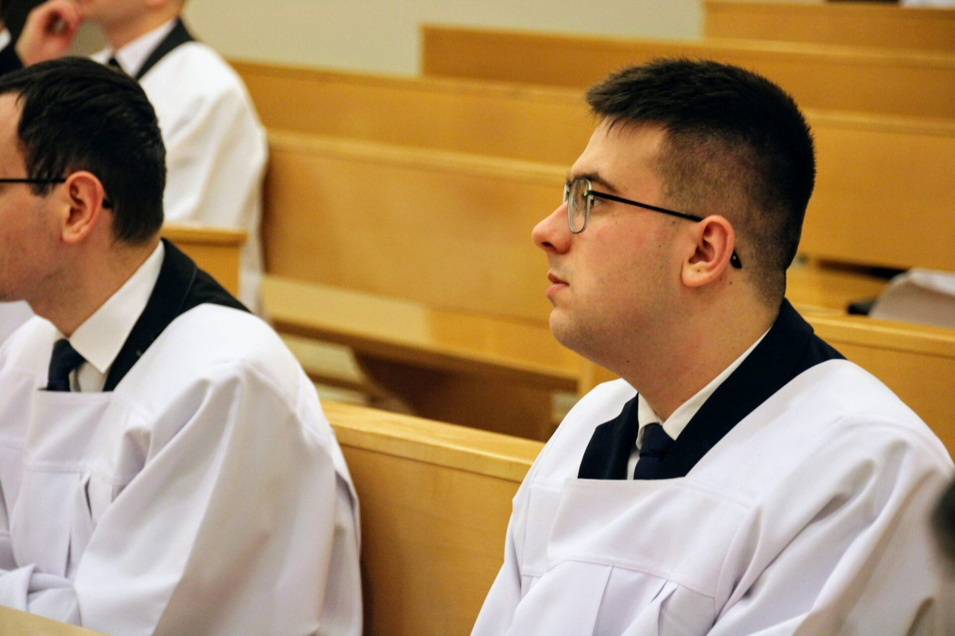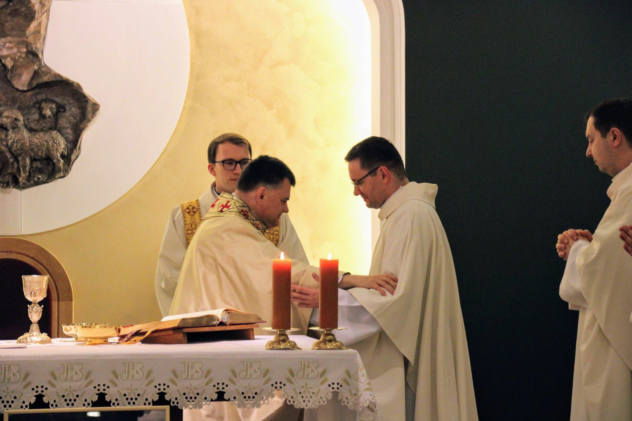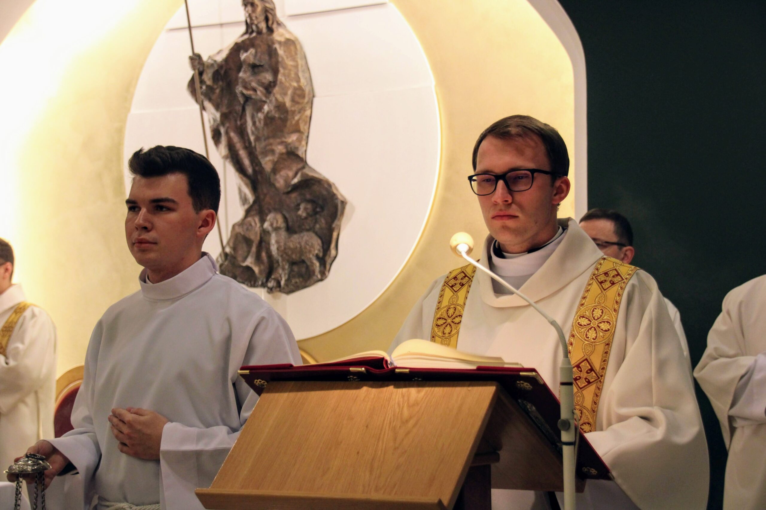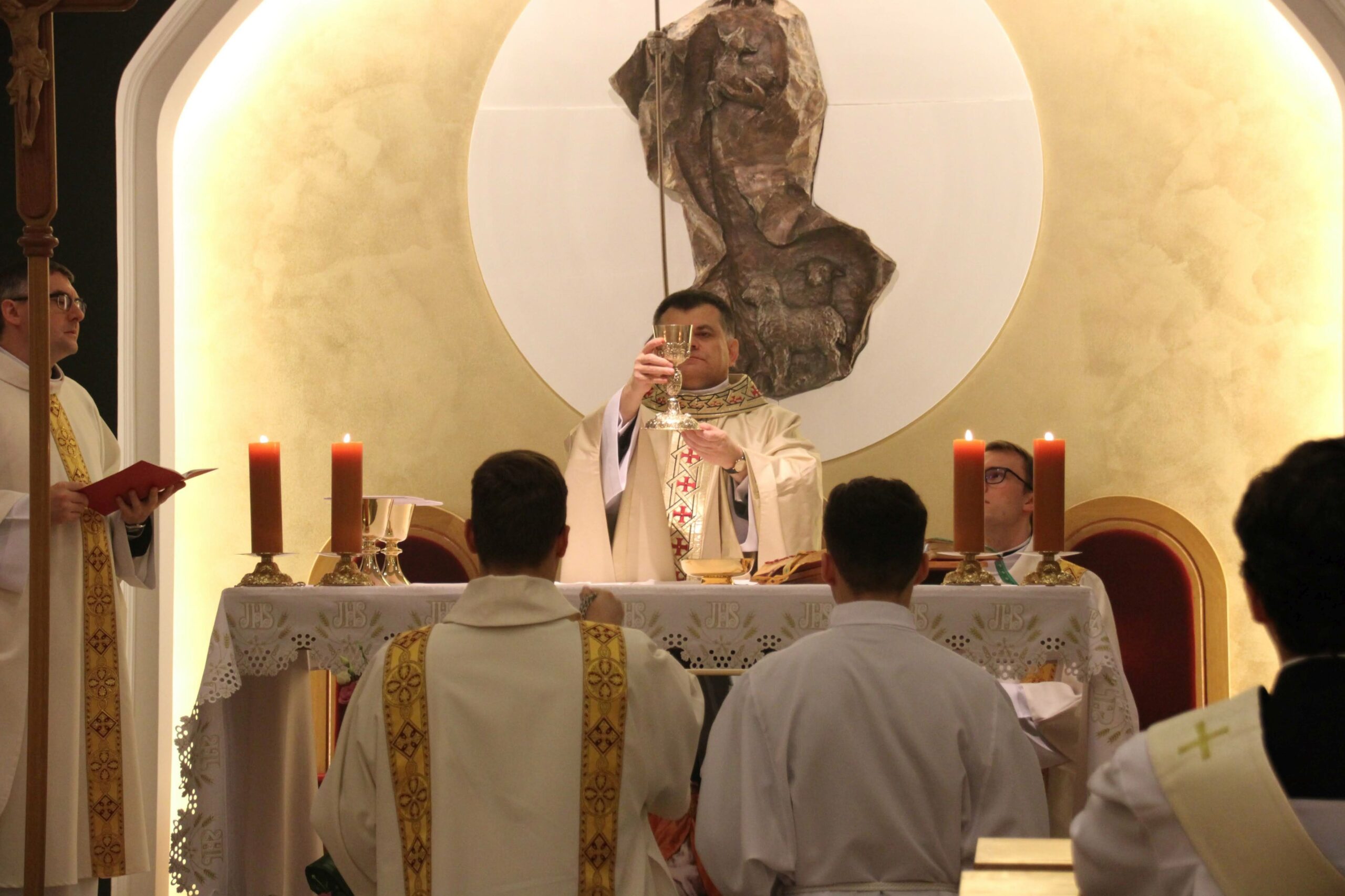 W tygodniu, w którym przypada wspomnienie św. Cecylii, dziewicy i męczennicy, tradycyjnie czwartkowym gościem był ksiądz doktor habilitowany Mariusz Białkowski. Naszego gościa nie trzeba było jednak nikomu przedstawiać, ponieważ od wielu już lat jest on wykładowcą na Wydziale Teologicznym UAM oraz w Seminarium – prowadzi zajęcia wspólnego śpiewu dla alumnów w środowe wieczory, a także pracuje z naszą seminaryjną scholą „Inclina aurem”. Przewodniczył on uroczystej Eucharystii w kaplicy pw. Chrystusa Dobrego Pasterza, na początku której ksiądz rektor Jan Frąckowiak przypomniał również wiele innych ważnych funkcji, jakie sprawuje ksiądz profesor – między innymi kierownika Zakładu Muzyki Kościelnej w Akademii Muzycznej im. Ignacego Jana Paderewskiego w Poznaniu. W swojej homilii ks. Mariusz przypomniał nam historię życia świętej Cecylii i jej trzydniowej agonii, mówił o świadectwie pierwszych chrześcijan, prześladowanych za wiarę w Boga, a nie w cesarza, zwracając także uwagę na możliwości dawania świadectwa o Chrystusie przez nas samych.