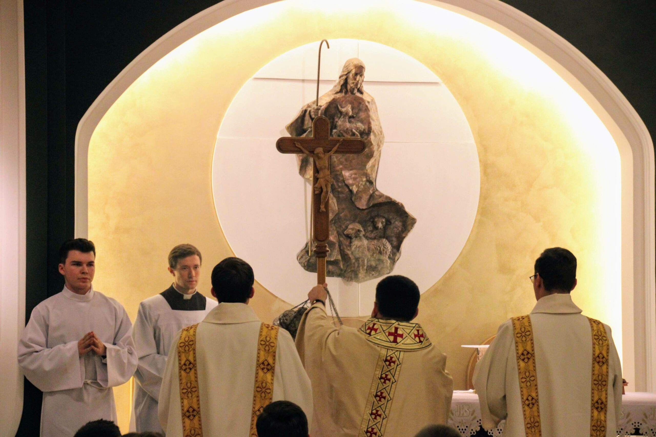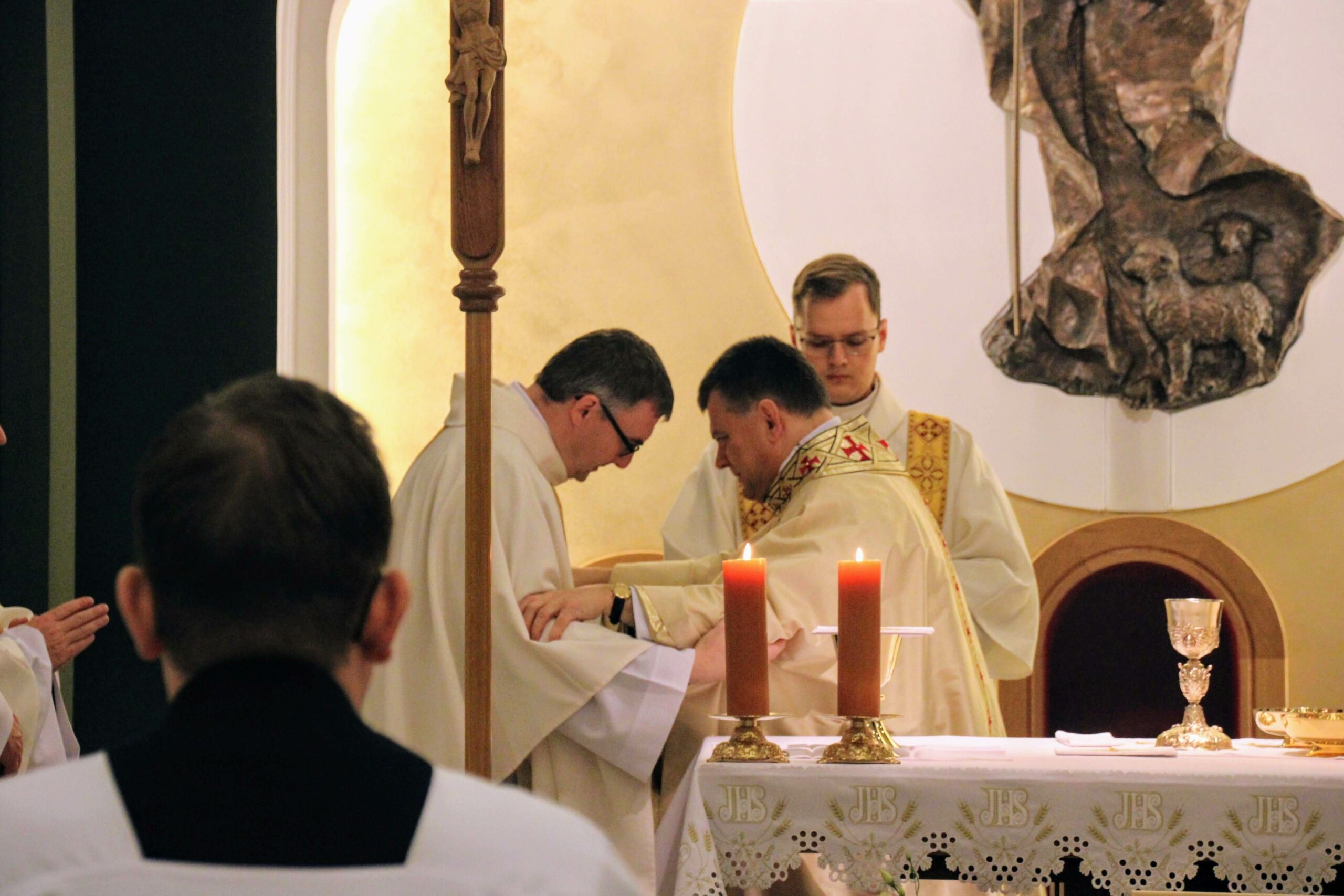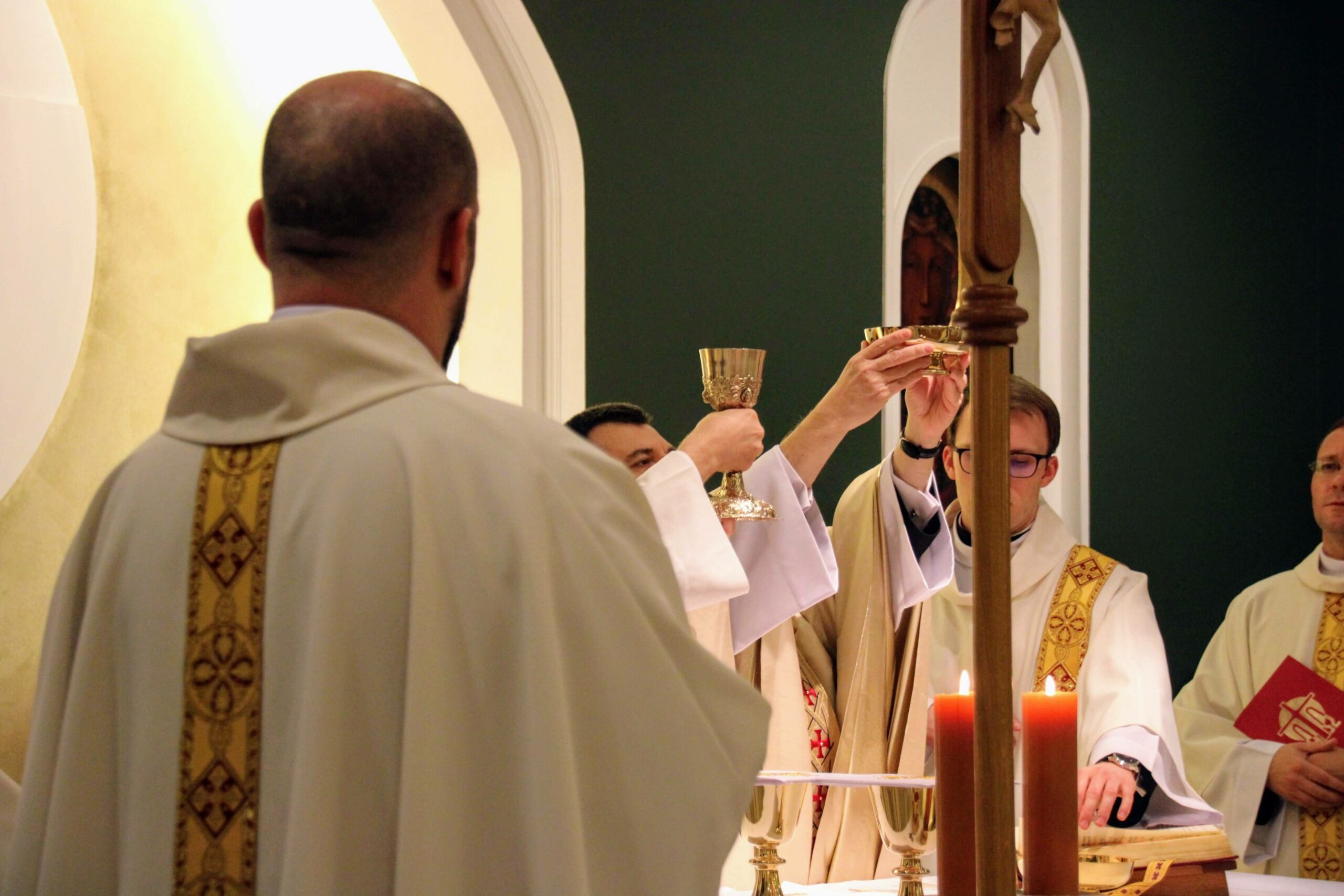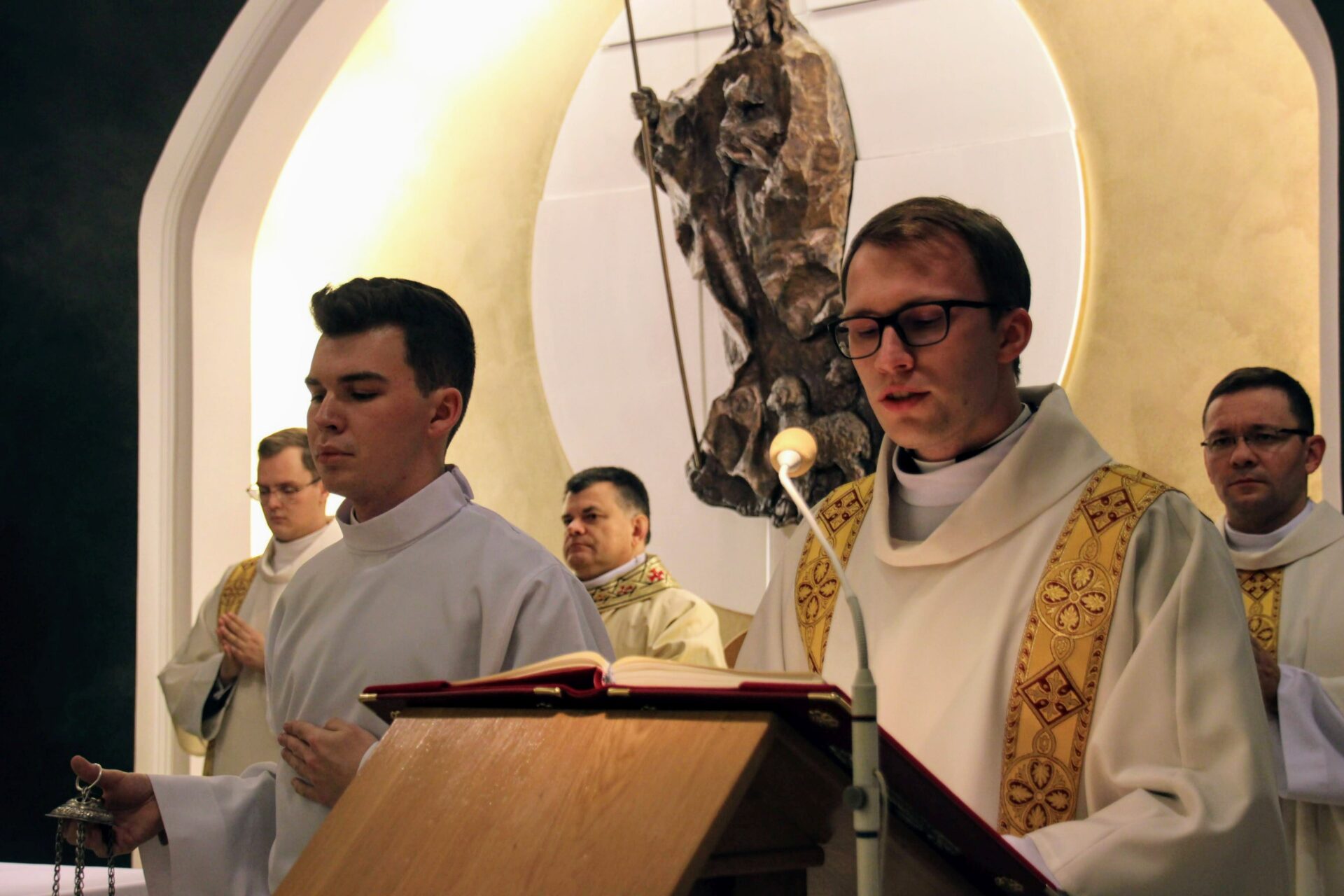 W tygodniu, w którym przypada wspomnienie św. Cecylii, dziewicy i męczennicy, tradycyjnie czwartkowym gościem był ksiądz doktor habilitowany Mariusz Białkowski. Naszego gościa nie trzeba było jednak nikomu przedstawiać, ponieważ od wielu już lat jest on wykładowcą na Wydziale Teologicznym UAM oraz w Seminarium – prowadzi zajęcia wspólnego śpiewu dla alumnów w środowe wieczory, a także pracuje z naszą seminaryjną scholą „Inclina aurem”. Przewodniczył on uroczystej Eucharystii w kaplicy pw. Chrystusa Dobrego Pasterza, na początku której ksiądz rektor Jan Frąckowiak przypomniał również wiele innych ważnych funkcji, jakie sprawuje ksiądz profesor – między innymi kierownika Zakładu Muzyki Kościelnej w Akademii Muzycznej im. Ignacego Jana Paderewskiego w Poznaniu. W swojej homilii ks. Mariusz przypomniał nam historię życia świętej Cecylii i jej trzydniowej agonii, mówił o świadectwie pierwszych chrześcijan, prześladowanych za wiarę w Boga, a nie w cesarza, zwracając także uwagę na możliwości dawania świadectwa o Chrystusie przez nas samych.
