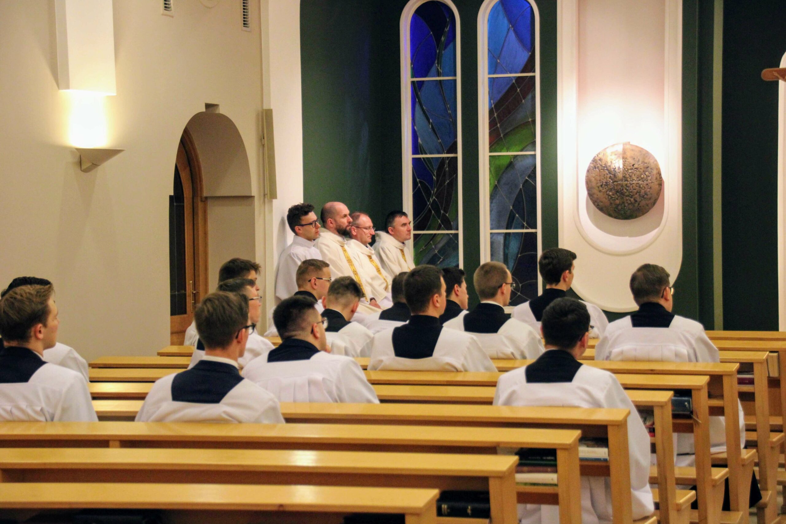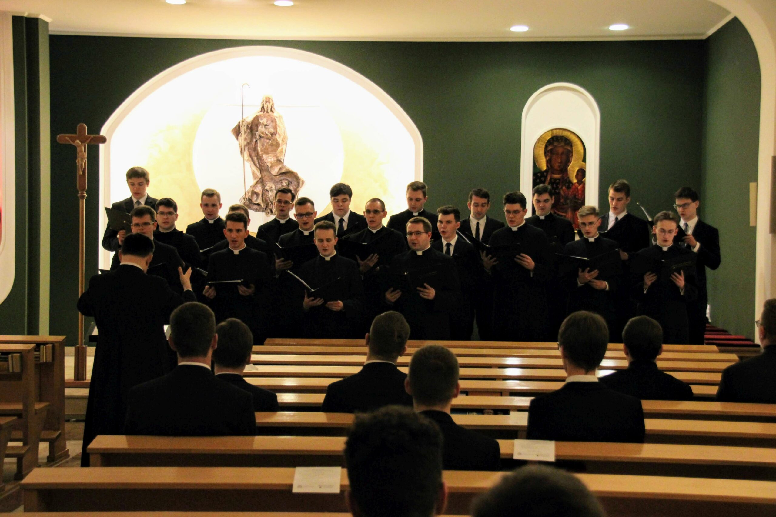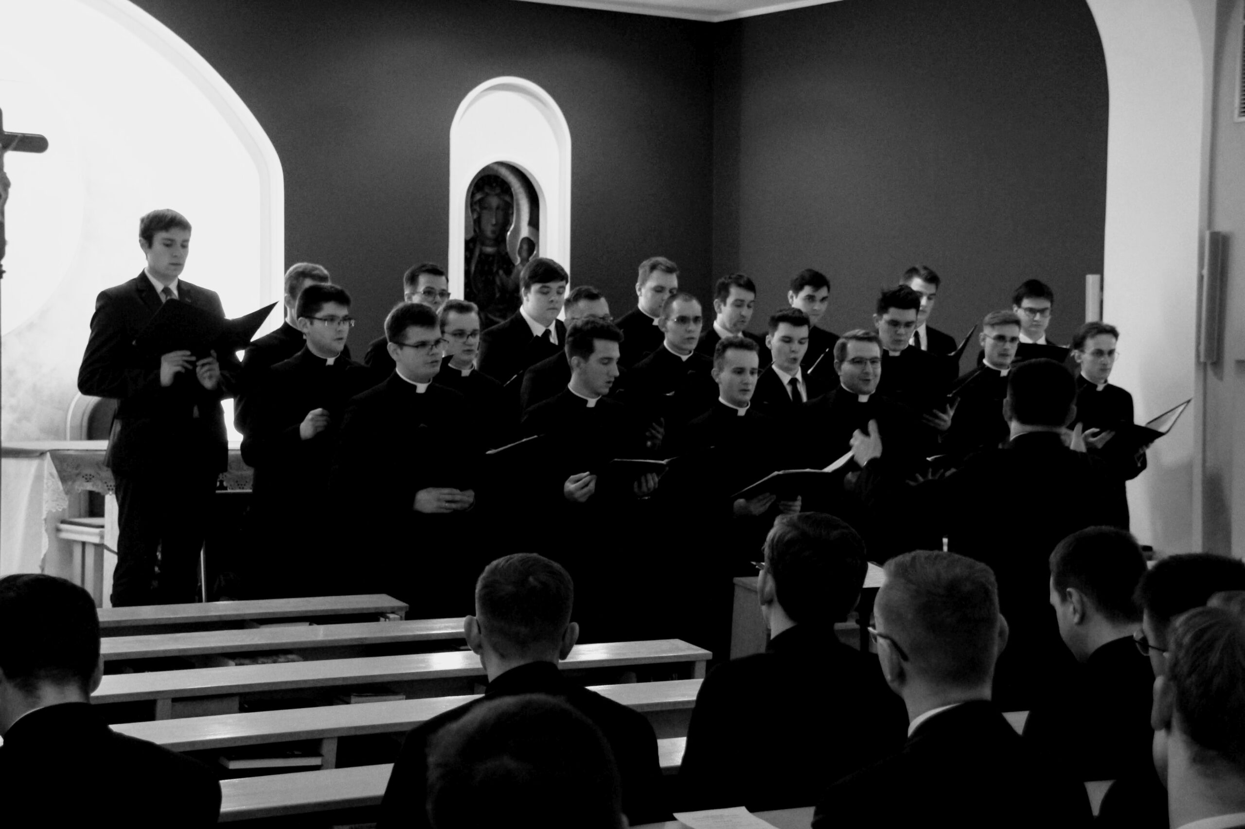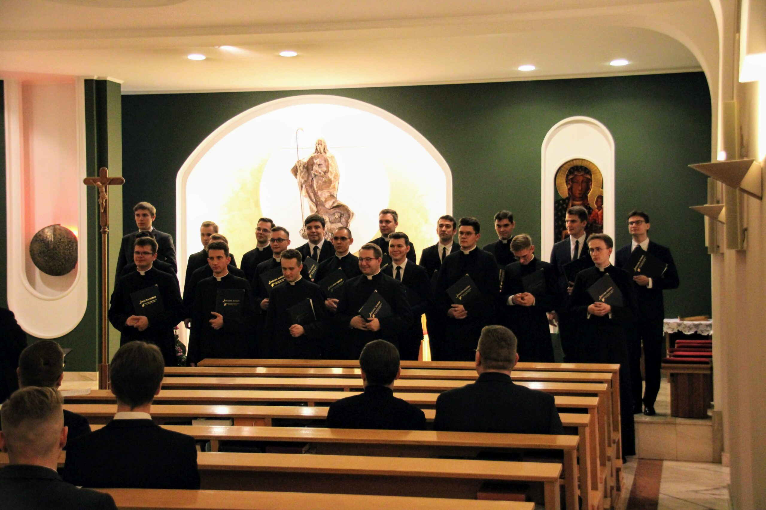 Po Eucharystii i wspólnej kolacji ponownie zebraliśmy się w seminaryjnej kaplicy, aby wysłuchać koncertu pt. „Spes nostra salve” w wykonaniu scholi „Inclina aurem”, która przygotowywała się pod czujnym okiem księdza profesora Białkowskiego oraz kleryka kantora. Wybór pieśni, odwołujących się do kultu maryjnego, związany był z kończącą się już peregrynacją obrazu Matki Bożej Częstochowskiej w archidiecezji poznańskiej.