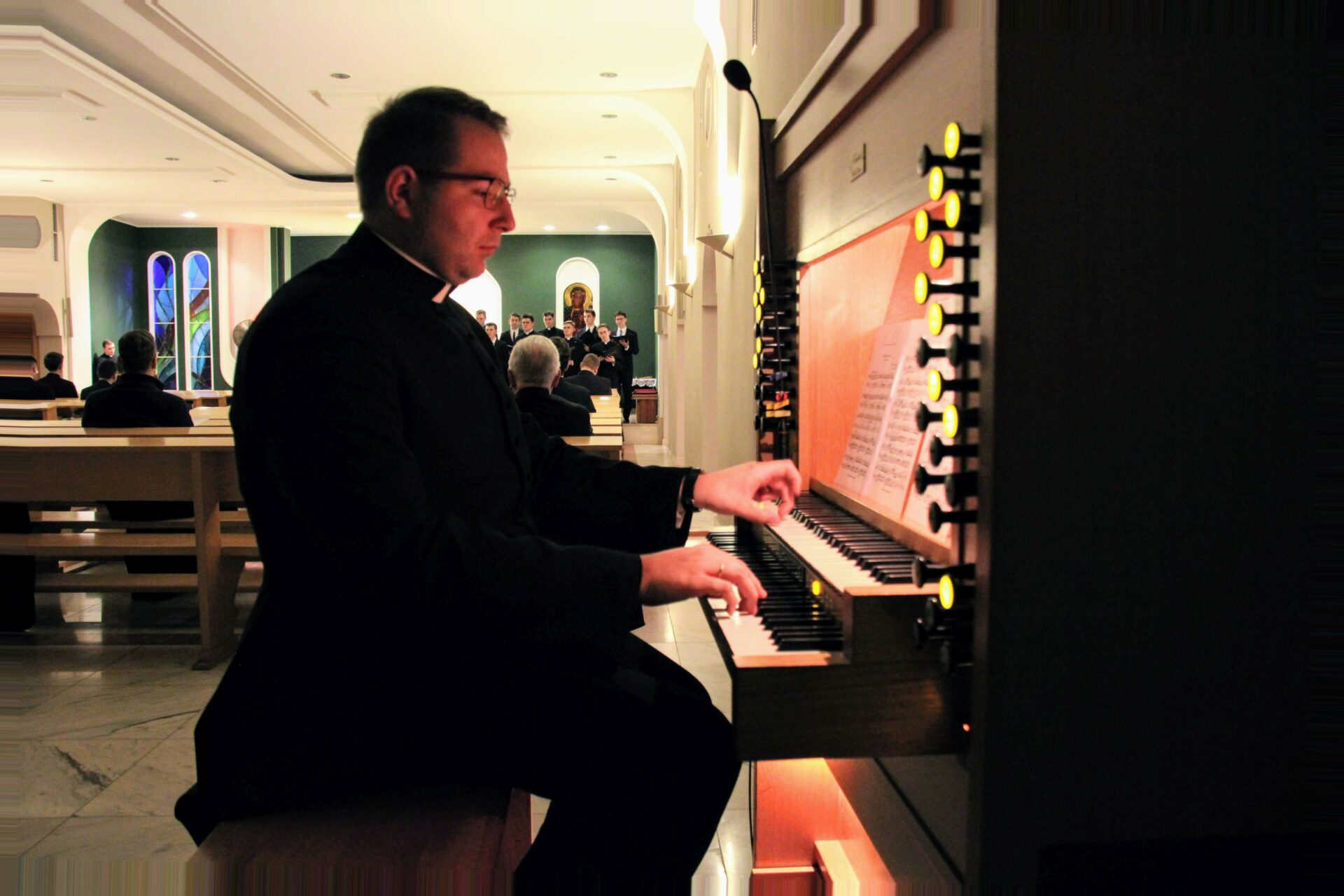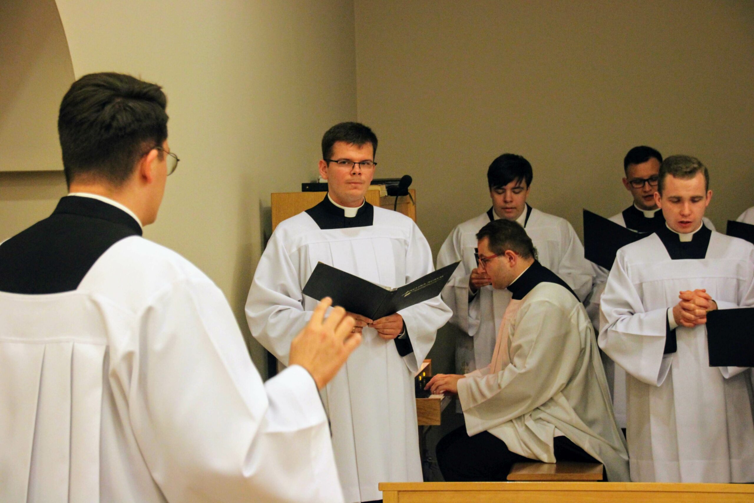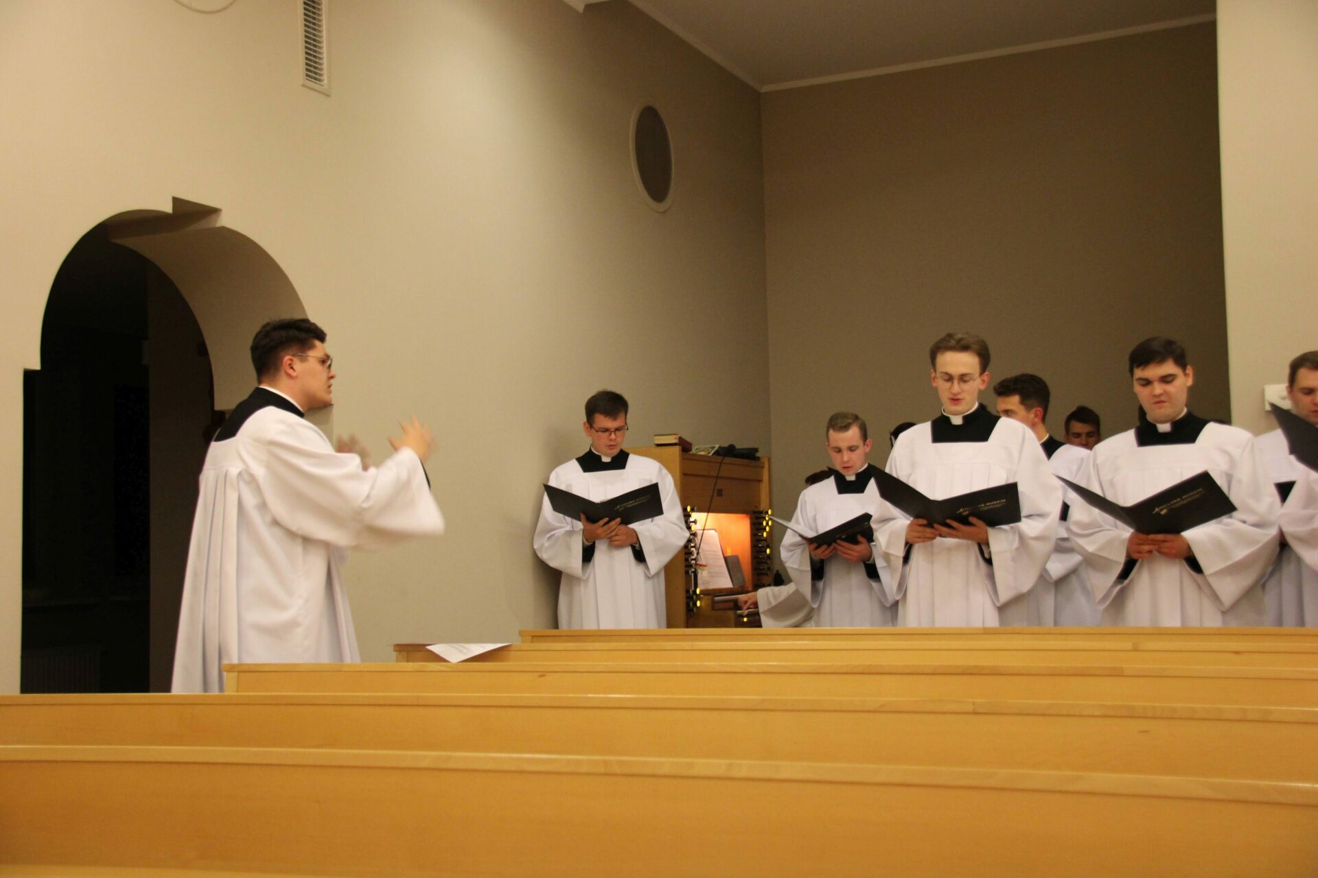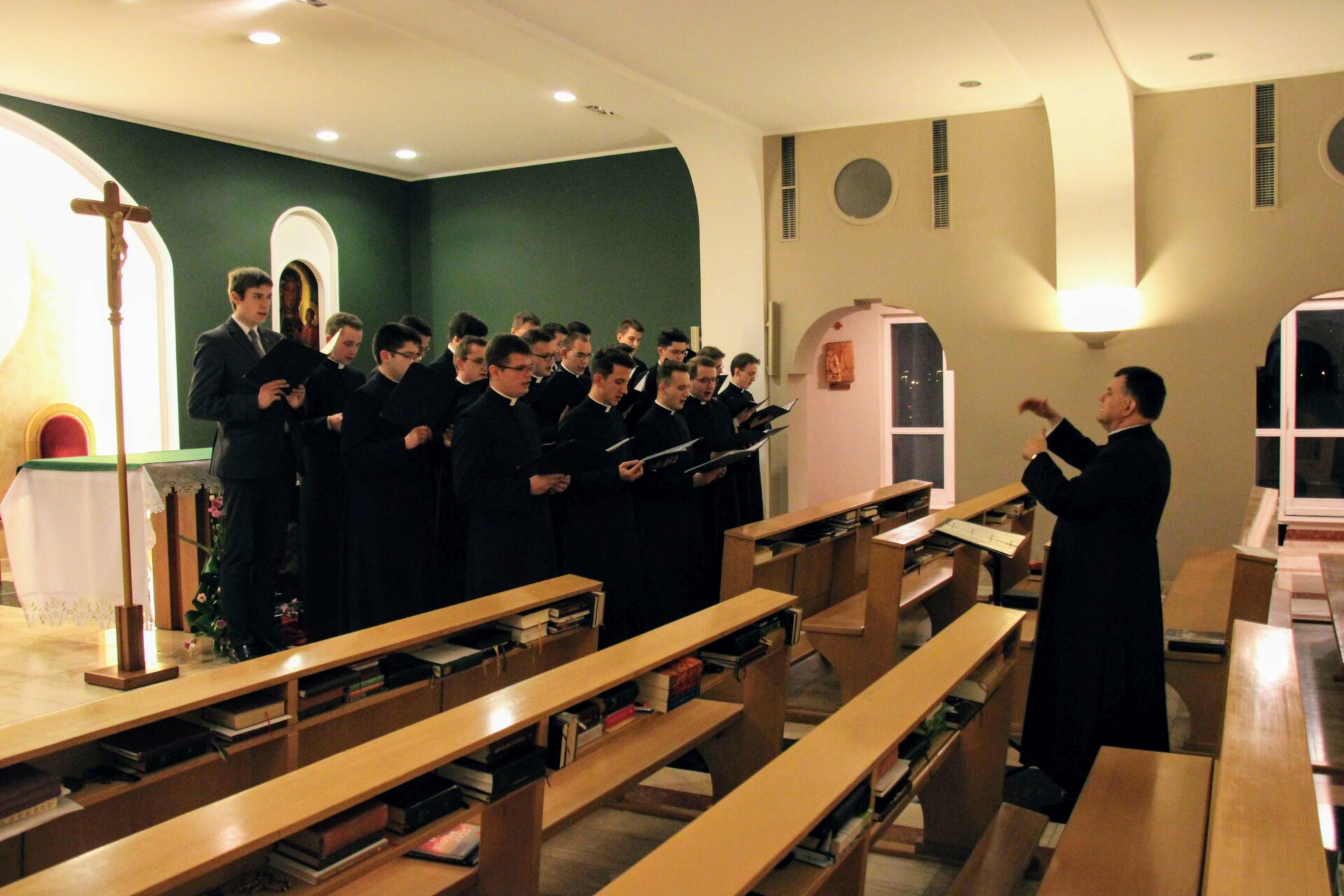 Po Eucharystii i wspólnej kolacji ponownie zebraliśmy się w seminaryjnej kaplicy, aby wysłuchać koncertu pt. „Spes nostra salve” w wykonaniu scholi „Inclina aurem”, która przygotowywała się pod czujnym okiem księdza profesora Białkowskiego oraz kleryka kantora. Wybór pieśni, odwołujących się do kultu maryjnego, związany był z kończącą się już peregrynacją obrazu Matki Bożej Częstochowskiej w archidiecezji poznańskiej.
