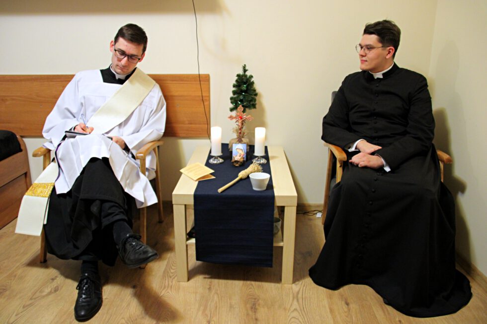 Kolęda w wielu domach to czas związany nie tylko z odwiedzinami księdza, ale również wspólną, rodzinną modlitwą i poświęceniem miejsca, które jest nam szczególnie bliskie. W tym roku w wielu domostwach zabraknie tego wymiaru wyrażania wiary. Pomimo ograniczeń i nietypowej sytuacji udało się w naszym domu zorganizować wspomnianą kolędę. Seminaryjne pokoje odwiedzili diakoni, którzy przy śpiewie kolęd i pastorałek modlili się razem z mieszkańcami za Kościół, o nowe powołania i rodziny, z których pochodzimy. Nie zabrakło prośby o Boże błogosławieństwo i pokropienia pokoi.