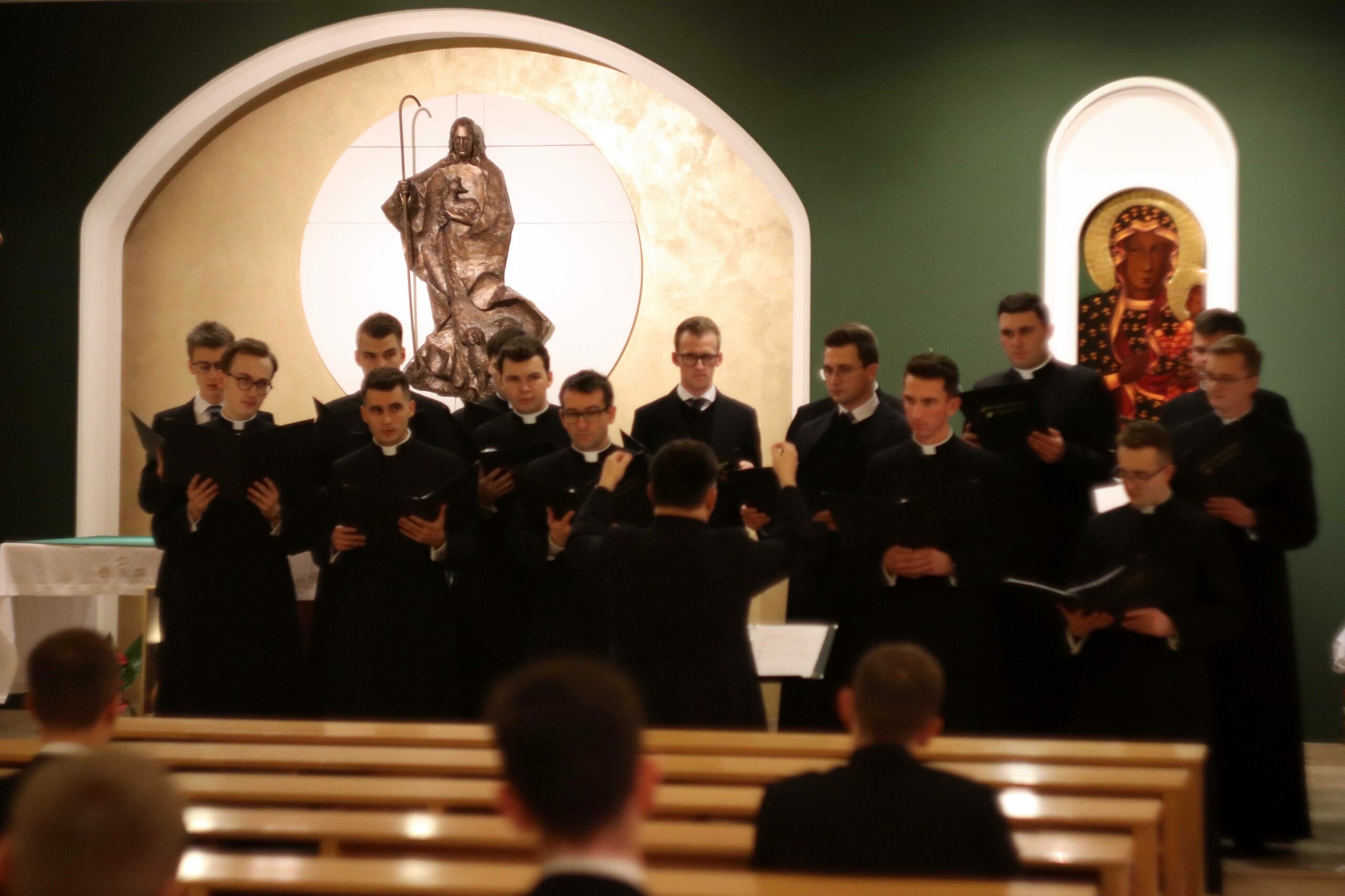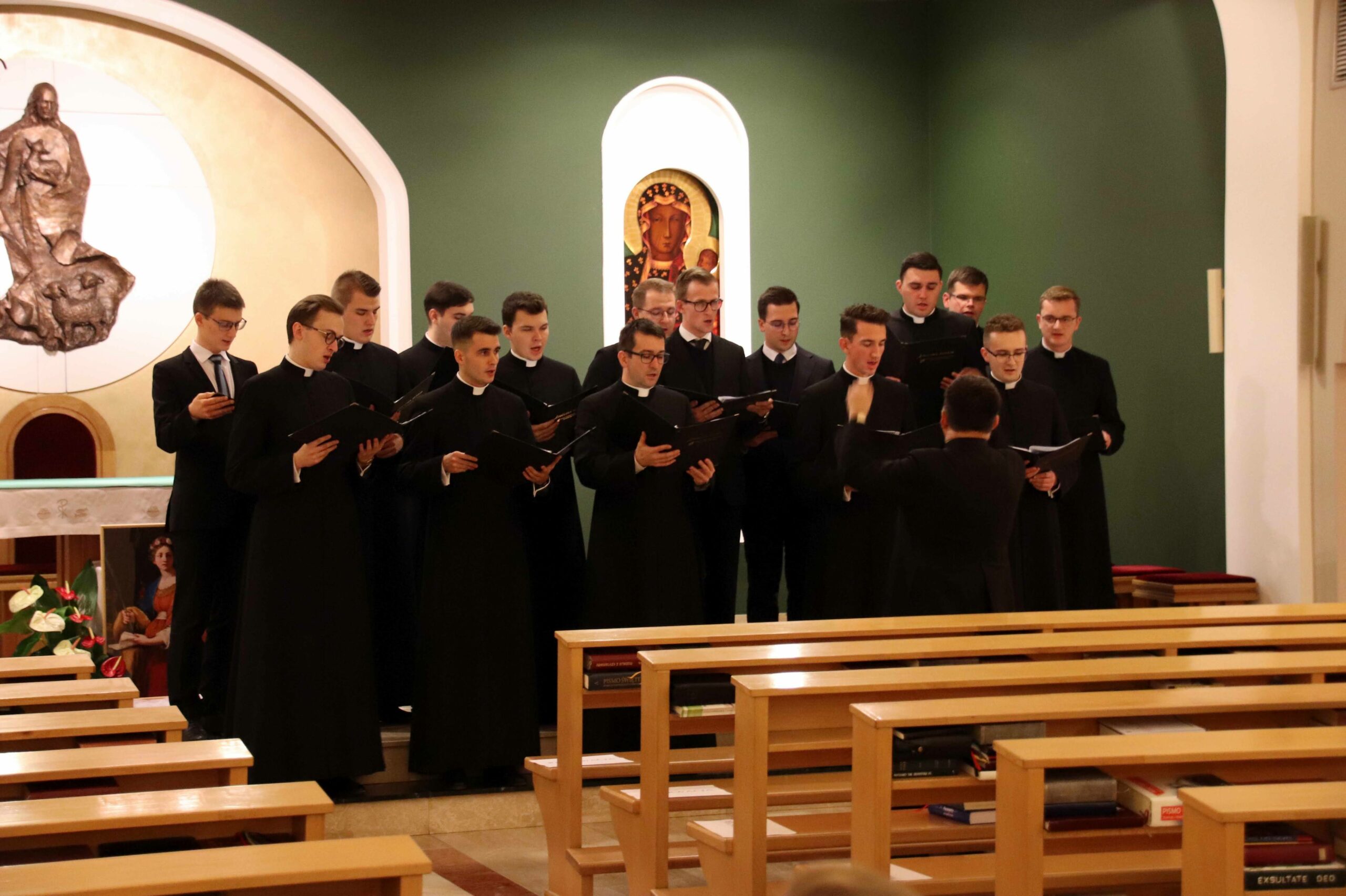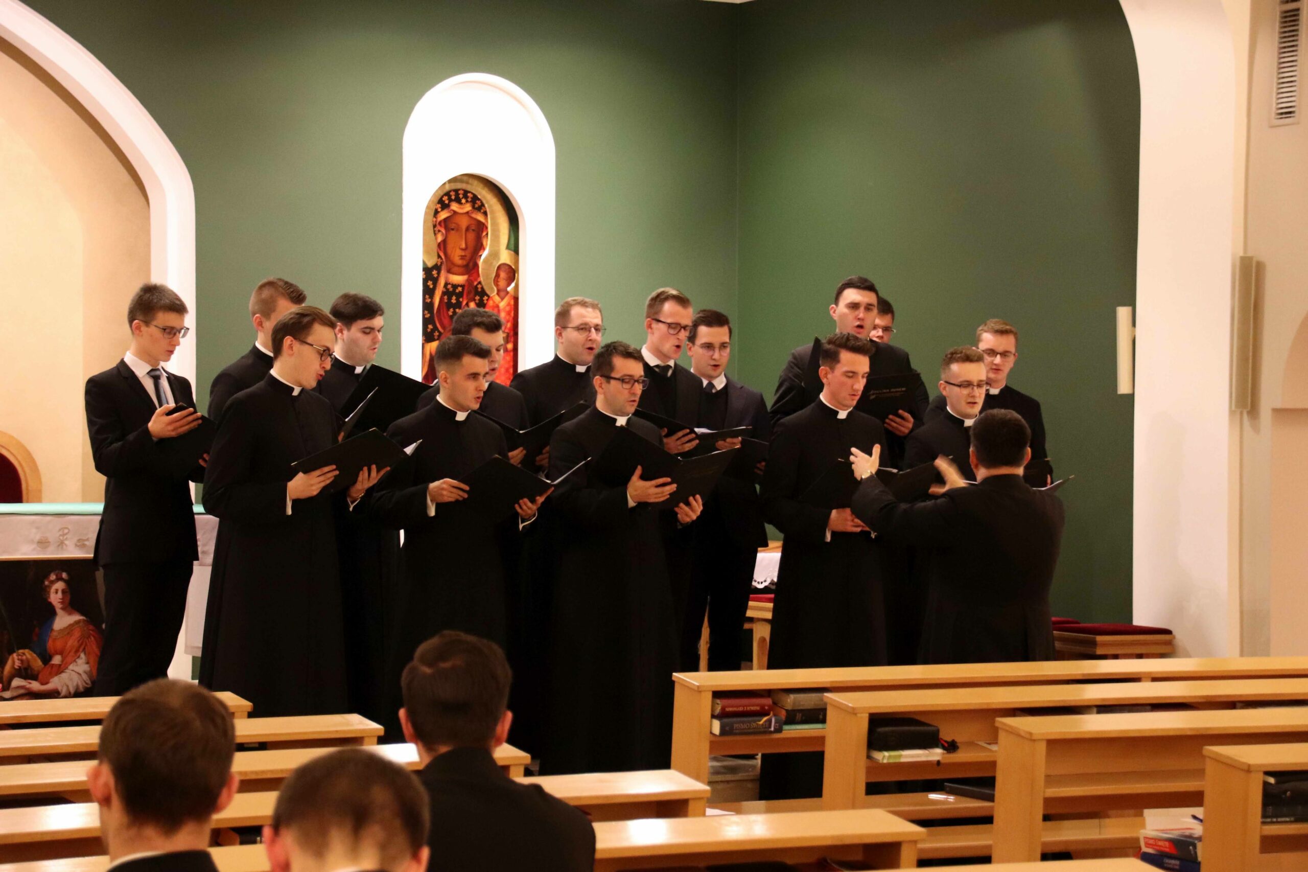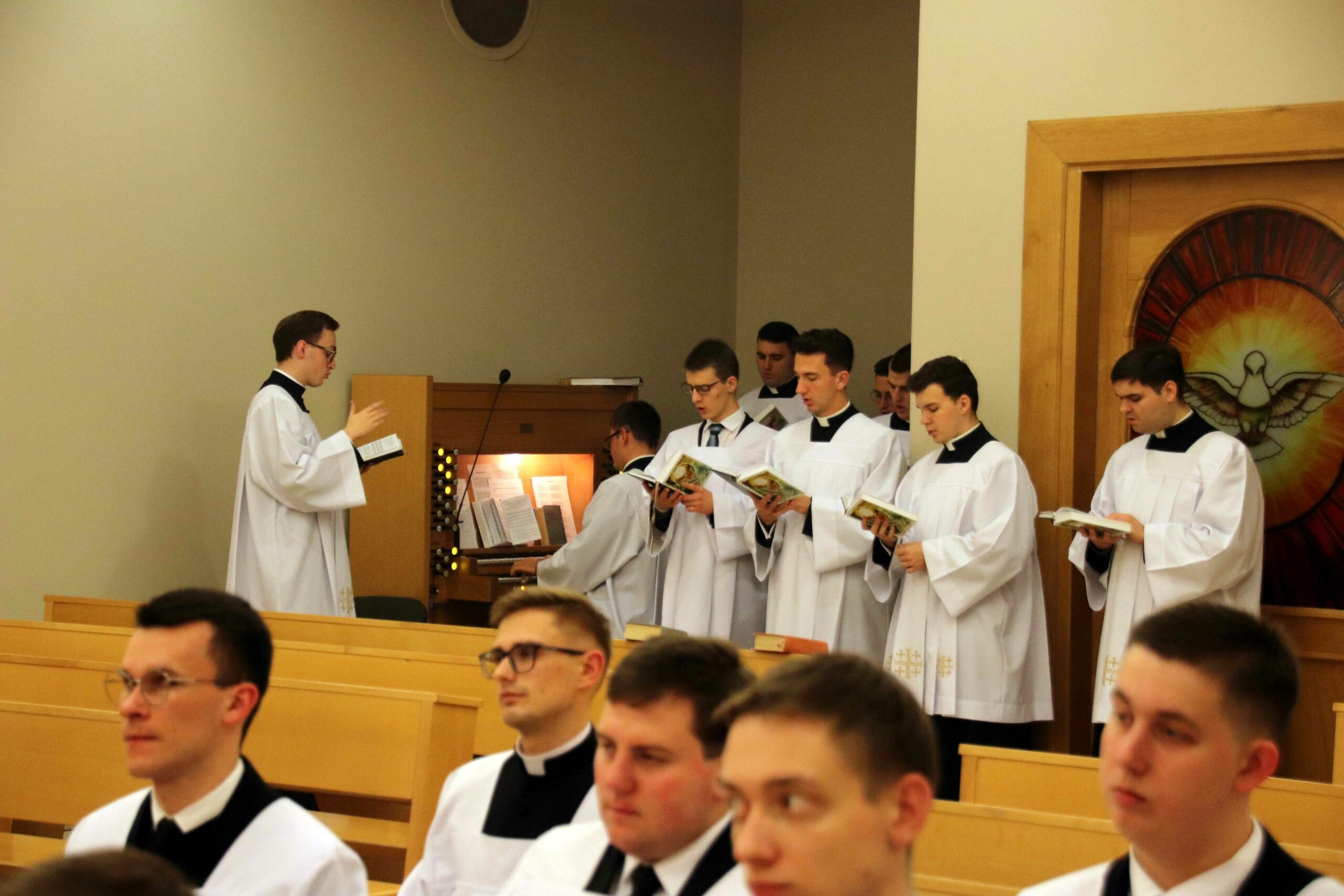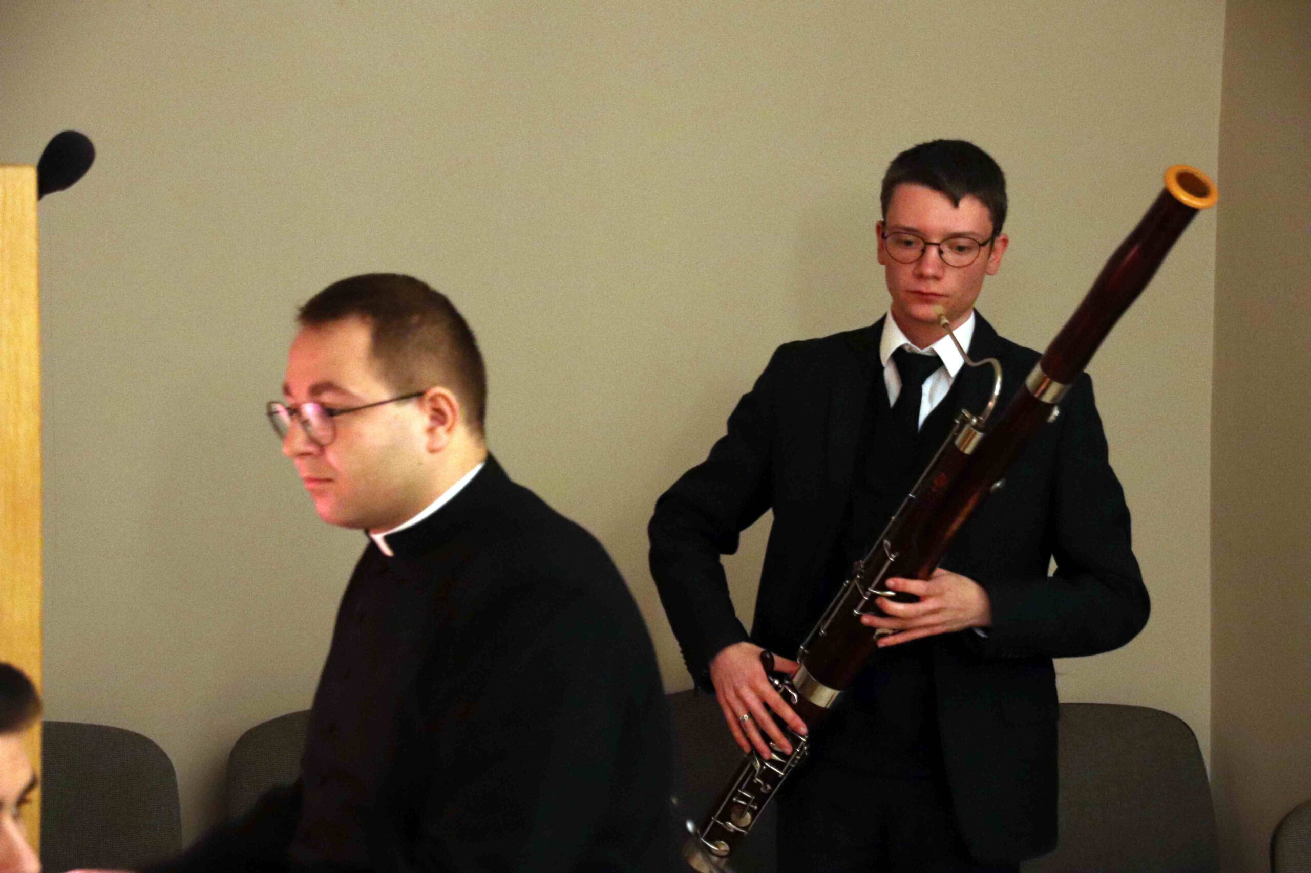 Po wspólnej kolacji zebraliśmy się ponownie w kaplicy pw. Chrystusa Dobrego Pasterza, gdzie schola seminaryjna „Inclina aurem” pod batutą księdza profesora oraz klerycy wykonujący utwory na organach, fagocie i klarnecie zaprezentowali koncert pt. W Krzyżu zbawienie.