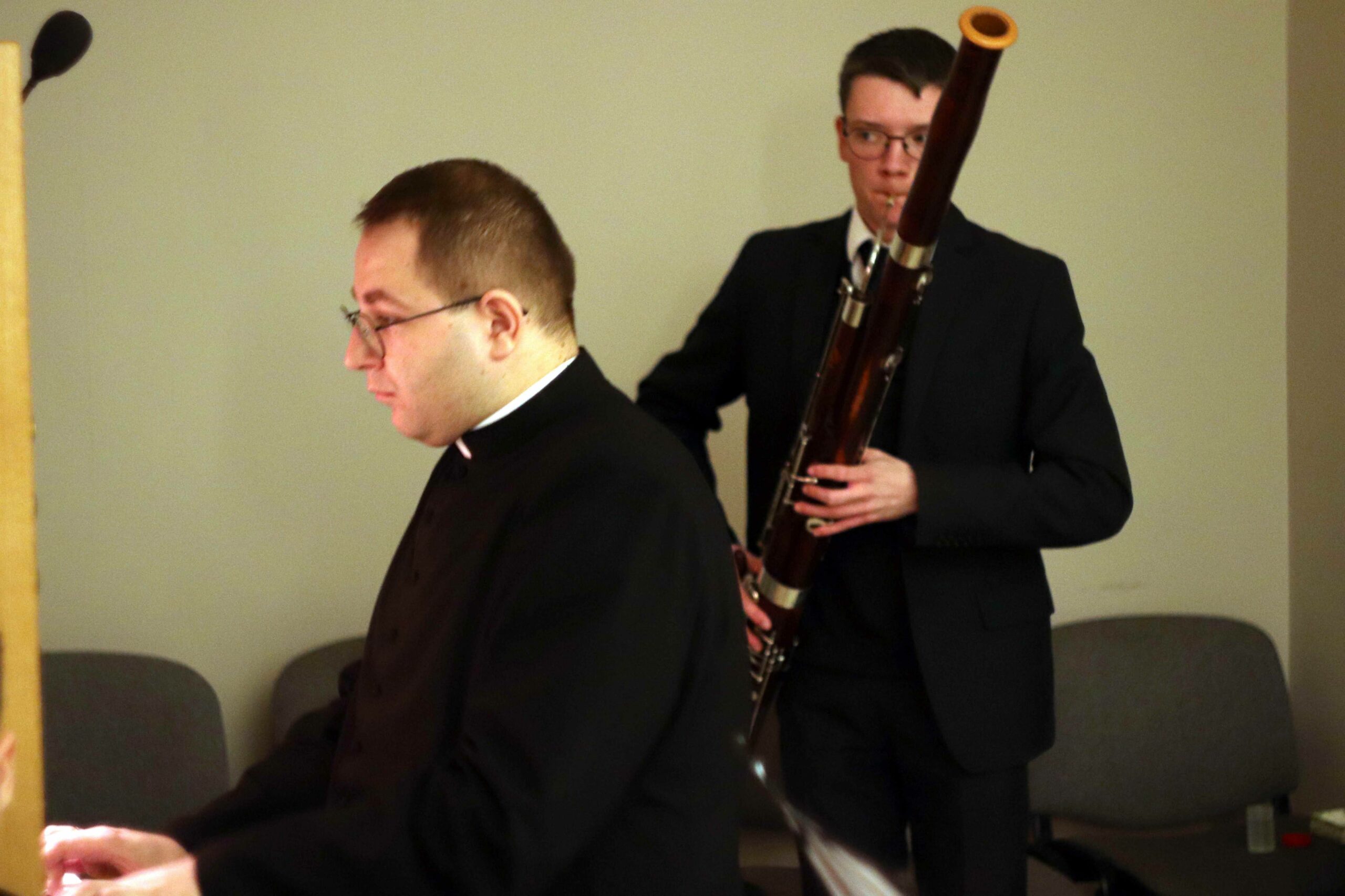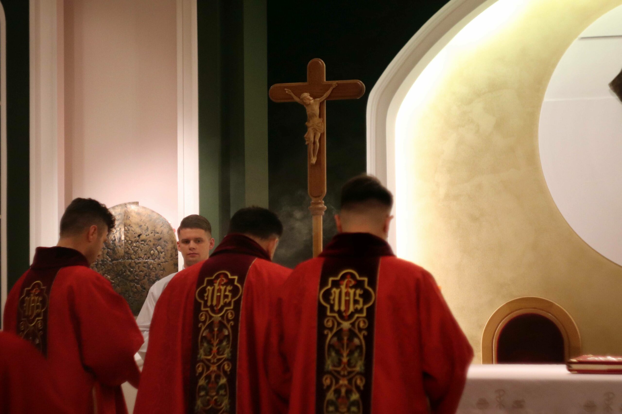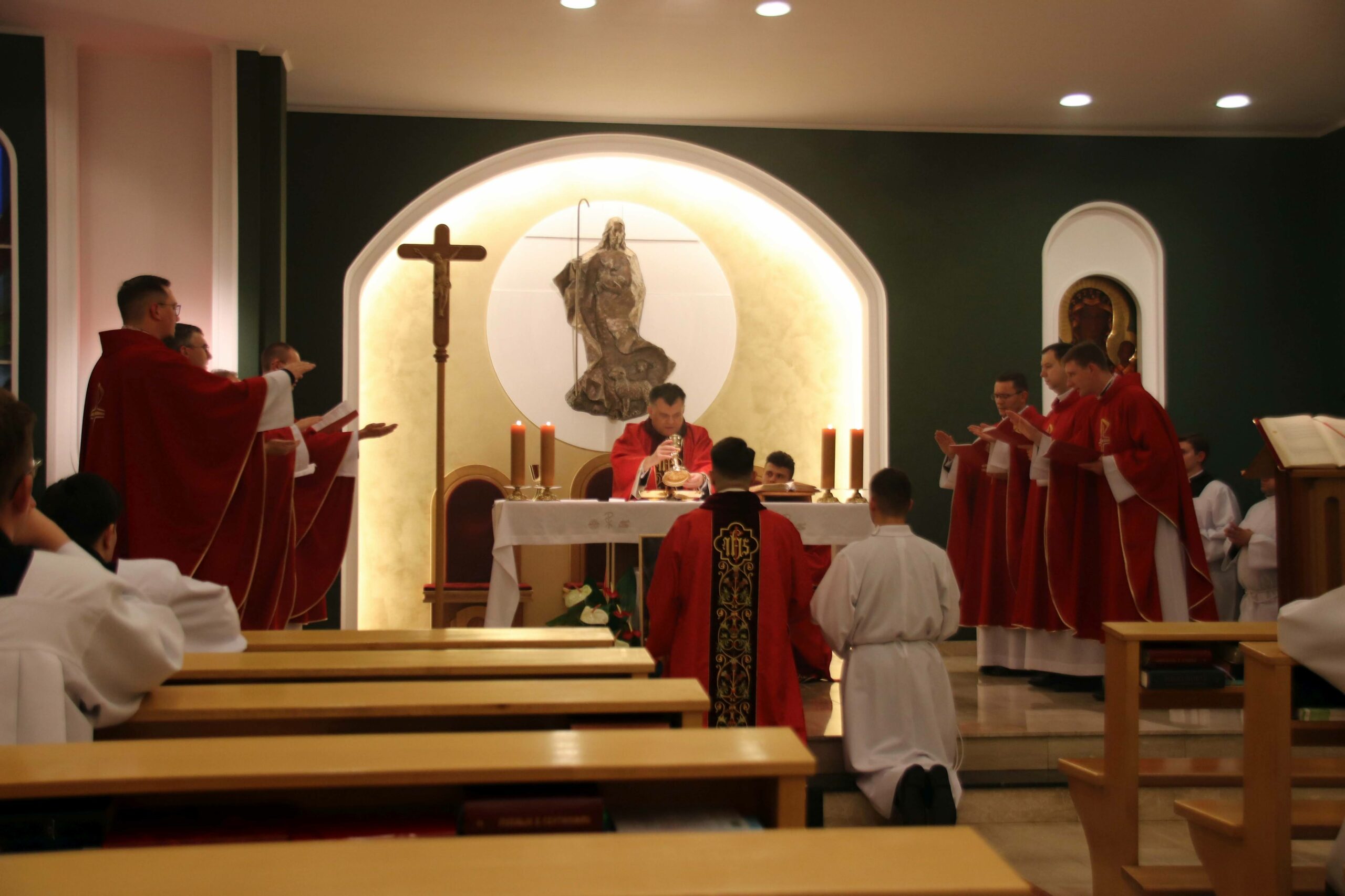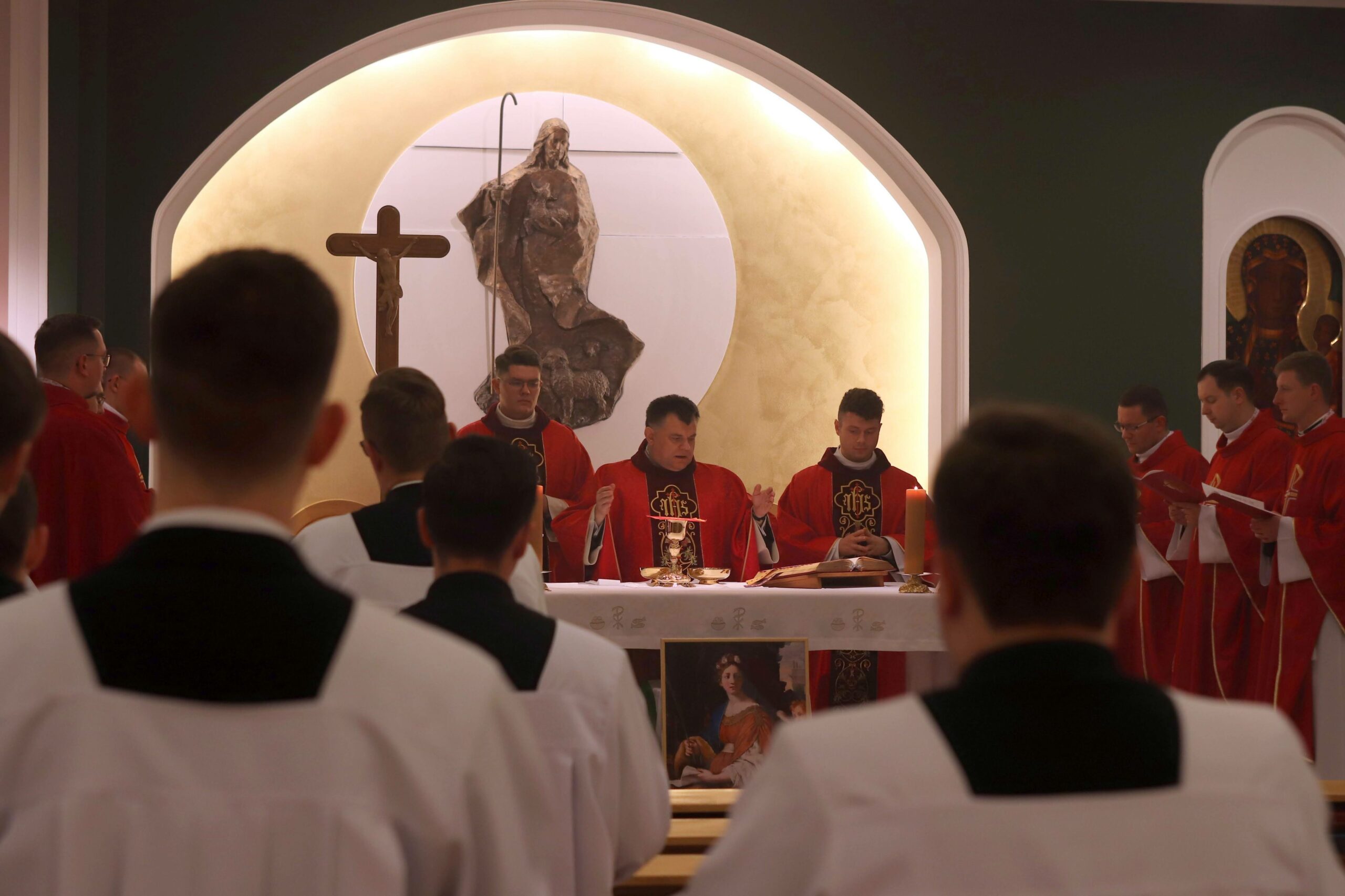 Po wspólnej kolacji zebraliśmy się ponownie w kaplicy pw. Chrystusa Dobrego Pasterza, gdzie schola seminaryjna „Inclina aurem” pod batutą księdza profesora oraz klerycy wykonujący utwory na organach, fagocie i klarnecie zaprezentowali koncert pt. W Krzyżu zbawienie.