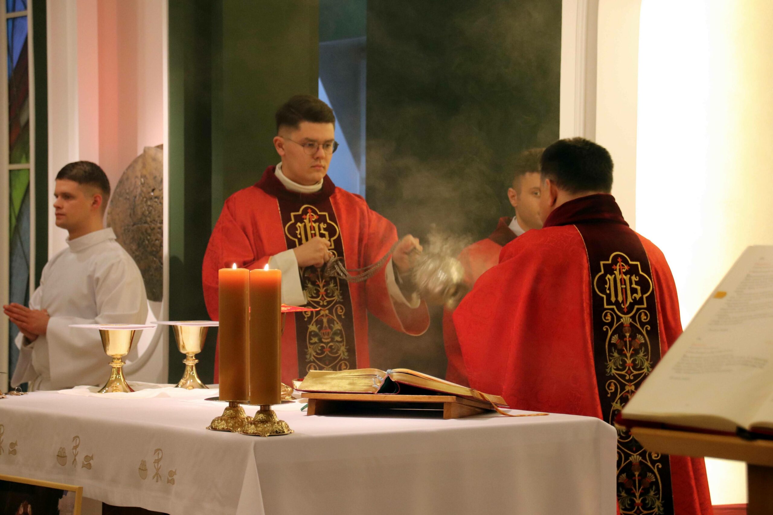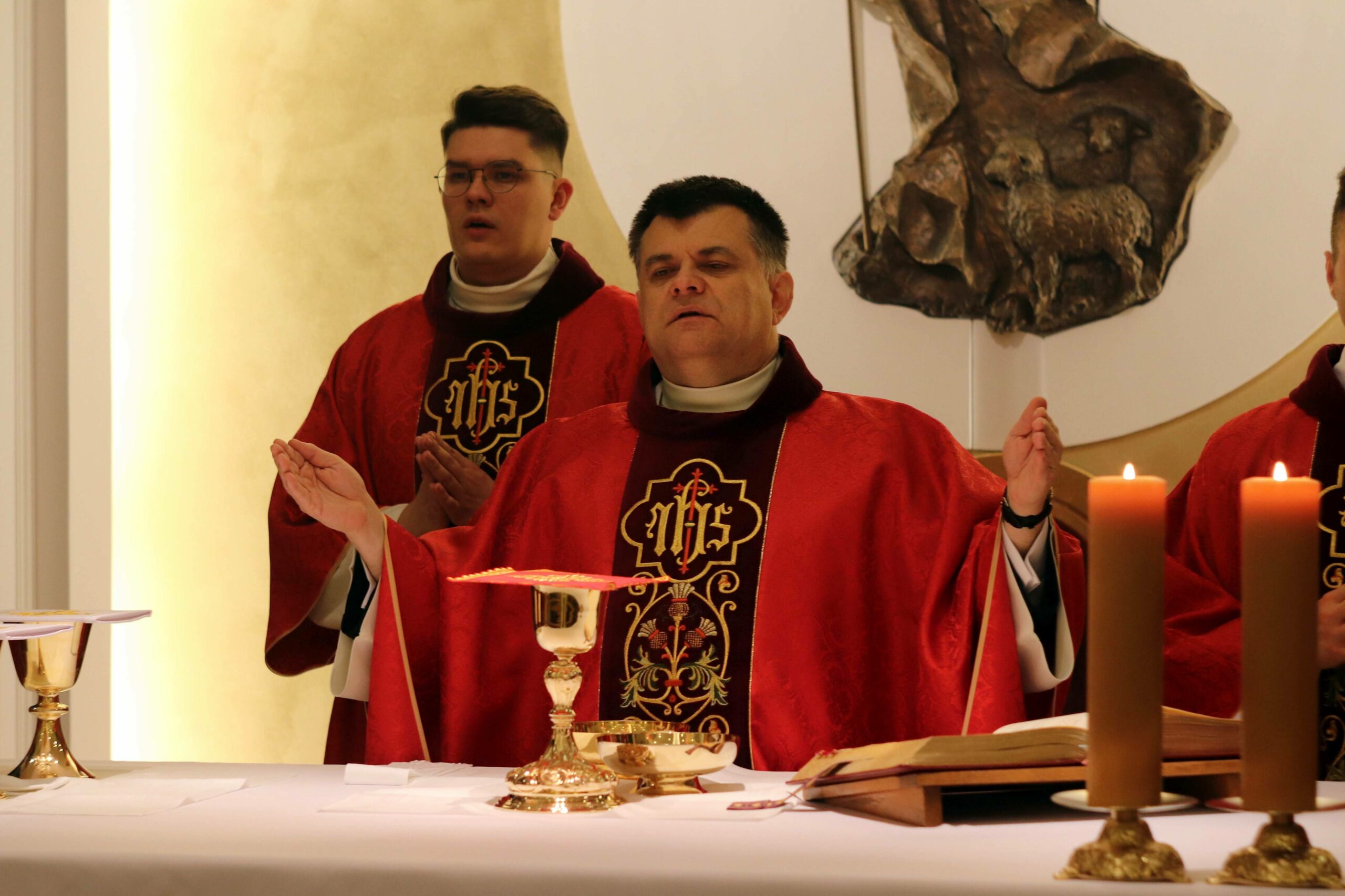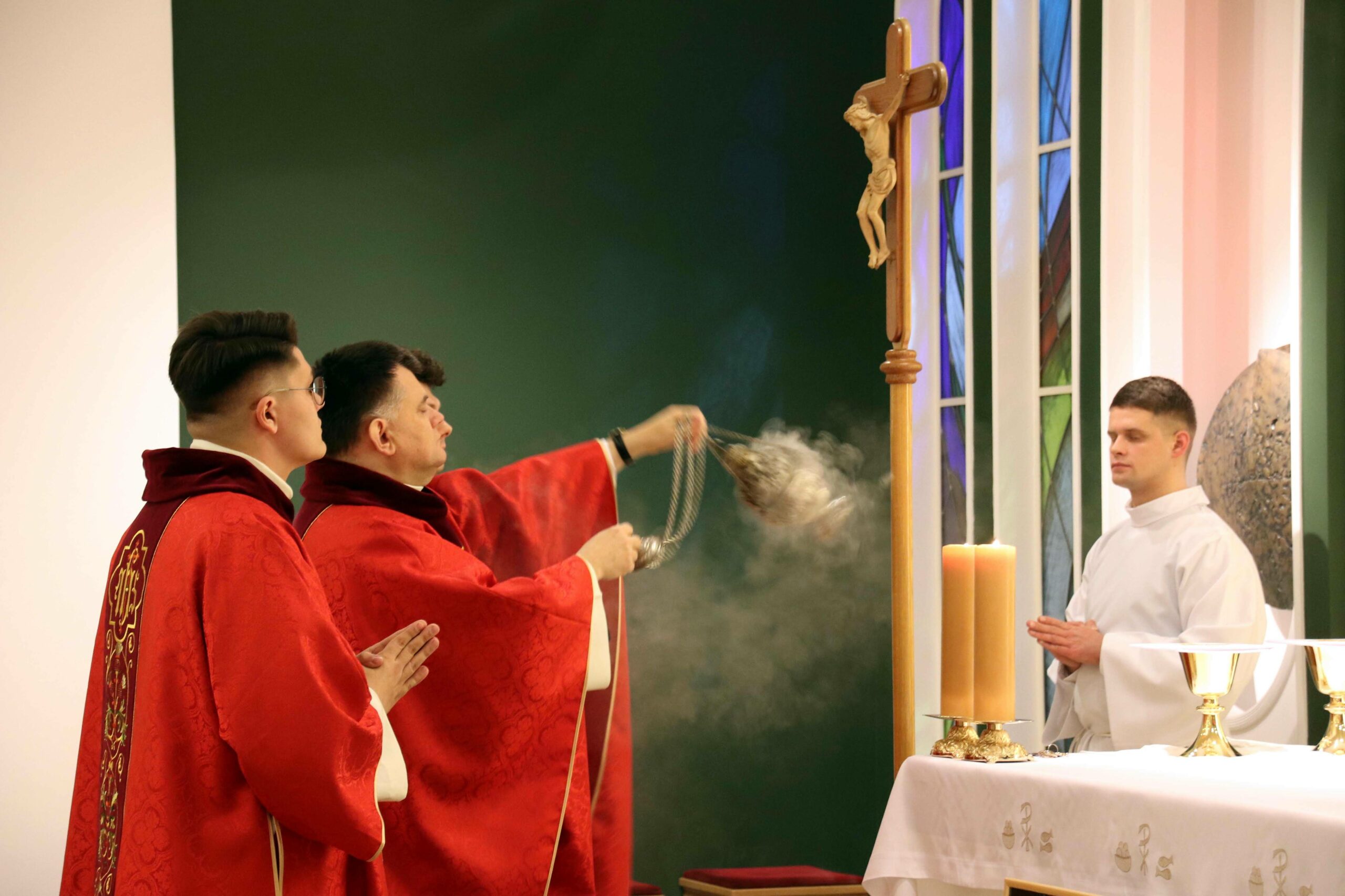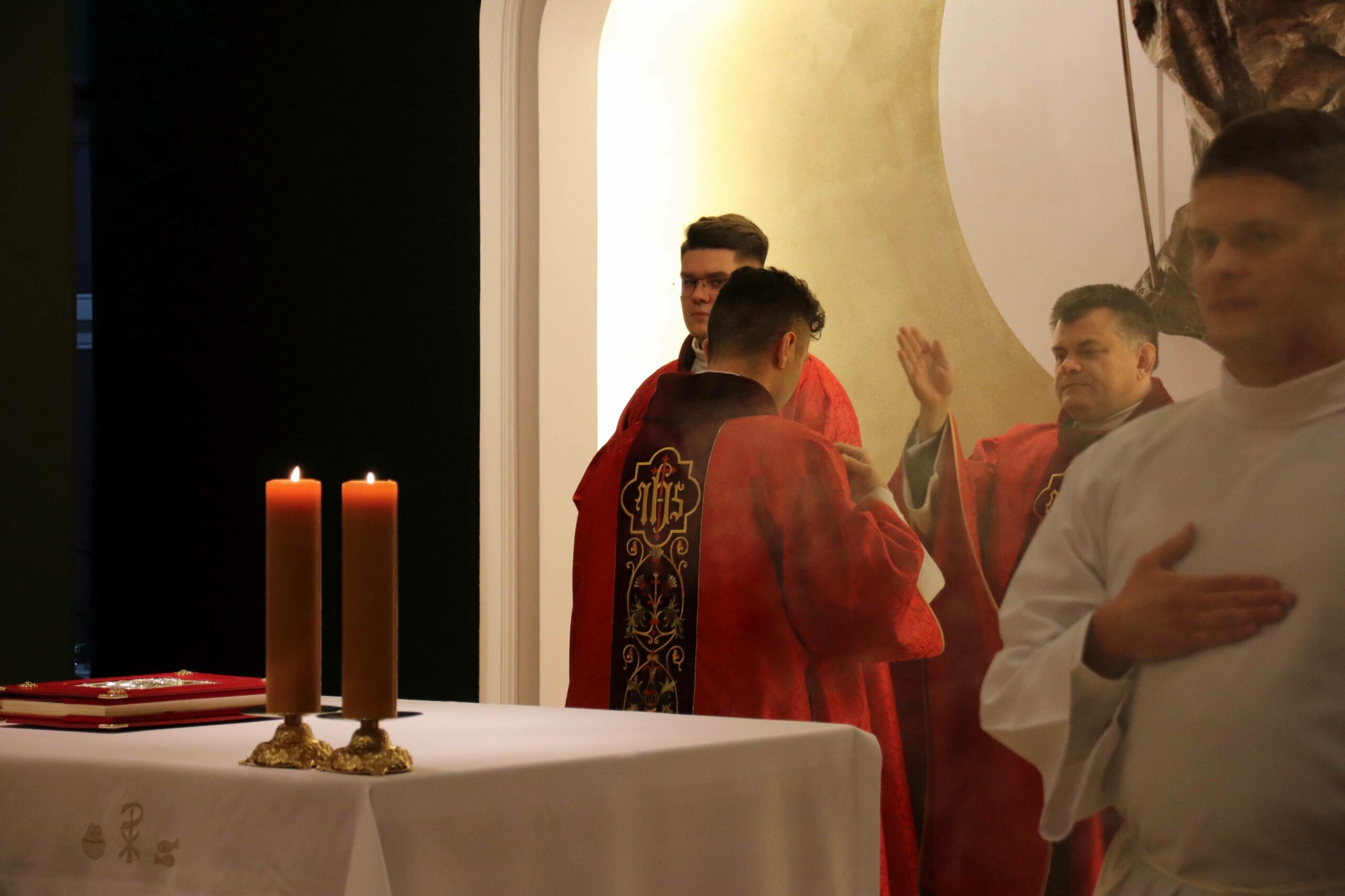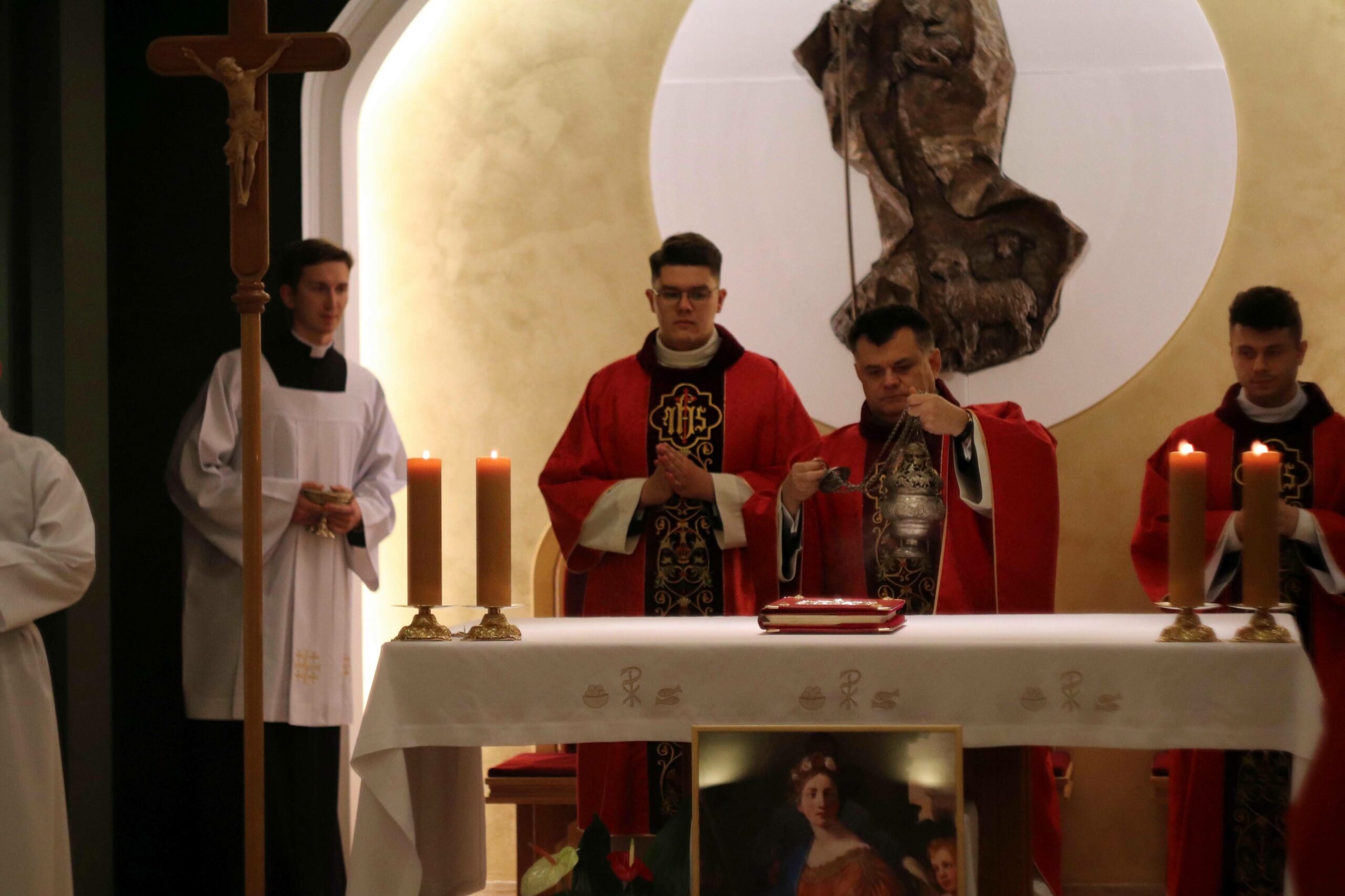 Po wspólnej kolacji zebraliśmy się ponownie w kaplicy pw. Chrystusa Dobrego Pasterza, gdzie schola seminaryjna „Inclina aurem” pod batutą księdza profesora oraz klerycy wykonujący utwory na organach, fagocie i klarnecie zaprezentowali koncert pt. W Krzyżu zbawienie.