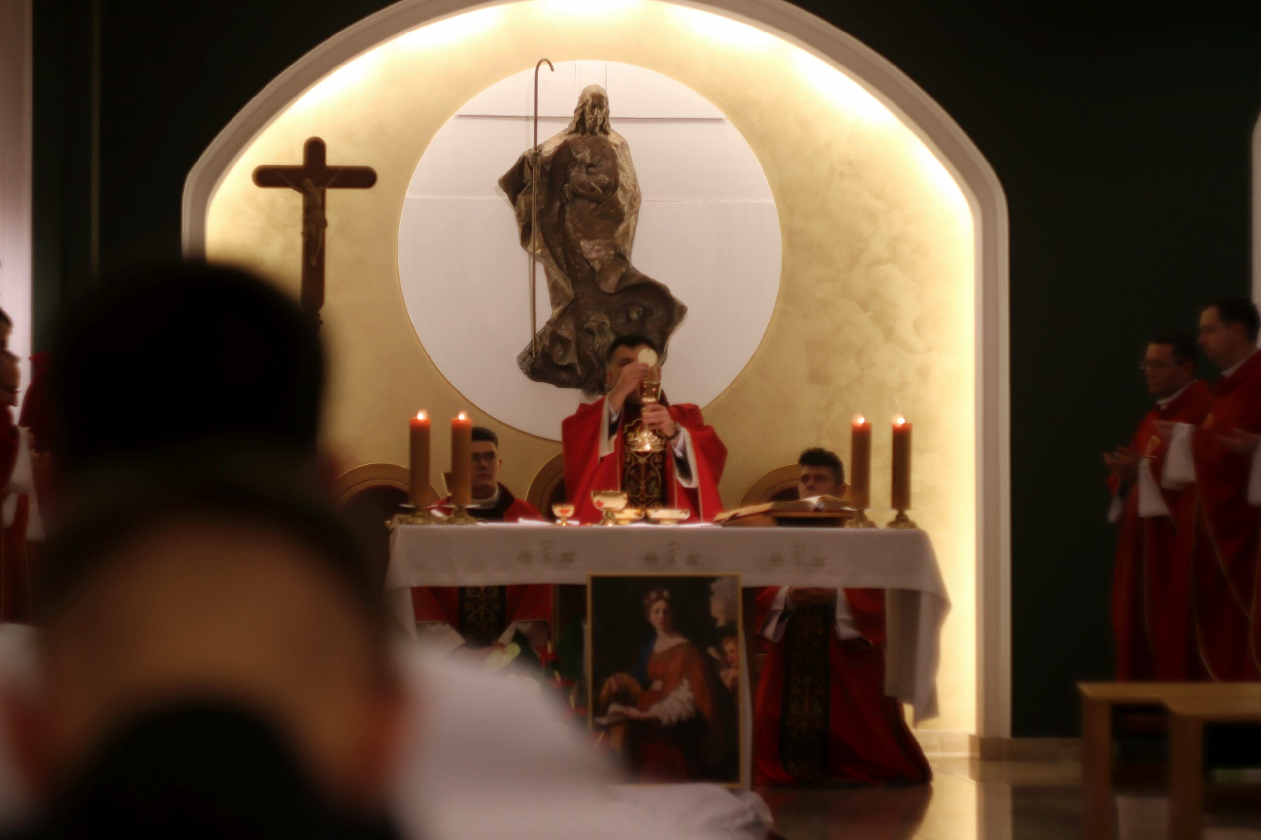 W tygodniu, w którym przypada wspomnienie św. Cecylii, dziewicy i męczennicy, tradycyjnie czwartkowym gościem był ksiądz doktor habilitowany Mariusz Białkowski. Na początku koncelebrowanej Eucharystii ksiądz rektor Jan Frąckowiak przypomniał jego zasługi w muzycznym wychowywaniu alumnów naszego Seminarium, prosząc jednocześnie o sprawowanie Najświętszej Ofiary w intencji całej naszej wspólnoty. W swojej homilii główny celebrans zwracał uwagę na ważność starannego akompaniamentu muzycznego w czasie świętych obrzędów, przypomniał także świadectwo życia i śmierci świętej Cecylii.