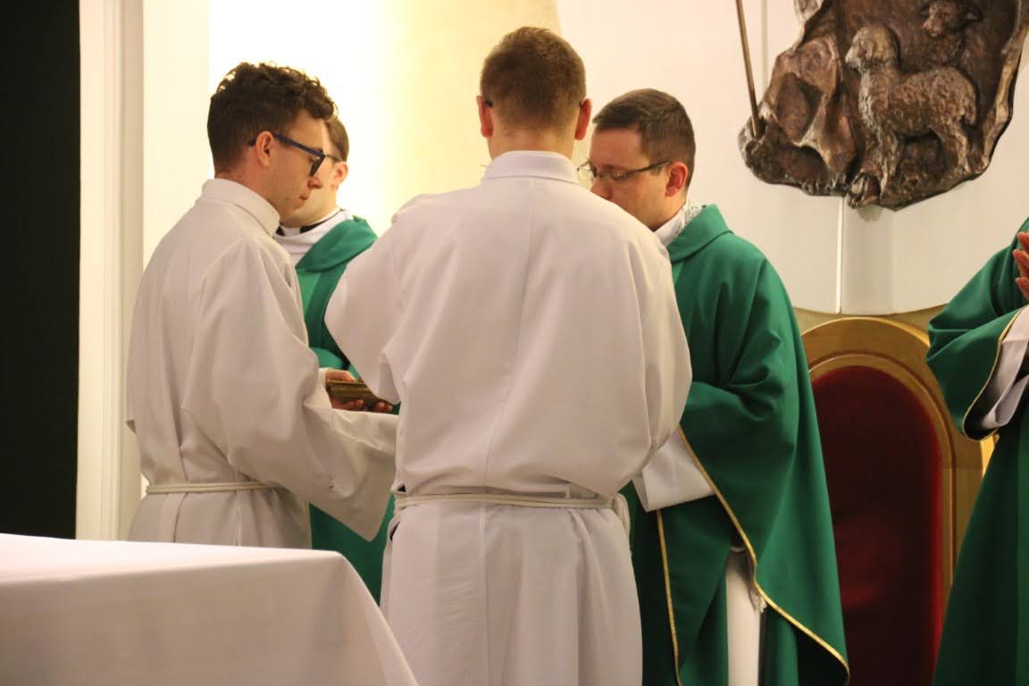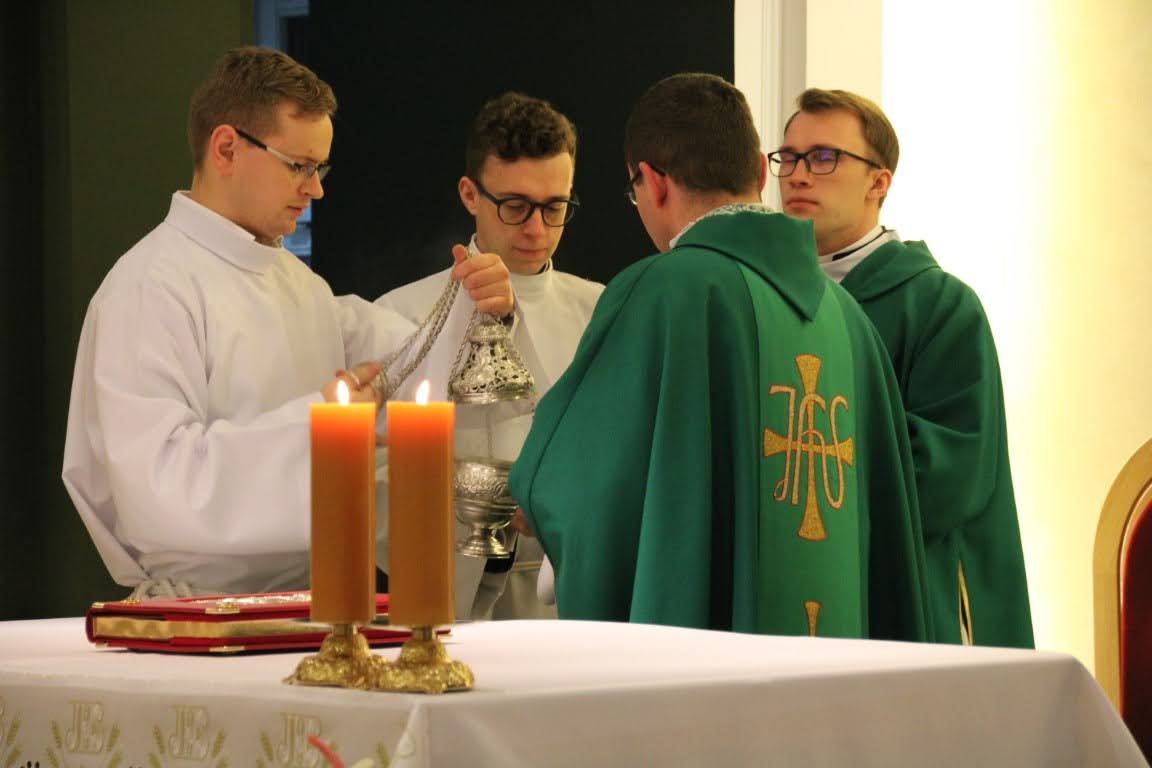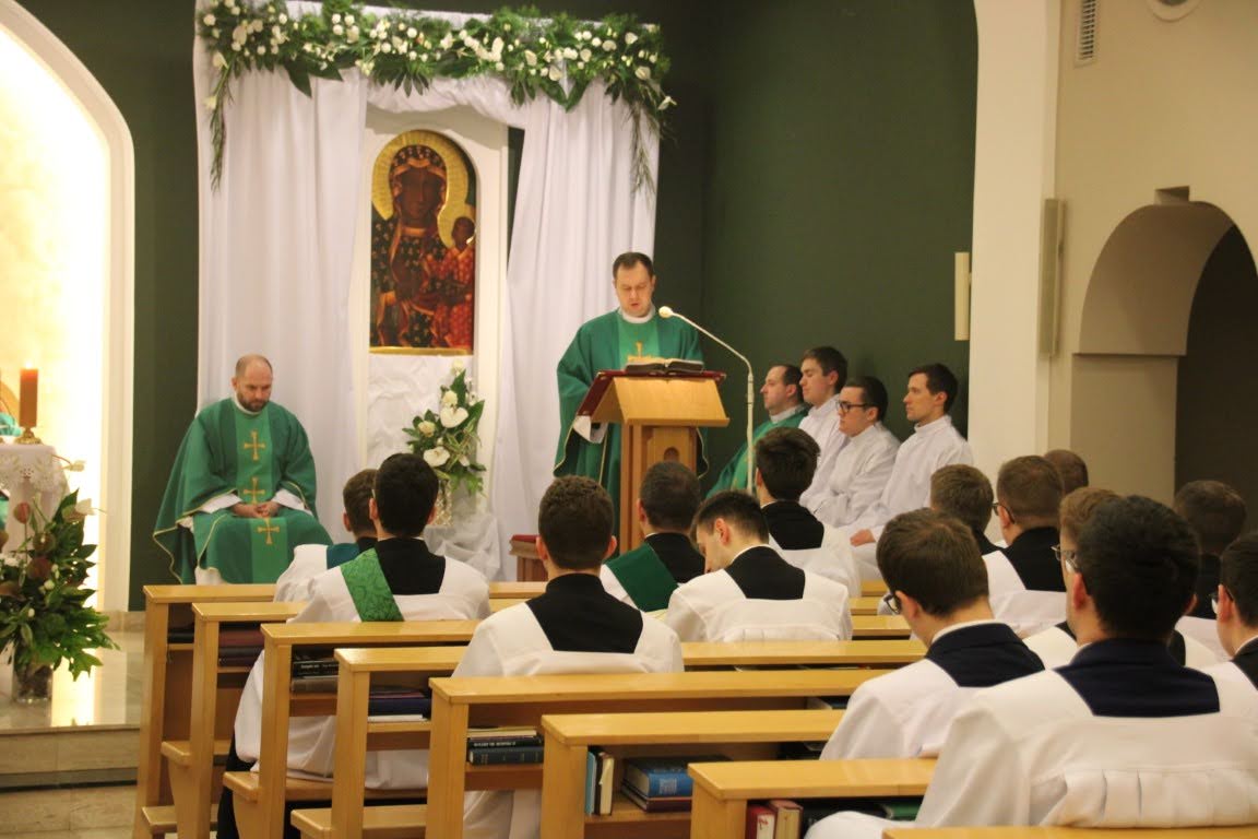 W czwartek w naszej wspólnocie obchodziliśmy imieniny przełożonych i alumnów, którzy świętowali je w ostatnim półroczu, czyli księdza rektora i wicerektora, księży prefektów Przemysława i Dariusza oraz ojców Dariusza i Łukasza. Uroczystej Eucharystii w seminaryjnej kaplicy przewodniczył ksiądz rektor Jan Frąckowiak, który przypomniał, że jest to dobra okazja, aby podziękować Panu Bogu za siebie nawzajem i za to, że razem możemy wzrastać w naszym Panu, Jezusie Chrystusie. Mszę świętą koncelebrowali pozostali przełożeni, homilię wygłosił ksiądz wicerektor Waldemar Graczyk.