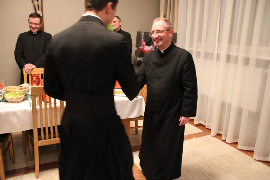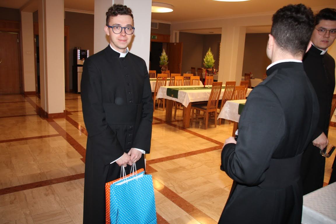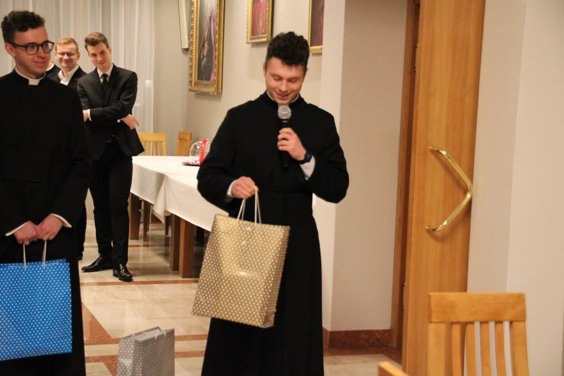 Po Eucharystii udaliśmy się na refektarz, gdzie w imieniu wszystkich alumnów imieninowe życzenia przełożonym złożył kleryk senior. Plurimos annos!