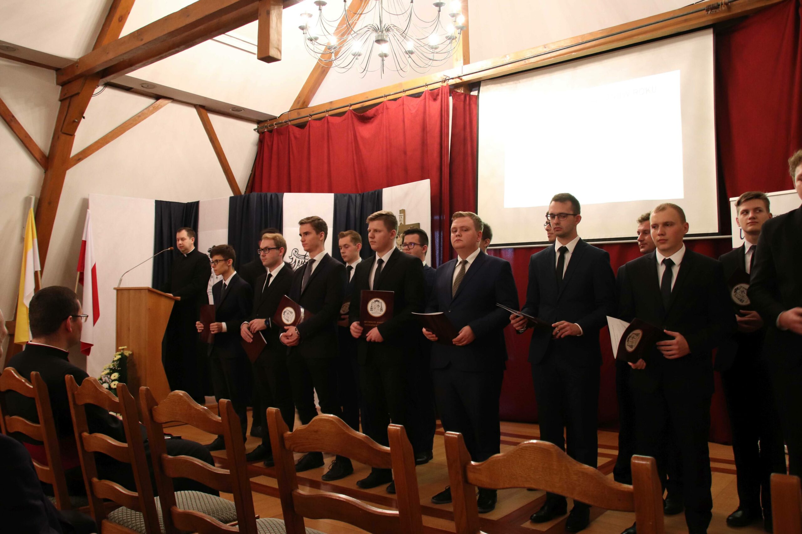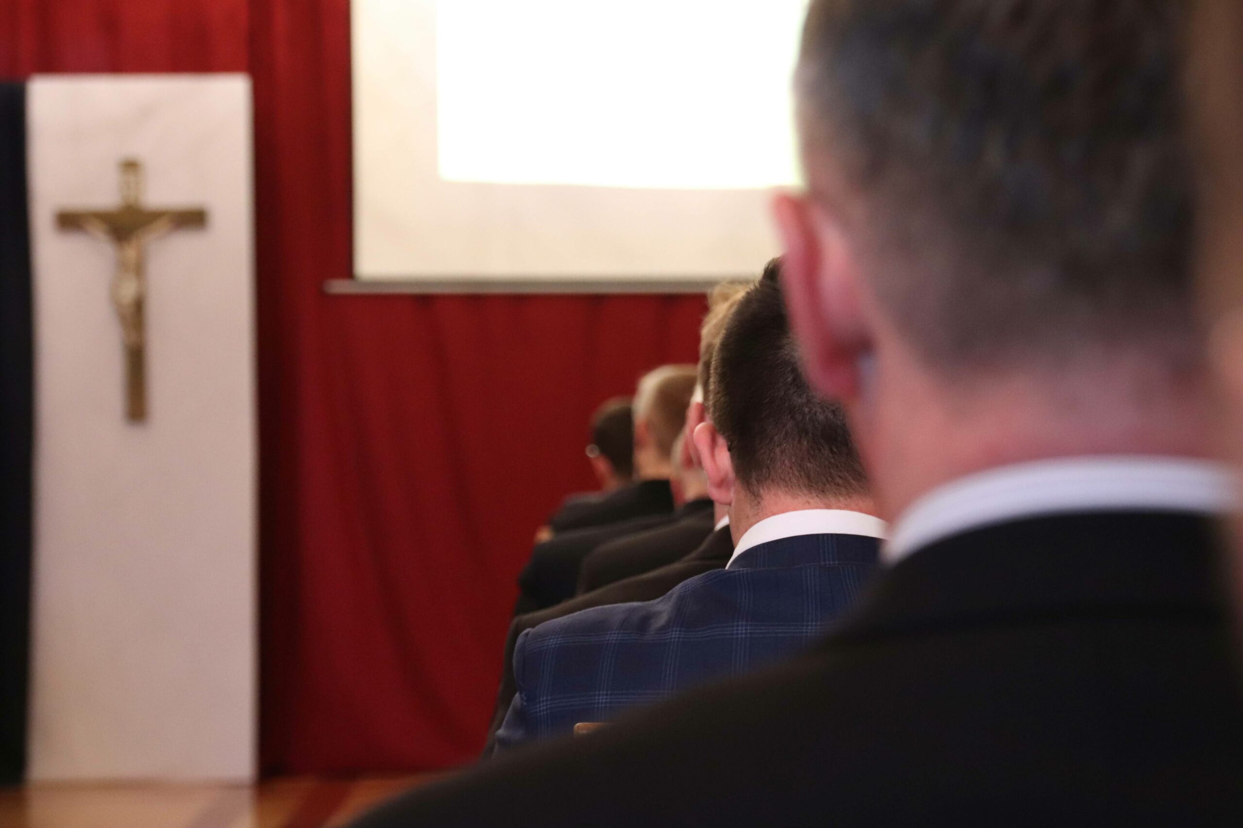 W drugiej części inauguracji zebraliśmy się w auli, gdzie po odśpiewaniu hymnu Gaude Mater Polonia ksiądz rektor Jan Frąckowiak oficjalnie uznał rok formacyjny 2022/2023 za rozpoczęty. W swoim wystąpieniu zaznaczył, że nasza wspólnota jest jedną z największych w Polsce – w związku z dołączeniem kleryków z diecezji bydgoskiej. Ksiądz wicerektor Waldemar Graczyk poprowadził immatrykulację, czyli zaprzysiężenie 15 kleryków roku propedeutycznego, którzy pierwszy rok swojej formacji spędzą w Kaliszu pod opieką prefektów roku propedeutycznego oraz ojca duchownego.