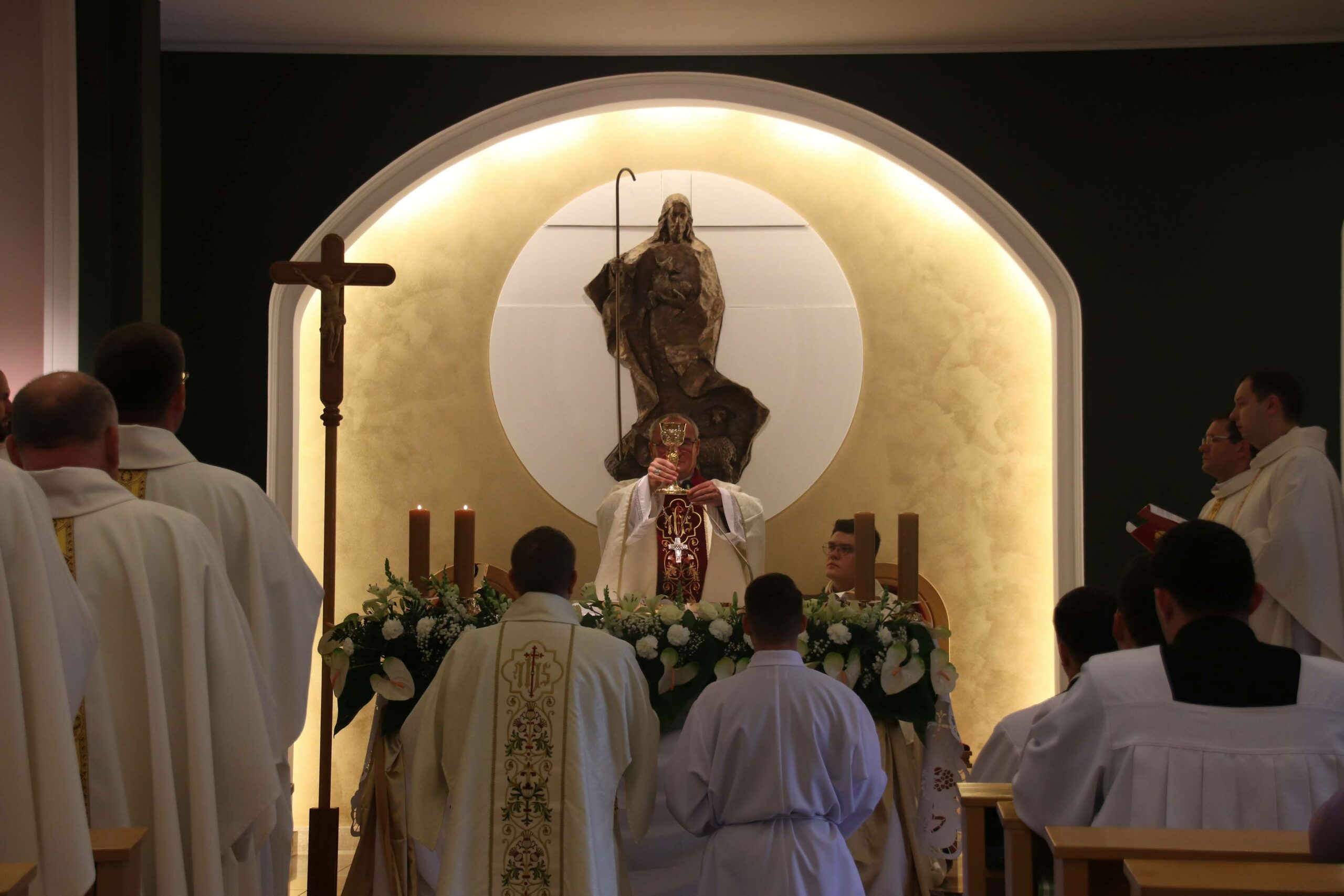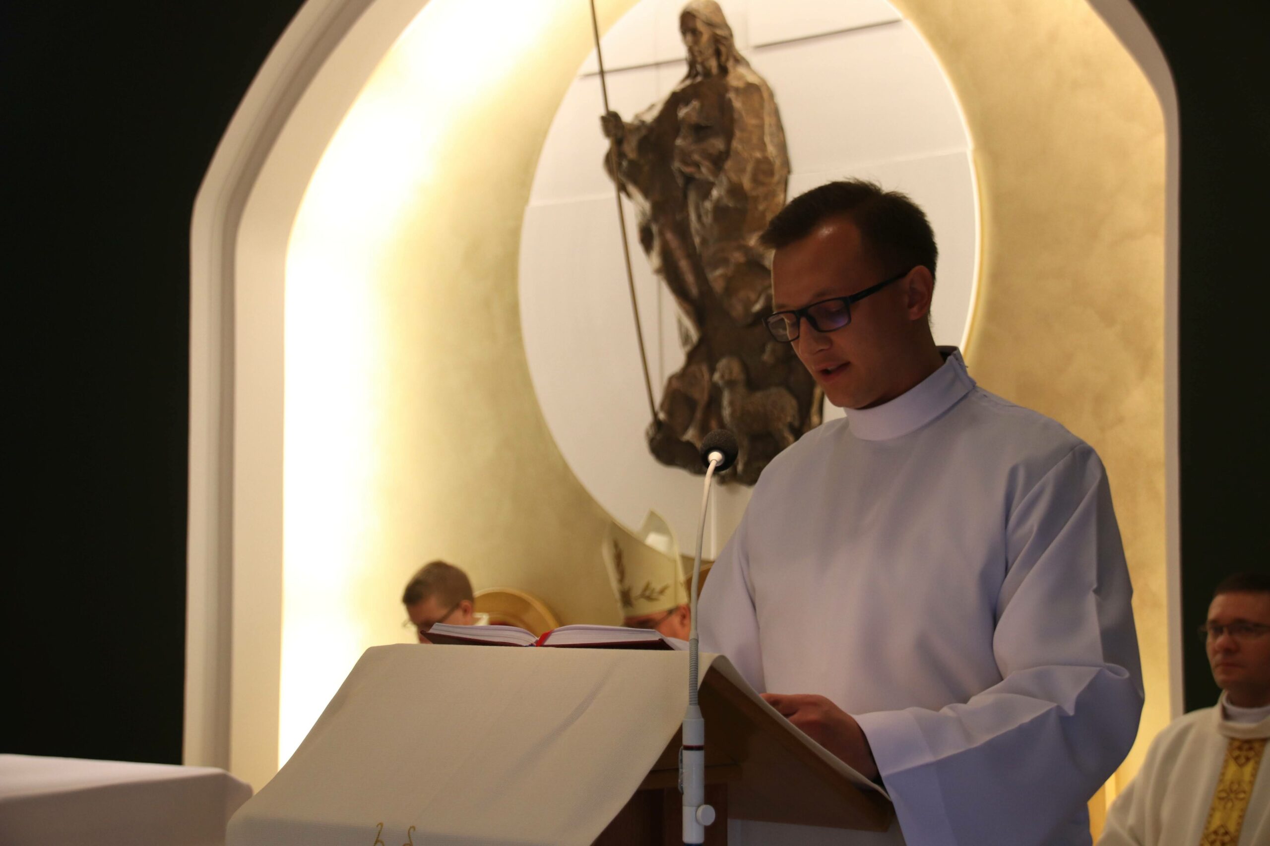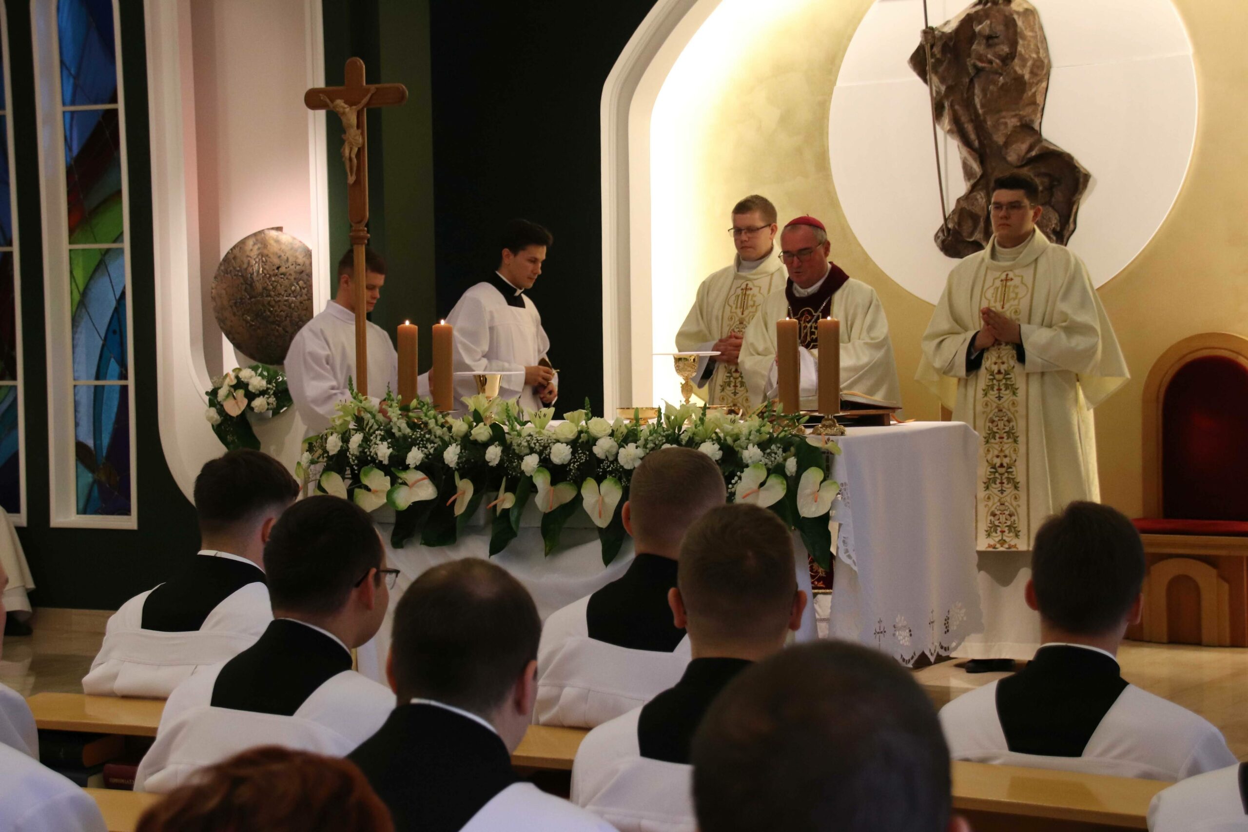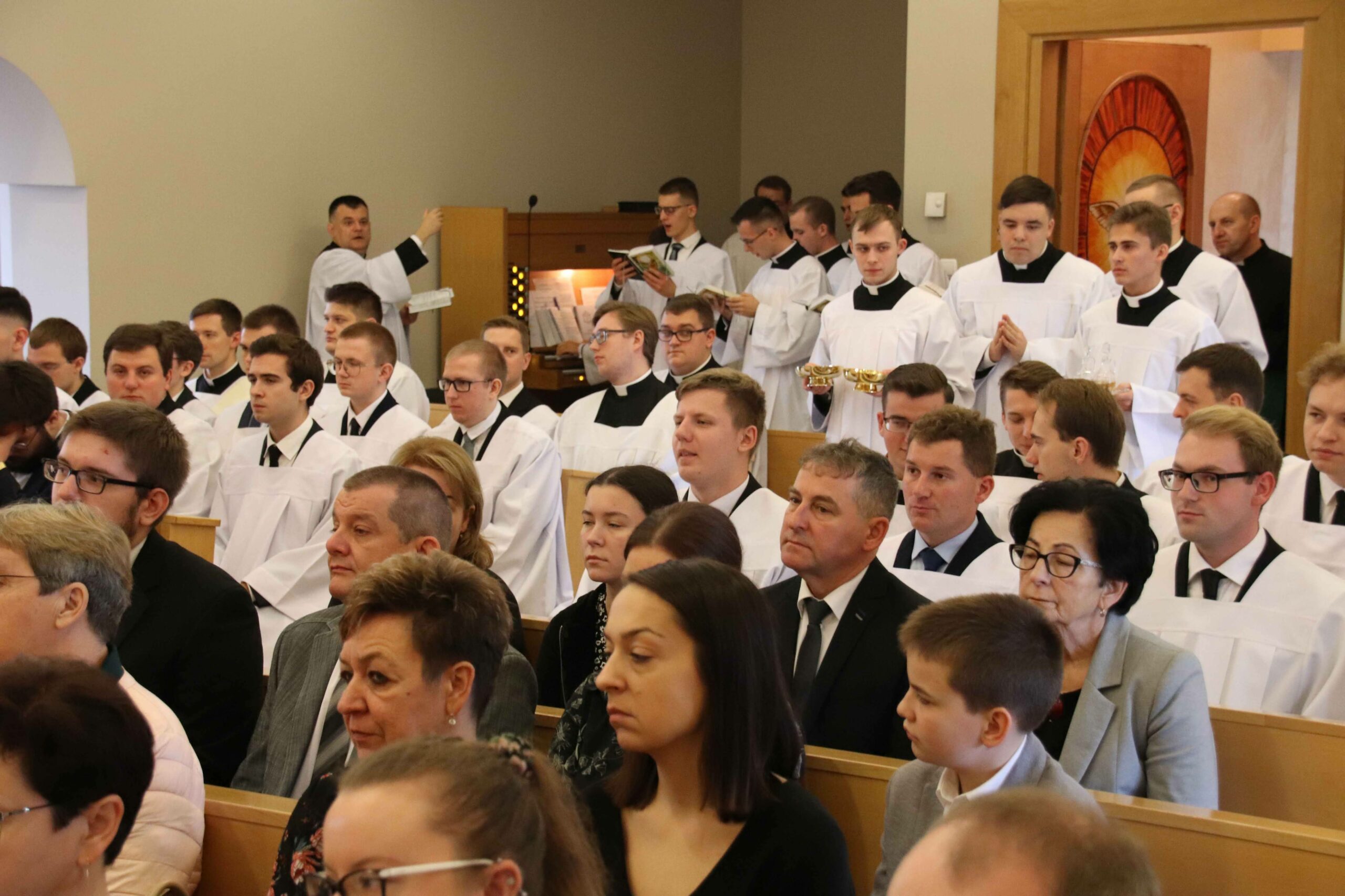 Eucharystii w seminaryjnej kaplicy pw. Chrystusa Dobrego Pasterza przewodniczył były biskup pomocniczy poznański Szymon Stułkowski, który dzień wcześniej został mianowany przez Ojca Świętego Franciszka biskupem diecezjalnym płockim. Koncelebrowali księża przełożeni, proboszczowie i przyjaciele kleryków kandydatów. Na początku Mszy trójka seminaryjna złożyła nowemu biskupowi płockiemu życzenia z okazji podjęcia się nowych obowiązków.