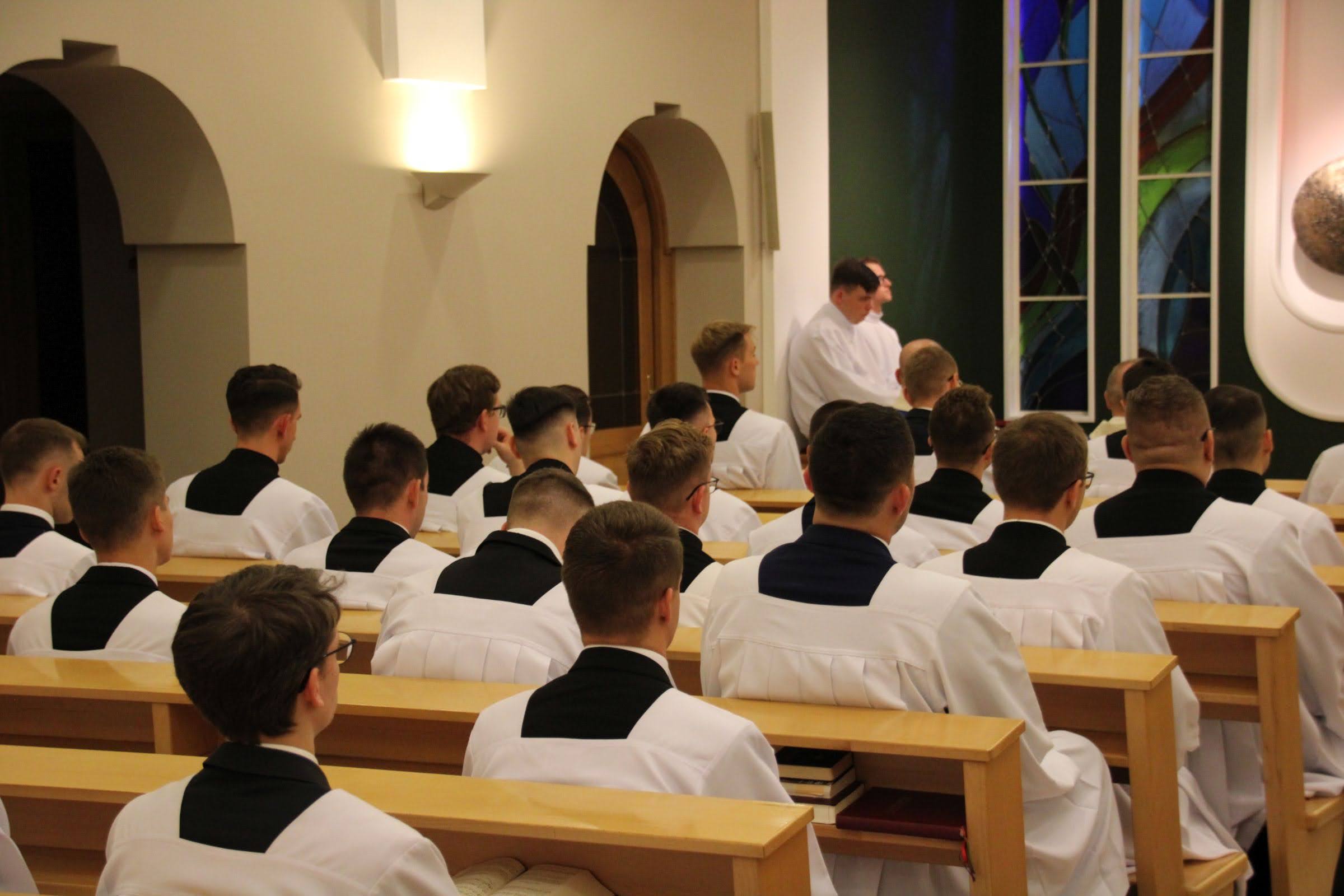 1 października, we wspomnienie św. Teresy z Lisieux, od wspólnej Eucharystii w seminaryjnej kaplicy pod wezwaniem Chrystusa Dobrego Pasterza rozpoczęliśmy nowy rok formacyjny. Do naszej wspólnoty dołączyli alumni z diecezji bydgoskiej wraz z księdzem Pawłem Białczykiem, kapłanem diecezji bydgoskiej, który w naszym Domu będzie pełnił funkcję prefekta. Po Mszy zgromadziliśmy się na refektarzu, gdzie po uroczystej kolacji ksiądz rektor Jan Frąckowiak omówił najważniejsze wydarzenia nadchodzącego roku.