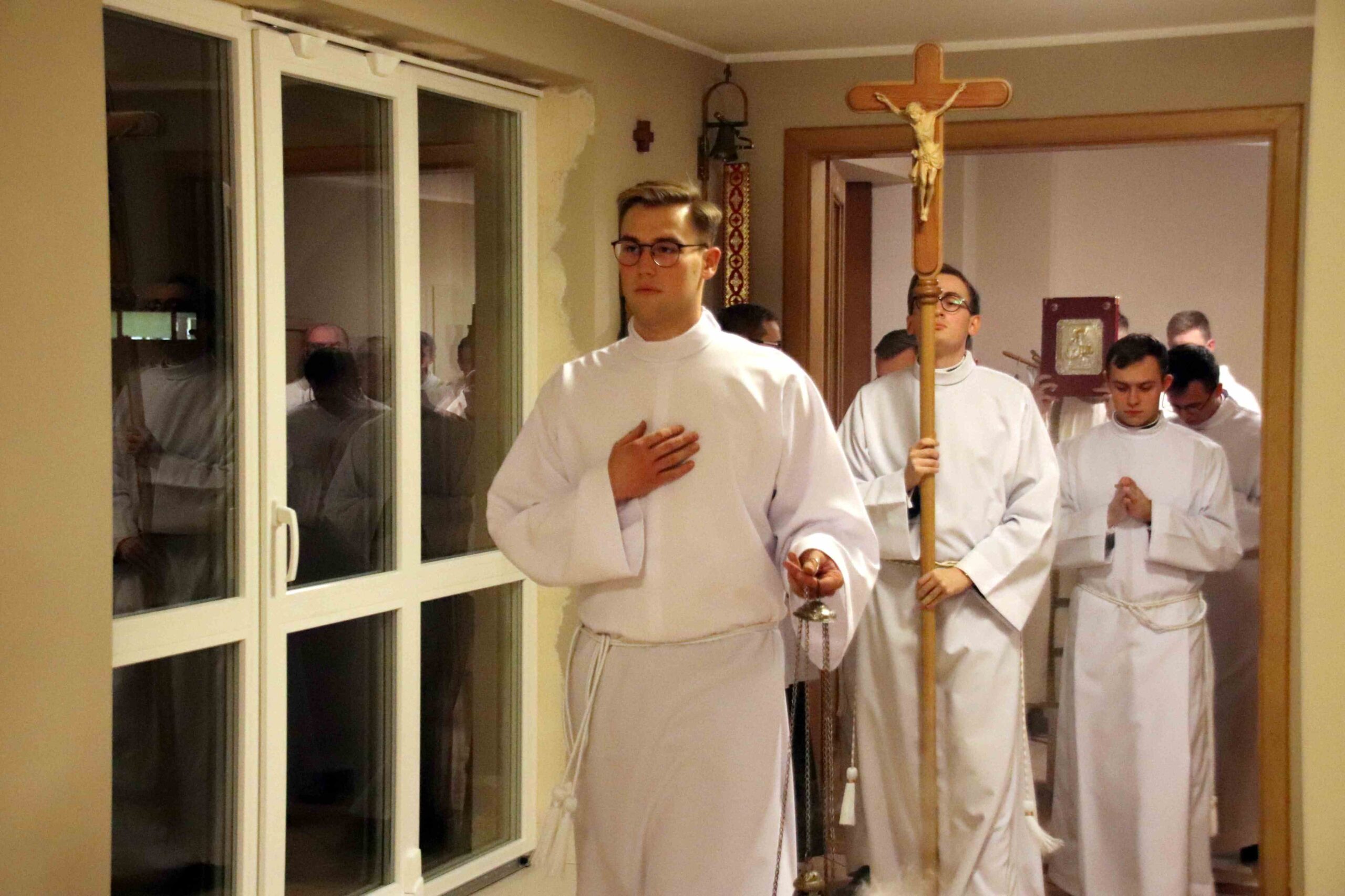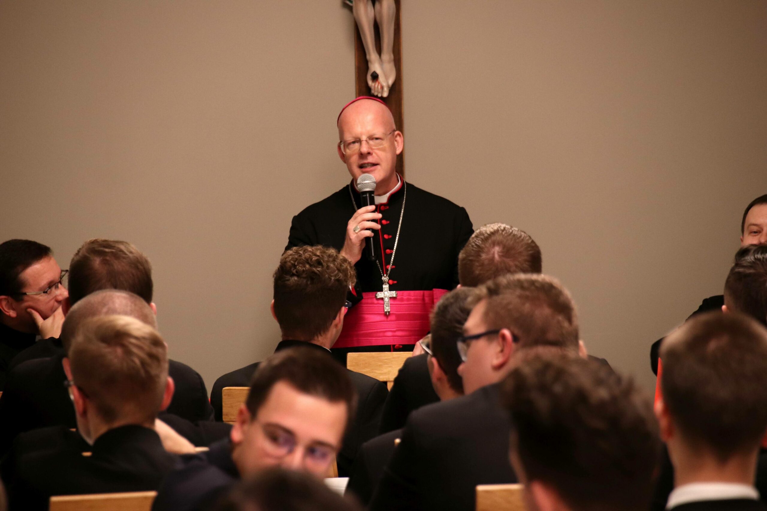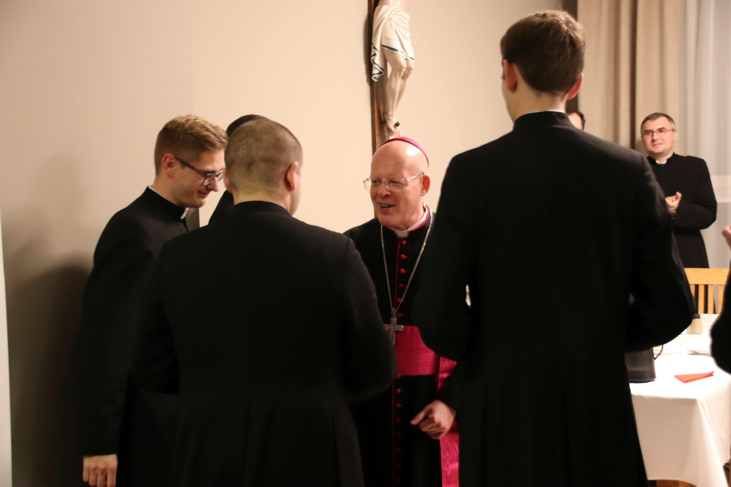 Po Eucharystii zebraliśmy się na wspólnej kolacji w refektarzu, na zakończenie której arcybiskup Tomasz mówił o swojej posłudze kapłańskiej w różnorakich zakątkach świata i pracy dyplomatycznej jako przedstawiciel papieża, często wśród społeczności nie popierającej chrześcijańskiego światopoglądu. Alumni mieli również możliwość zadawania pytań naszemu gościowi, który wyjaśniał różne zabiegi dyplomacji Stolicy Apostolskiej na rzecz pokoju i percepcję ojca świętego Franciszka – według której najwyższą wartością jest ochrona każdego życia, a szczególnie tego najbardziej bezbronnego.