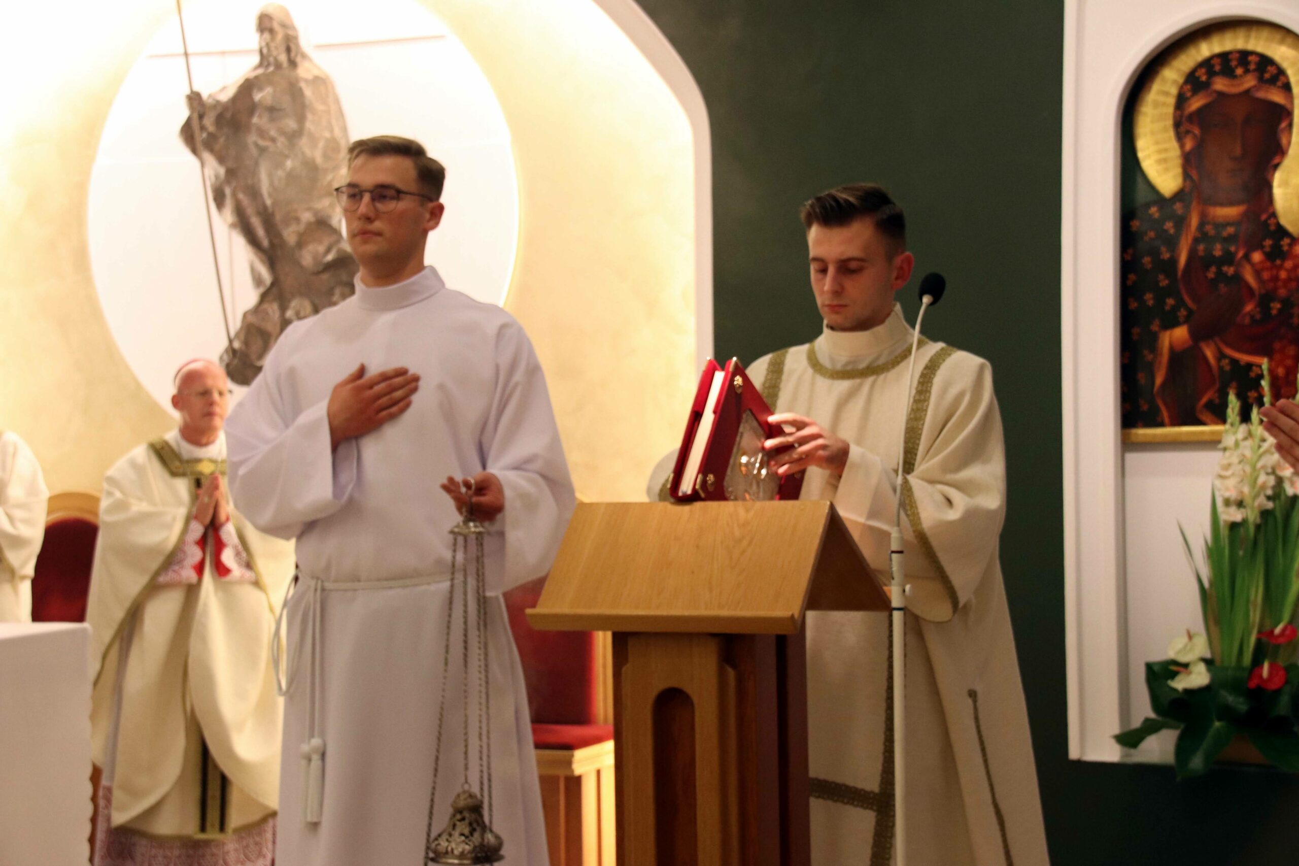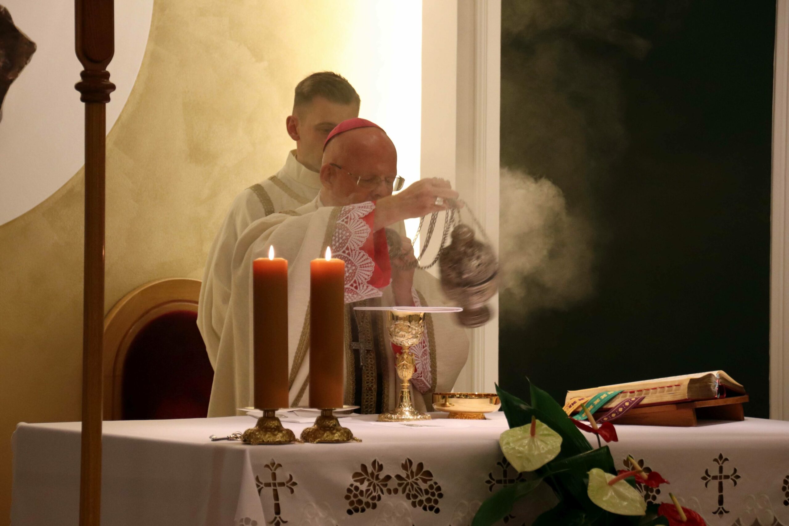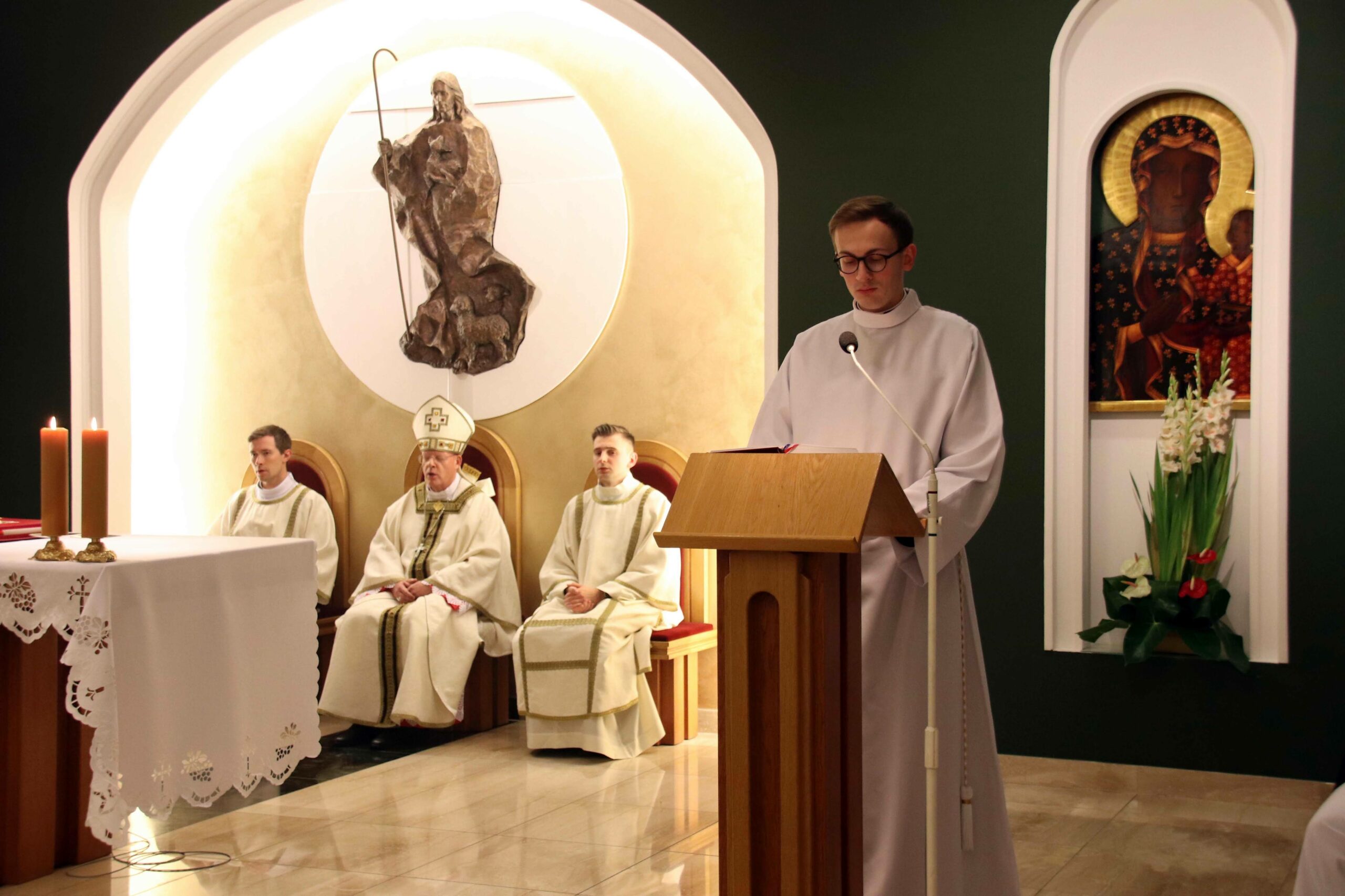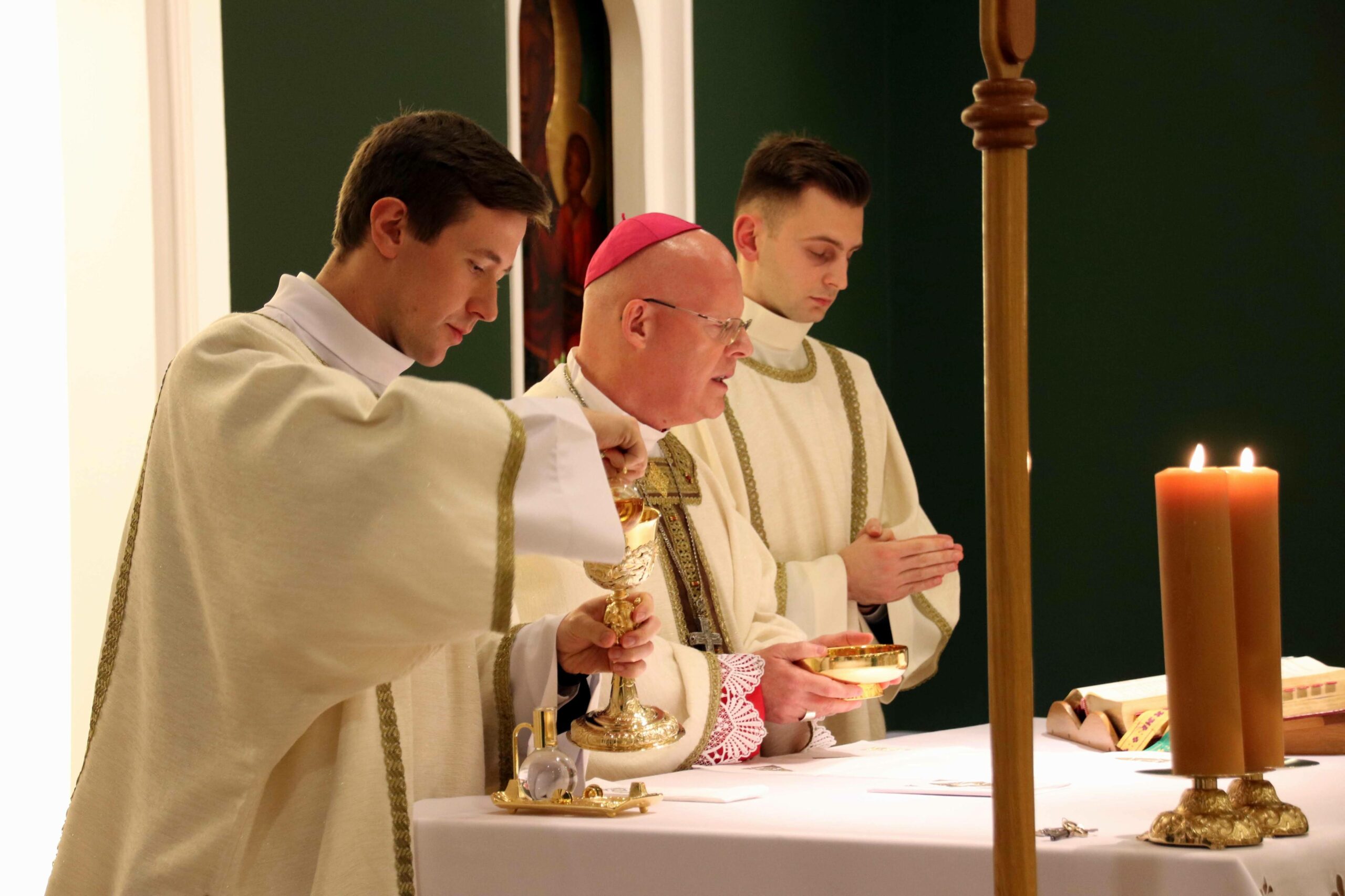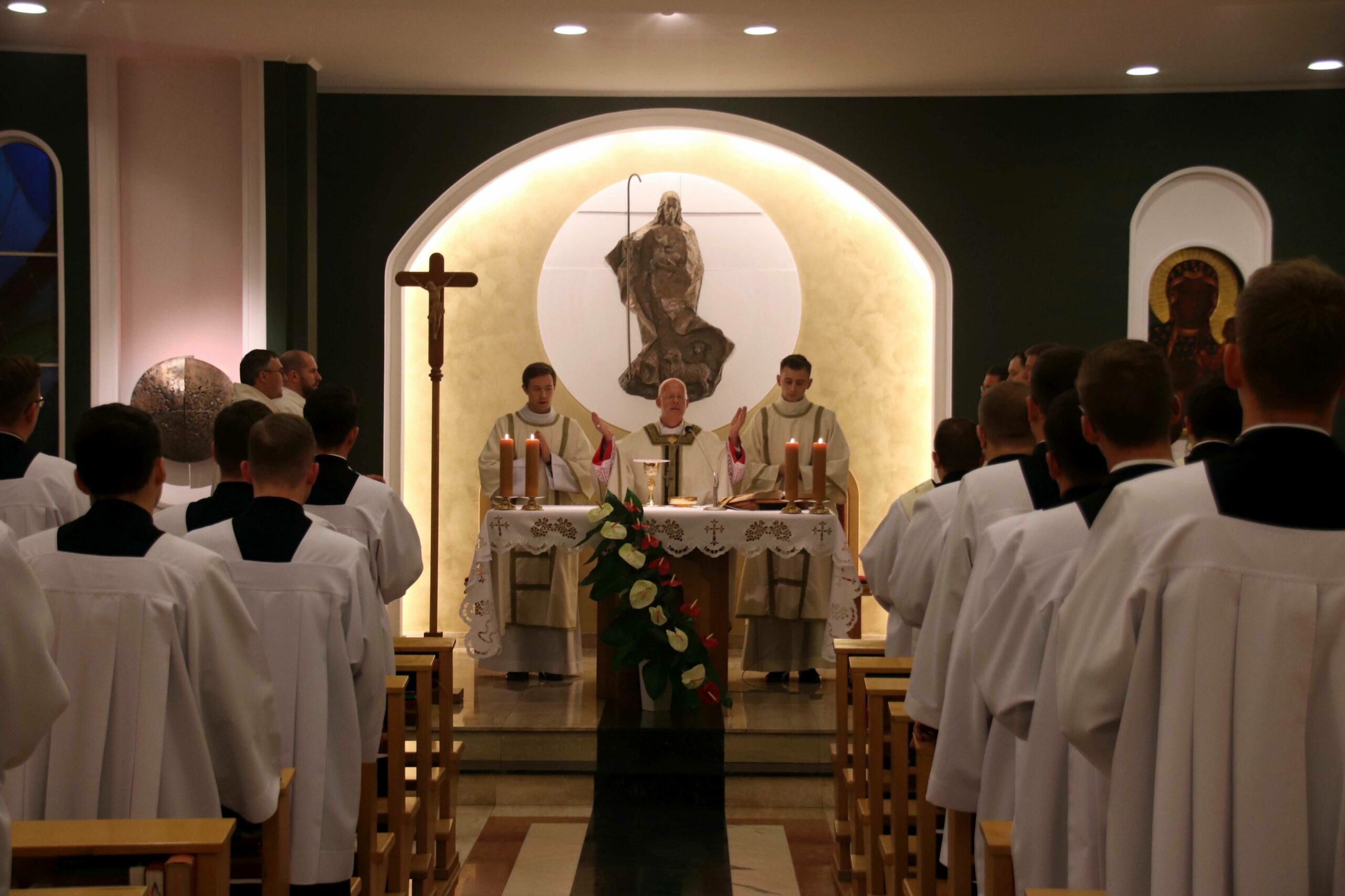 W środowy wieczór uroczystą Eucharystię w seminaryjnej kaplicy pw. Chrystusa Dobrego Pasterza celebrował arcybiskup Tomasz Grysa, nuncjusz apostolski na Madagaskarze i delegat apostolski na Komorach (z obowiązkami delegata na Reunionie), który nieco ponad dwa tygodnie temu przyjął w poznańskiej bazylice archikatedralnej święcenia biskupie z rąk kardynała sekretarza stanu Pietro Parolina. Na początku koncelebrowanej Mszy ksiądz rektor Jan Frąckowiak witając naszego gościa wspomniał placówki dyplomatyczne Stolicy Apostolskiej, w których pracował arcybiskup nuncjusz, jak również przypomniał lata 1989–1995, kiedy to kleryk Tomasz rozeznawał i formował się w naszym Seminarium.