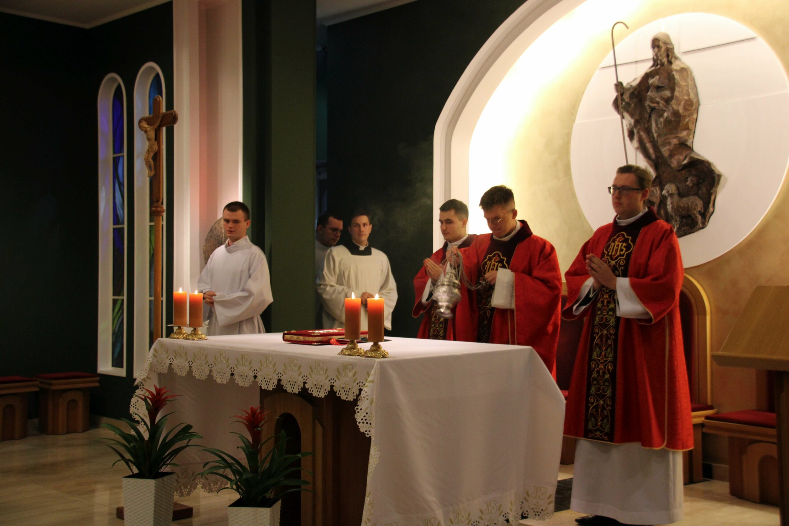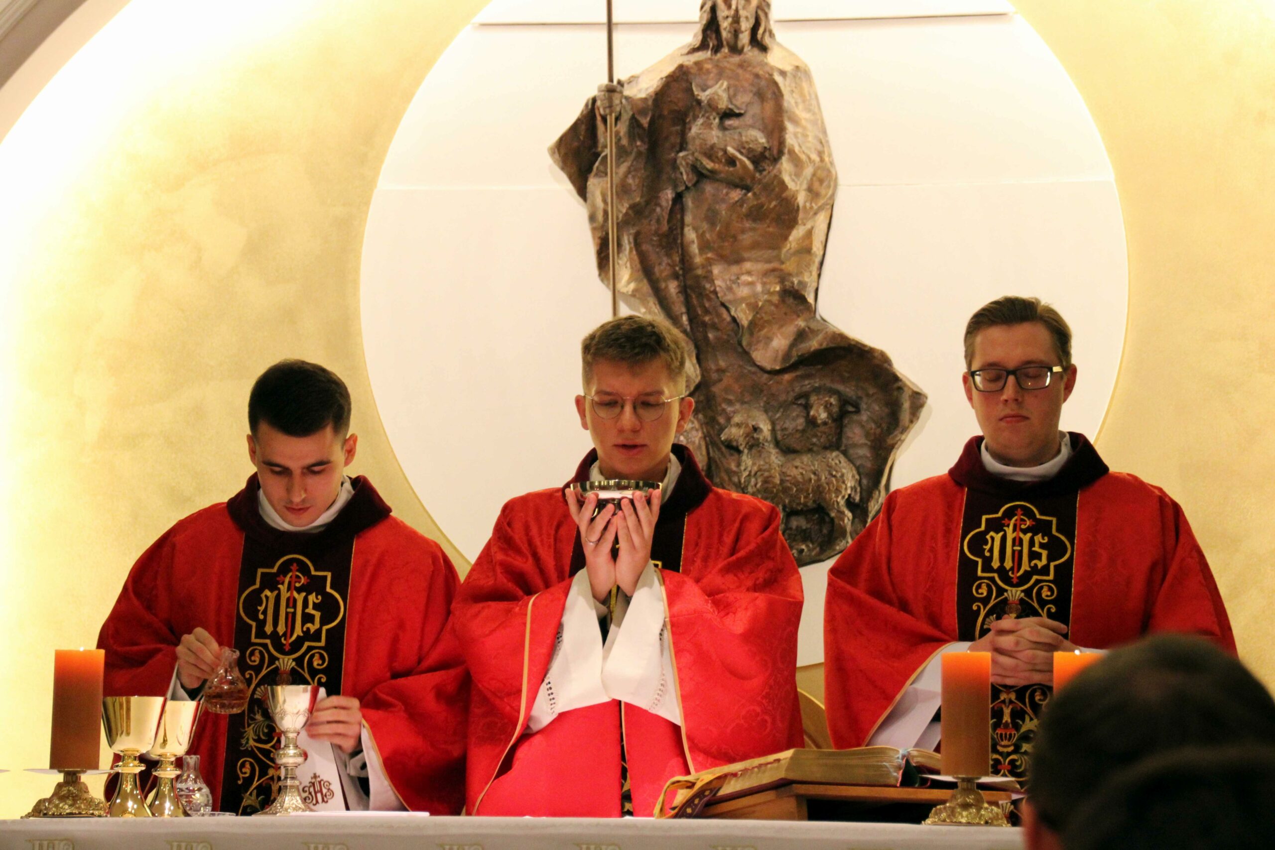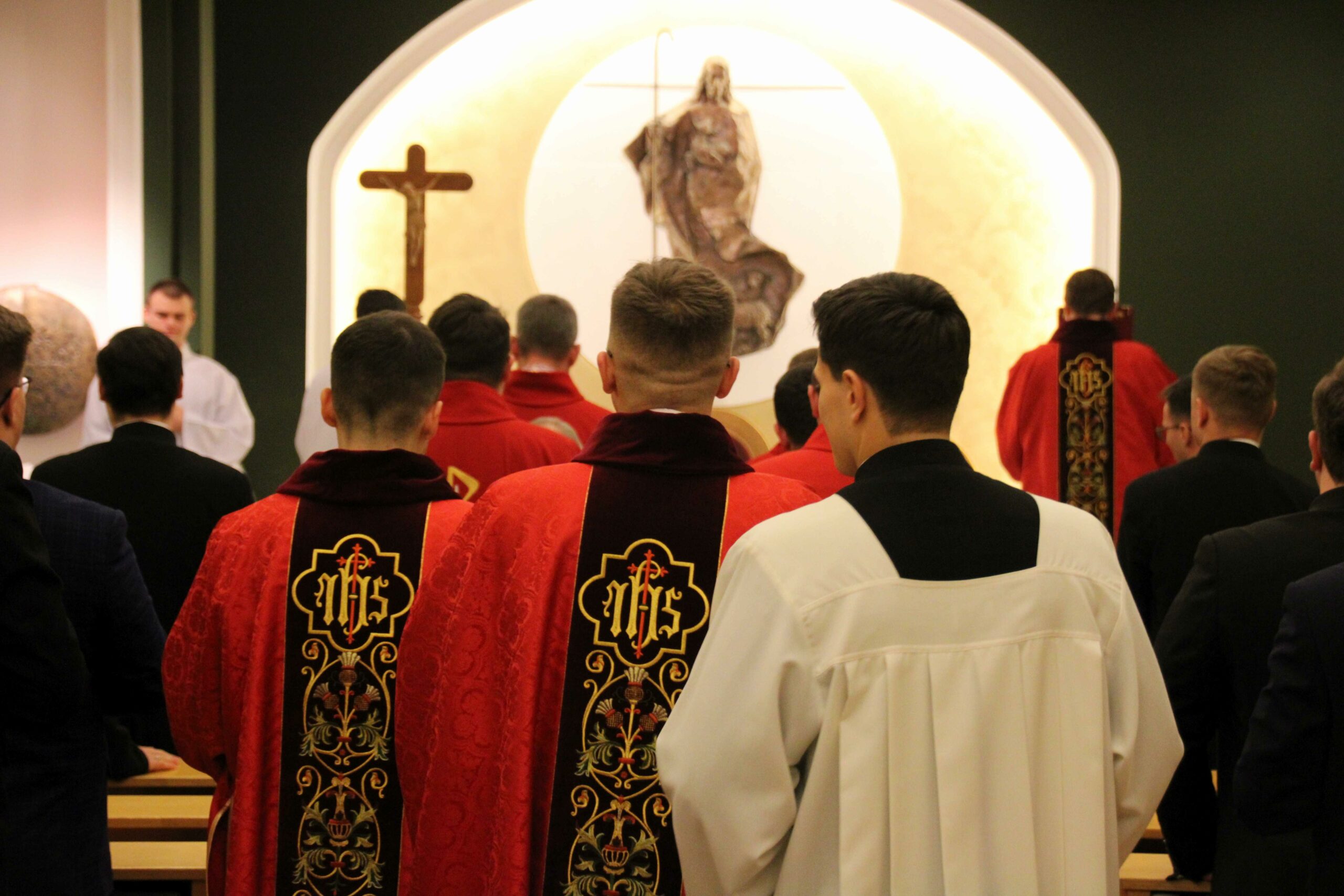 W ostatni dzień listopada, czyli święto Andrzeja Apostoła, naszymi gośćmi byli księża: Marcin Płóciennik, Bartłomiej Dolata oraz Maciej Zajdowicz – „emerytowani” kantorzy seminaryjni. Na początku koncelebrowanej Eucharystii ksiądz rektor Jan Frąckowiak przywitał absolwentów naszego Seminarium, którzy w czasach swej formacji, wraz z księdzem profesorem Mariuszem Białkowskim, odpowiedzialni byli za rozwój umiejętności śpiewu alumnów.