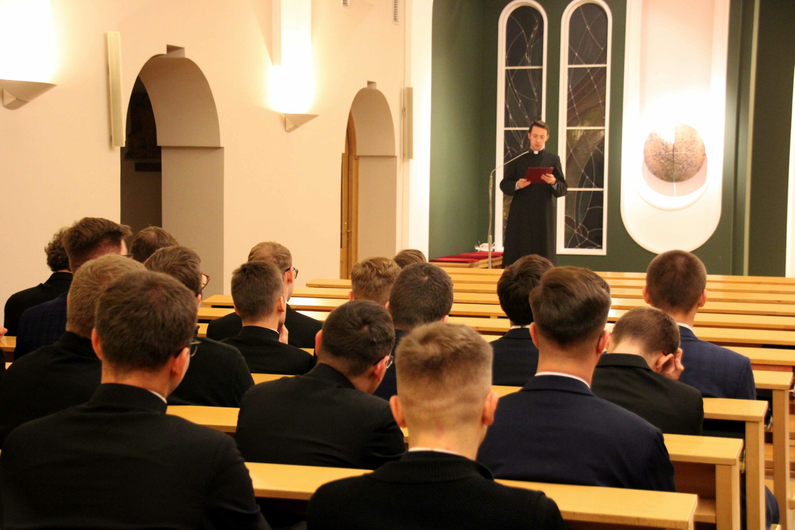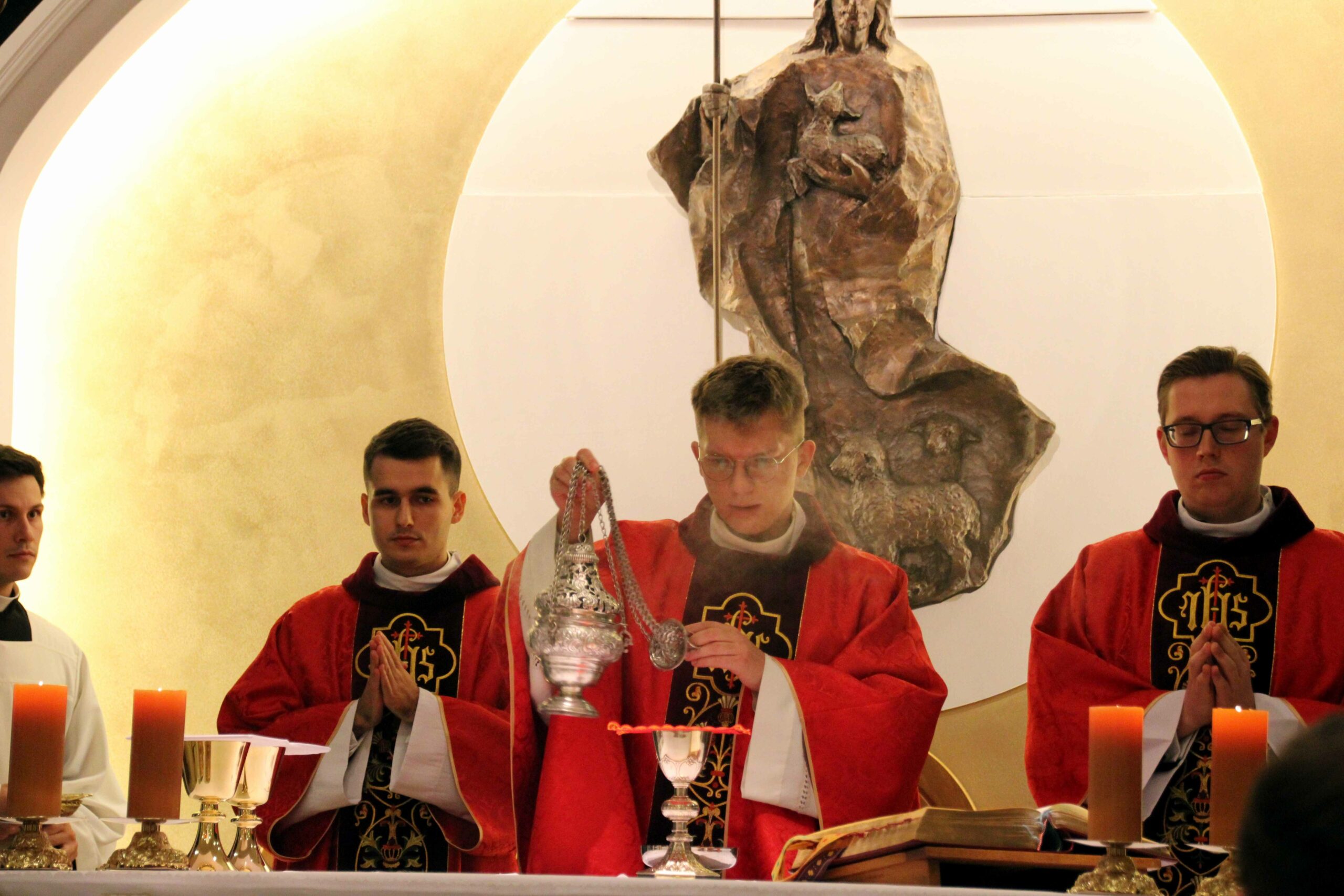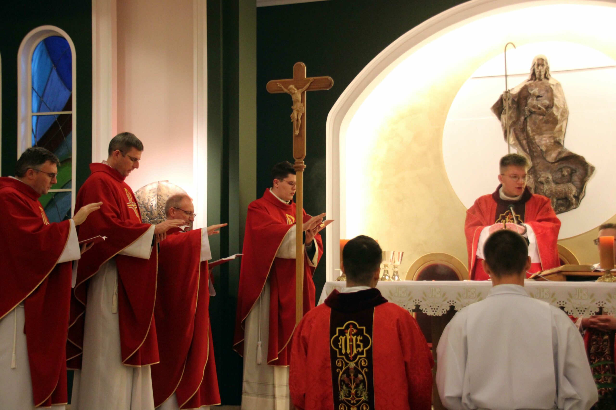 W ostatni dzień listopada, czyli święto Andrzeja Apostoła, naszymi gośćmi byli księża: Marcin Płóciennik, Bartłomiej Dolata oraz Maciej Zajdowicz – „emerytowani” kantorzy seminaryjni. Na początku koncelebrowanej Eucharystii ksiądz rektor Jan Frąckowiak przywitał absolwentów naszego Seminarium, którzy w czasach swej formacji, wraz z księdzem profesorem Mariuszem Białkowskim, odpowiedzialni byli za rozwój umiejętności śpiewu alumnów.