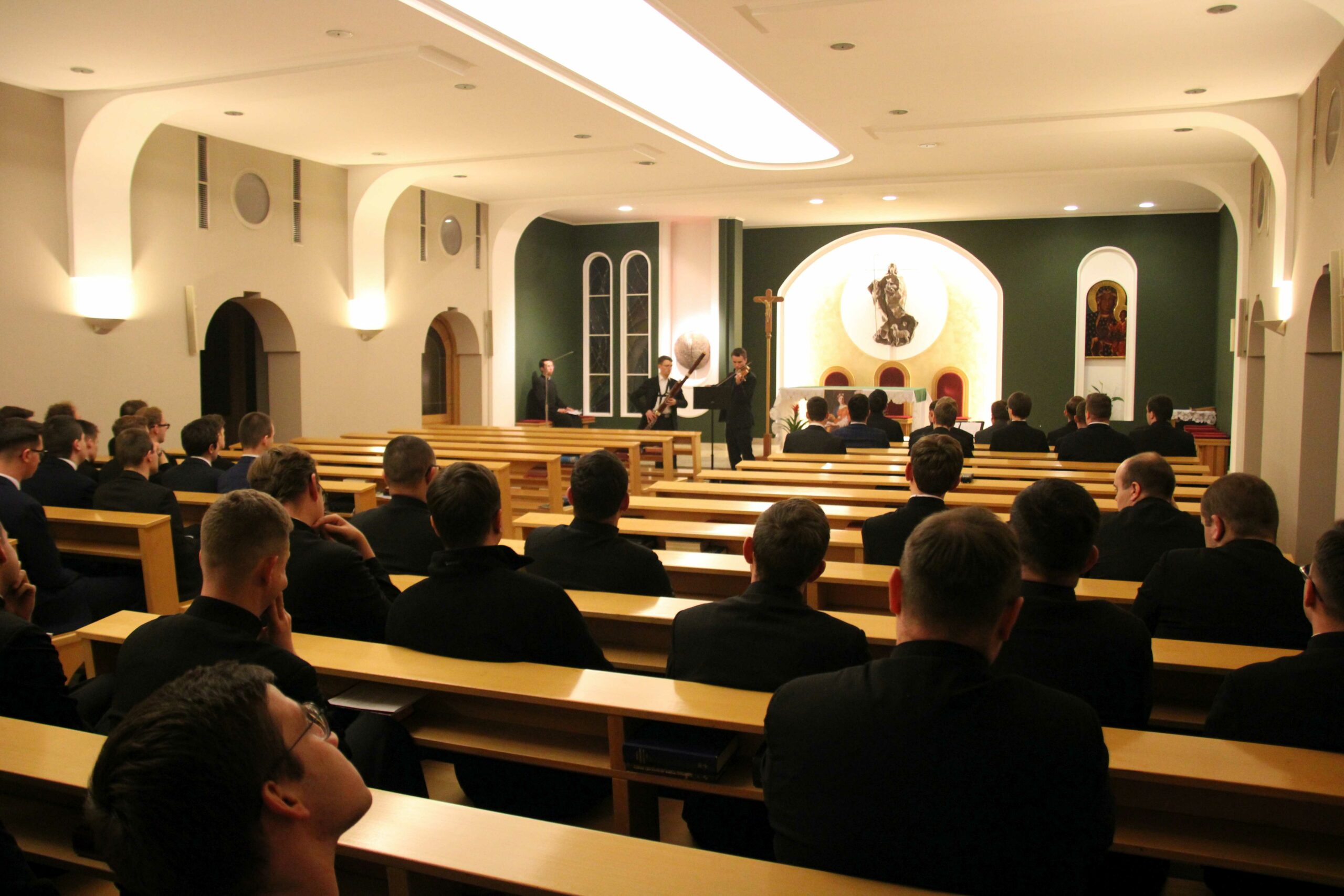 Po wspólnej kolacji zebraliśmy się ponownie w kaplicy pw. Chrystusa Dobrego Pasterza, gdzie schola seminaryjna „Inclina aurem” pod batutą księdza Szymona Bajona oraz klerycy wykonujący utwory na organach, fagocie i skrzypcach zaprezentowali koncert pt. Wspólną drogą.