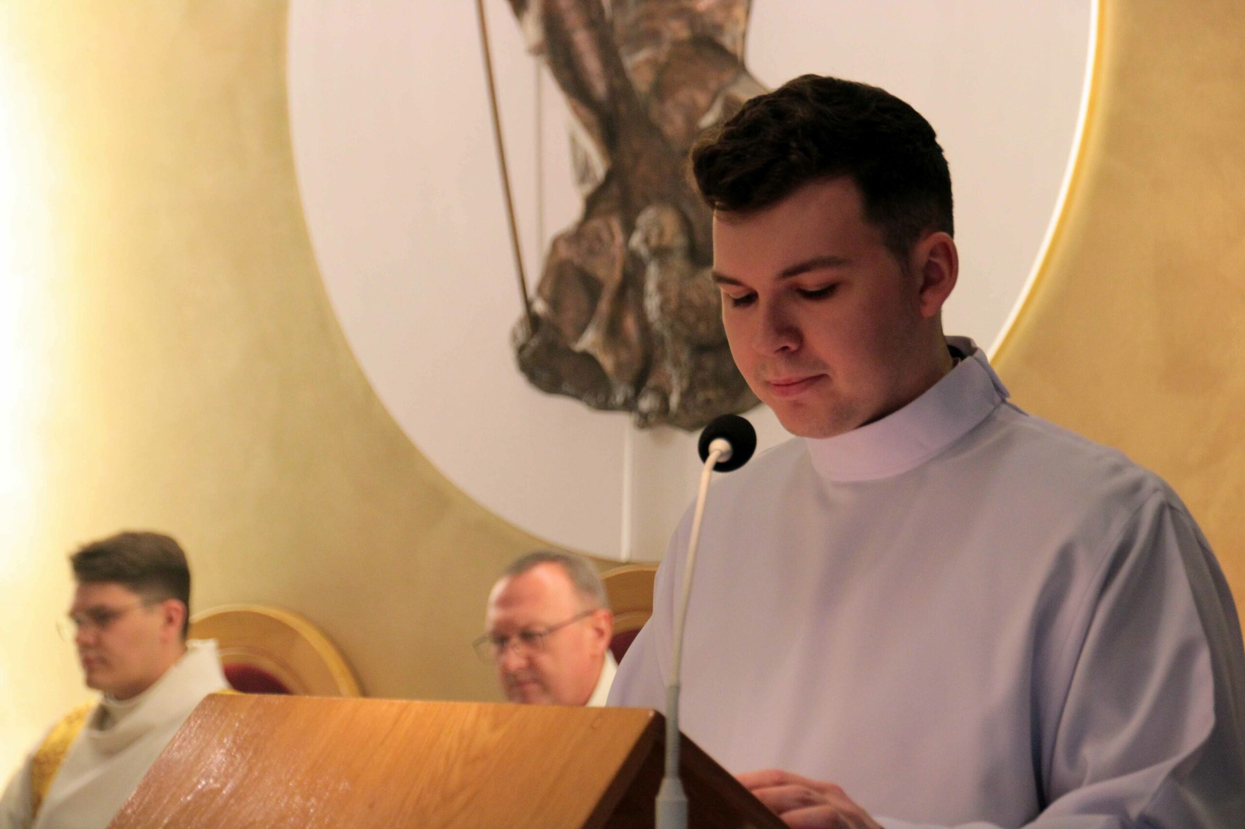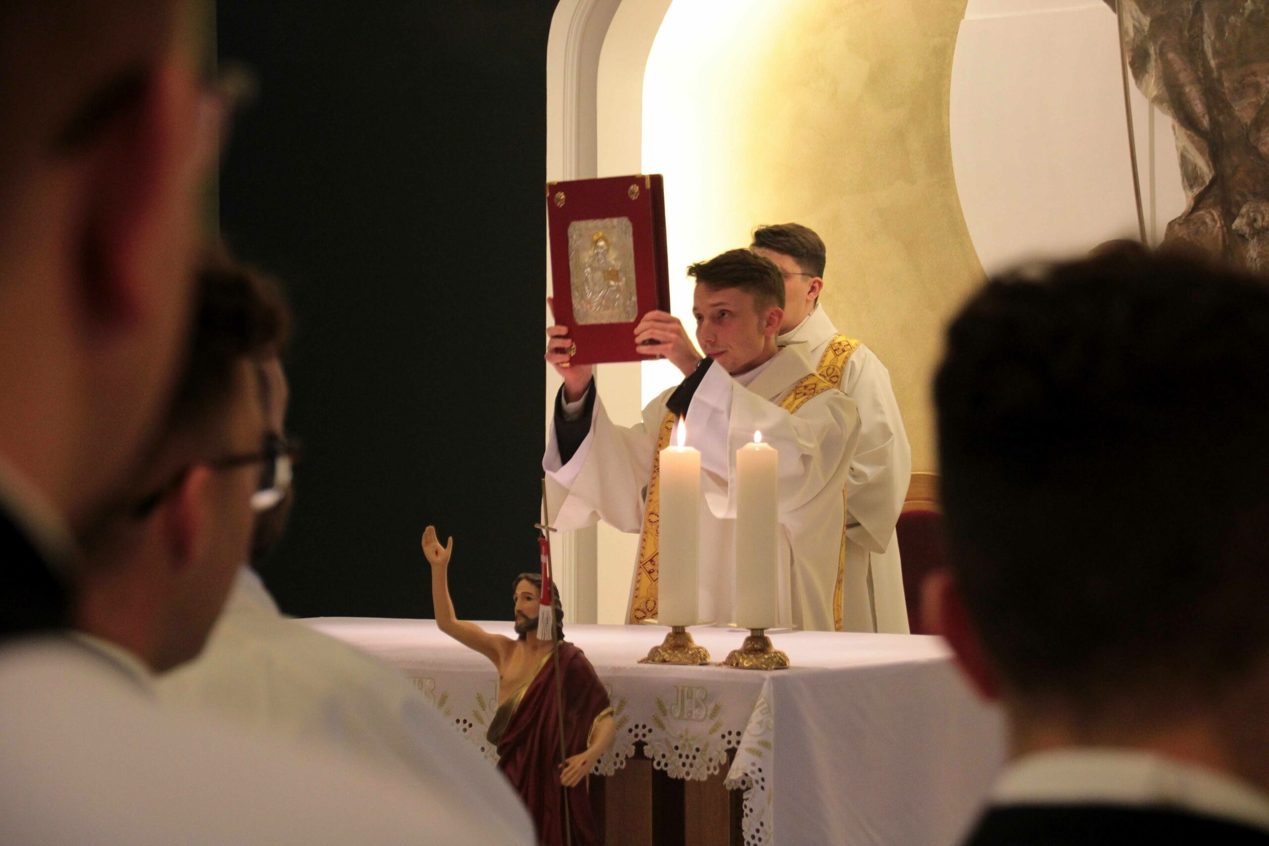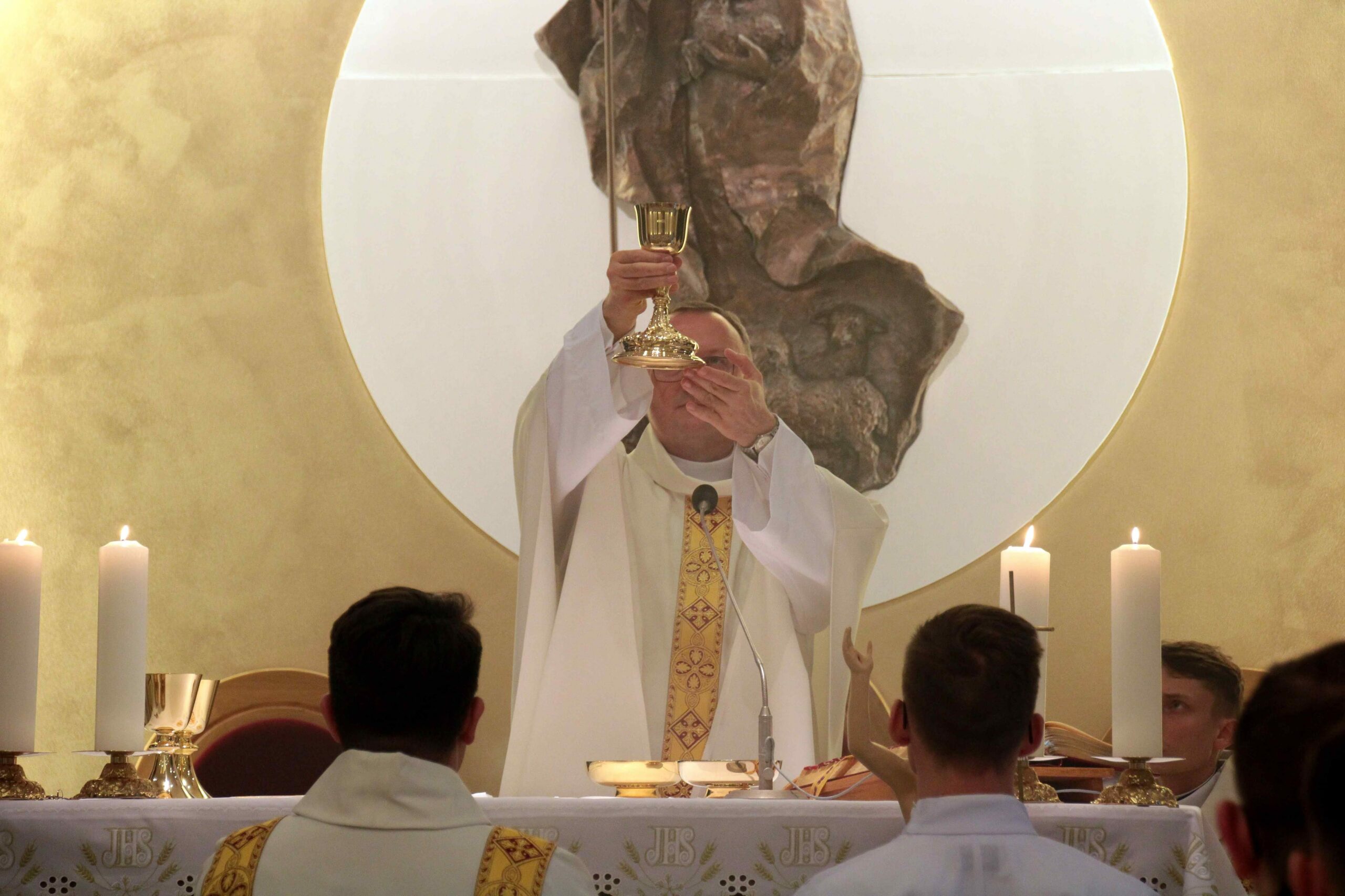 Kolejnym czwartkowym gościem z diecezji bydgoskiej był ksiądz infułat Mirosław Gogolik, który pełni funkcję wikariusza biskupiego ds. katechetycznych i szkół katolickich oraz ds. formacji kapłańskiej, dyrektora Wydziału Katechizacji i Szkół Katolickich Kurii Diecezjalnej oraz jest profesorem UAM w zakładzie teologii praktycznej, wykładającym na Wydziale Teologicznym UAM. Na początku Eucharystii został przywitany przez księdza prefekta Pawła Białczyka, który prosił księdza Mirosława o modlitwę w intencji Seminarium oraz o nowe powołania z naszych trzech diecezji.