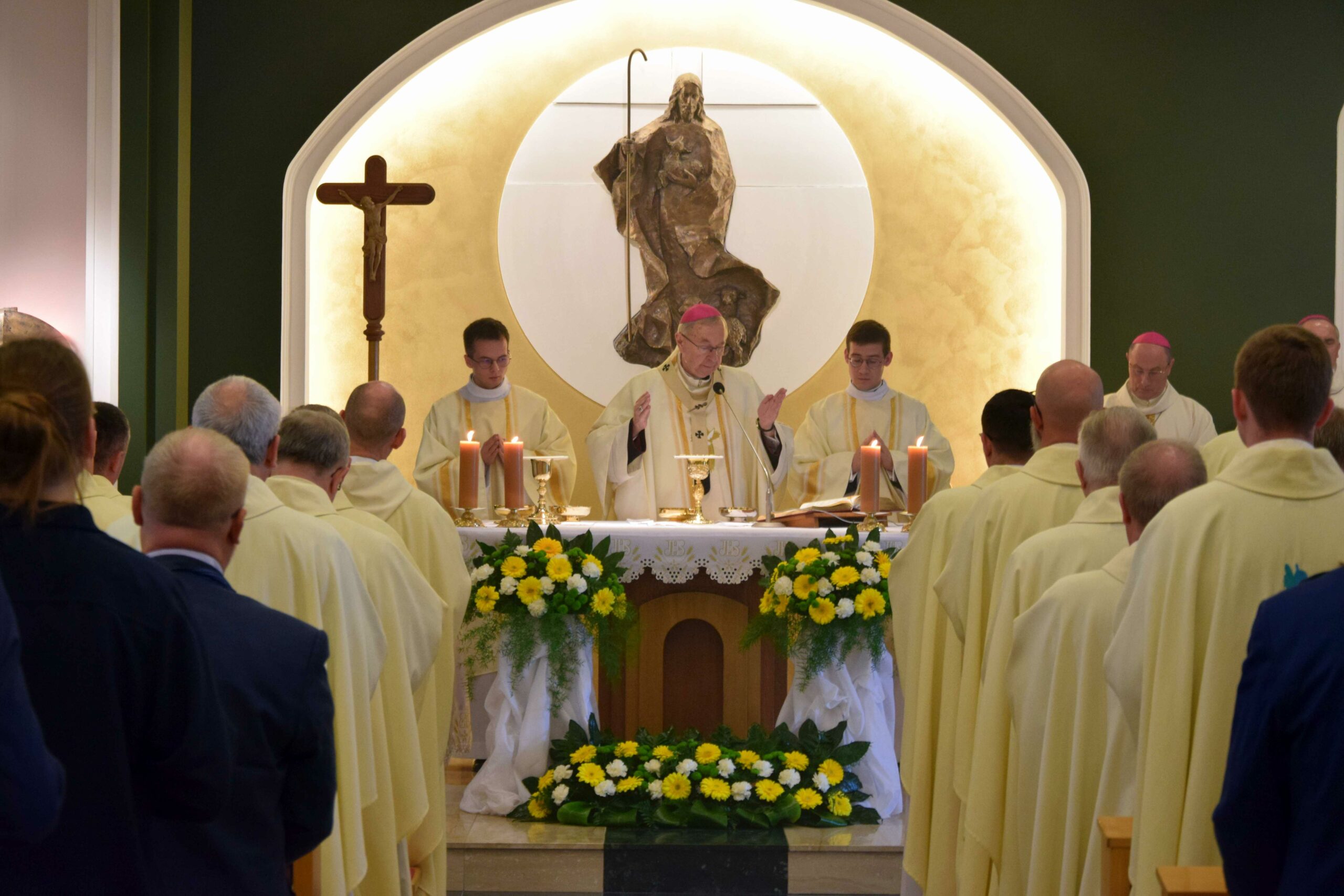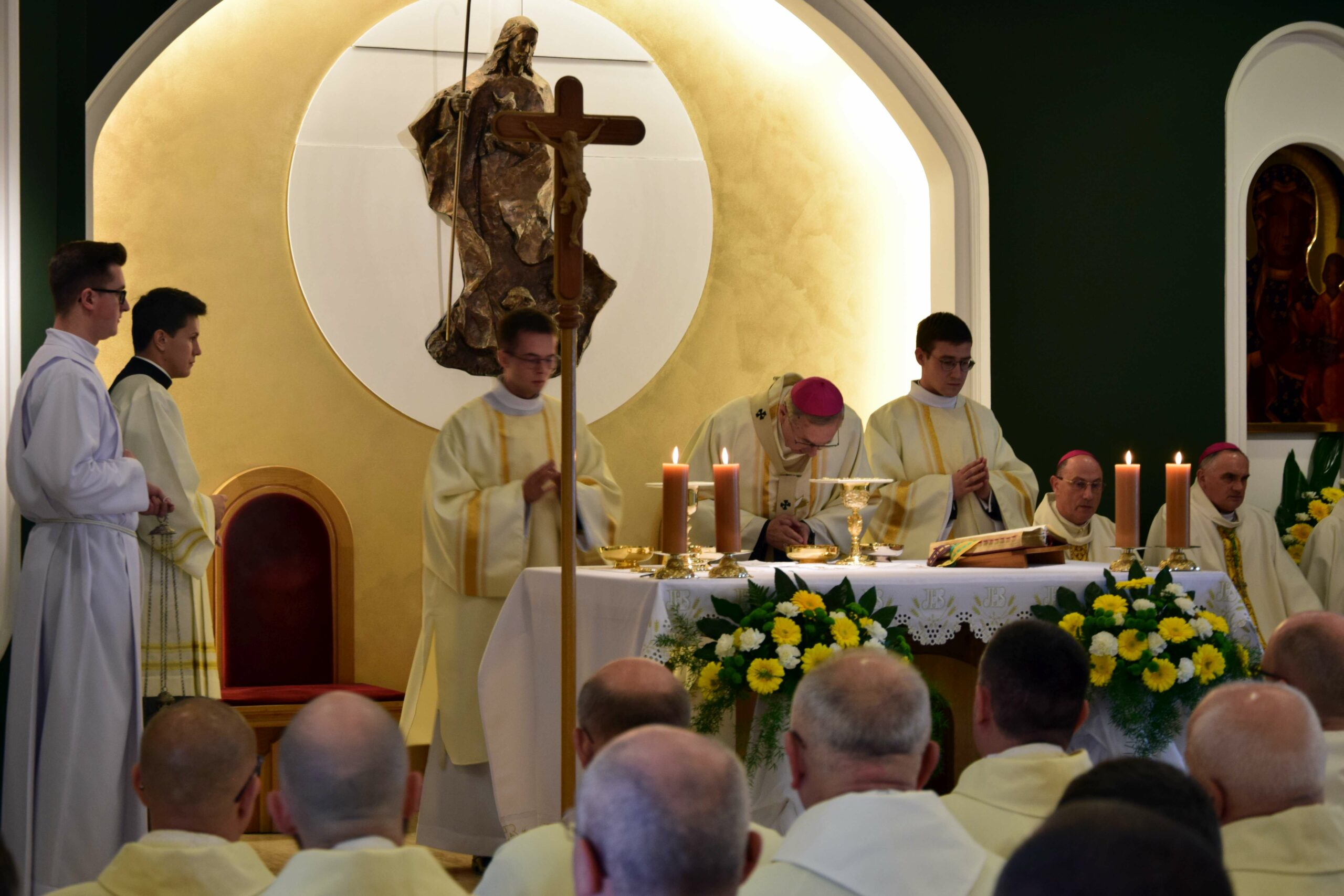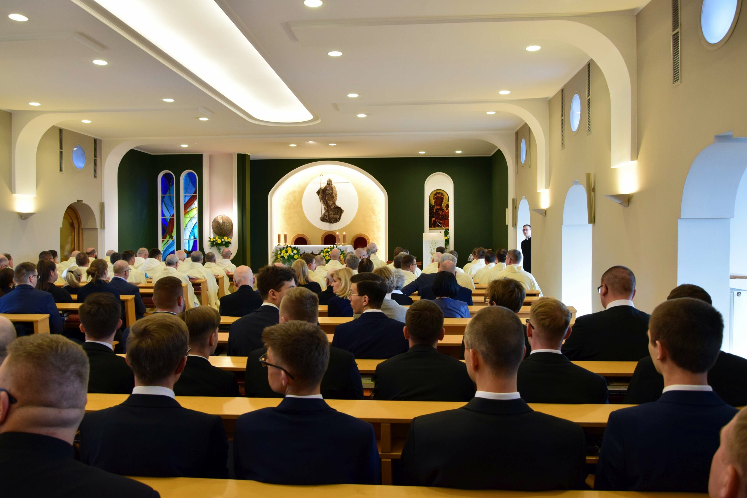 Piątek był dla naszej wspólnoty dniem uroczystej inauguracji nowego roku formacyjnego. Razem z nami rozpoczęcie roku akademickiego świętował również Wydział Teologiczny Uniwersytetu im. Adama Mickiewicza, który w tym roku obchodzi 25. rocznicę powstania. Eucharystii w kaplicy pw. Chrystusa Dobrego Pasterza przewodniczył arcybiskup metropolita poznański Stanisław Gądecki, a koncelebrowali arcybiskup metropolita gnieźnieński i prymas Polski Wojciech Polak, biskup kaliski Damian Bryl, biskup bydgoski Krzysztof Włodarczyk, biskupi pomocniczy: Grzegorz Balcerek, Jan Glapiak, Łukasz Buzun i Radosław Orchowicz, księża przełożeni oraz przełożeni innych seminariów, profesorowie, dziekan oraz wykładowcy Wydziału Teologicznego UAM, kanonicy Kapituły Metropolitalnej, proboszczowie kleryków roku propedeutycznego i inni zaproszeni księża. Oprócz kleryków we Mszy uczestniczyli również goście-przyjaciele naszego Seminarium z pozostałych poznańskich Uniwersytetów, Towarzystwa Przyjaciół ASD, a także nasi psychoterapeuci, prowadzący warsztaty interpersonalne w pierwszych latach formacji. Śpiewem towarzyszyła nam schola seminaryjna „Inclina aurem” pod batutą ks. prof. Mariusza Białkowskiego. Homilię wygłosił prymas Polski, wskazując na istotność tworzenia wspólnoty seminaryjnej na wzór wspólnoty uczniów Chrystusa, którzy przygotowują się do podjęcia misji w świecie.