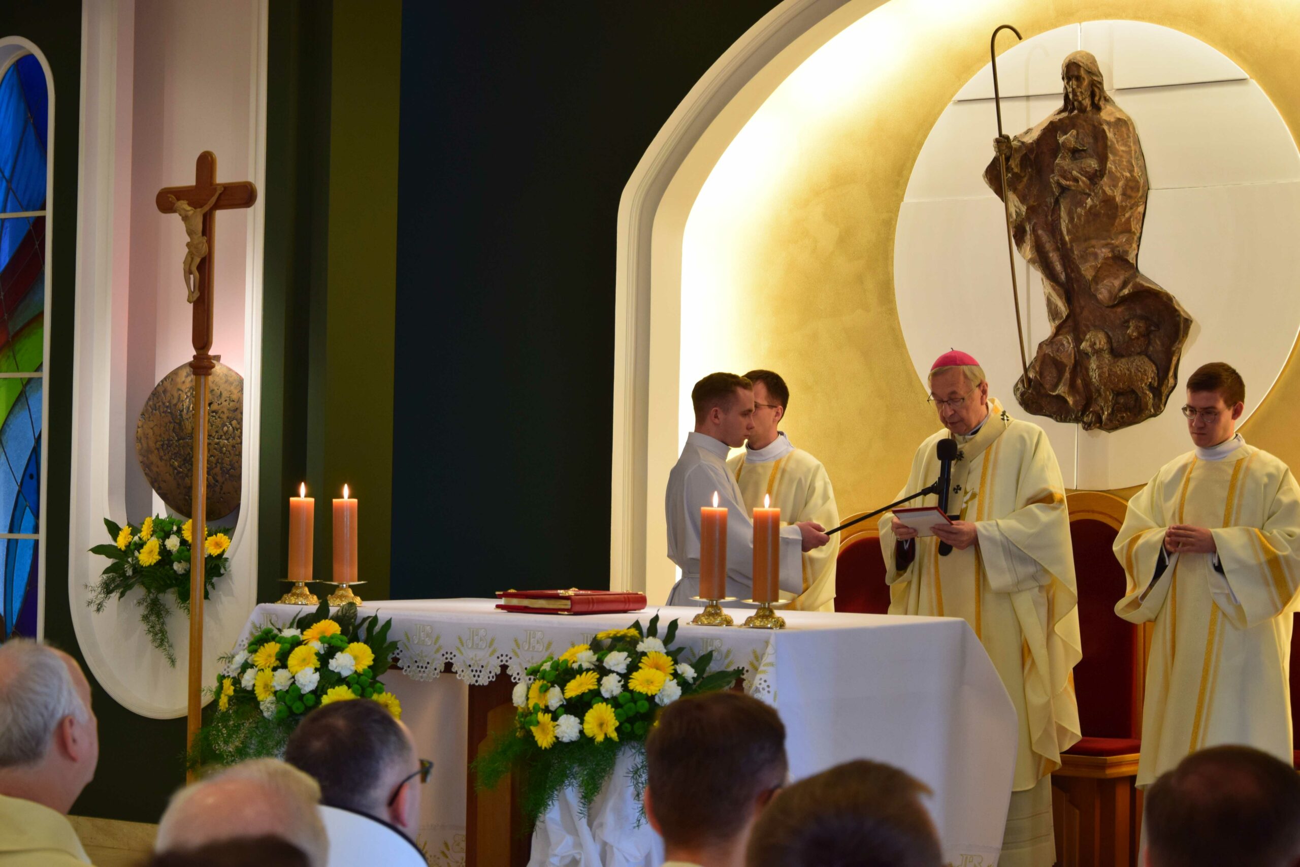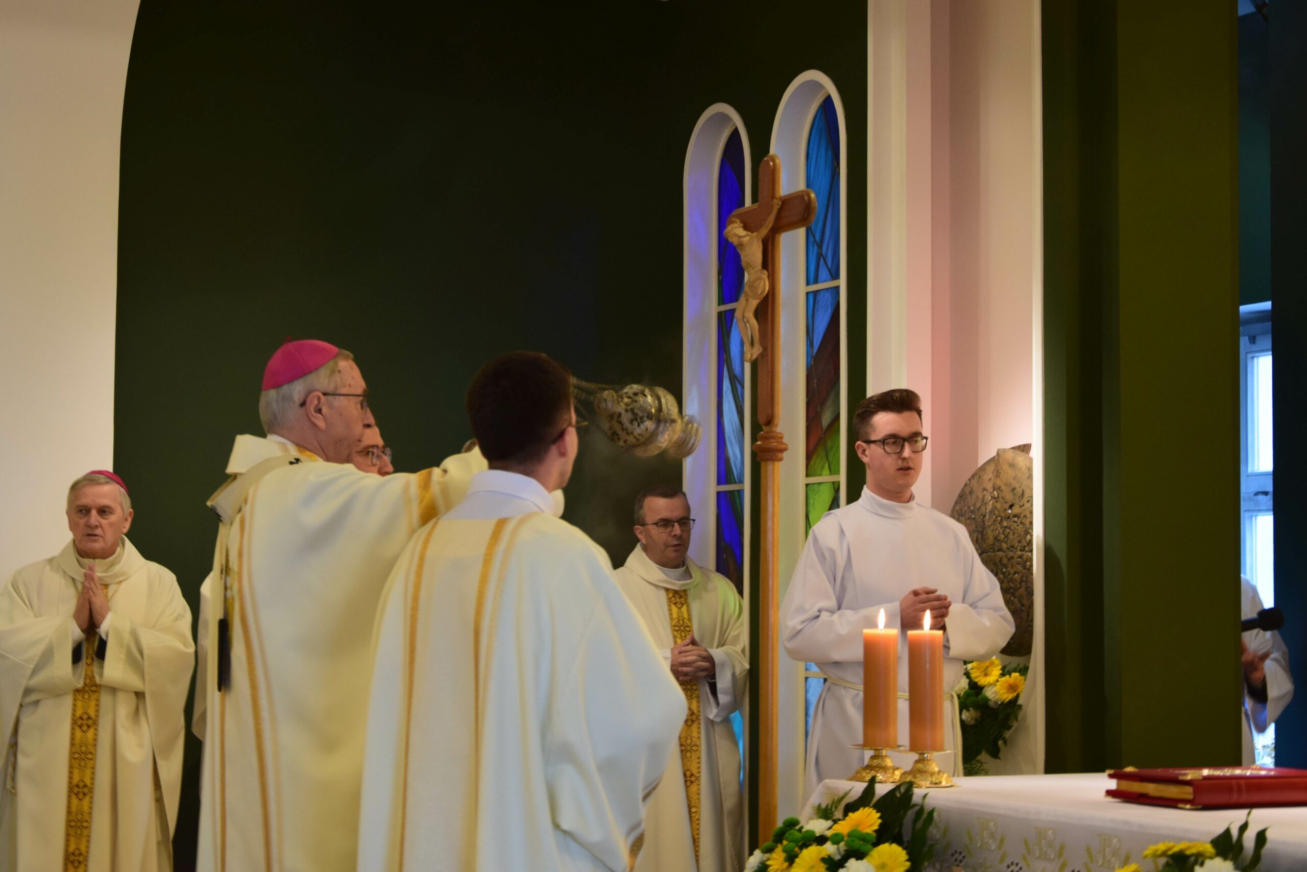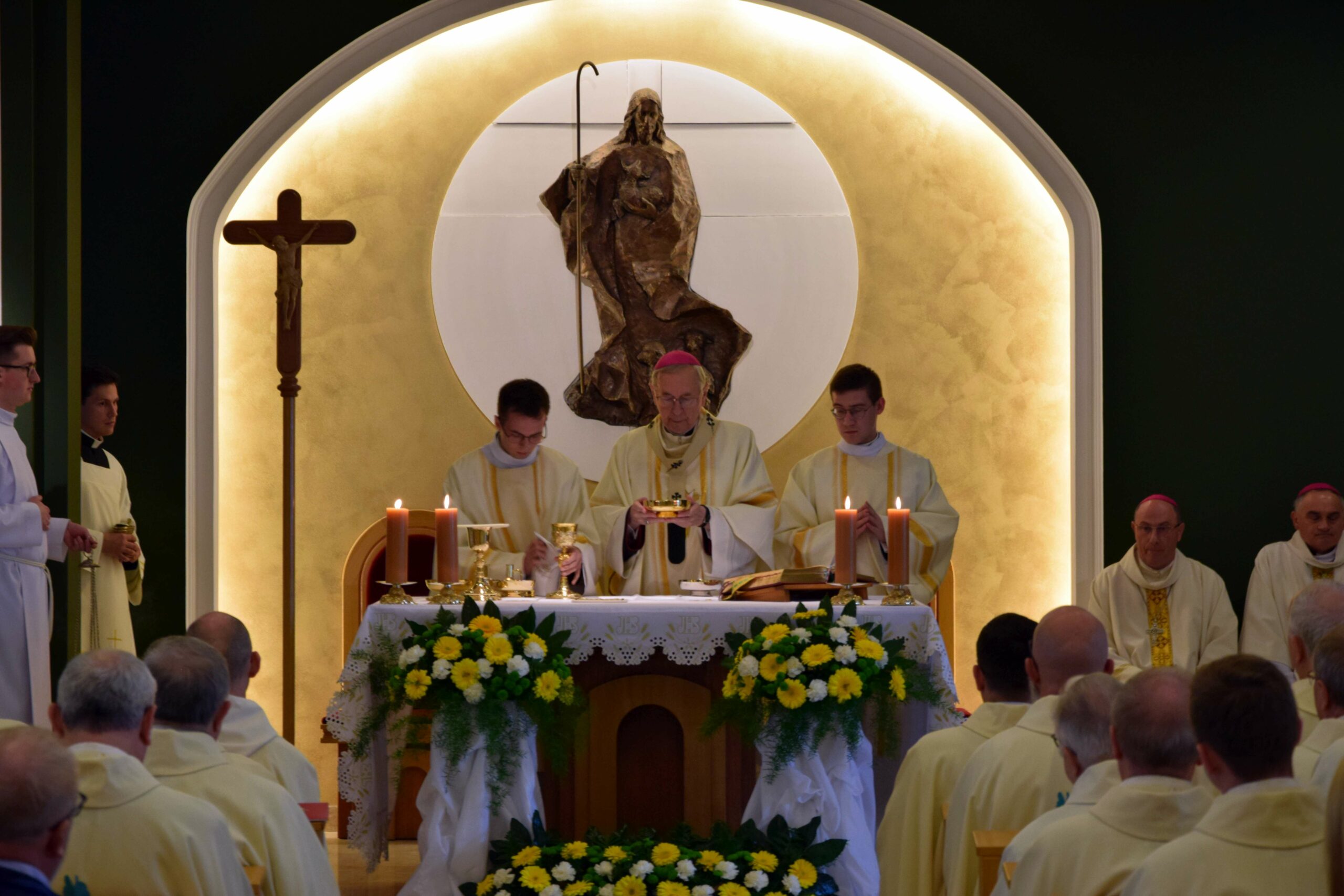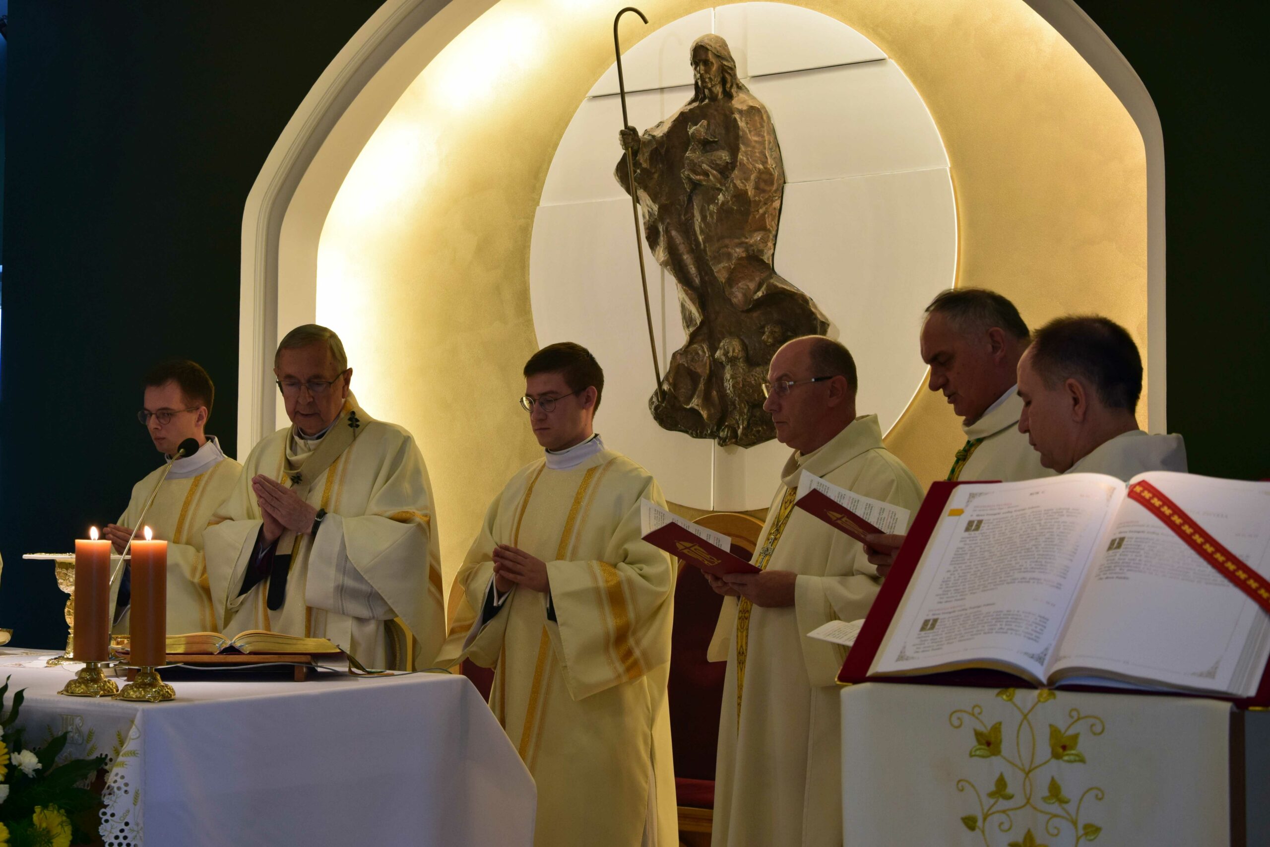 Piątek był dla naszej wspólnoty dniem uroczystej inauguracji nowego roku formacyjnego. Razem z nami rozpoczęcie roku akademickiego świętował również Wydział Teologiczny Uniwersytetu im. Adama Mickiewicza, który w tym roku obchodzi 25. rocznicę powstania. Eucharystii w kaplicy pw. Chrystusa Dobrego Pasterza przewodniczył arcybiskup metropolita poznański Stanisław Gądecki, a koncelebrowali arcybiskup metropolita gnieźnieński i prymas Polski Wojciech Polak, biskup kaliski Damian Bryl, biskup bydgoski Krzysztof Włodarczyk, biskupi pomocniczy: Grzegorz Balcerek, Jan Glapiak, Łukasz Buzun i Radosław Orchowicz, księża przełożeni oraz przełożeni innych seminariów, profesorowie, dziekan oraz wykładowcy Wydziału Teologicznego UAM, kanonicy Kapituły Metropolitalnej, proboszczowie kleryków roku propedeutycznego i inni zaproszeni księża. Oprócz kleryków we Mszy uczestniczyli również goście-przyjaciele naszego Seminarium z pozostałych poznańskich Uniwersytetów, Towarzystwa Przyjaciół ASD, a także nasi psychoterapeuci, prowadzący warsztaty interpersonalne w pierwszych latach formacji. Śpiewem towarzyszyła nam schola seminaryjna „Inclina aurem” pod batutą ks. prof. Mariusza Białkowskiego. Homilię wygłosił prymas Polski, wskazując na istotność tworzenia wspólnoty seminaryjnej na wzór wspólnoty uczniów Chrystusa, którzy przygotowują się do podjęcia misji w świecie.