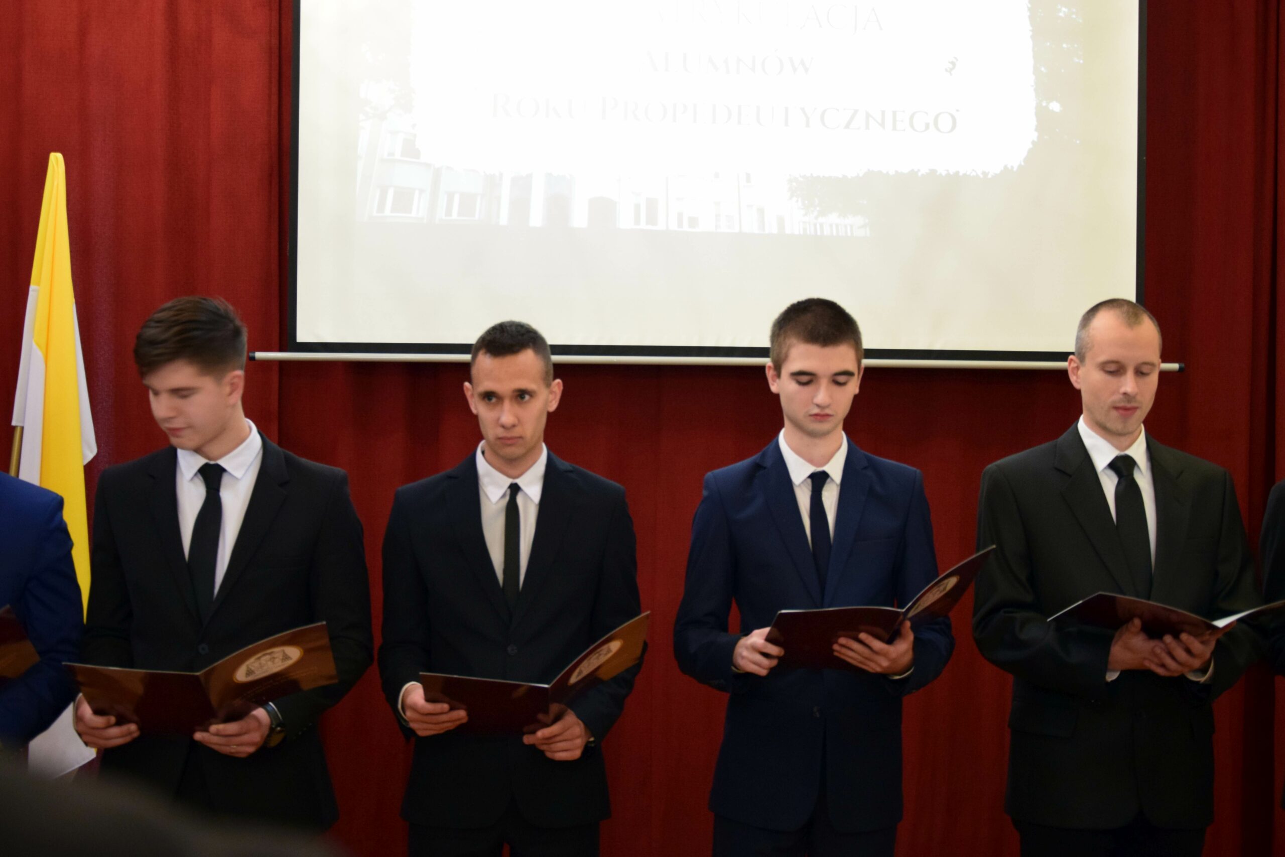 W drugiej części inauguracji zebraliśmy się w auli, gdzie po odśpiewaniu hymnu Gaude Mater Polonia ksiądz rektor Jan Frąckowiak oficjalnie uznał rok formacyjny 2023/2024 za rozpoczęty. W swoim wystąpieniu przypominał, że nasza wspólnota jest wciąż jedną z największych w Polsce – w związku z dołączeniem kleryków z archidiecezji gnieźnieńskiej. Ksiądz wicerektor Tomasz Krzysztofiak poprowadził immatrykulację, czyli zaprzysiężenie 9 kleryków roku propedeutycznego, którzy pierwszy rok swojej formacji spędzą w Kaliszu pod opieką prefektów roku propedeutycznego oraz ojców duchownych.