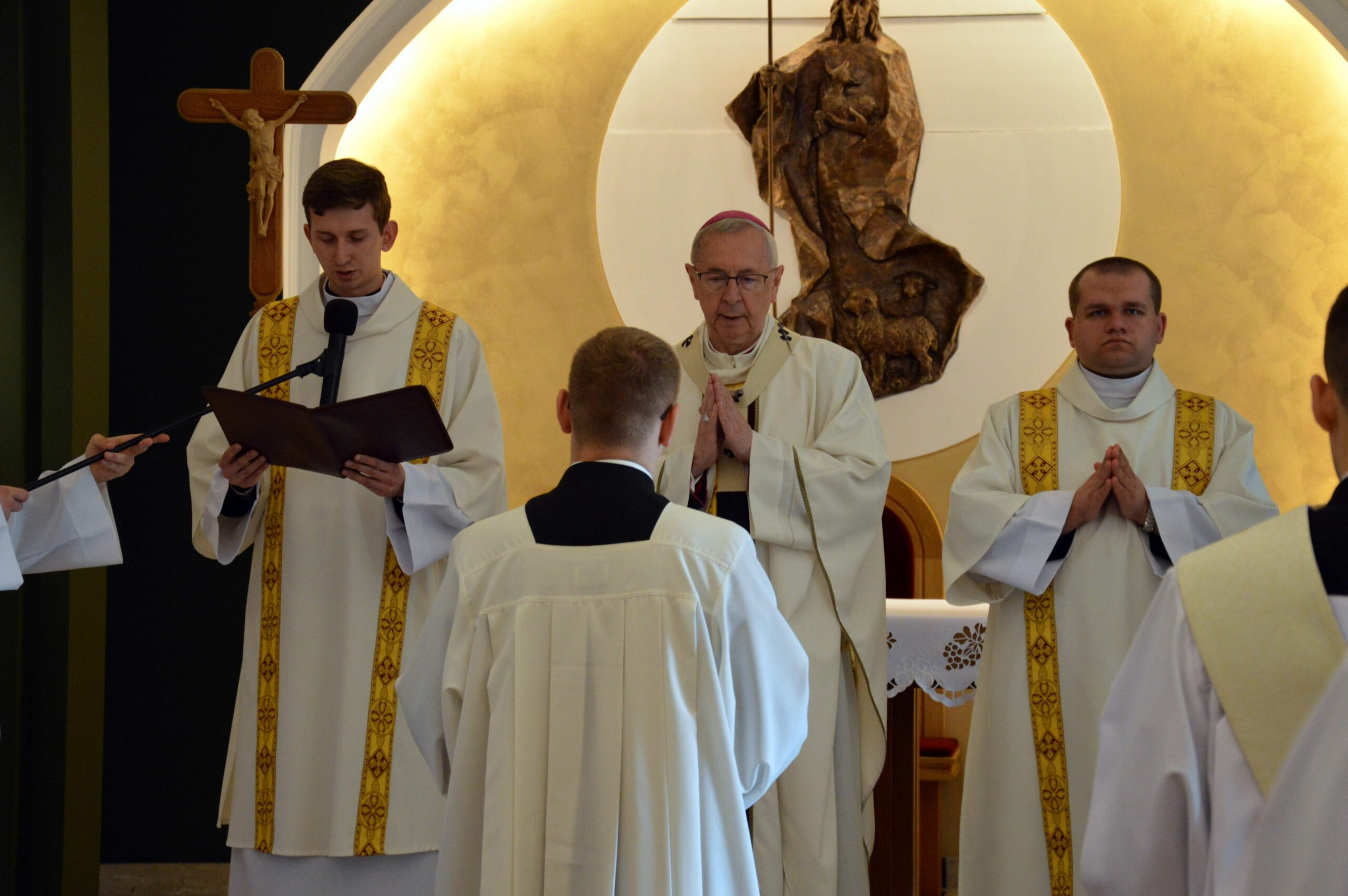 W poniedziałkowy poranek cała seminaryjna wspólnota zebrała się w kaplicy pw. Chrystusa Dobrego Pasterza, aby uczestniczyć w Eucharystii połączonej z obrzędem ustanowienia nowego lektora – kleryka Wojciecha Króla z kursu III. Mszy Świętej przewodniczył i homilię wygłosił arcybiskup metropolita poznański Stanisław Gądecki. Na początku ksiądz rektor Jan Frąckowiak przywitał gospodarza naszego Domu i zachęcił wszystkich do modlitwy nie tylko w intencji nowego lektora, ale również głównego celebransa, który obchodzi złoty jubileusz kapłaństwa.