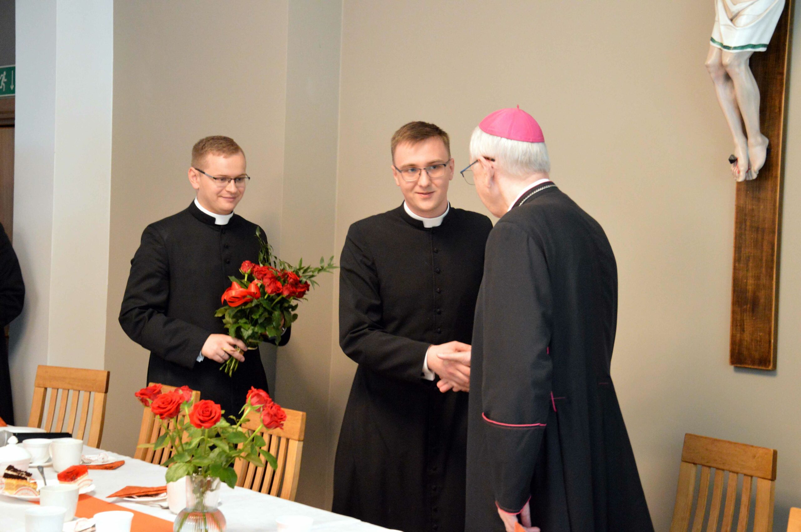 Po wspólnym śniadaniu seminaryjny senior złożył złotemu jubilatowi życzenia w imieniu całej wspólnoty.