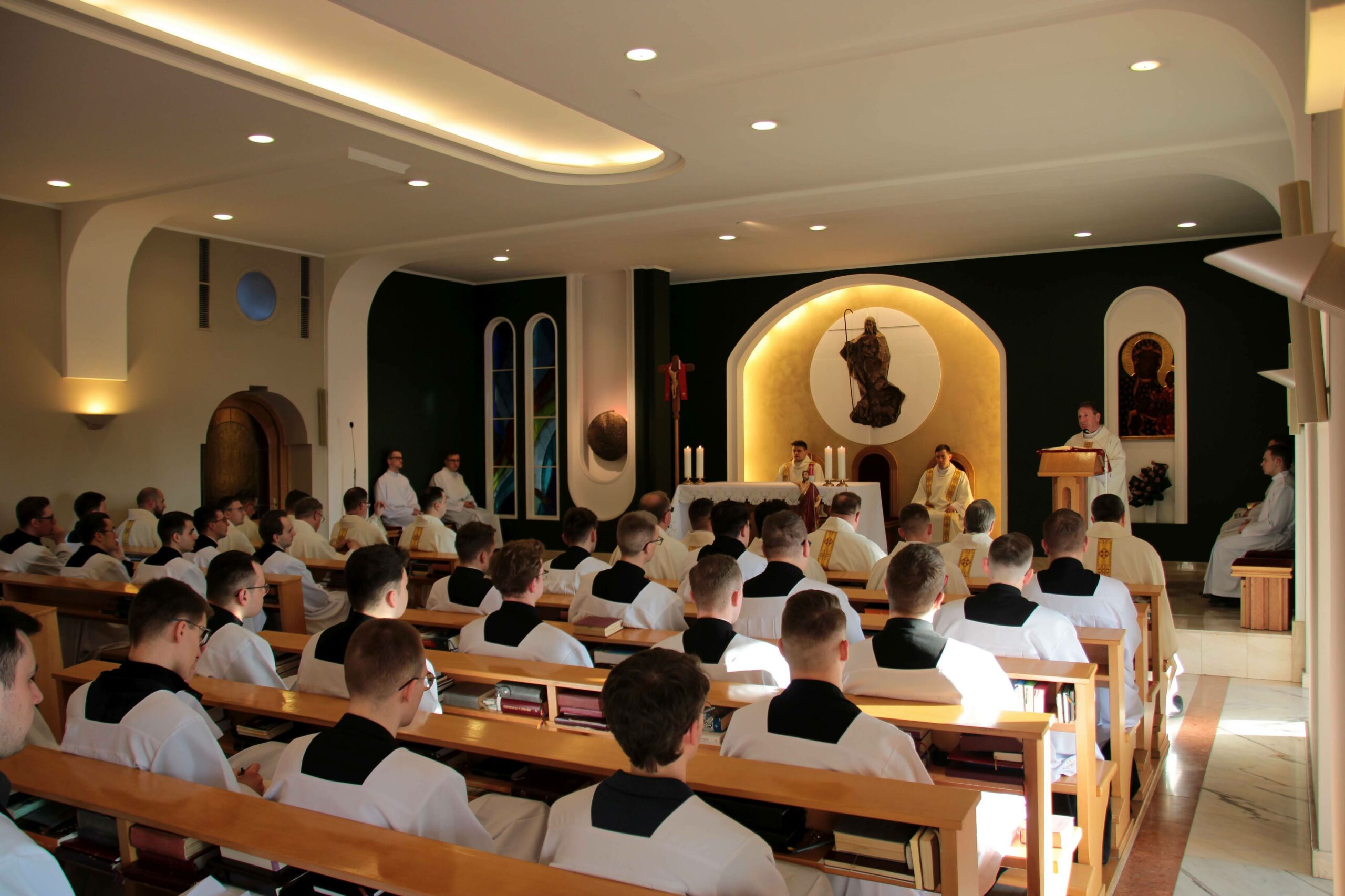 Podczas środowej porannej Mszy Świętej razem z naszą wspólnotą modlili się także dziekani polskich Wydziałów Teologicznych, którzy w dniach 18–19 kwietnia przebywali w Poznaniu na dorocznym zjeździe. Eucharystii przewodniczył i homilię wygłosił ksiądz prałat Krzysztof Pawlina, profesor nauk teologicznych, rektor Akademii Katolickiej w Warszawie oraz przewodniczący Komitetu Nauk Teologicznych Polskiej Akademii Nauk, który w latach 1997–2010 pełnił funkcję rektora Wyższego Metropolitalnego Seminarium Duchownego w Warszawie. Na początku celebracji wszystkich dziekanów przywitał ksiądz rektor Jan Frąckowiak, a główny celebrans obiecał złożenie Najświętszej Ofiary w intencji całej wspólnoty seminaryjnej.