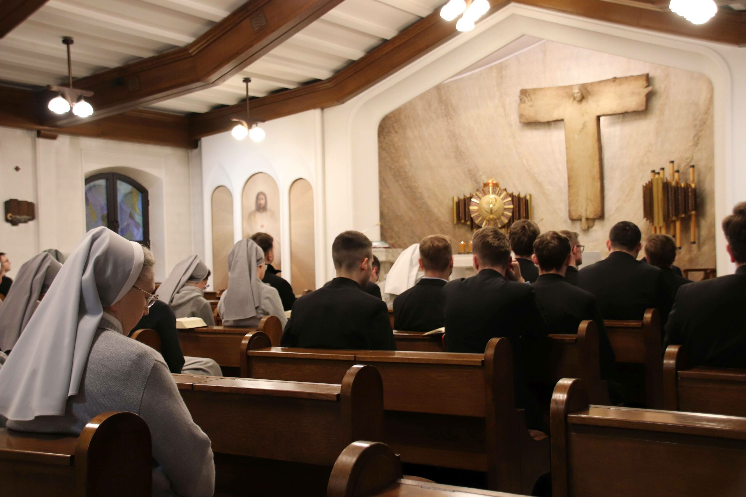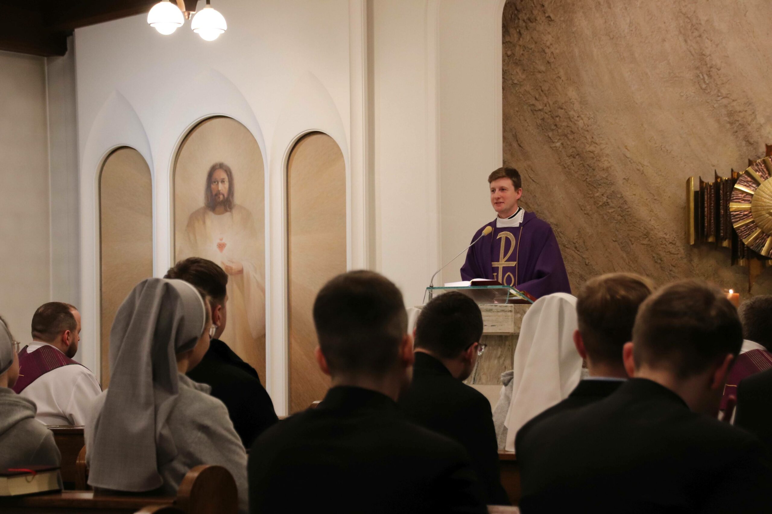 W pierwszy poniedziałek Wielkiego Postu udaliśmy się całą naszą seminaryjną wspólnotą do Domu Głównego Sióstr Misjonarek Chrystusa Króla dla Polonii Zagranicznej na poznańskim Morasku. Koncelebrowanej Eucharystii w klasztornej kaplicy przewodniczył ksiądz prefekt Paweł Białczyk, który wygłosił także homilię. Zwracał w niej uwagę między innymi na to, iż na drodze do Nieba nie możemy iść w pojedynkę, ale we wspólnocie. W czasie wspólnej modlitwy księża przełożeni składali Najświętszą Ofiarę w intencji zgromadzenia zakonnego Sióstr Misjonarek Chrystusa Króla oraz rychłej beatyfikacji Czcigodnego Sługi Bożego o. Igancego Posadzego SChr.