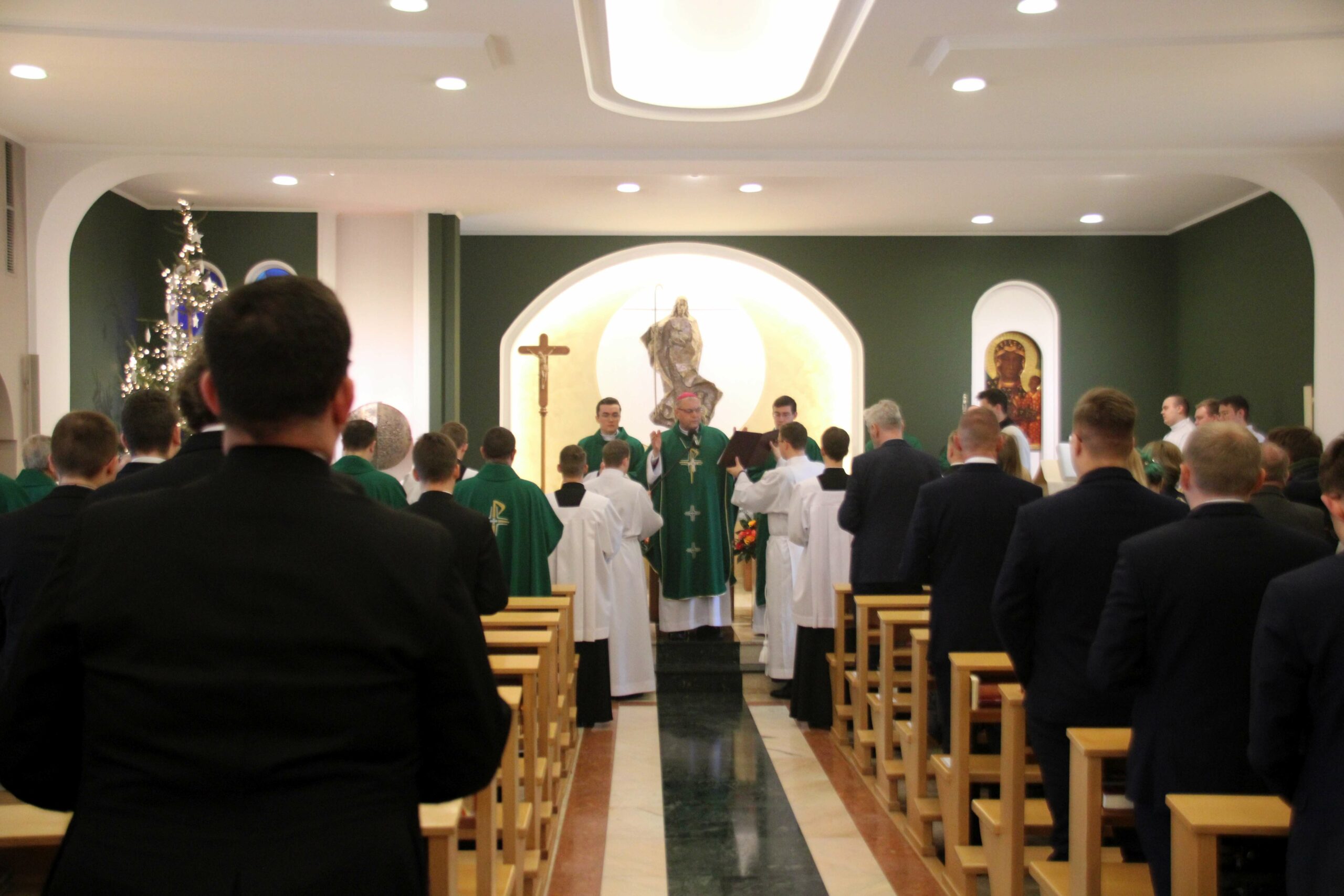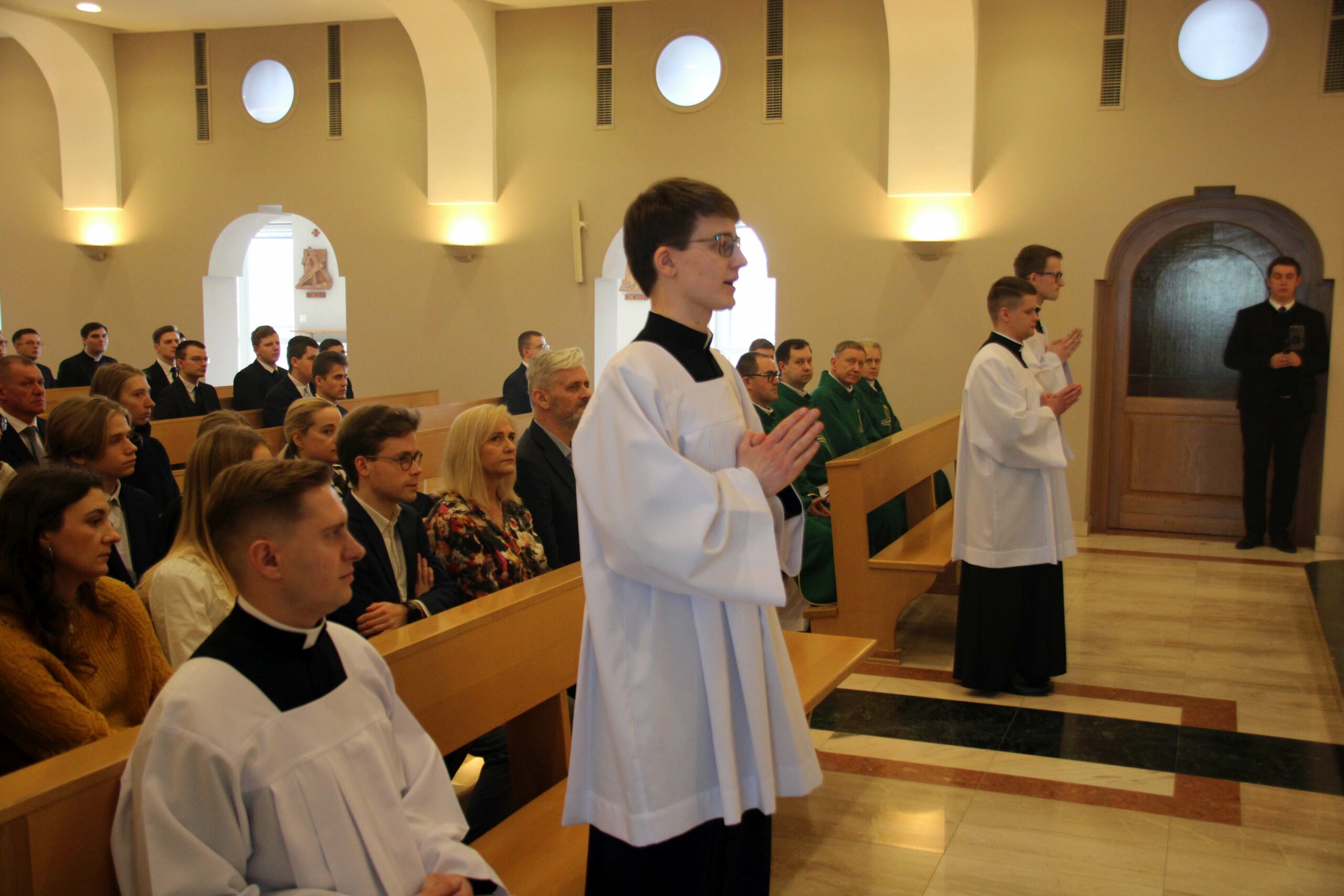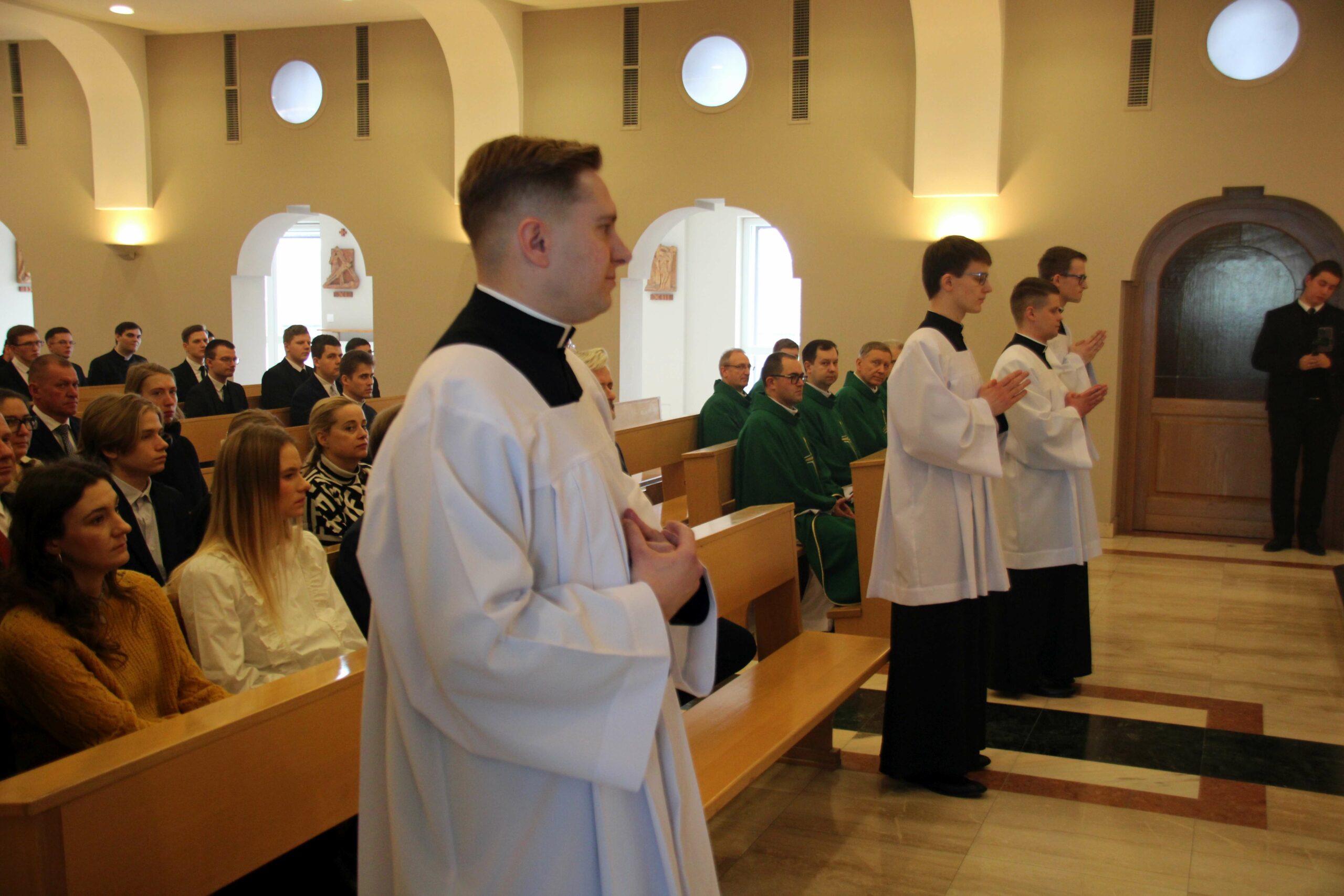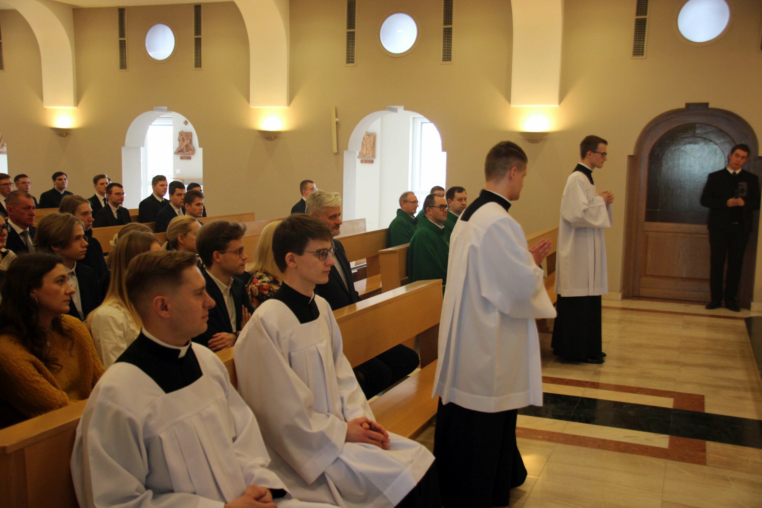Uroczystej Eucharystii z obrzędem ustanowienia czterech nowych lektorów w seminaryjnej kaplicy pw. Chrystusa Dobrego Pasterza przewodniczył biskup pomocniczy poznański Jan Glapiak. Koncelebrowali księża przełożeni oraz proboszczowie ustanawianych lektorów, a śpiewem towarzyszyła seminaryjna schola „Inclina aurem” pod batutą księdza profesora Mariusza Białkowskiego. W swojej homilii biskup Jan zachęcał do zintensyfikowania modlitwy kontemplacyjnej na różańcu oraz do zapoznania się z listem apostolskim papieża Jana Pawła II Rosarium Virginis Mariae.