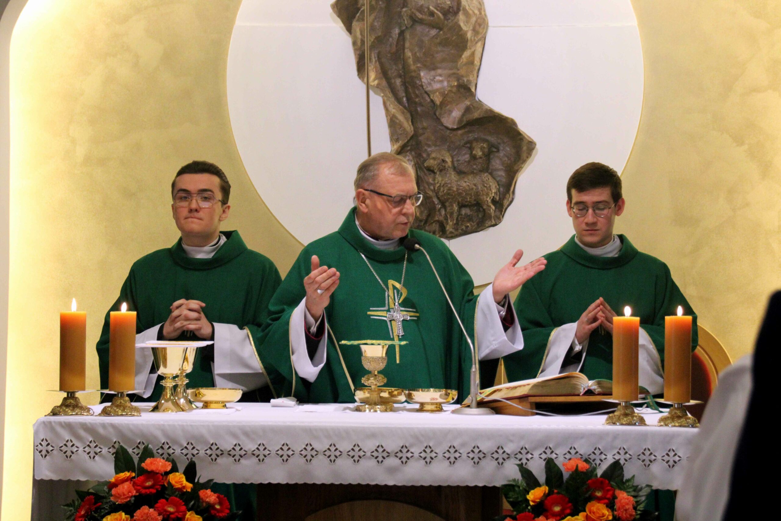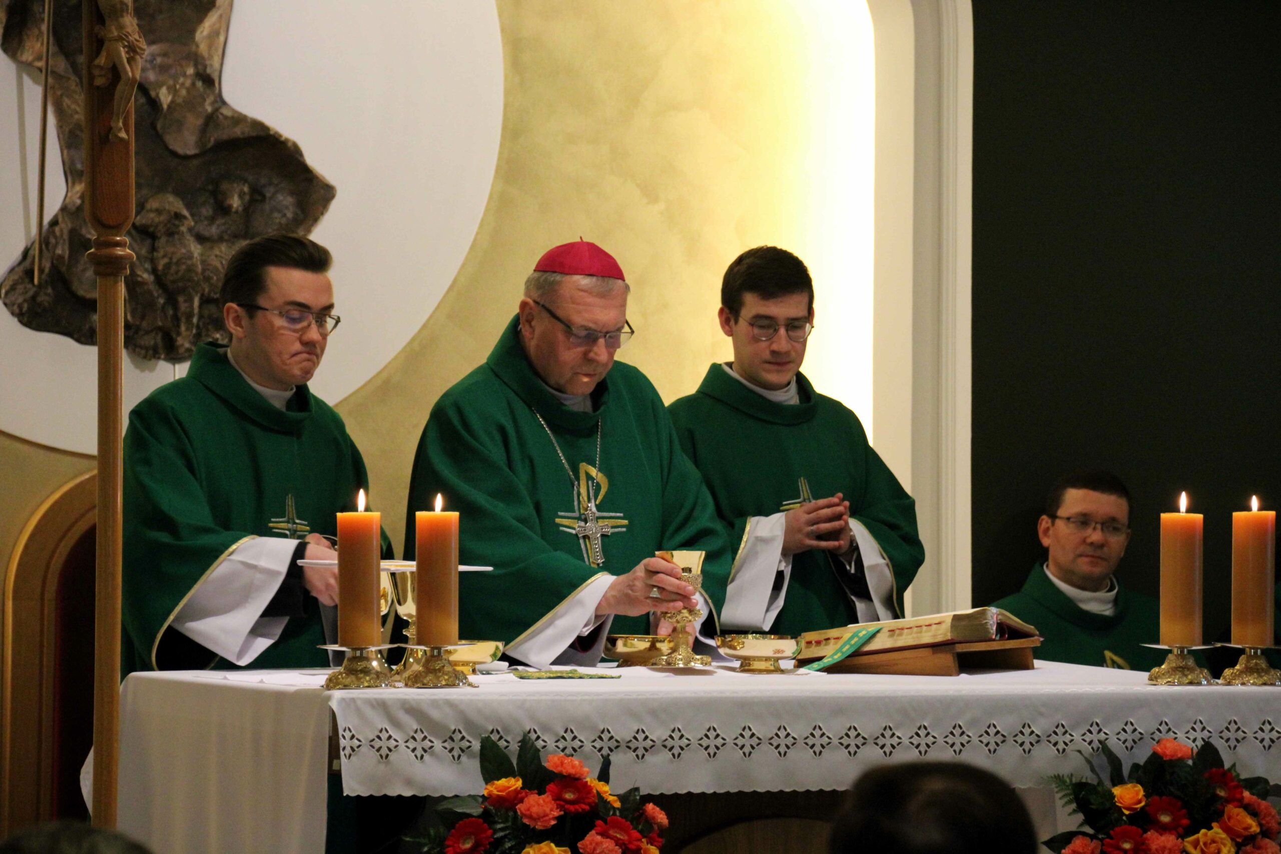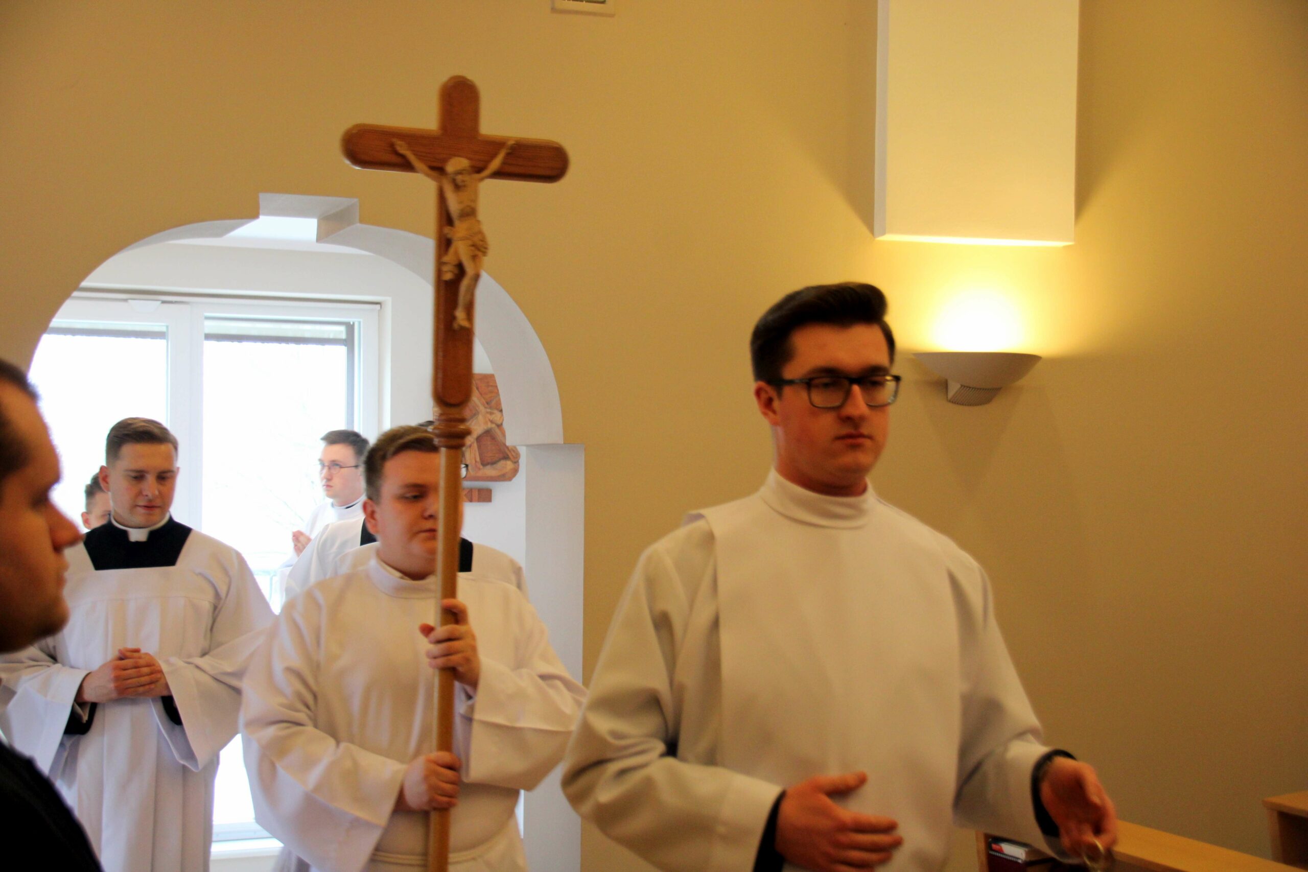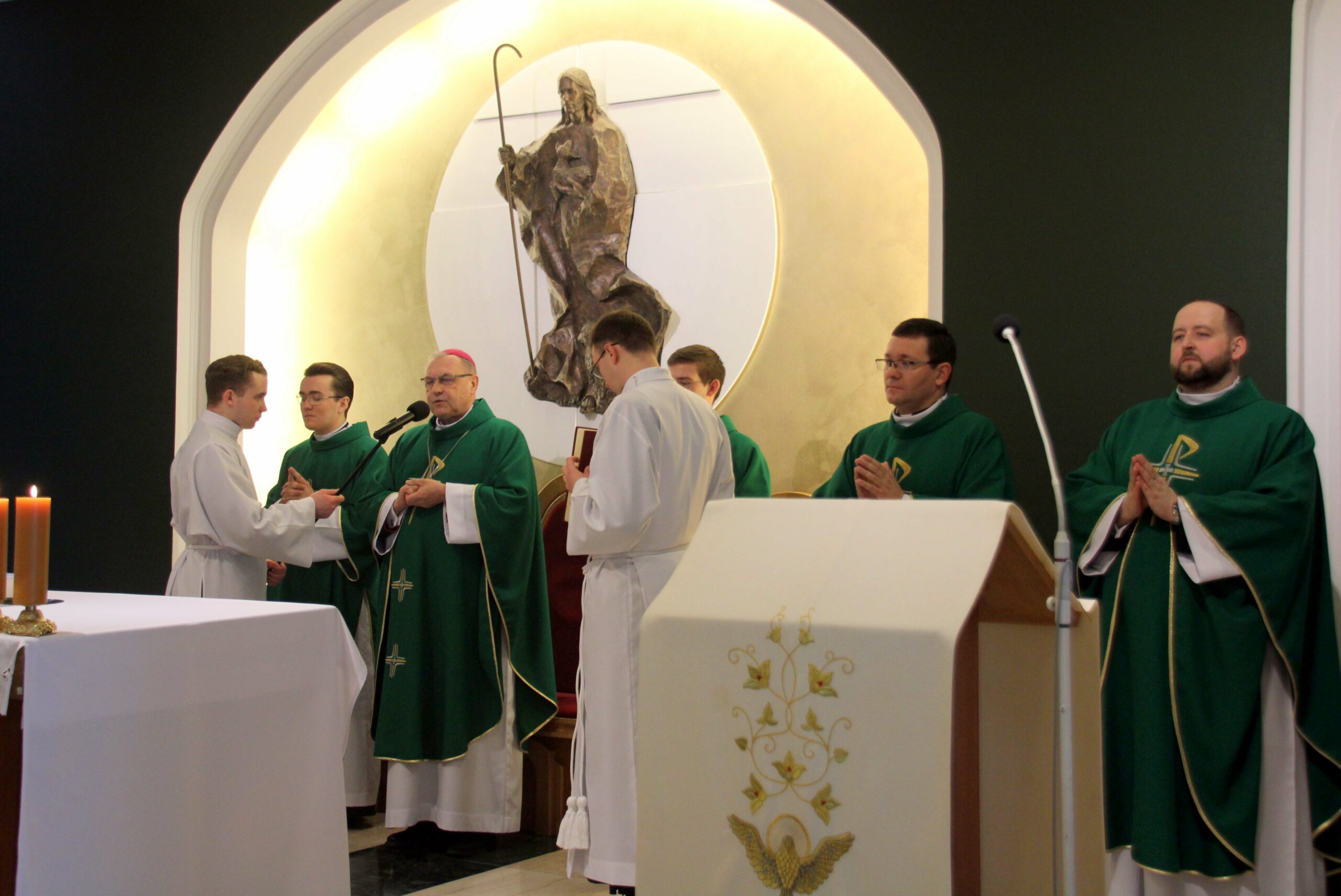 Uroczystej Eucharystii z obrzędem ustanowienia czterech nowych lektorów w seminaryjnej kaplicy pw. Chrystusa Dobrego Pasterza przewodniczył biskup pomocniczy poznański Jan Glapiak. Koncelebrowali księża przełożeni oraz proboszczowie ustanawianych lektorów, a śpiewem towarzyszyła seminaryjna schola „Inclina aurem” pod batutą księdza profesora Mariusza Białkowskiego. W swojej homilii biskup Jan zachęcał do zintensyfikowania modlitwy kontemplacyjnej na różańcu oraz do zapoznania się z listem apostolskim papieża Jana Pawła II Rosarium Virginis Mariae.