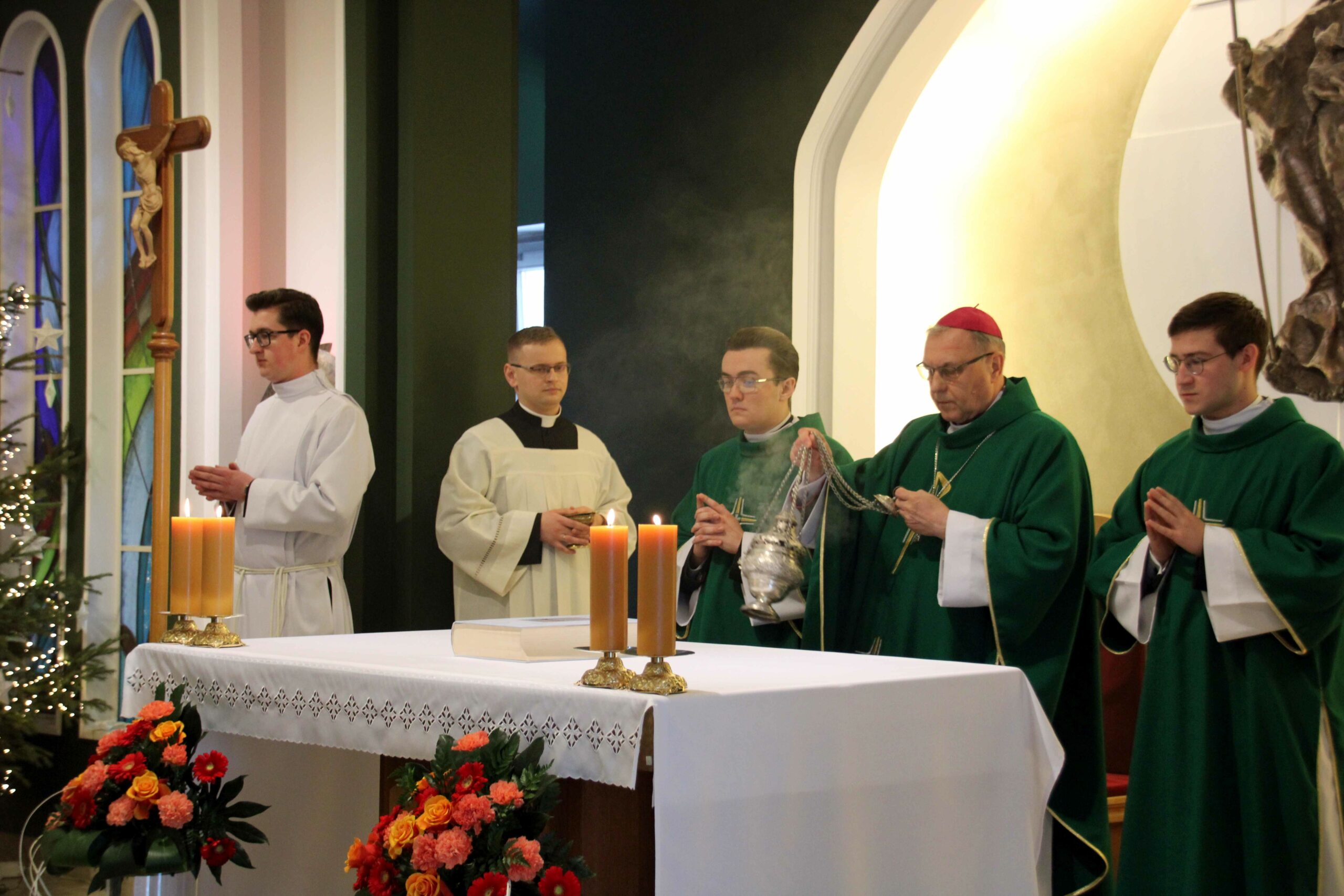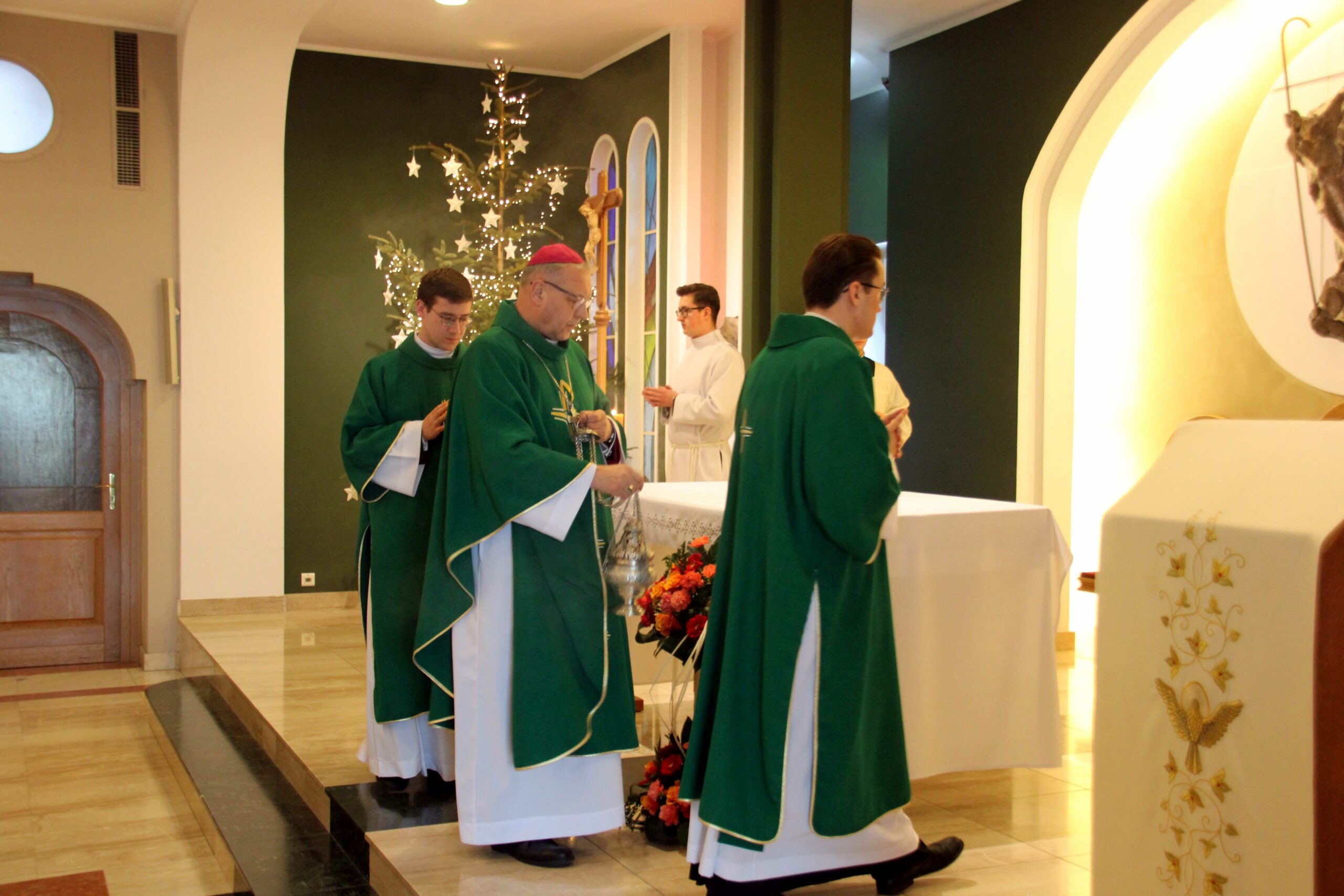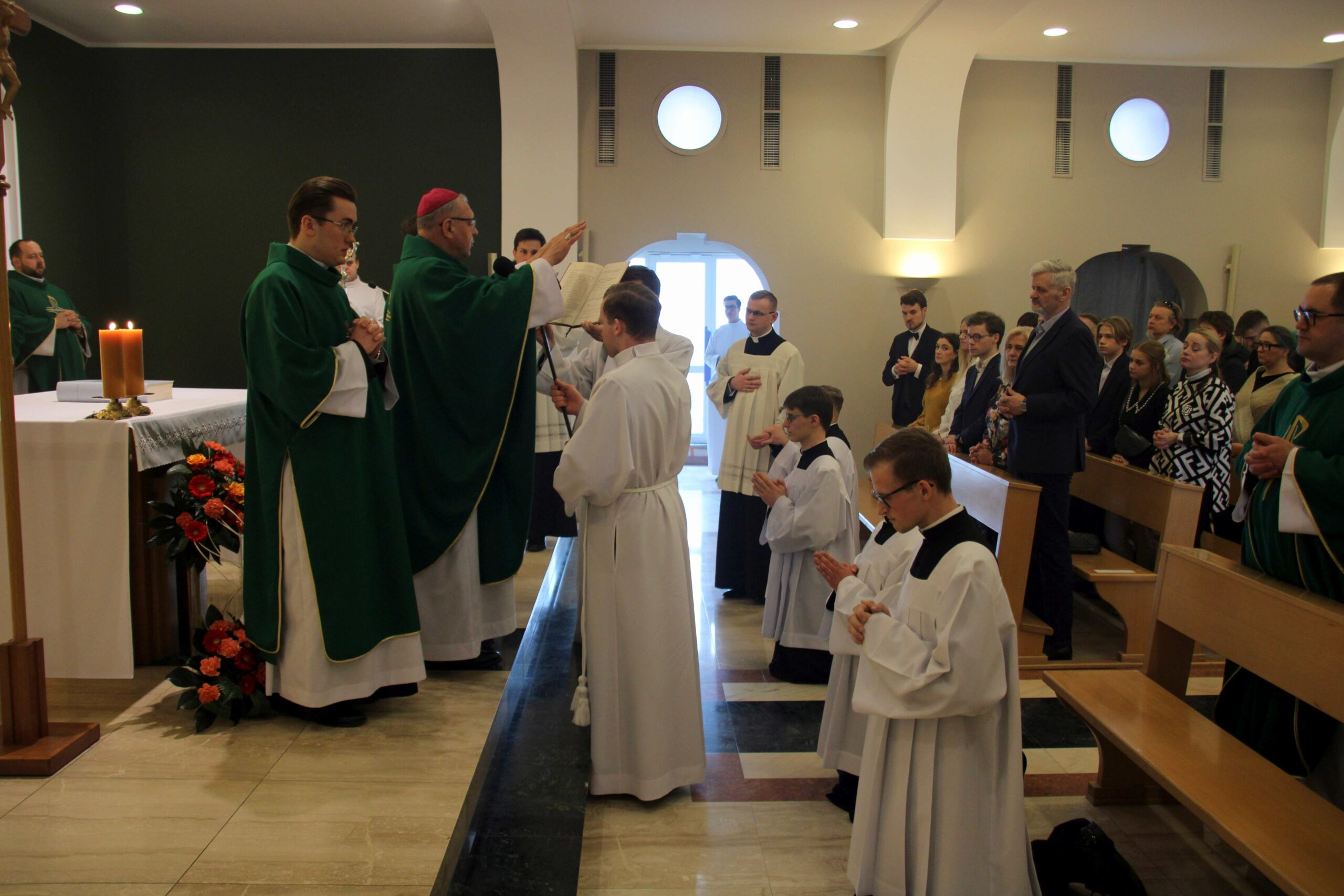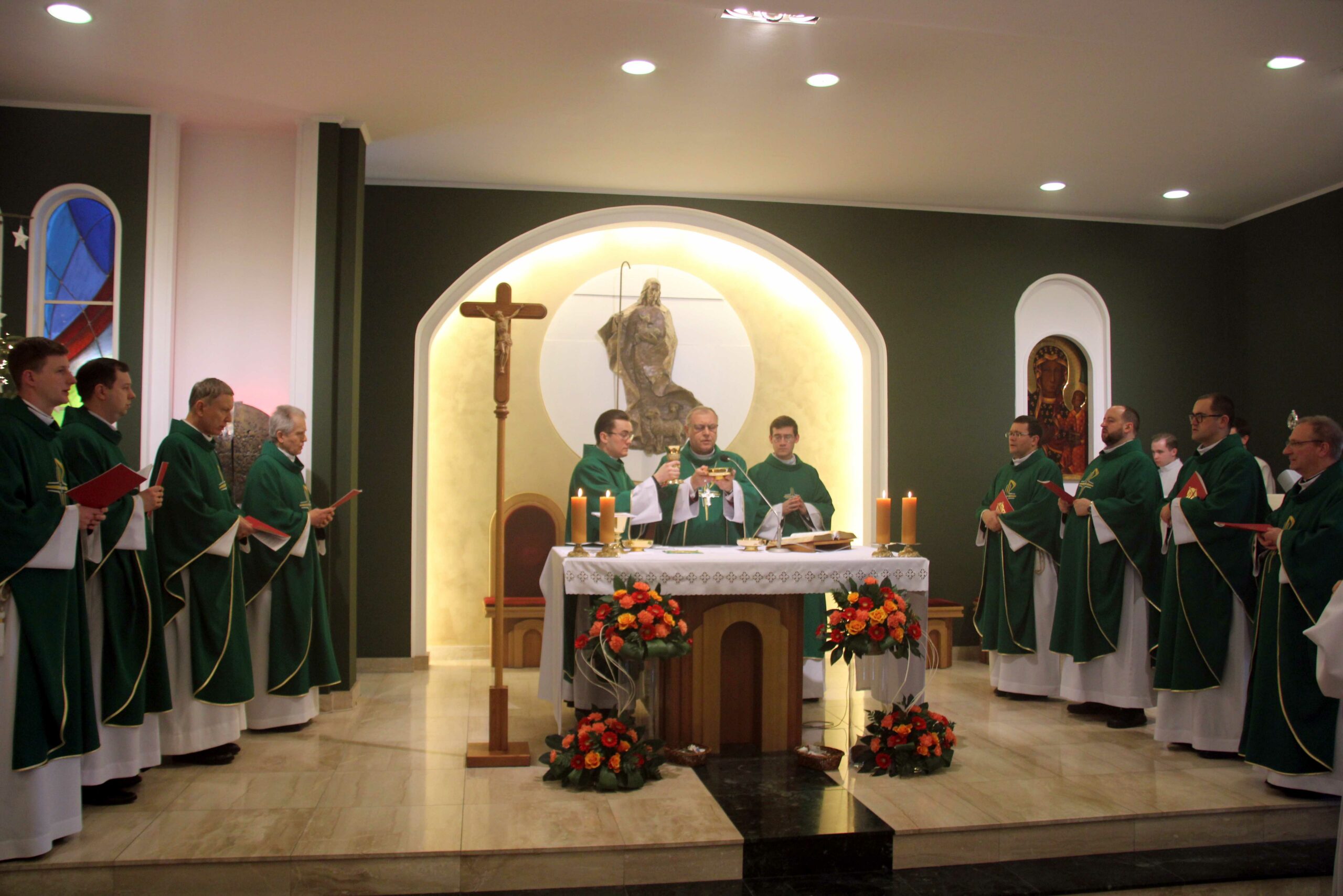 Uroczystej Eucharystii z obrzędem ustanowienia czterech nowych lektorów w seminaryjnej kaplicy pw. Chrystusa Dobrego Pasterza przewodniczył biskup pomocniczy poznański Jan Glapiak. Koncelebrowali księża przełożeni oraz proboszczowie ustanawianych lektorów, a śpiewem towarzyszyła seminaryjna schola „Inclina aurem” pod batutą księdza profesora Mariusza Białkowskiego. W swojej homilii biskup Jan zachęcał do zintensyfikowania modlitwy kontemplacyjnej na różańcu oraz do zapoznania się z listem apostolskim papieża Jana Pawła II Rosarium Virginis Mariae.