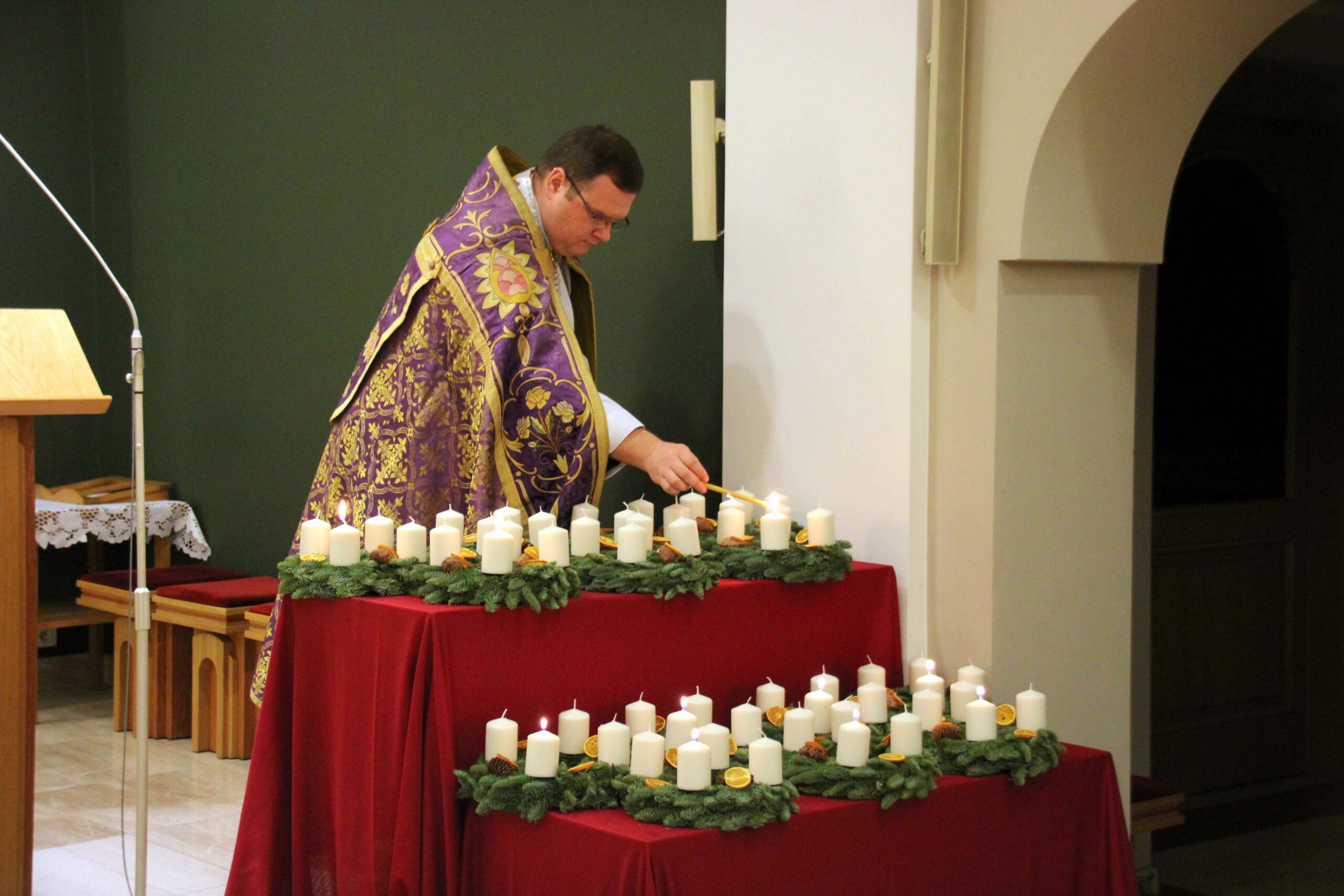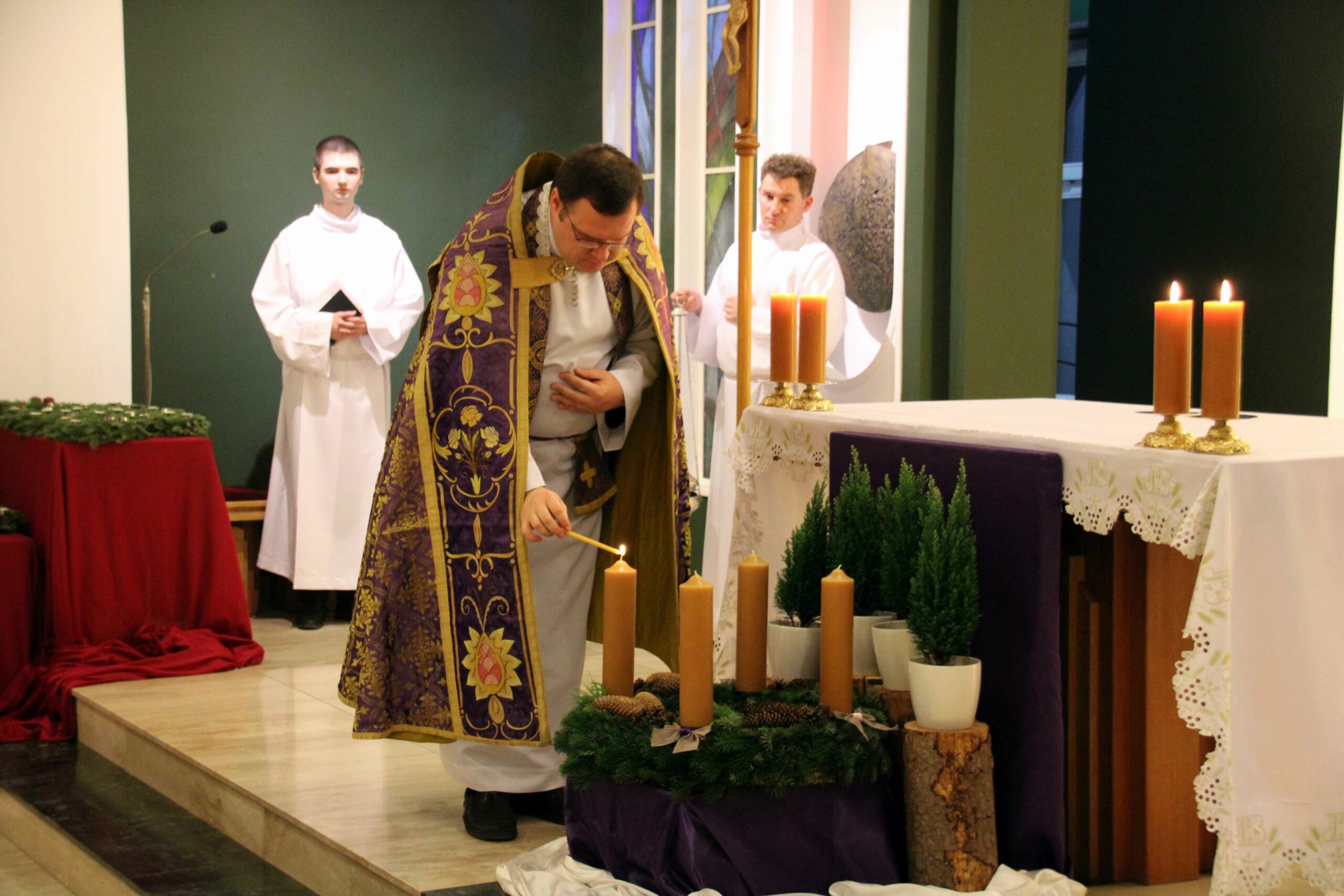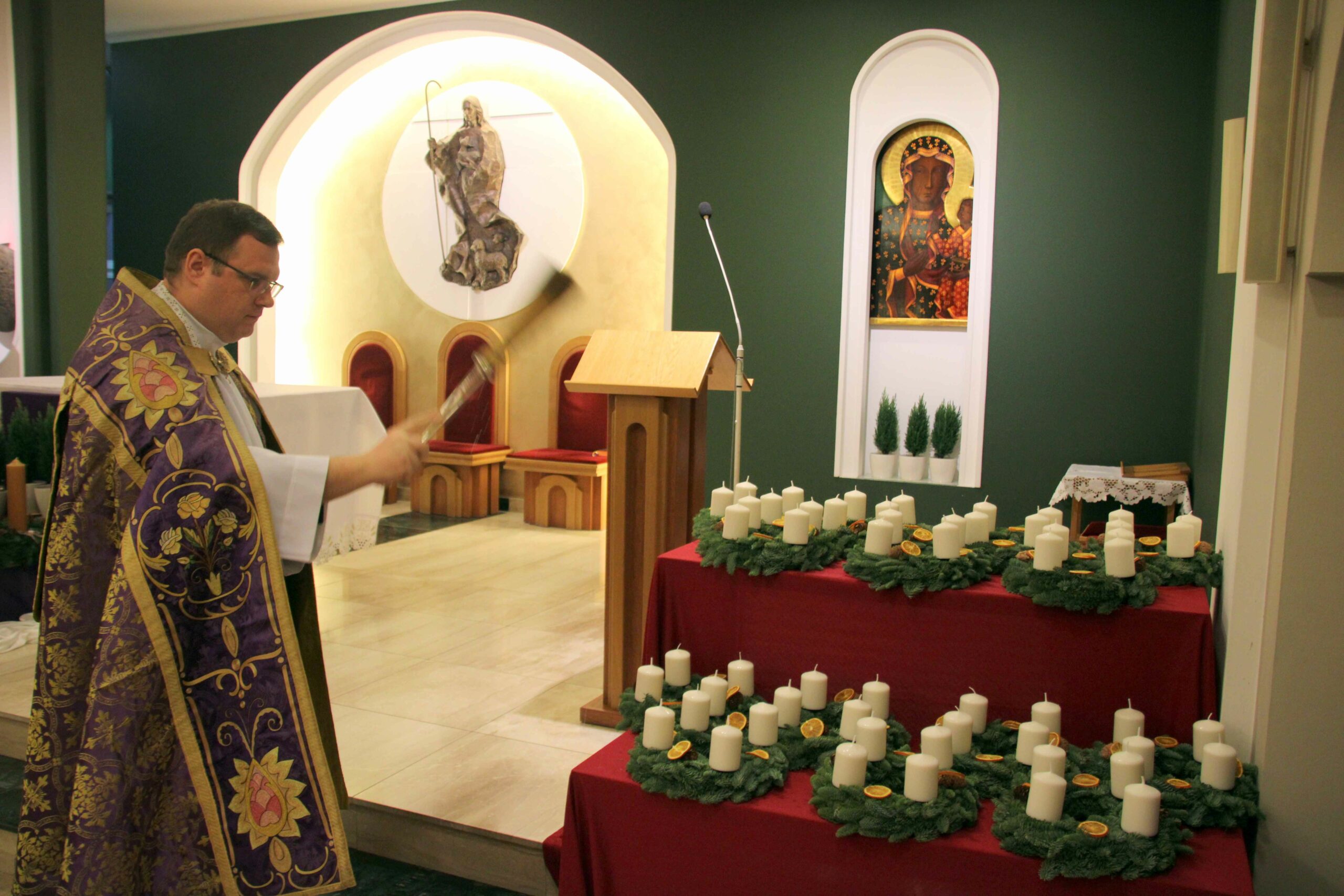 Homilista wyjaśniał także, zgodnie z wielowiekową tradycją, znaczenie głębokiej symboliki wieńca adwentowego i każdej świecy z osobna.