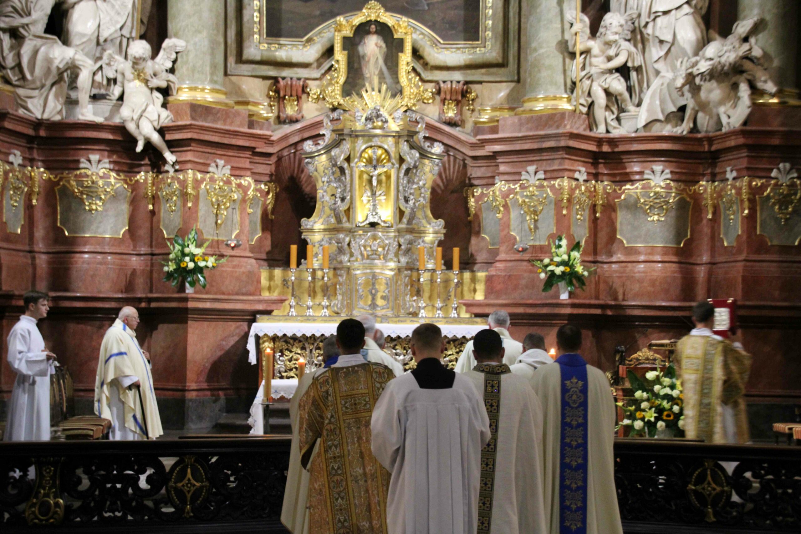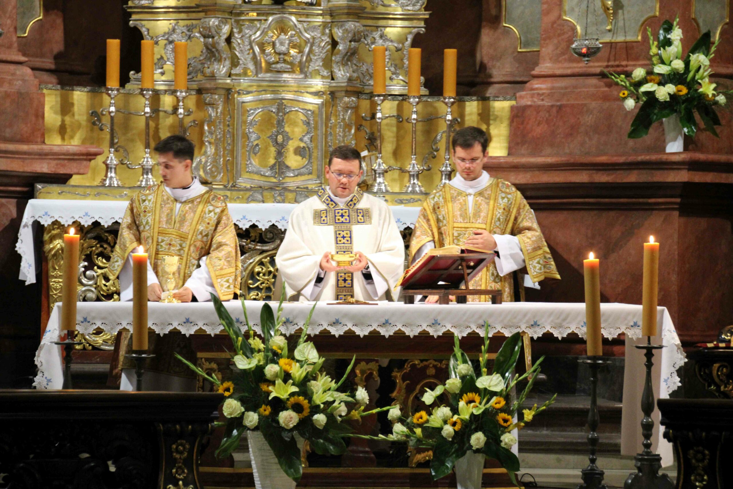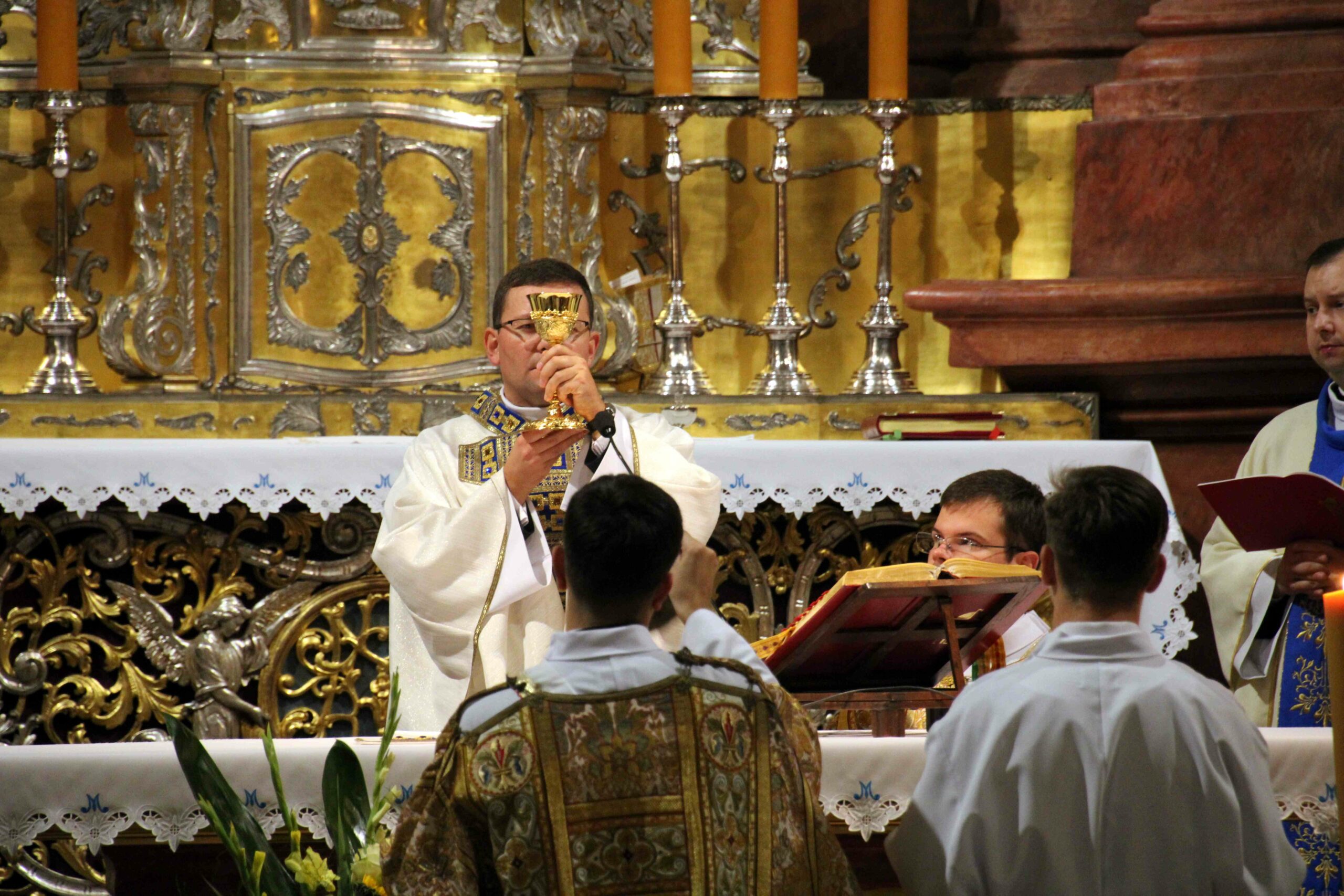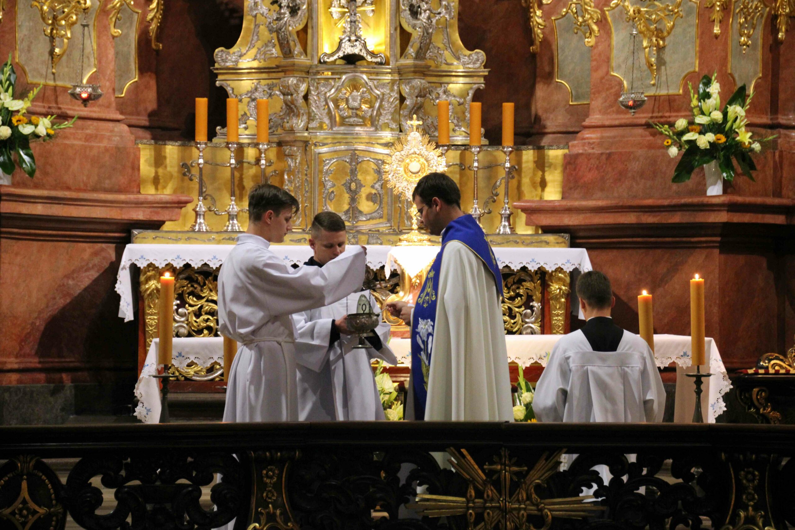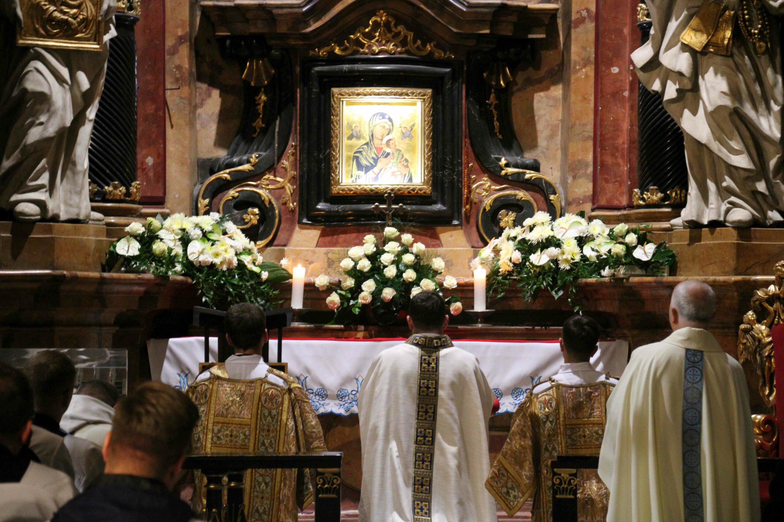 W piątkowy wieczór udaliśmy się, zgodnie z doroczną tradycją, do bazyliki kolegiackiej Matki Bożej Nieustającej Pomocy, św. Marii Magdaleny i św. Stanisława Biskupa, czyli Fary Poznańskiej, gdzie przeżywany był odpust ku czci Matki Bożej Nieustającej Pomocy. Był to dzień poświęcony modlitwie o nowe powołania kapłańskie. Przed Mszą zgromadziliśmy się na wspólnym różańcu, który poprowadził diakon Hieronim z VI roku. Eucharystii przewodniczył ksiądz rektor Jan Frąckowiak, koncelebrowali księża przełożeni, proboszcz oraz księża rezydenci z Fary, a homilię wygłosił kaznodzieja odpustowy ksiądz Wojciech Brzoski, duszpasterz akademicki z poznańskiej parafii pod wezwaniem świętego Rocha.