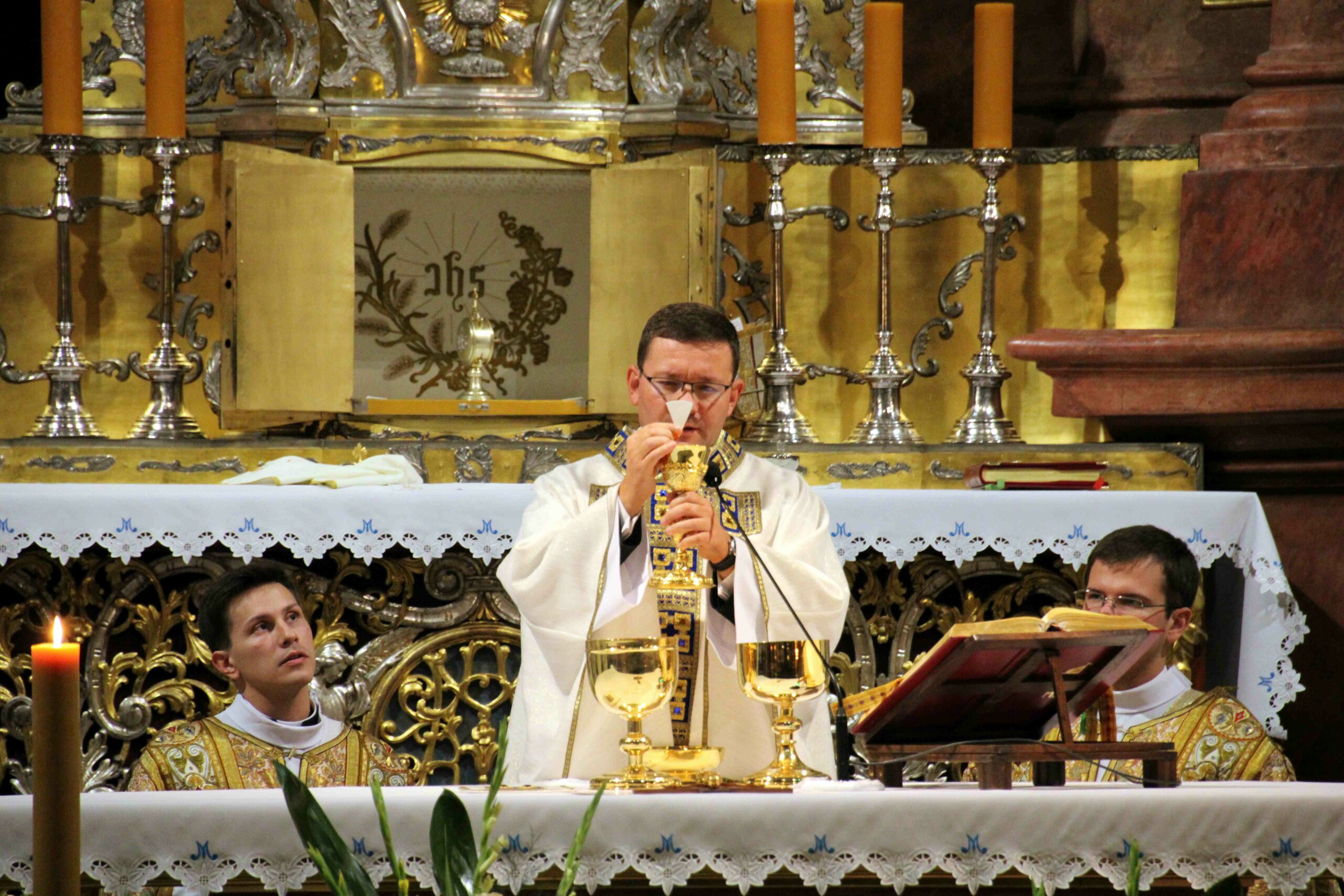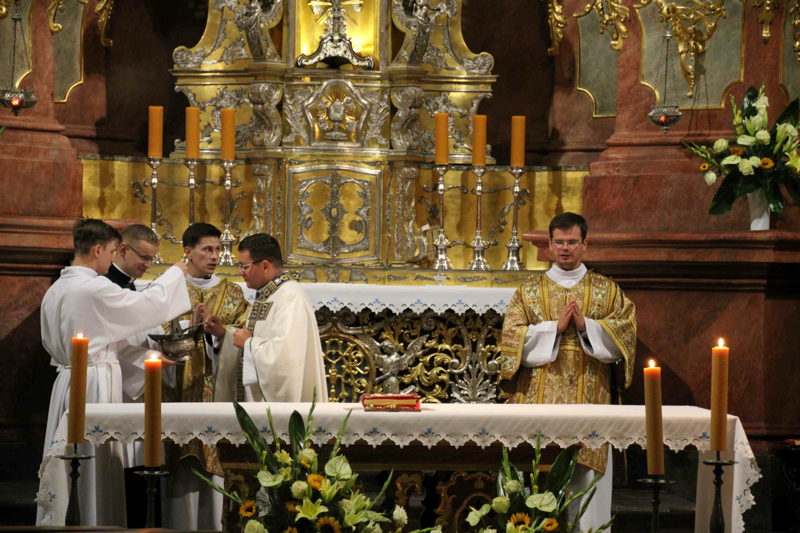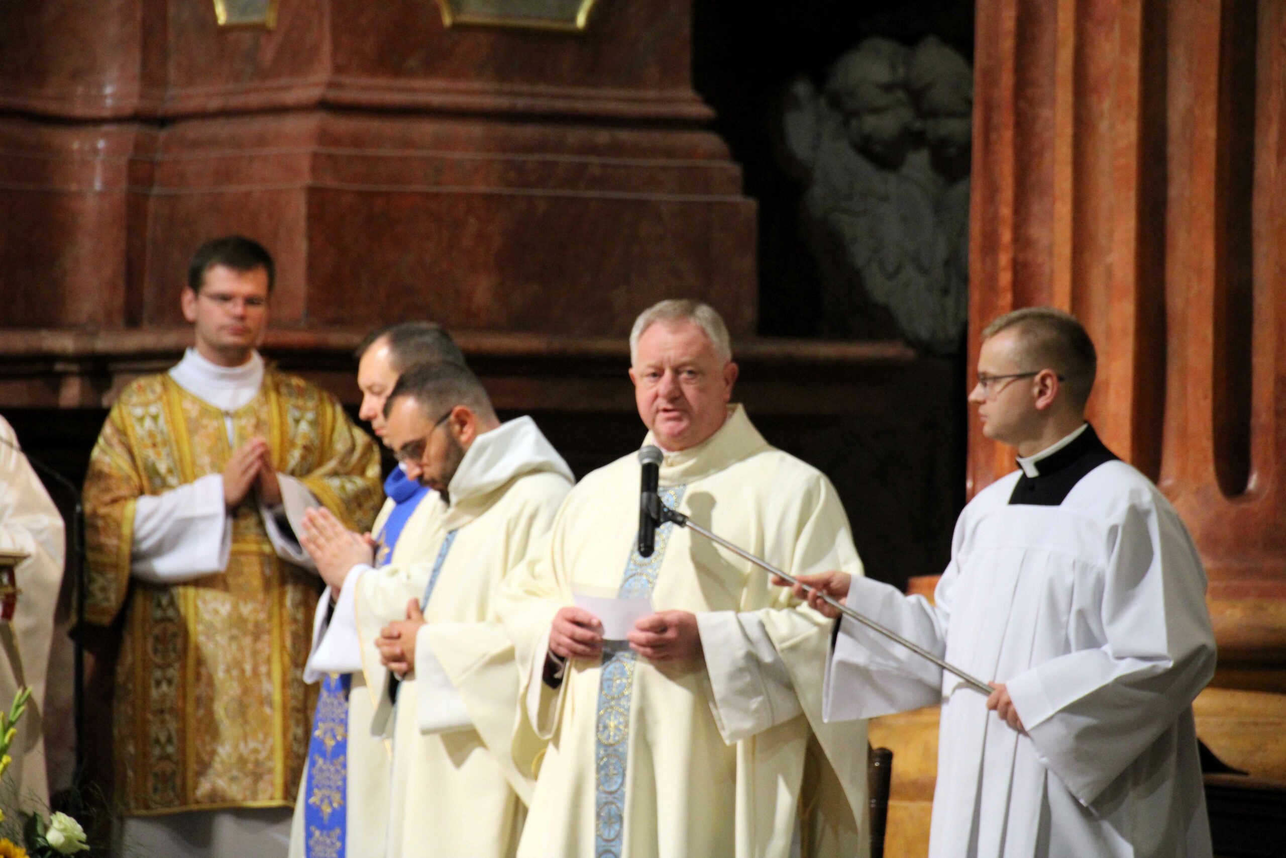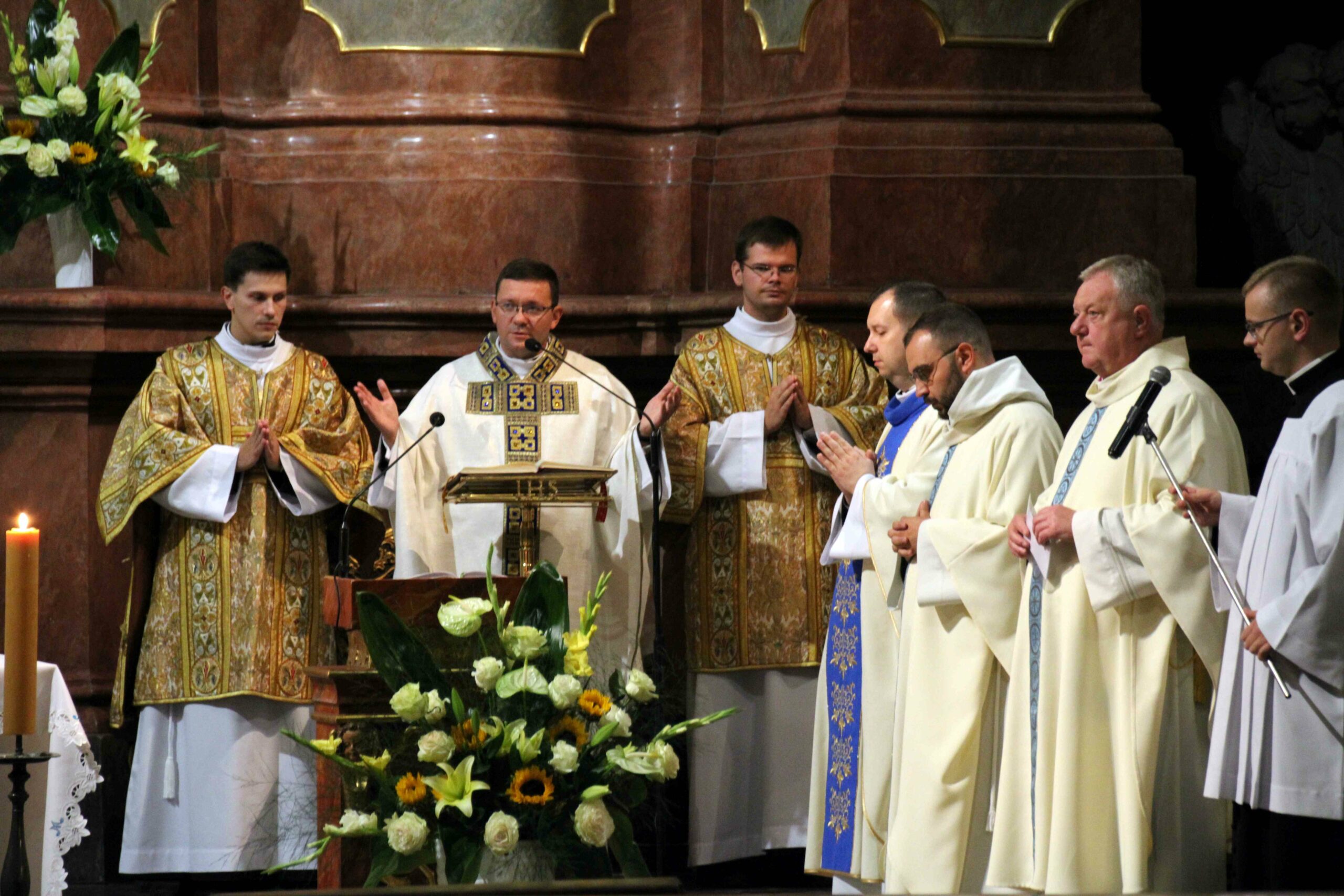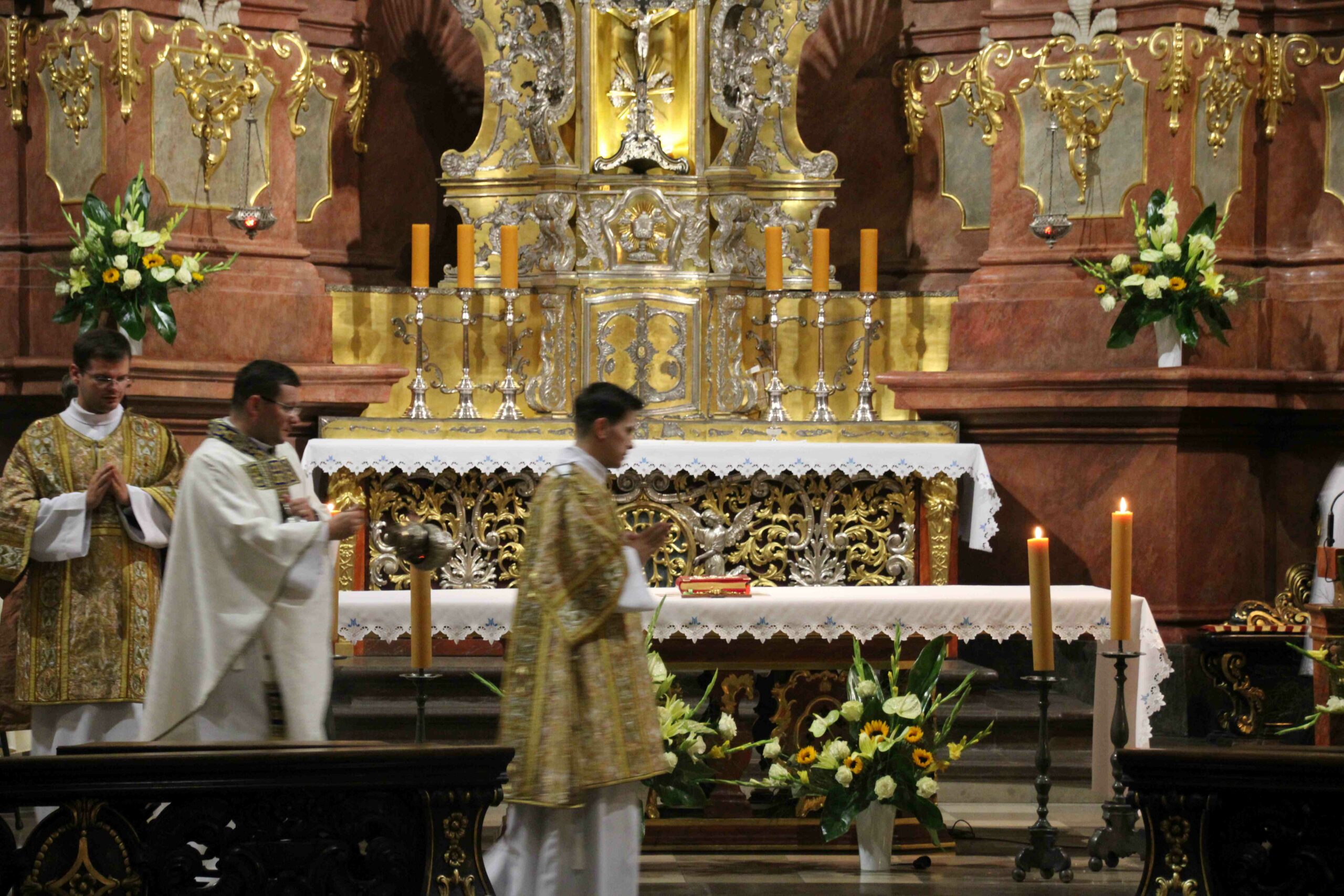 W piątkowy wieczór udaliśmy się, zgodnie z doroczną tradycją, do bazyliki kolegiackiej Matki Bożej Nieustającej Pomocy, św. Marii Magdaleny i św. Stanisława Biskupa, czyli Fary Poznańskiej, gdzie przeżywany był odpust ku czci Matki Bożej Nieustającej Pomocy. Był to dzień poświęcony modlitwie o nowe powołania kapłańskie. Przed Mszą zgromadziliśmy się na wspólnym różańcu, który poprowadził diakon Hieronim z VI roku. Eucharystii przewodniczył ksiądz rektor Jan Frąckowiak, koncelebrowali księża przełożeni, proboszcz oraz księża rezydenci z Fary, a homilię wygłosił kaznodzieja odpustowy ksiądz Wojciech Brzoski, duszpasterz akademicki z poznańskiej parafii pod wezwaniem świętego Rocha.