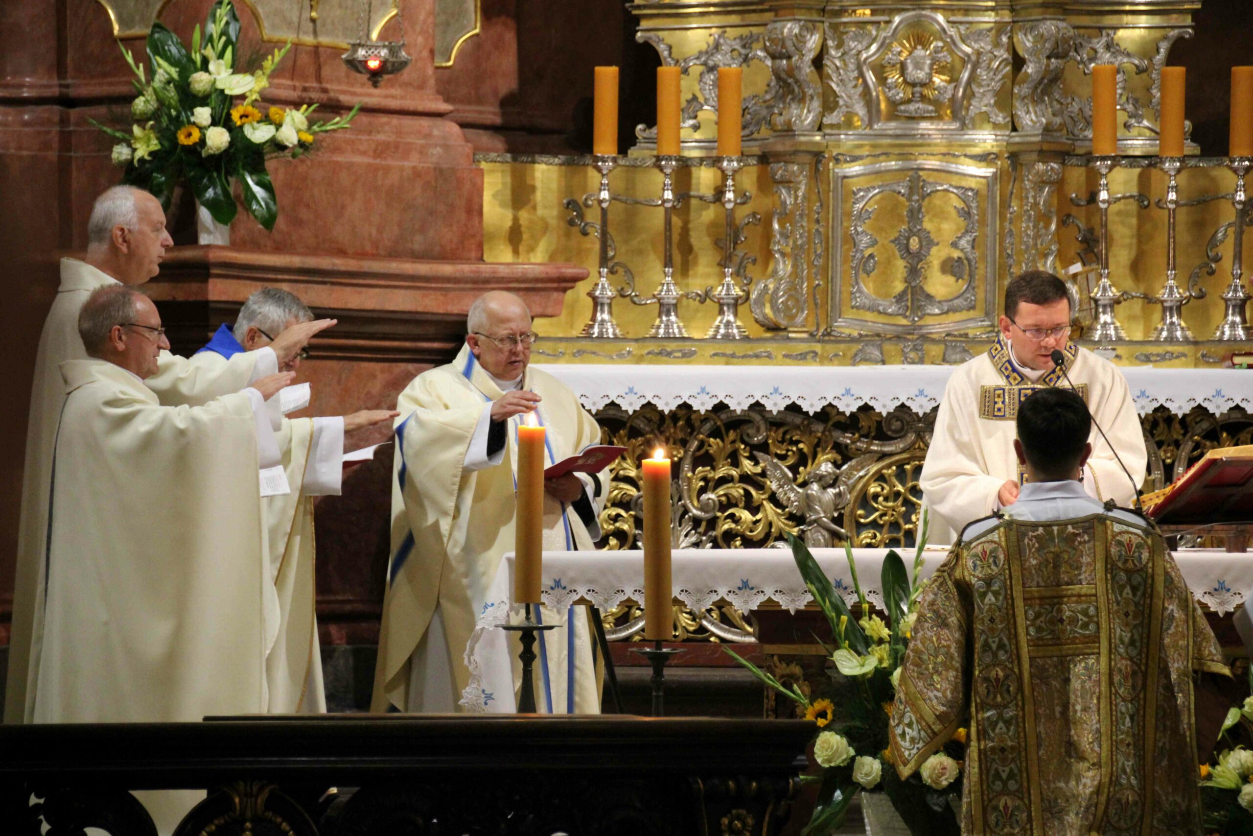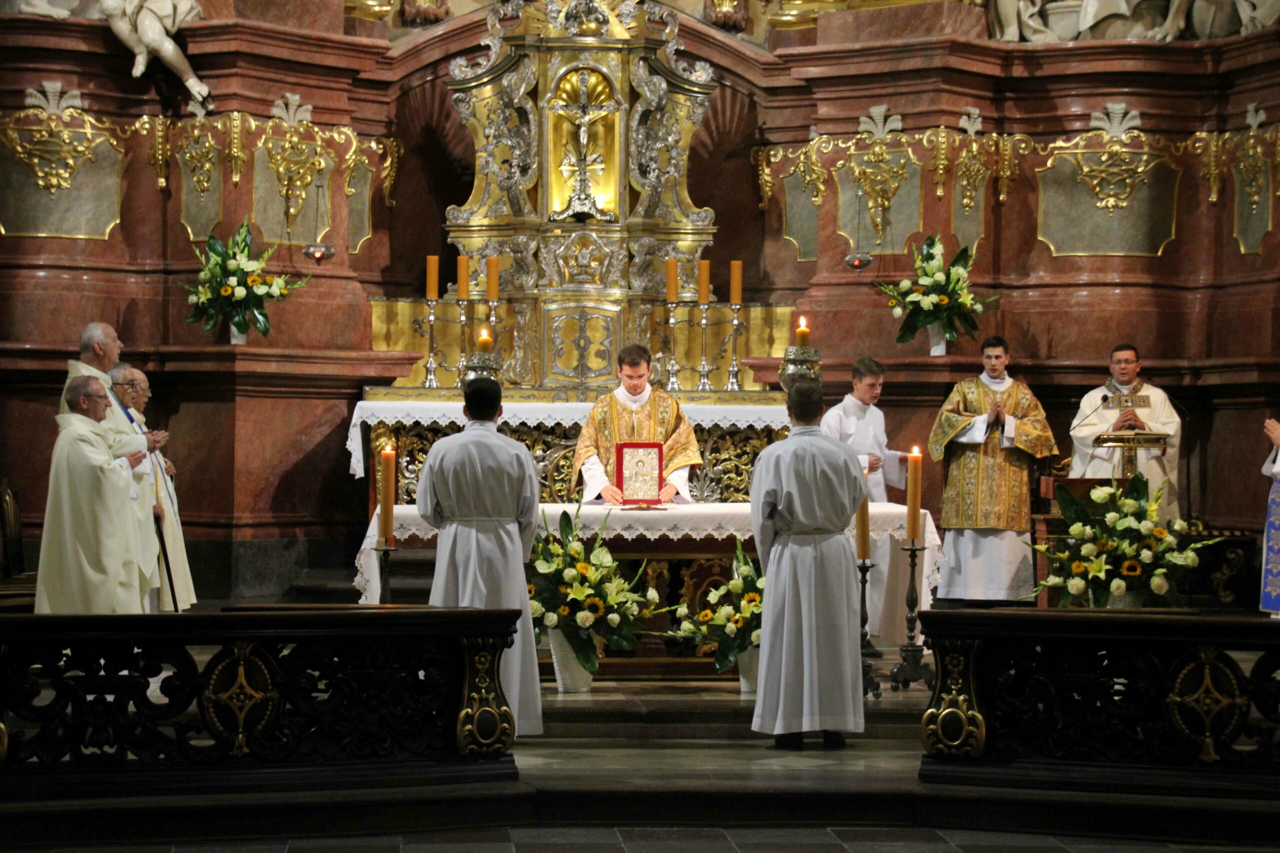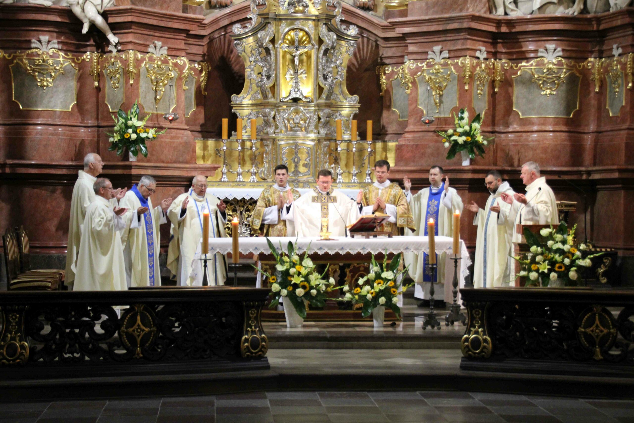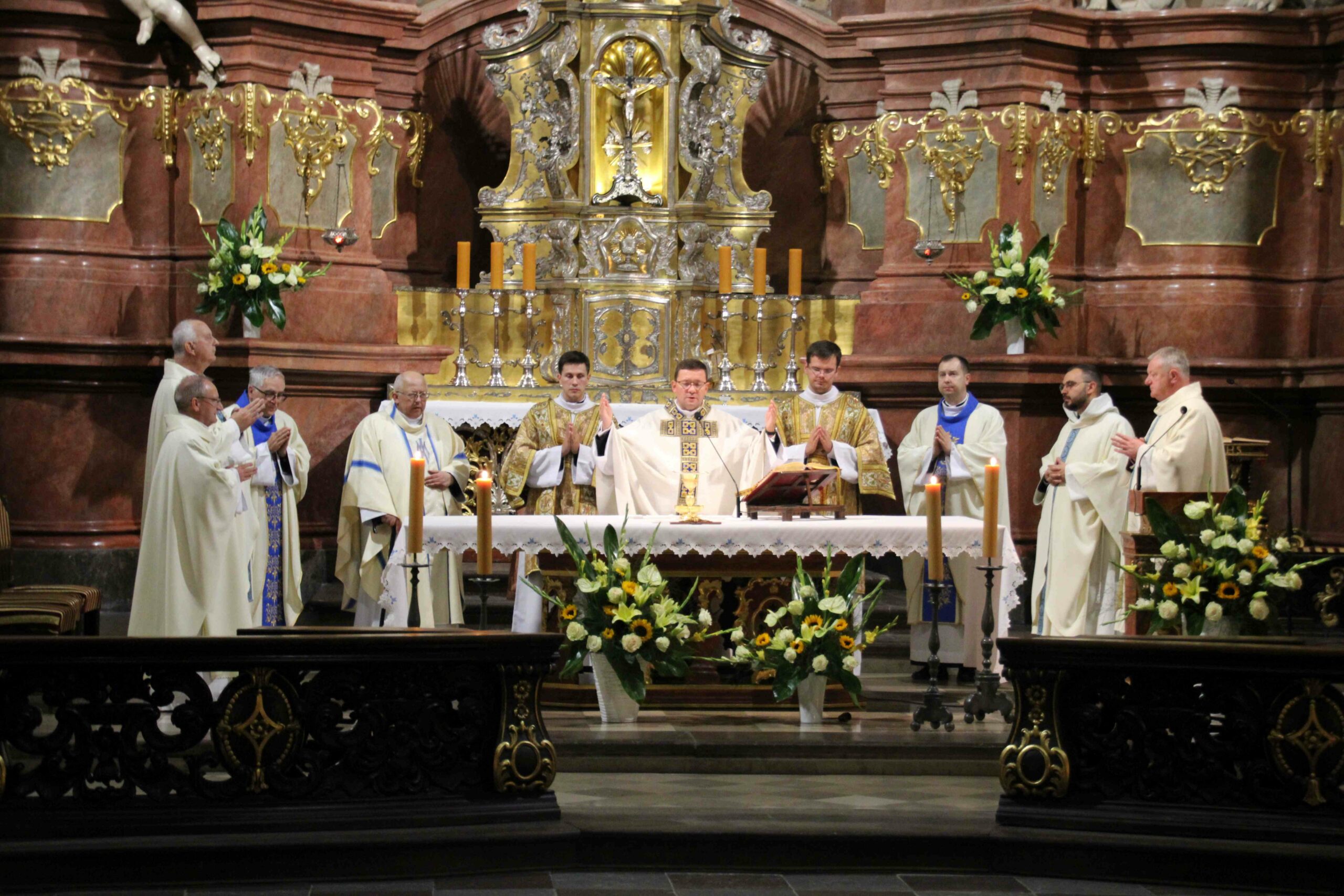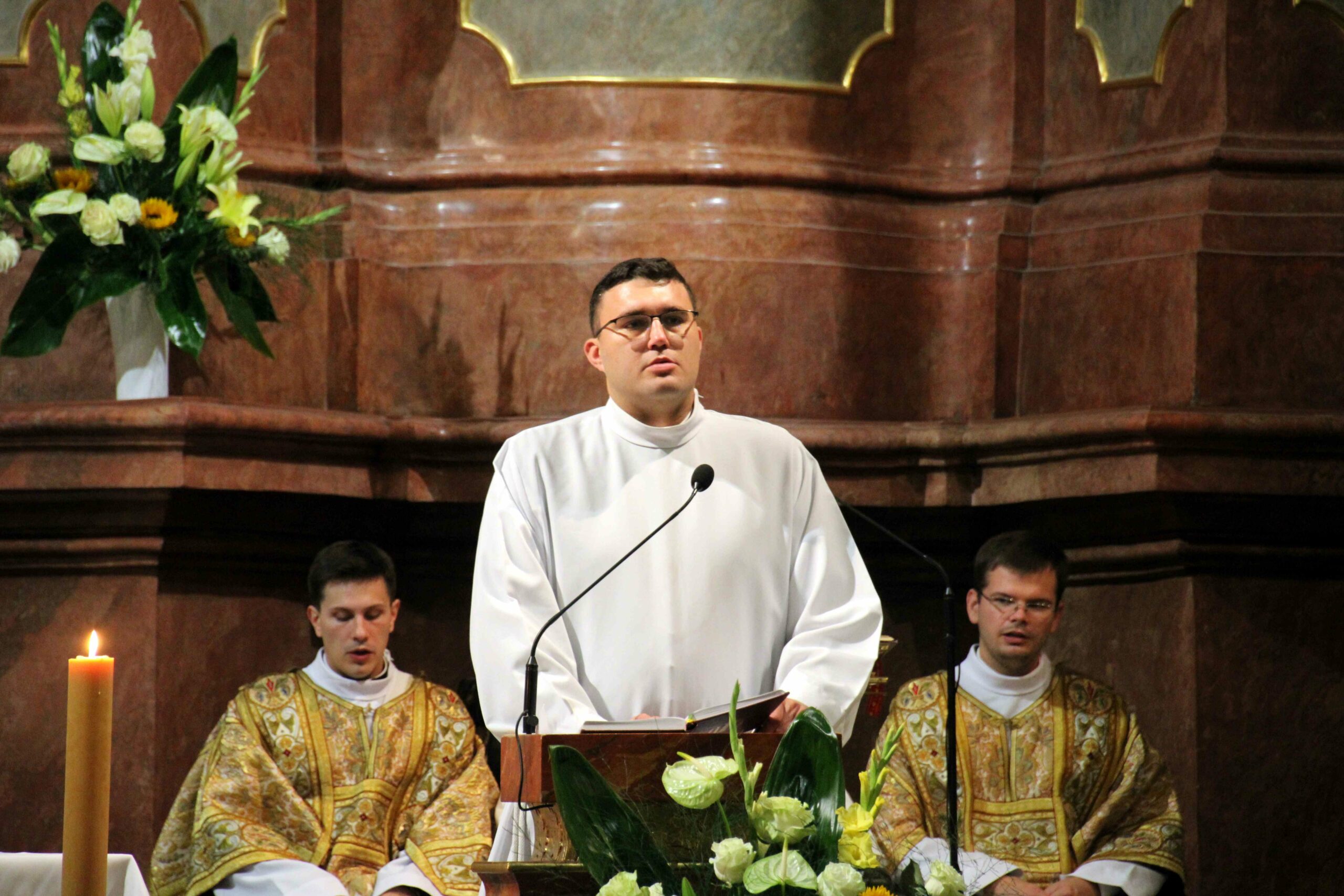 W piątkowy wieczór udaliśmy się, zgodnie z doroczną tradycją, do bazyliki kolegiackiej Matki Bożej Nieustającej Pomocy, św. Marii Magdaleny i św. Stanisława Biskupa, czyli Fary Poznańskiej, gdzie przeżywany był odpust ku czci Matki Bożej Nieustającej Pomocy. Był to dzień poświęcony modlitwie o nowe powołania kapłańskie. Przed Mszą zgromadziliśmy się na wspólnym różańcu, który poprowadził diakon Hieronim z VI roku. Eucharystii przewodniczył ksiądz rektor Jan Frąckowiak, koncelebrowali księża przełożeni, proboszcz oraz księża rezydenci z Fary, a homilię wygłosił kaznodzieja odpustowy ksiądz Wojciech Brzoski, duszpasterz akademicki z poznańskiej parafii pod wezwaniem świętego Rocha.