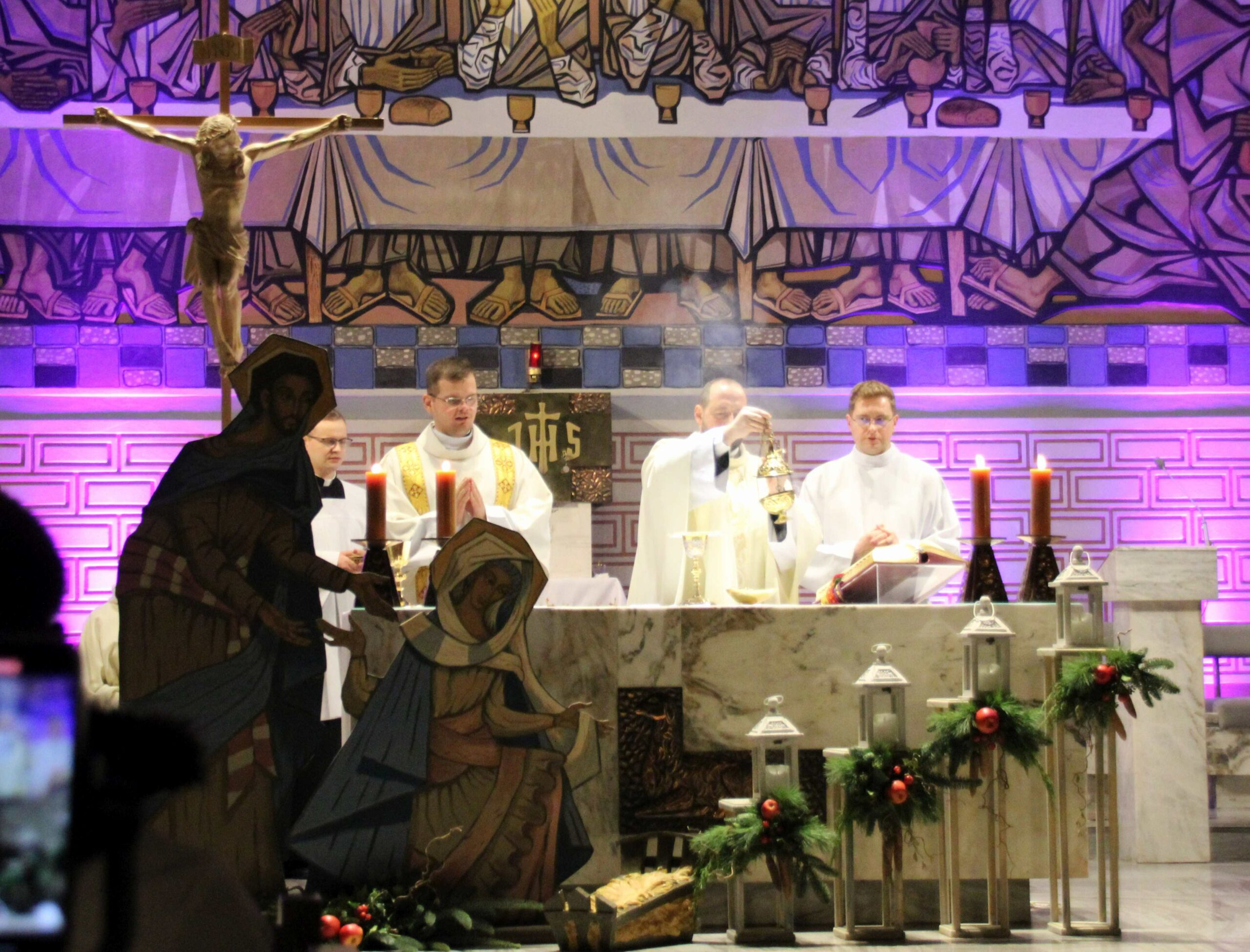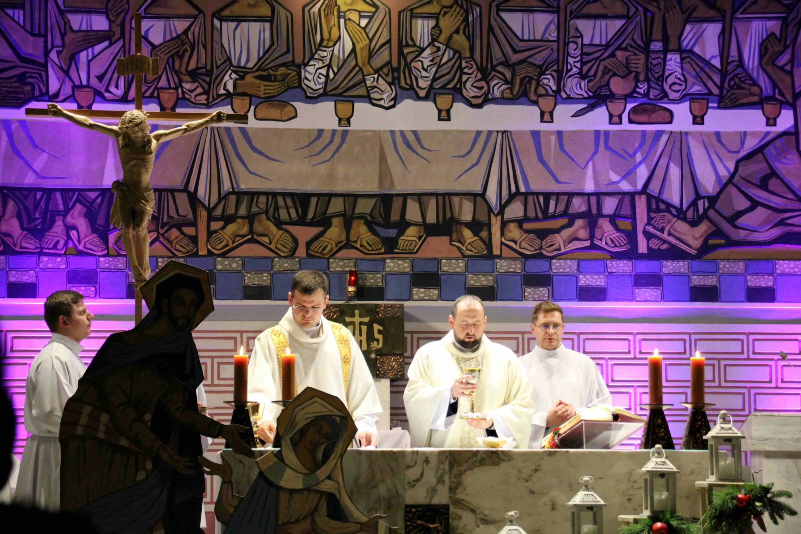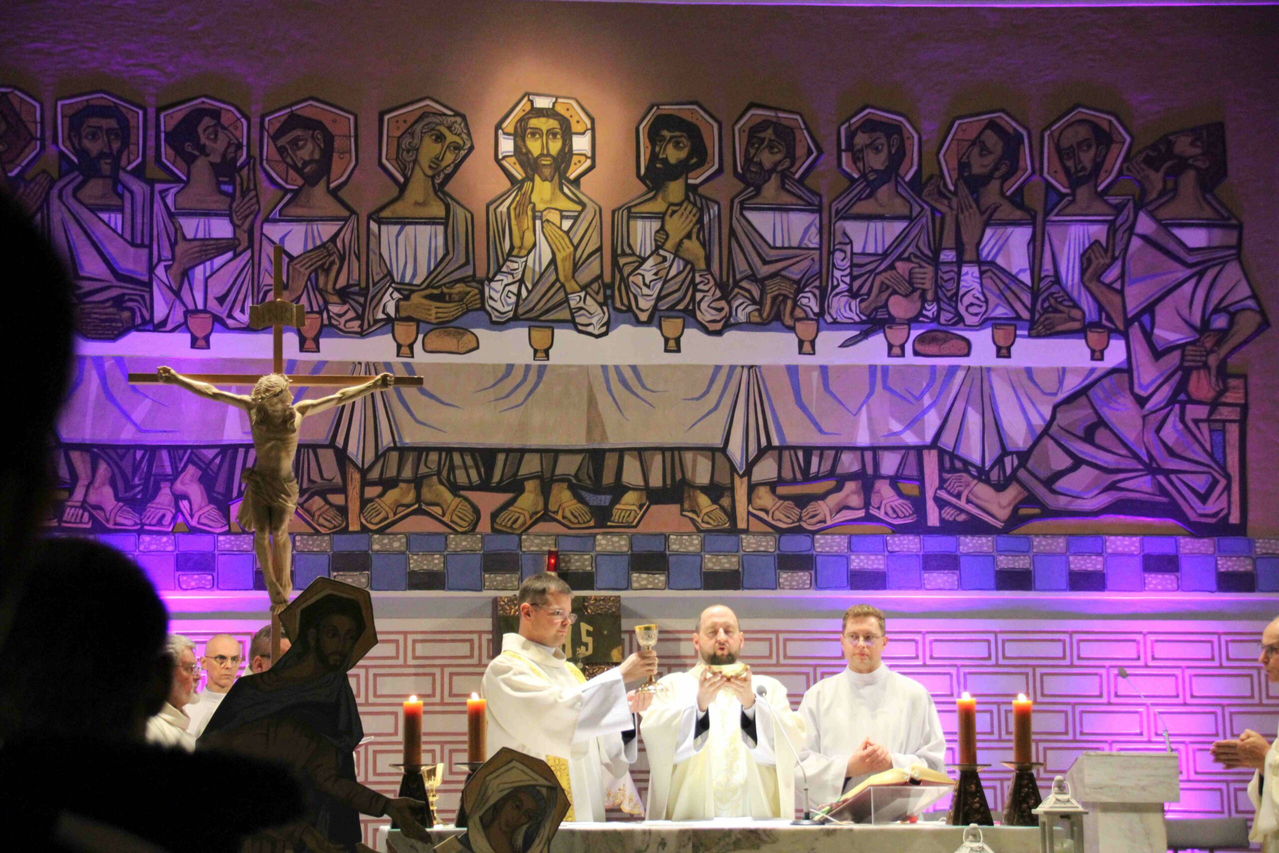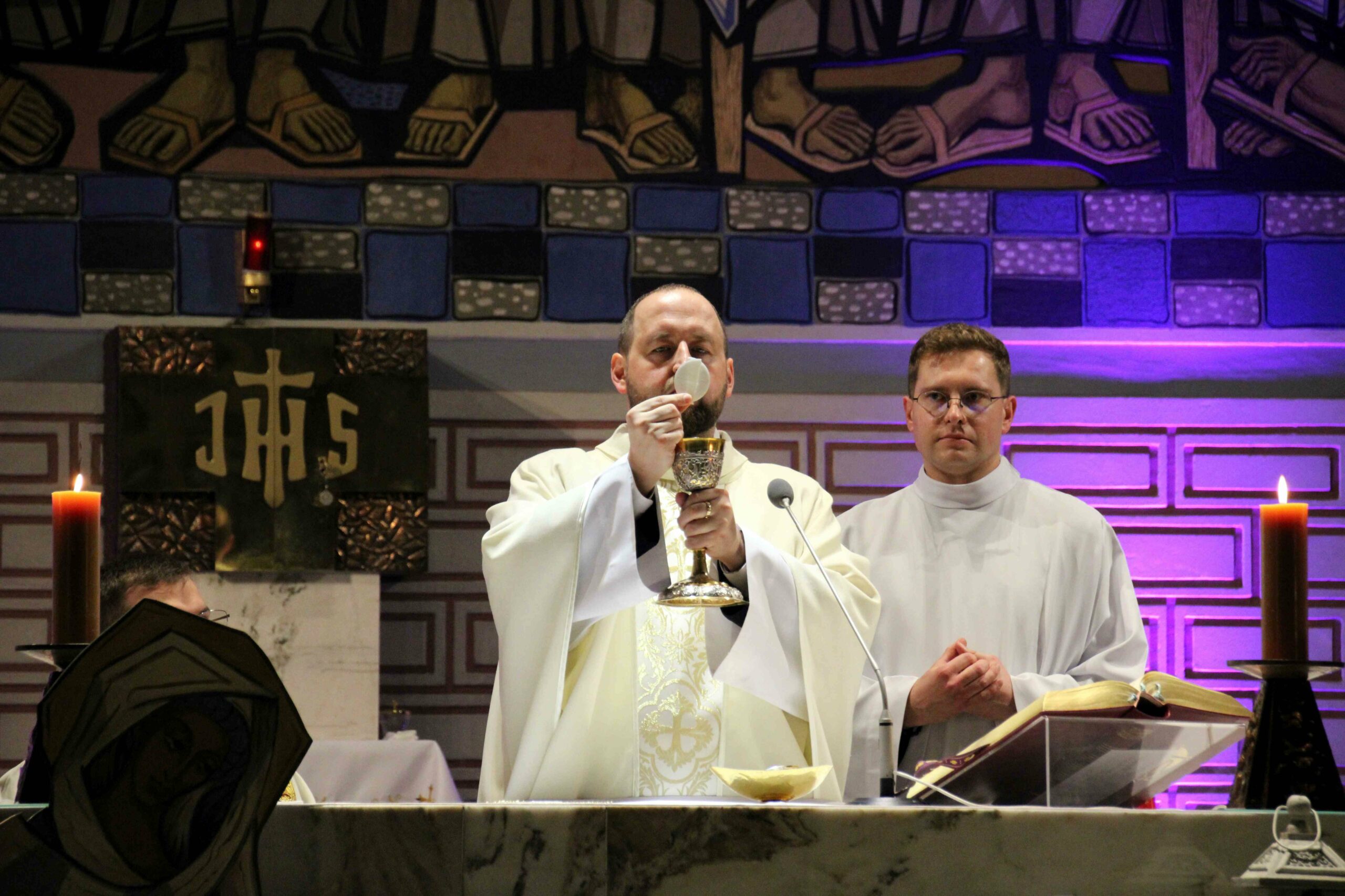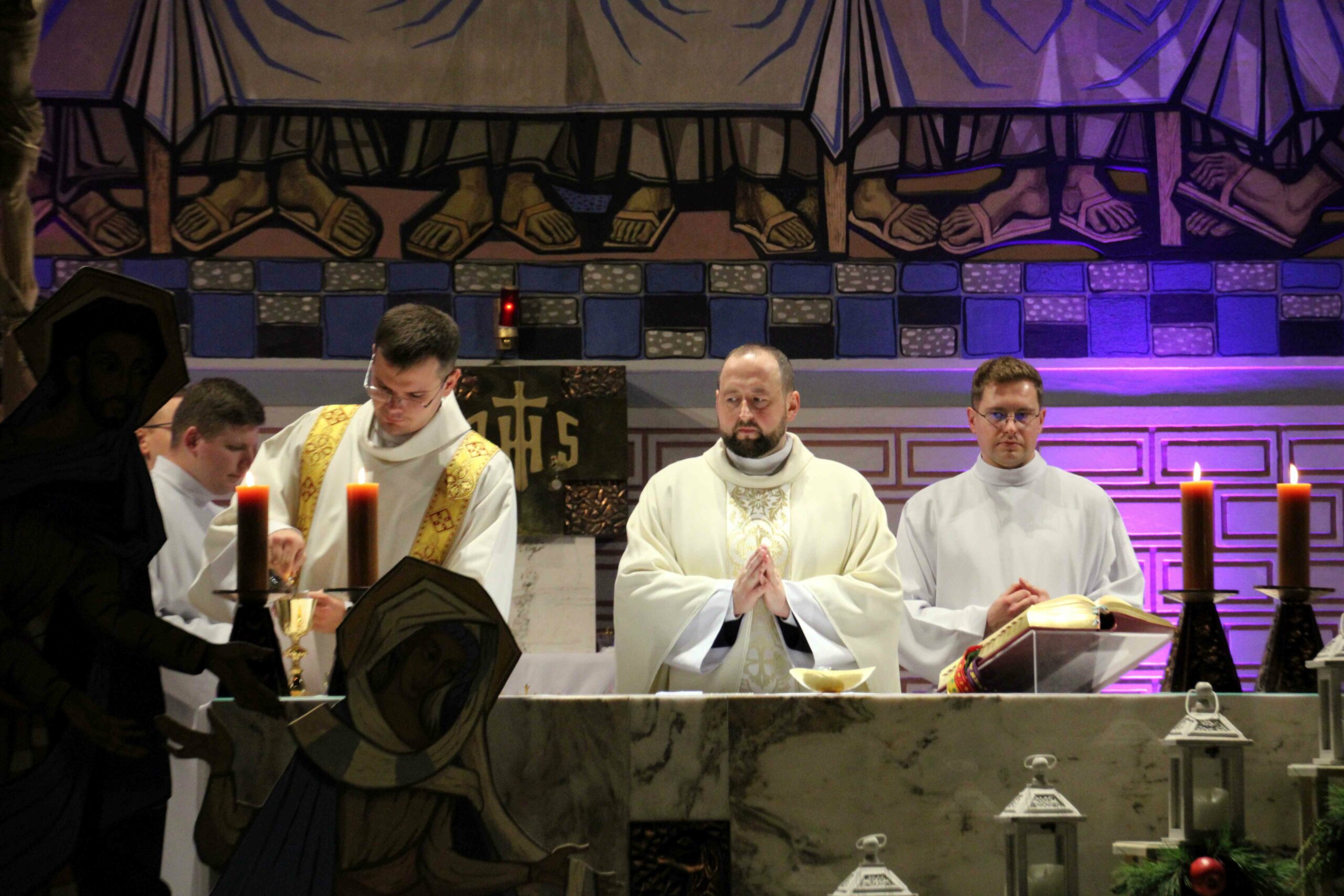 W pierwszy czwartek miesiąca, w nowym roku liturgicznym, wybraliśmy się na poznańską Starołękę, do parafii pw. św. Antoniego Padewskiego, aby wraz z wiernymi dziękować Bogu za dar Eucharystii oraz modlić się o dar nowych powołań do służby w Kościele. Mszę Świętą celebrował oraz homilię wygłosił ksiądz prefekt Marek Ratajczak, wraz z nim Mszę koncelebrowali ksiądz proboszcz Janusz Molewski oraz księża posługujący w parafii.