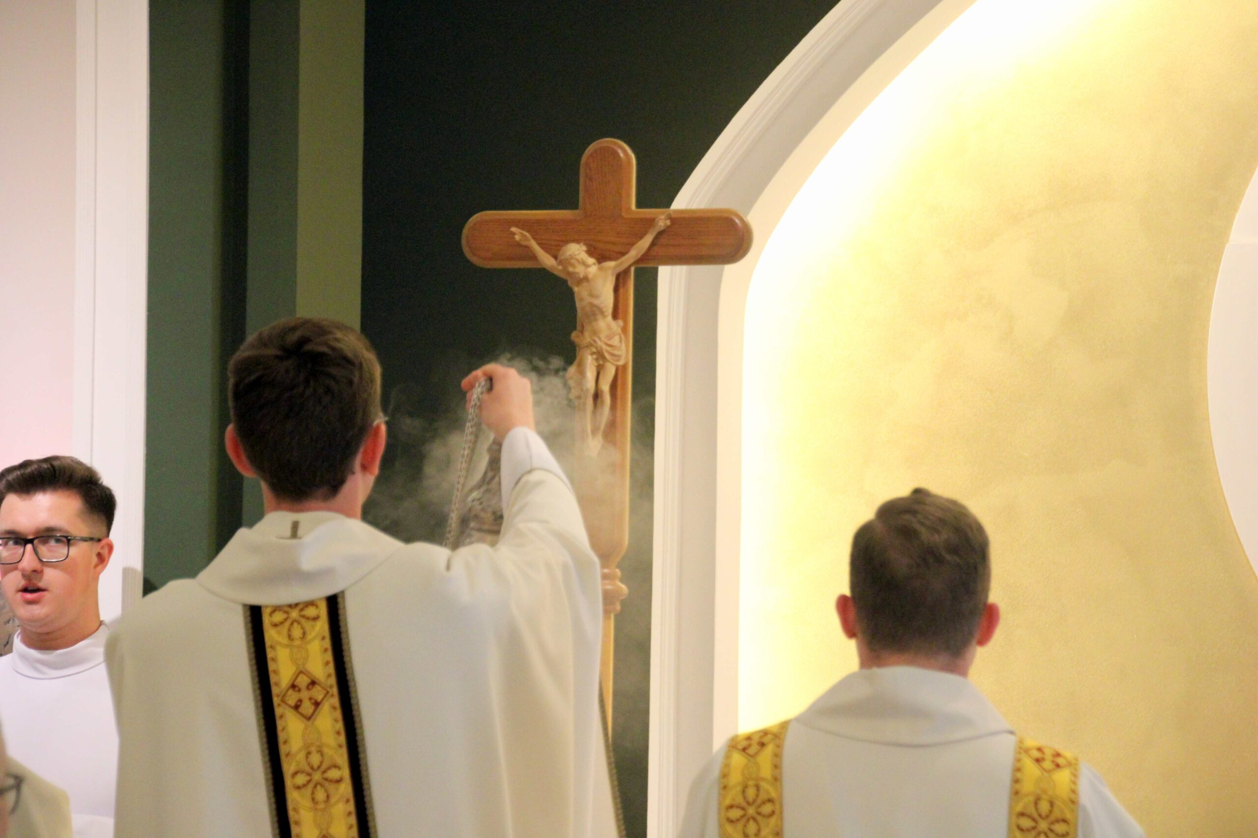 W homili ksiądz Kacper Kusiński, odwołując się do odczytanej ewangelijnej perykopy o bogatym młodzieńcu, przypominał, iż powinniśmy kochać Pana Boga w taki sam sposób, w jaki umiłował nas Chrystus – czyli w pełni, rozdając wszystko co posiadamy na rzecz nieskończonej Miłości.