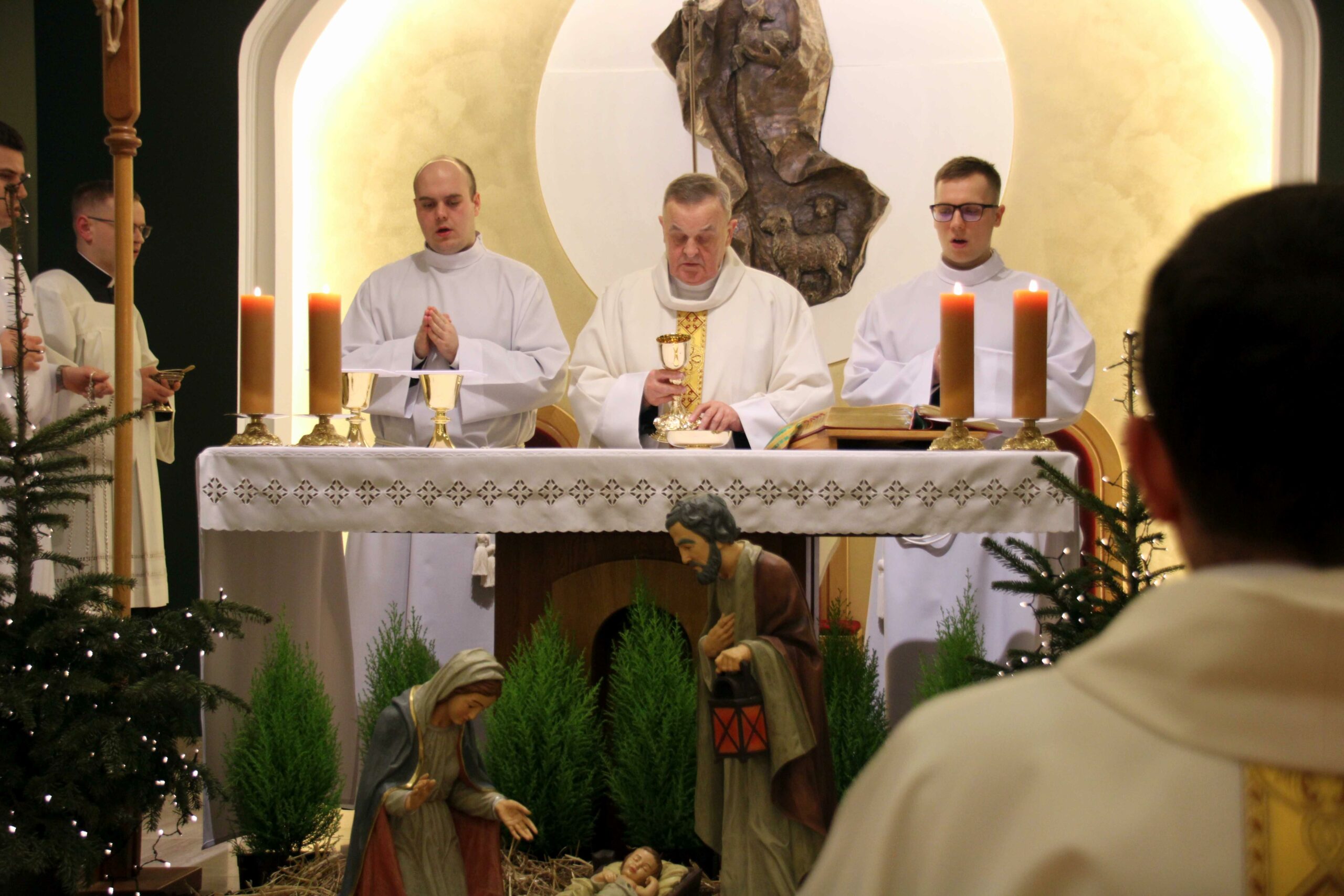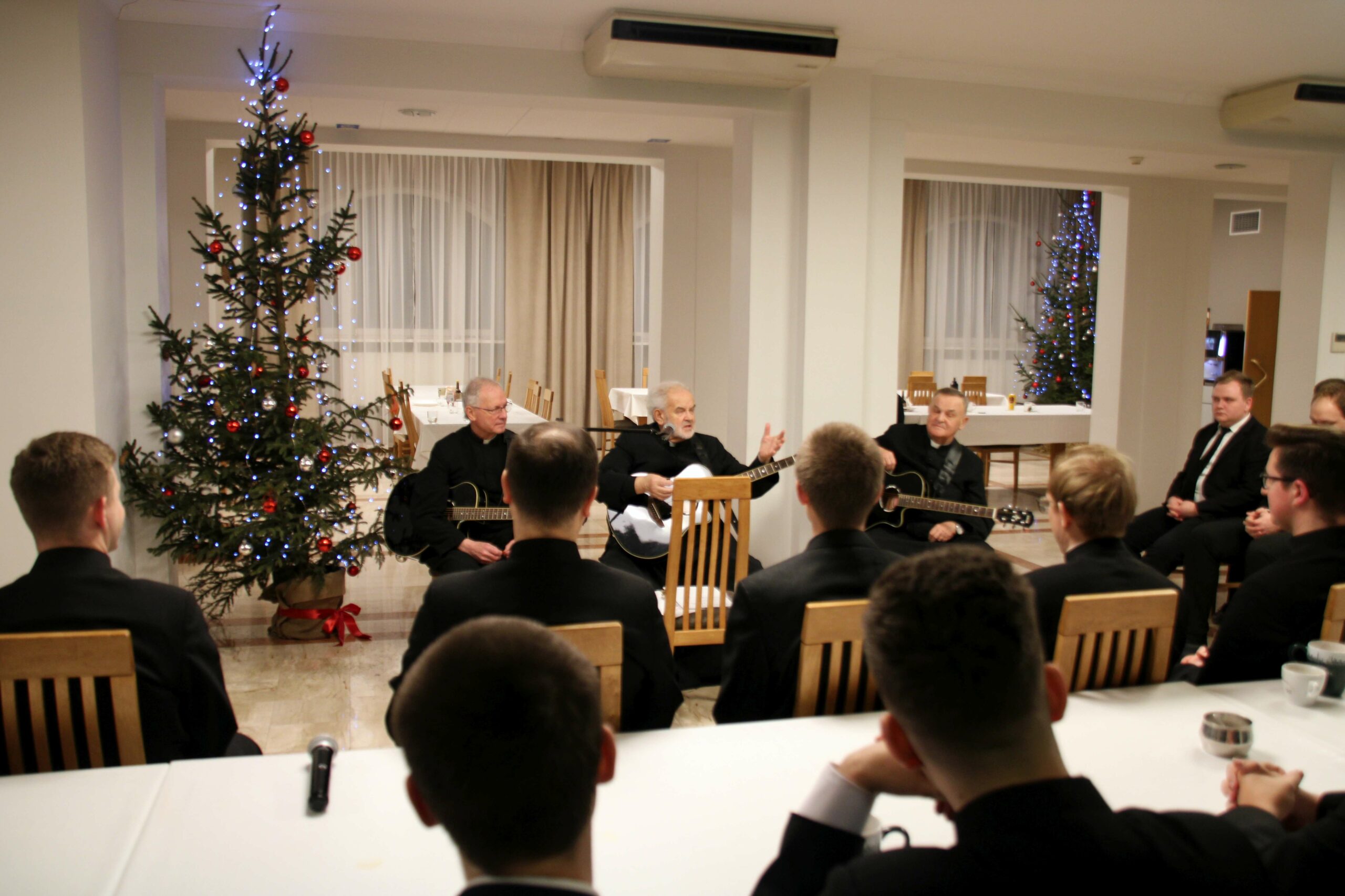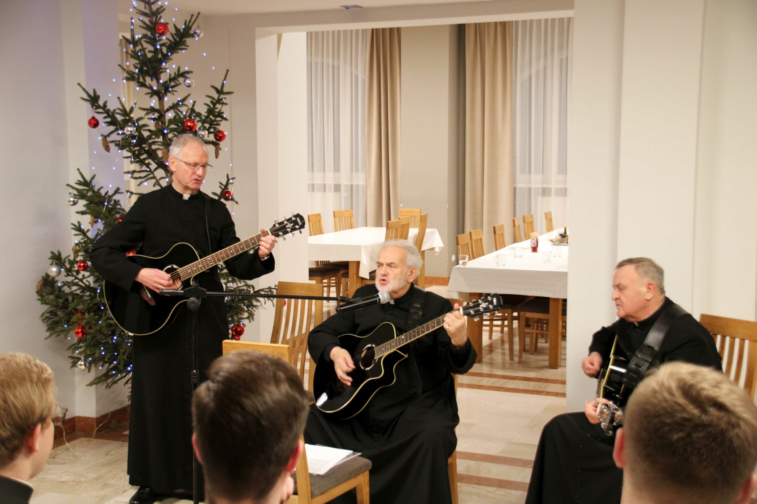 Naszymi czwartkowymi gośćmi byli wyjątkowi księża: prałat Andrzej Szczepaniak, prałat Wiesław Kondratowicz oraz Henryk Kondratowicz – emerytowani proboszczowie parafii w Buku, Kowalewie i Górze, wyświęceni na kapłanów w 1974 roku przez arcybiskupa metropolitę poznańskiego Antoniego Baraniaka, którzy razem tworzą zespół muzyczny „PoWieki”. Jego początki sięgają jeszcze ich wspólnych czasów seminaryjnych, czyli okresu sprzed pół wieku. Głównym celebransem uroczystej Eucharystii w seminaryjnej kaplicy, na początku której naszych gości powitał ksiądz rektor Jan Frąckowiak, był ksiądz Henryk, a homilię wygłosił ksiądz Andrzej.