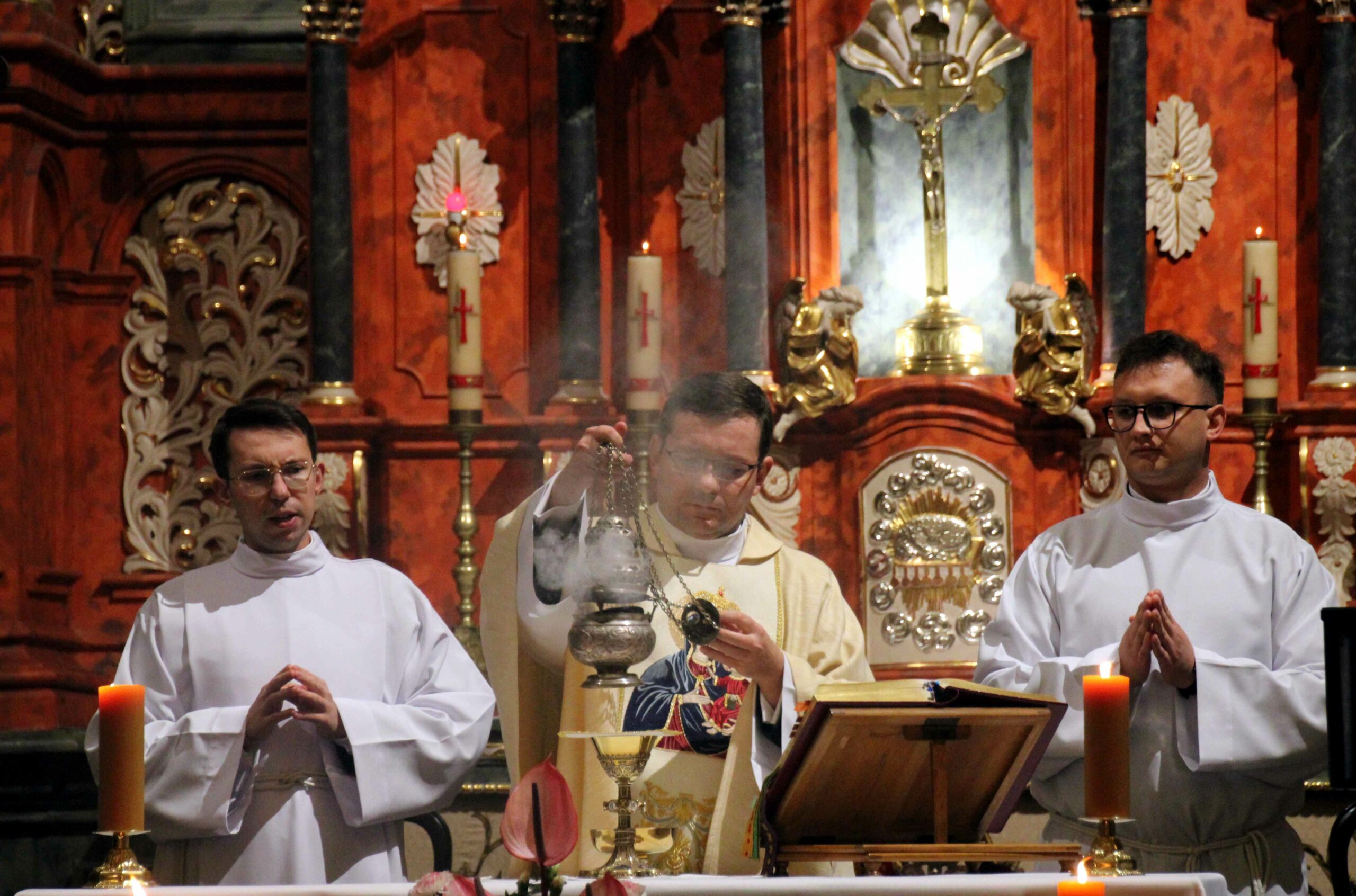 W poniedziałkowy wieczór, zgodnie z dorocznym zwyczajem, całą seminaryjną wspólnotą udaliśmy się do kościoła św. Antoniego Padewskiego i klasztoru franciszkanów konwentualnych w Poznaniu, gdzie znajduje się obraz Matki Bożej w Cudy Wielmożnej Pani Poznania. W kolejnym dniu Jerycha Różańcowego wieczorną Eucharystię sprawowali franciszkańscy ojcowie oraz księża przełożeni, których powitał ojciec gwardian dr Robert Leżohupski OFMConv. Głównym celebransem i homilistą był ksiądz rektor Jan Frąckowiak, który przypominał, iż same „zdrowaśki” nie są w stanie odmienić naszego miasta i świata, ale Stwórca może to wszystko odnowić.