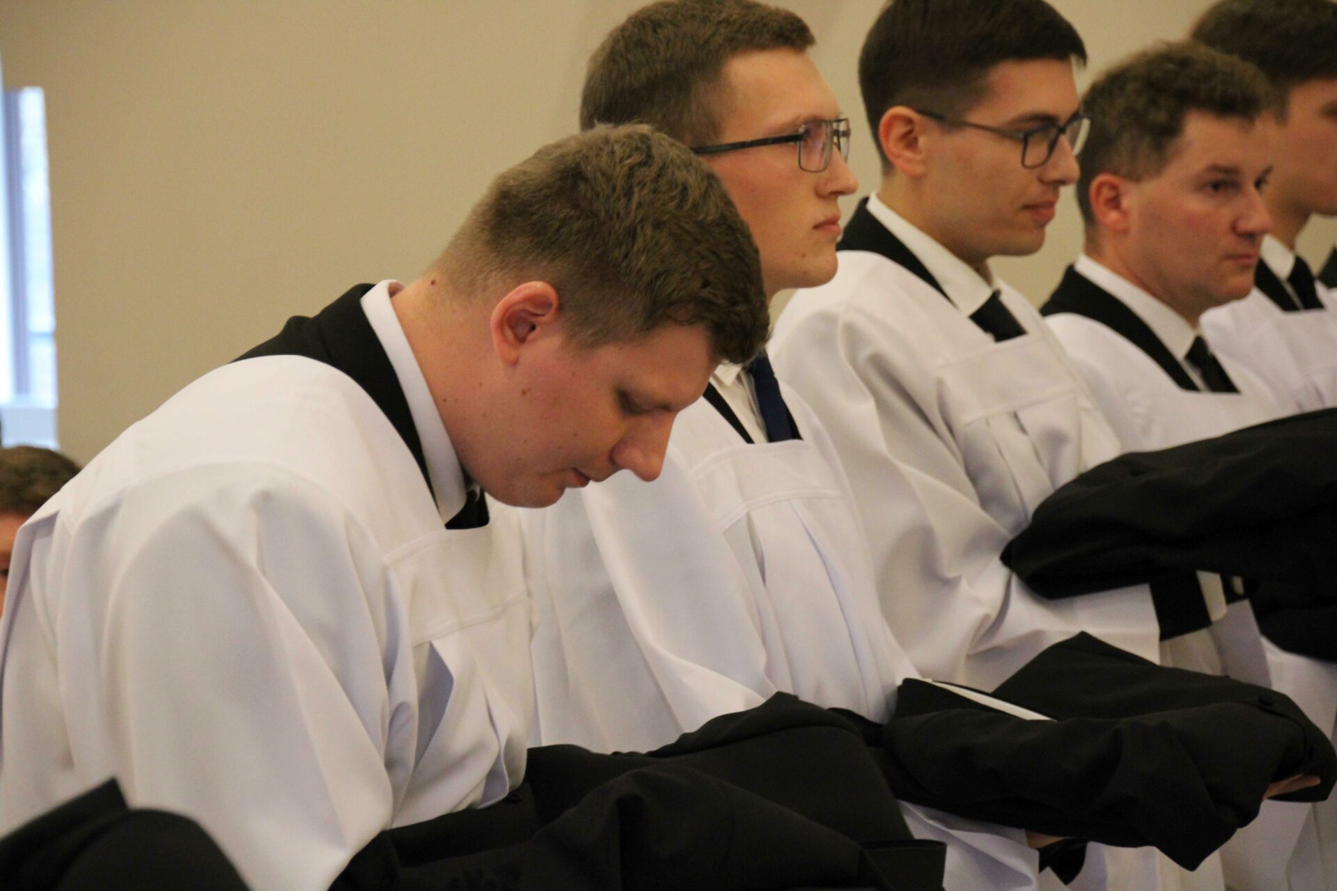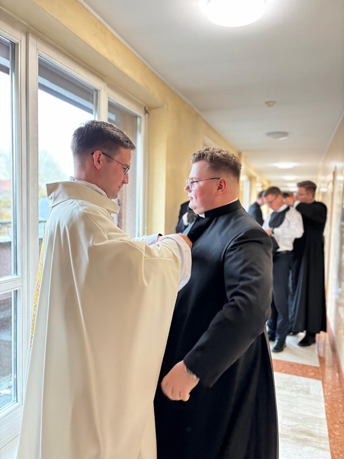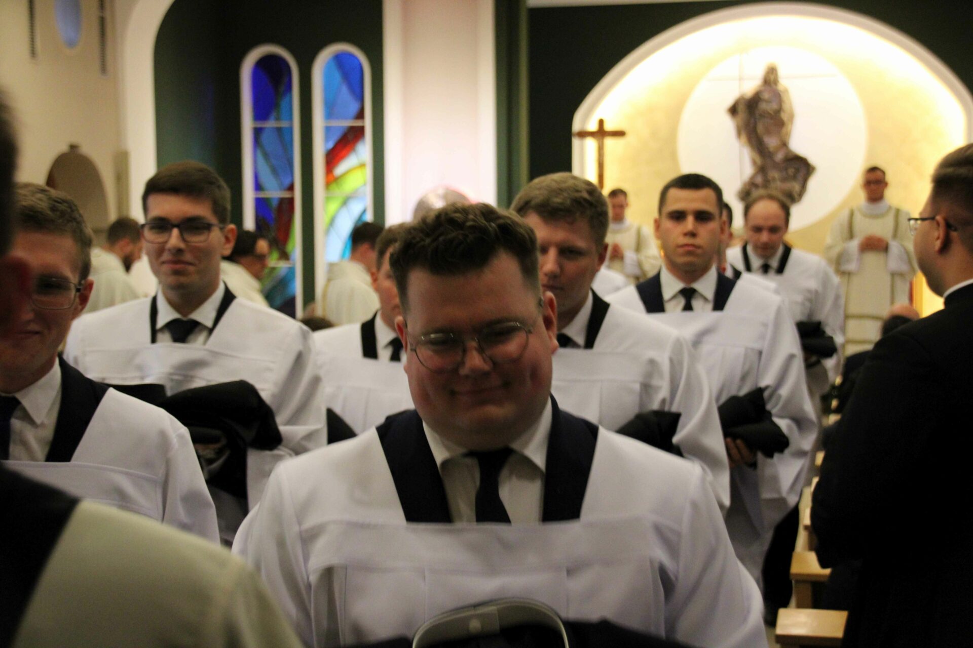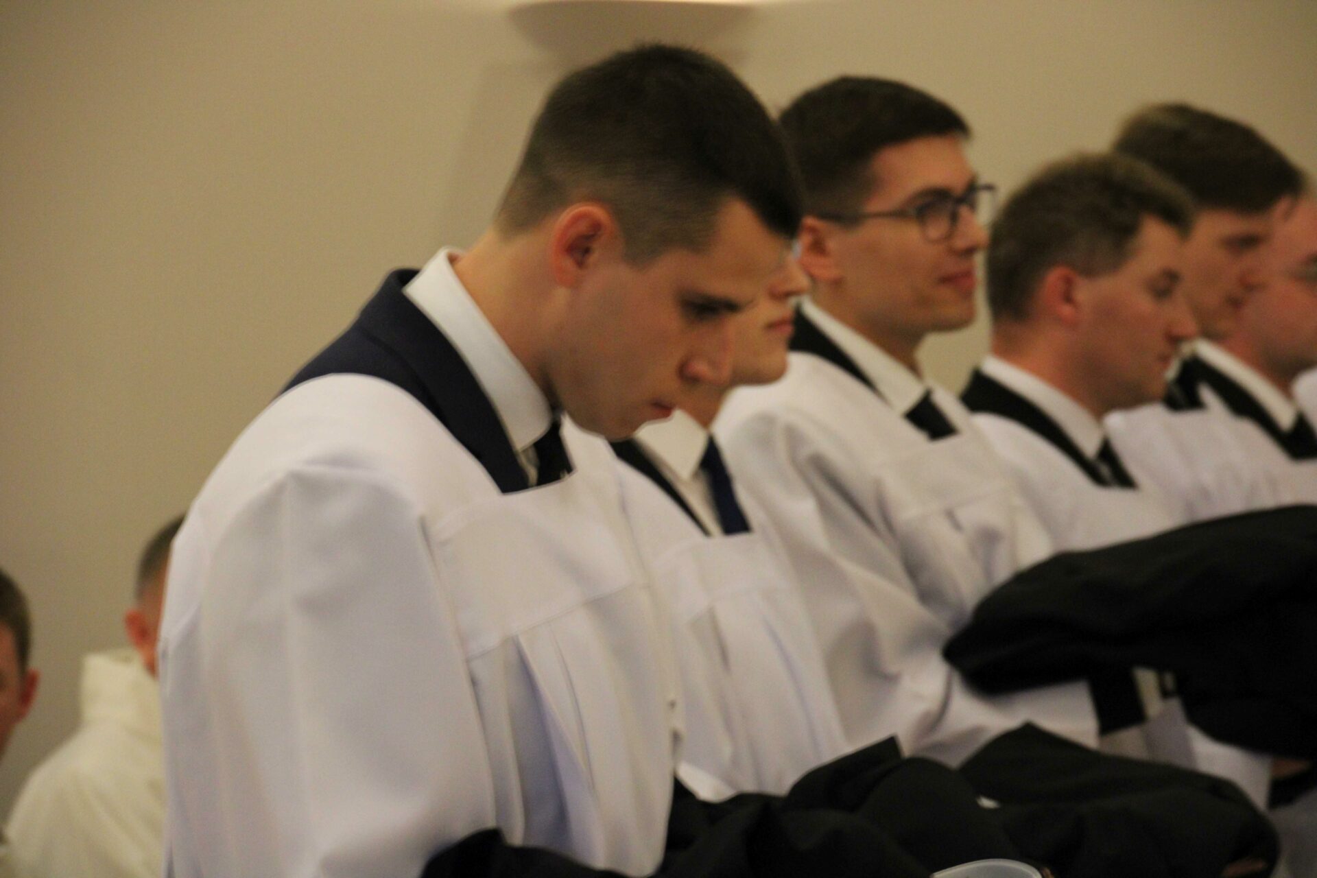 Uroczystość rozpoczęła się poranną Jutrznią, podczas której Ksiądz Rektor skierował do wspólnoty seminaryjnej słowo podkreślające znaczenie tego dnia. Zwrócił uwagę, że choć zewnętrzny znak obłóczyn – przyjęcie stroju duchownego – jest ważnym momentem, to jeszcze większe znaczenie ma kandydatura, będąca decyzją o podążaniu w stronę święceń diakonatu i prezbiteratu. Podkreślił, że sama zmiana stroju ma sens tylko wówczas, gdy towarzyszy jej wewnętrzne nawrócenie, pogłębiona formacja, umiłowanie modlitwy i rozwój życia duchowego.