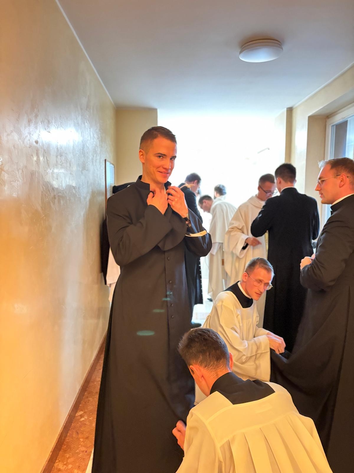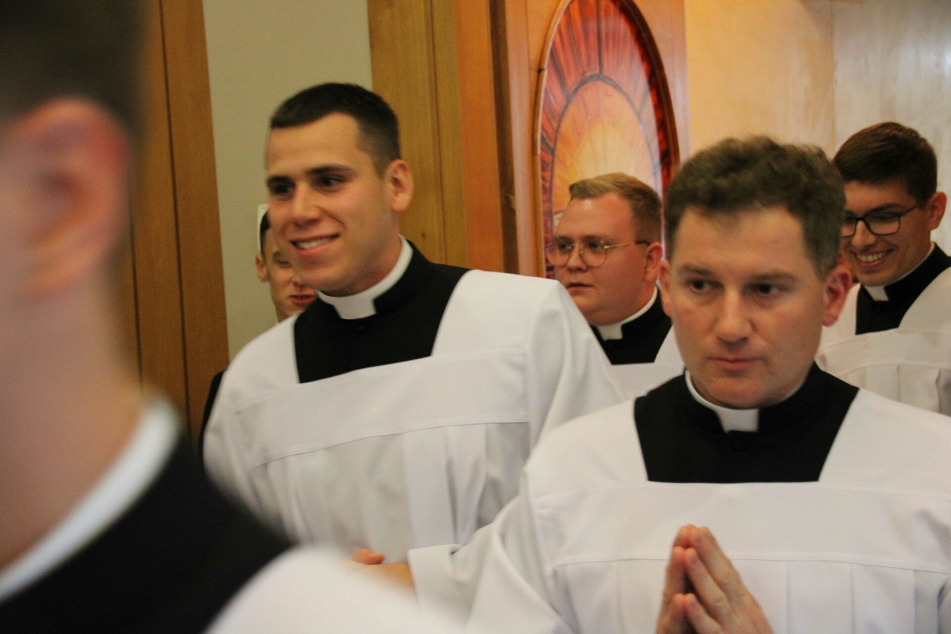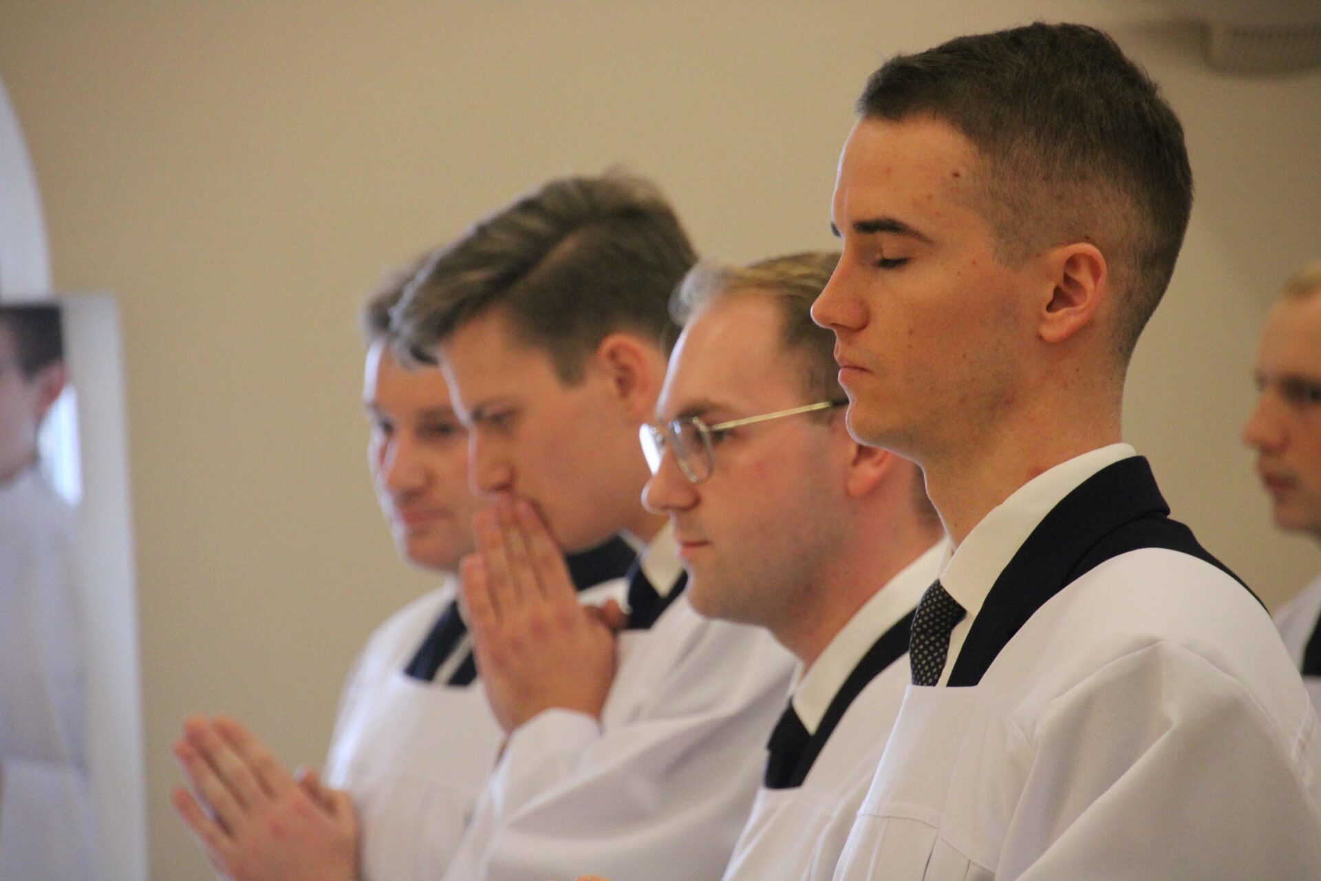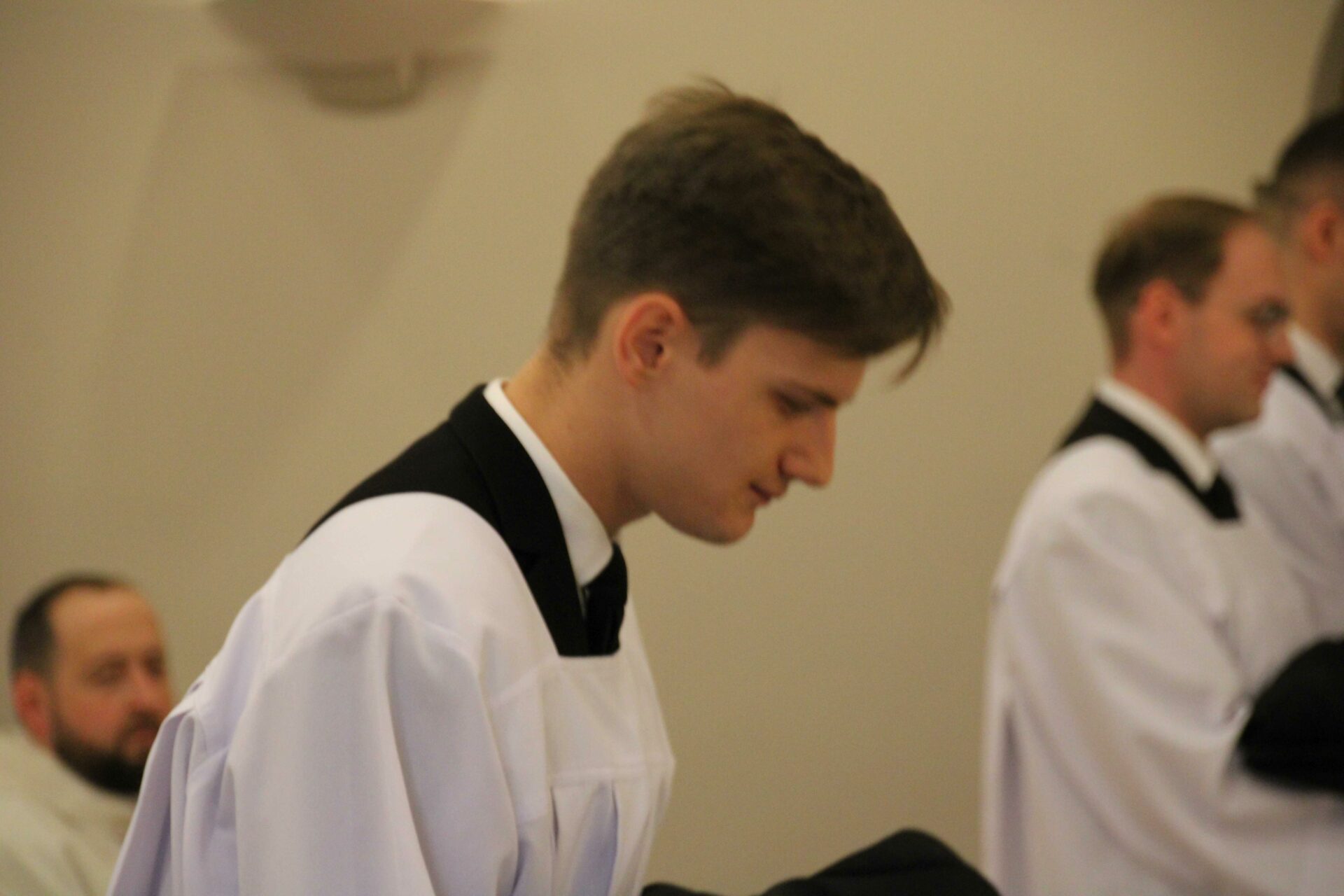 Uroczystość rozpoczęła się poranną Jutrznią, podczas której Ksiądz Rektor skierował do wspólnoty seminaryjnej słowo podkreślające znaczenie tego dnia. Zwrócił uwagę, że choć zewnętrzny znak obłóczyn – przyjęcie stroju duchownego – jest ważnym momentem, to jeszcze większe znaczenie ma kandydatura, będąca decyzją o podążaniu w stronę święceń diakonatu i prezbiteratu. Podkreślił, że sama zmiana stroju ma sens tylko wówczas, gdy towarzyszy jej wewnętrzne nawrócenie, pogłębiona formacja, umiłowanie modlitwy i rozwój życia duchowego.