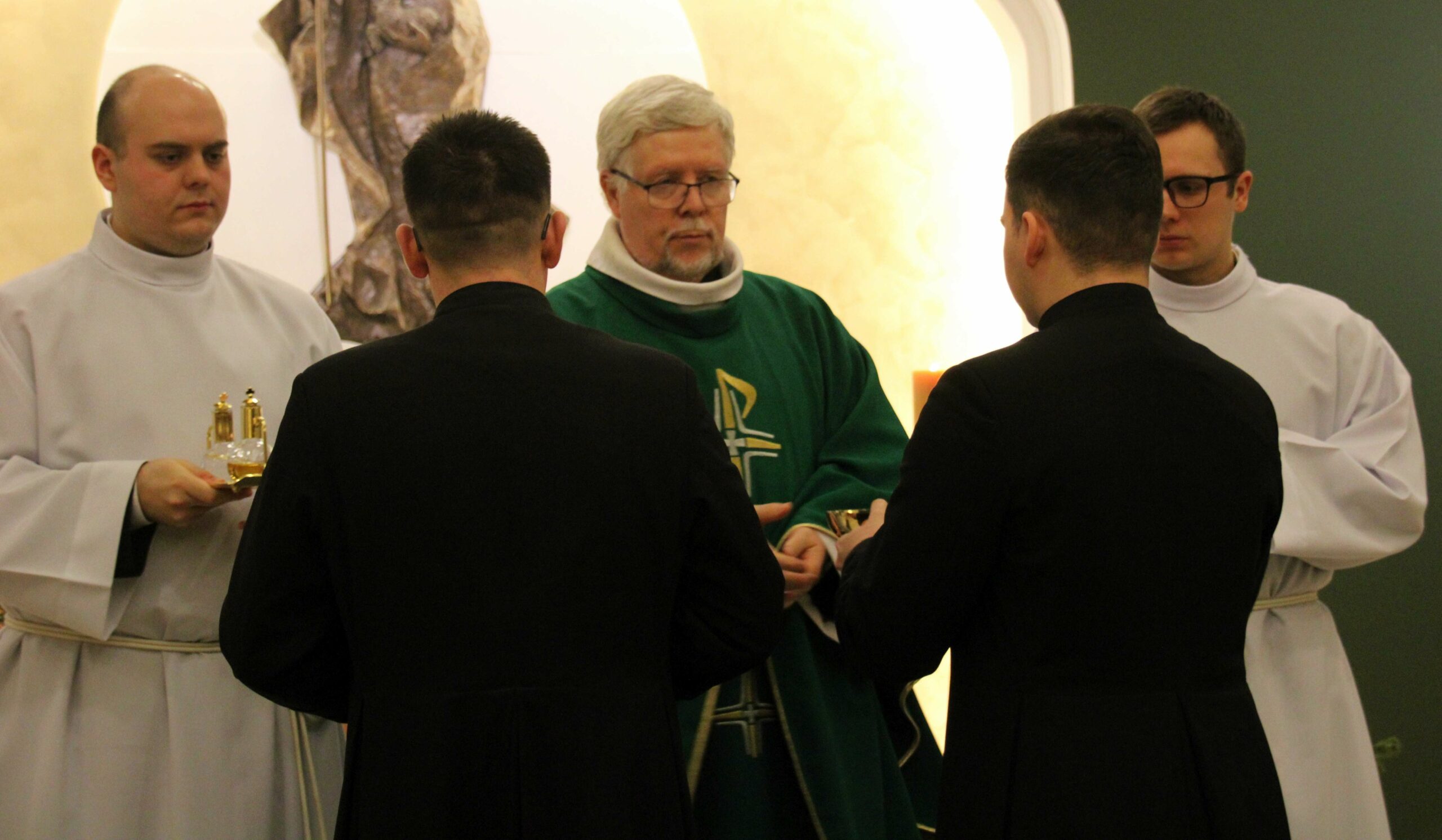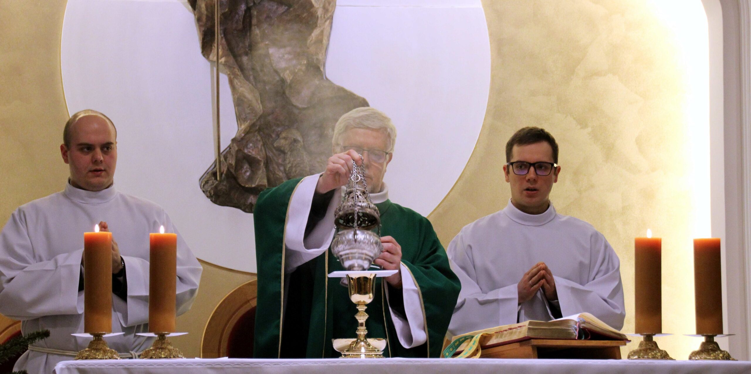 Tradycją w naszym domu jest, iż w okresie kolędowym do naszej wspólnoty przybywa jeden z duszpasterzy pracujących w poznańskiej parafii archikatedralnej. W tym roku naszym gościem był ksiądz kanonik Roman Dworacki – dyrektor Archiwum Archidiecezjalnego, który jest również skierowany do pomocy duszpasterskiej w najstarszej parafii w naszej archidiecezji. Na początku Eucharystii, celebrowanej w seminaryjnej kaplicy pw. Chrystusa Dobrego Pasterza, ksiądz rektor Jan Frąckowiak zwrócił uwagę na wartość pasterskiego umocnienia przez duszpasterza, dziękując mu jednocześnie za wszelką okazywaną nam życzliwość i modlitwy.